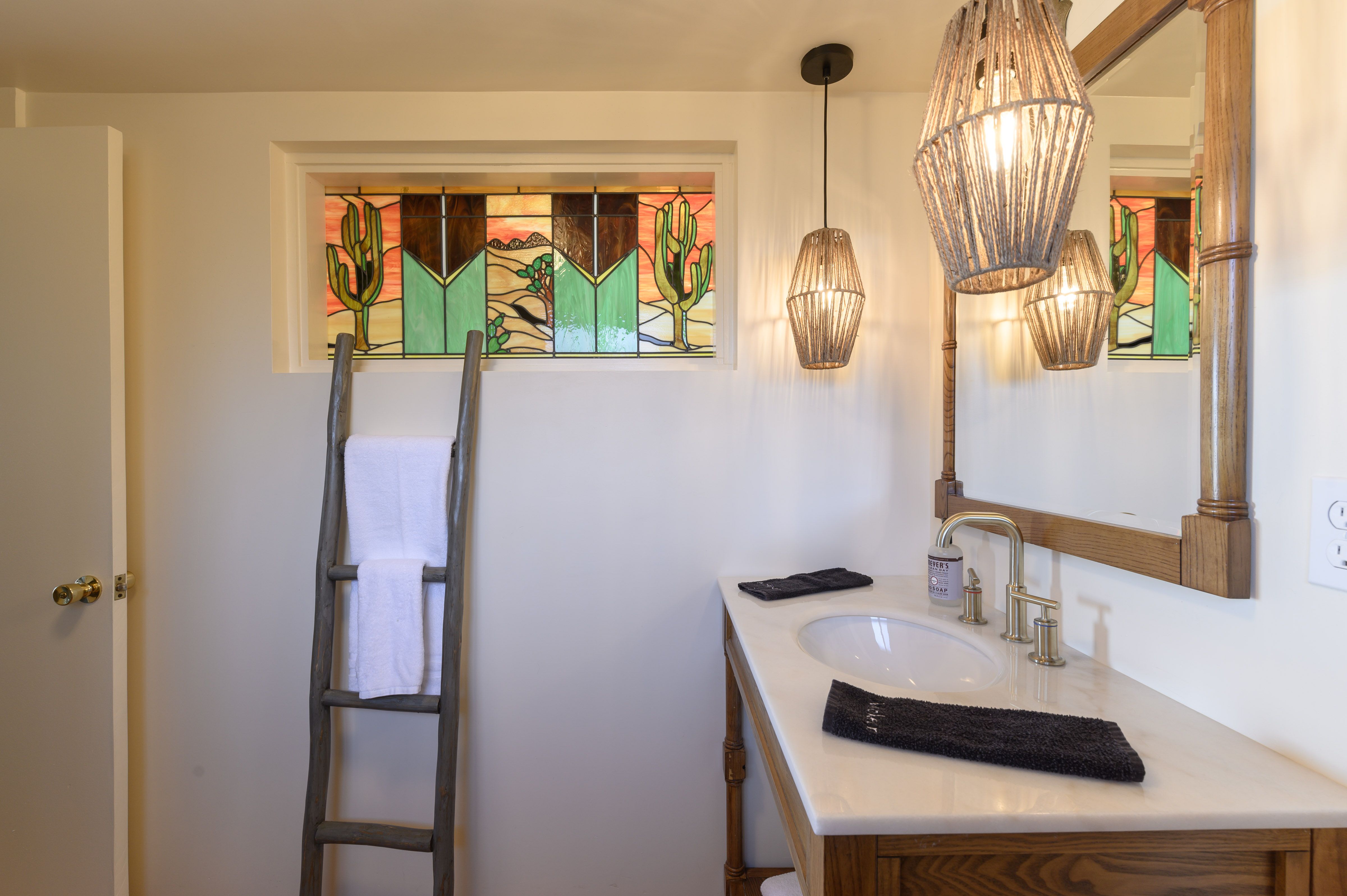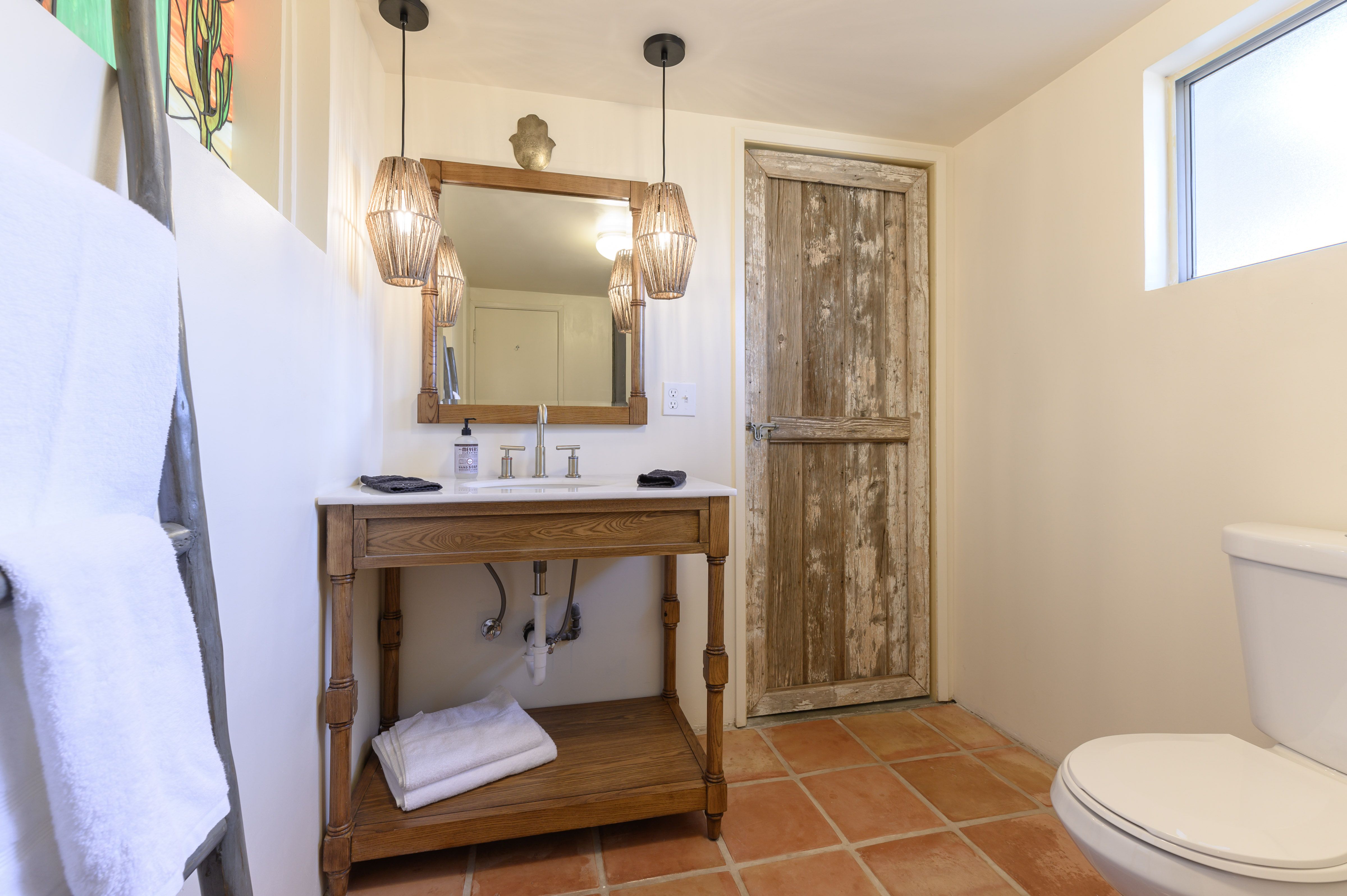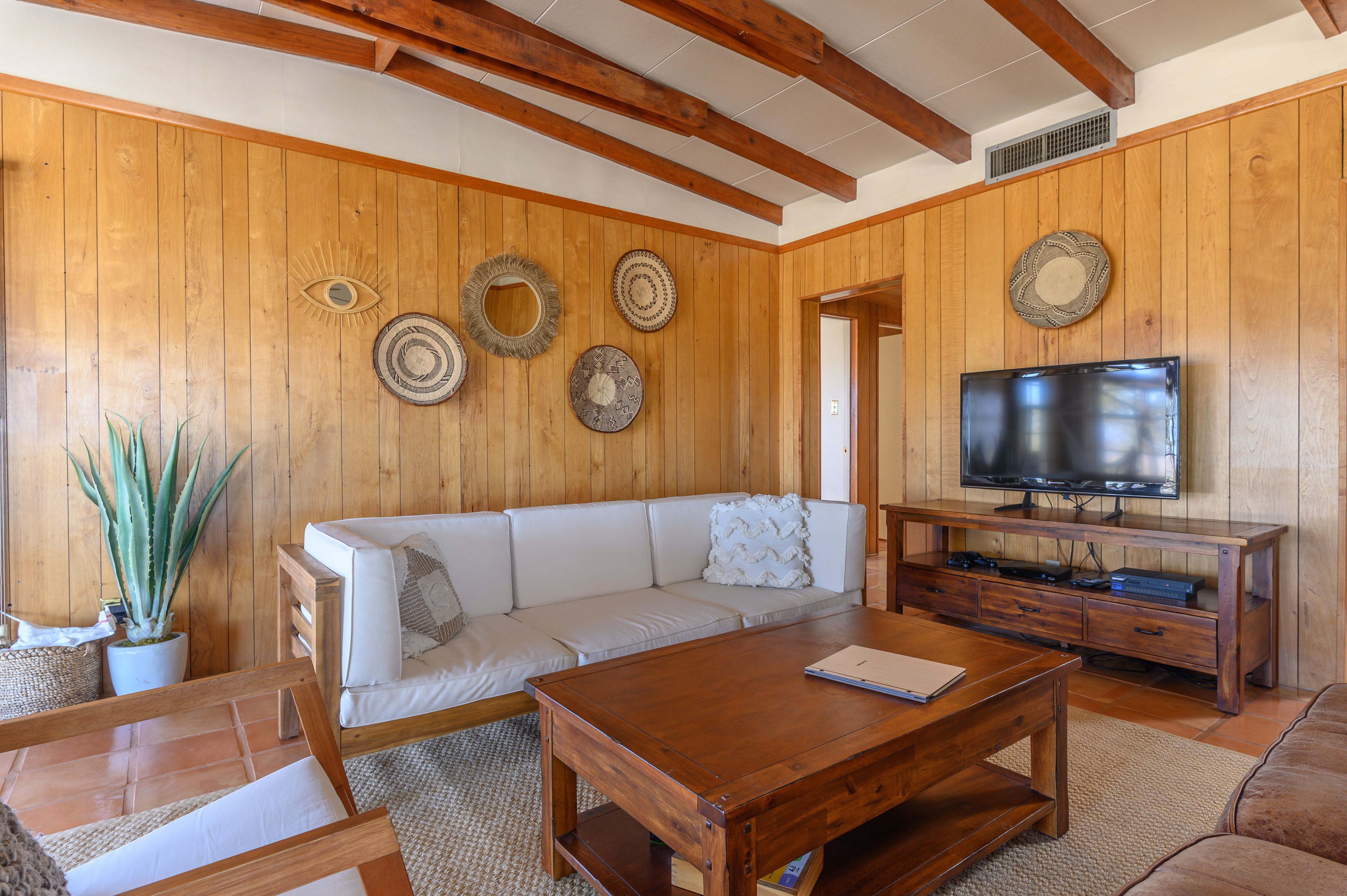 Home truths: *You'll need a car to get around. Though the home is down a dirt track, a 4x4 isn't necessary, and there's ample on-site parking.*A separate casita sleeps two guests. It's not photographed, but expect the style and quality to be consistent with the rest of the home.*The third bedroom has two single beds with pull-out trundles underneath. It sleeps four people.*Stream content to the TV via the Roku.*Child-friendly amenities such as a cot and high chair are available upon request.*The twin bedroom includes a sound machine to help you fall asleep if the tranquillity of the desert doesn't do it for you.*Please keep noise to a minimum outdoors after 10pm.*You can self check-in with keypad on arrival.*Pets are welcome to join you upon request.
