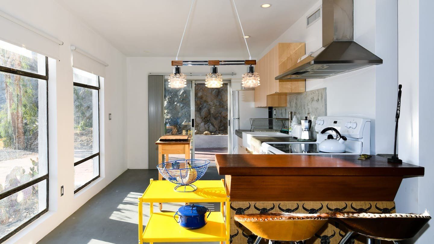 Staying here, you’ll be able to indulge in blissful seclusion, with just one other, similarly stylish house, in the neighbourhood. With the awe-inspiring landscapes spreading out in every direction, and with the Joshua Tree National Park just twenty minutes away, this is an ideal location for a truly inspirational Western experience. In the evening, why not step outside and gaze up into the starry sky – or better still, do so while soaking in the hot tub, with a glass of something cold and delicious.