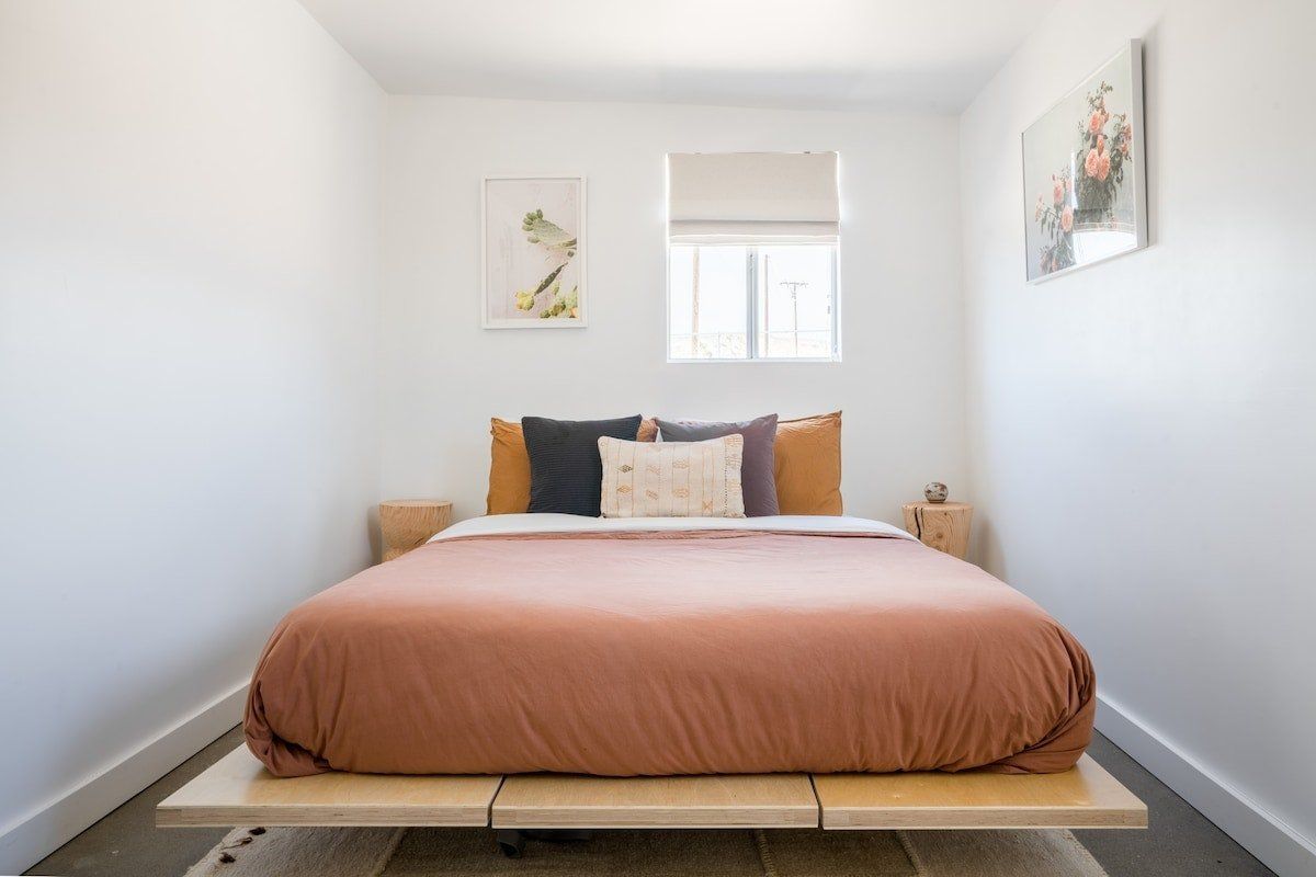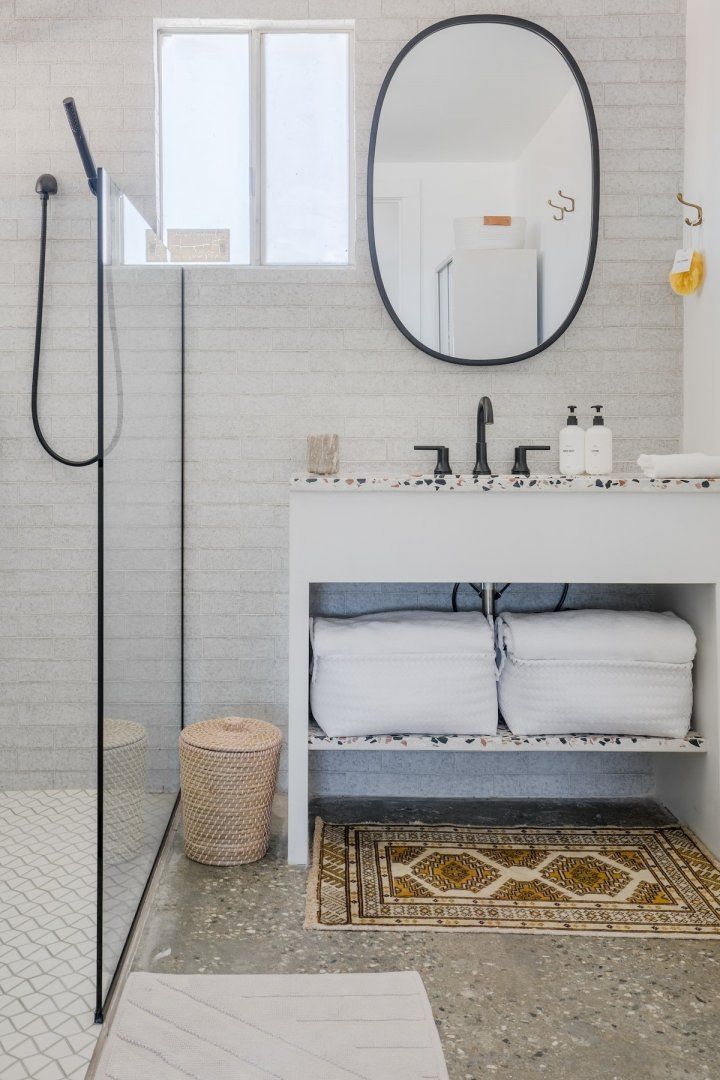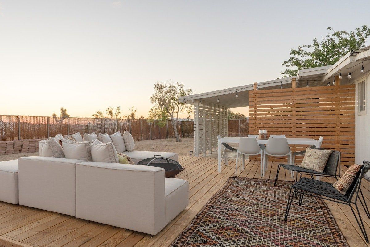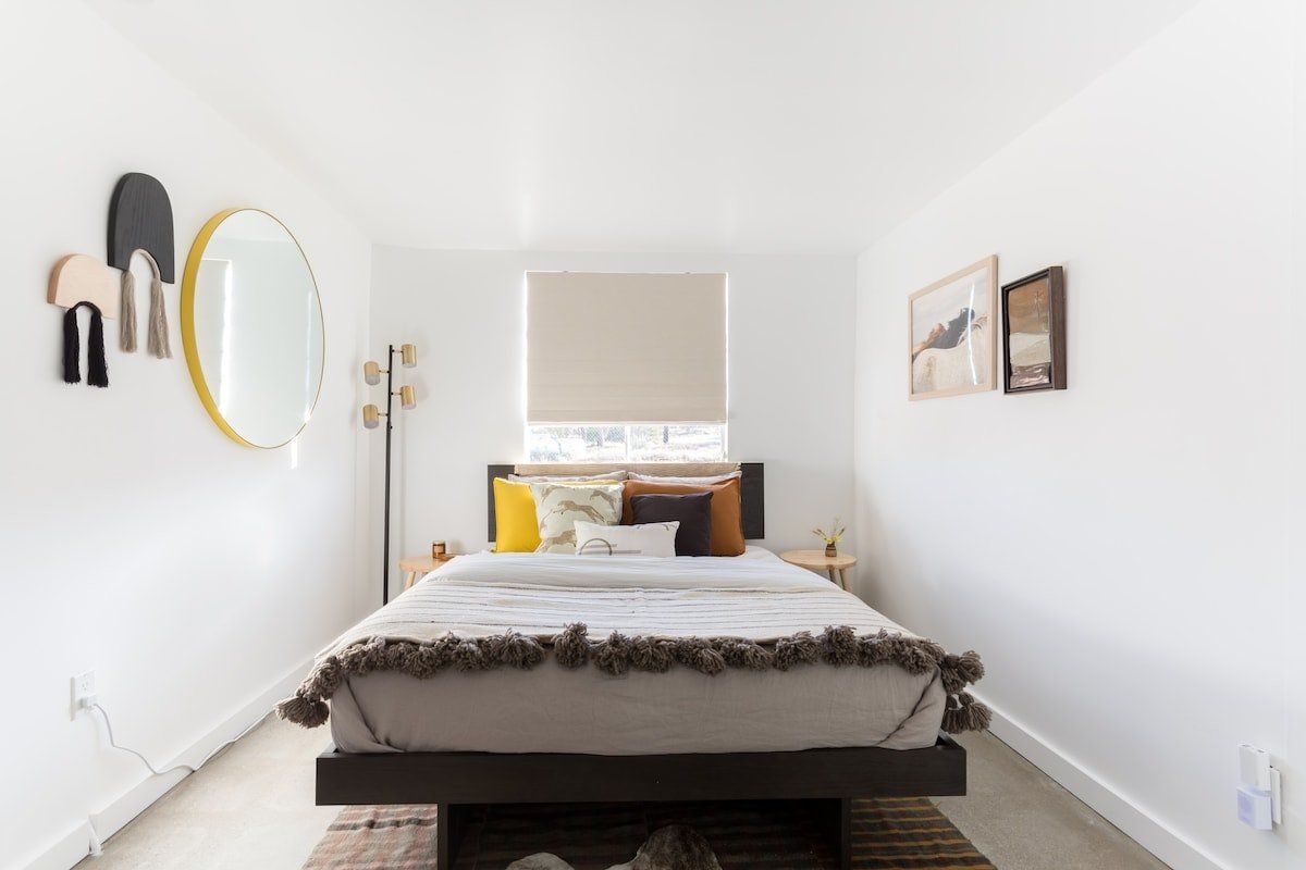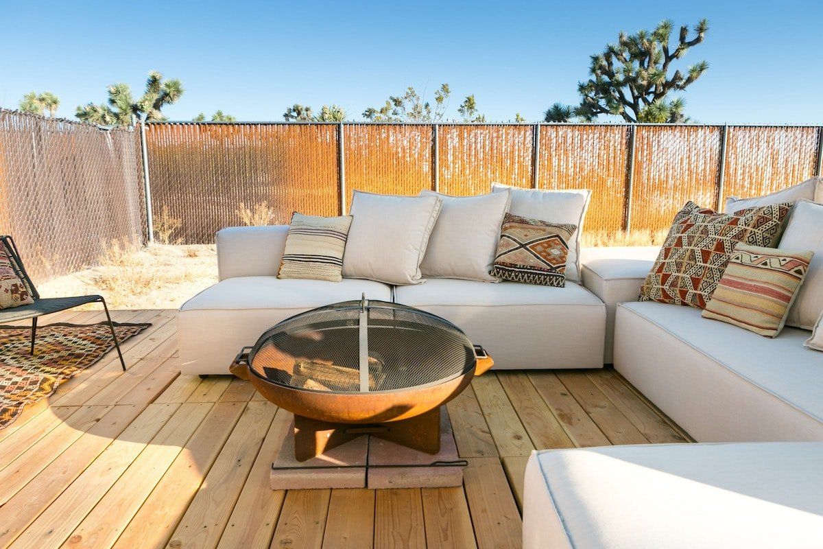 Mid-century modern meets boho chic at this cabin in the heart of the Yucca Valley. From the tile backsplash and terrazzo worktops in the kitchen to the concrete flooring and exposed brick around the Franklin stove, we love how the design honours the home’s retro roots in a modern way. We like all the personal touches, too — such as the vinyl record player and Public Goods toiletries. Our favourite bit, though, has to be the backyard. It's essentially a second living space, with a large sectional sofa, six-seater dining table, and cosy fire pit to enjoy. We can just imagine whiling away the evenings out there, watching the unforgettable desert sunset, chatting around the fire, or dining under the stars. Joshua Tree National Park is just a 15-minute drive away and is perfect for outdoor enthusiasts wanting to hike, cycle, or even horseback ride. Culture vultures will love the area's selection of art galleries and vineyards, too. No matter how you spend your day, we know you'll love coming home and unwinding at this unique desert hideaway.