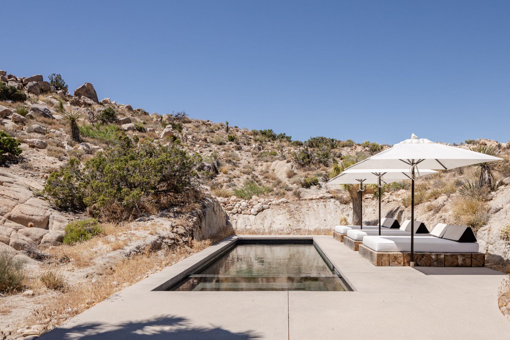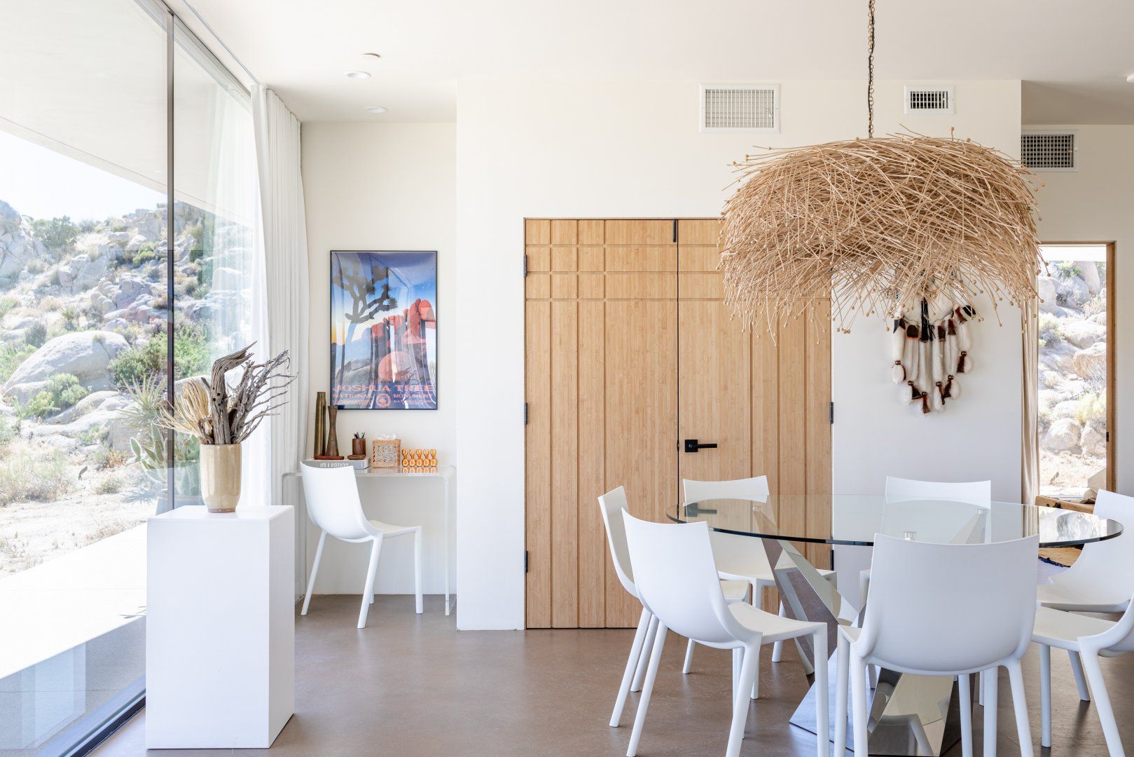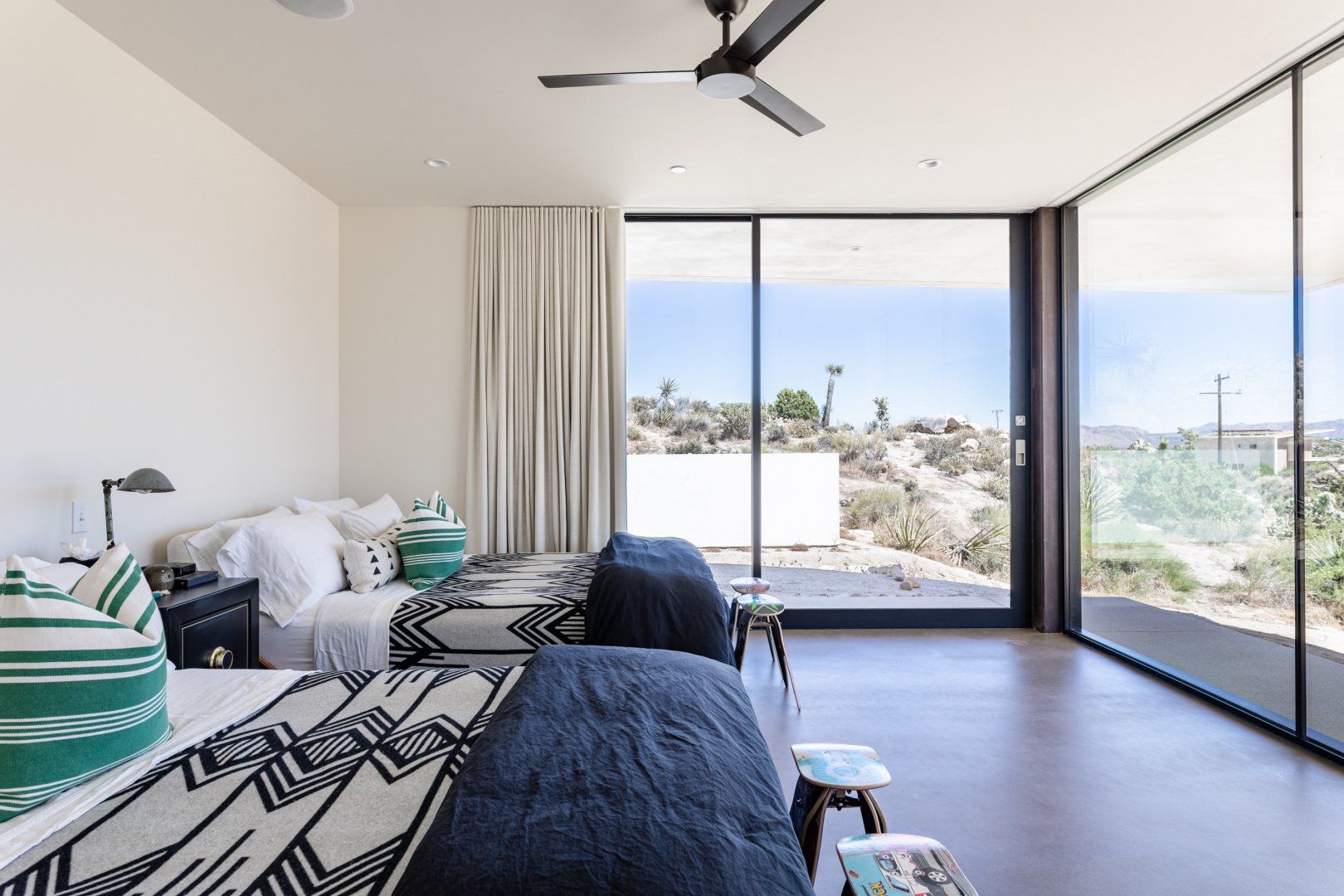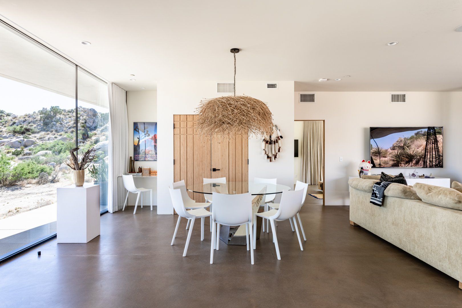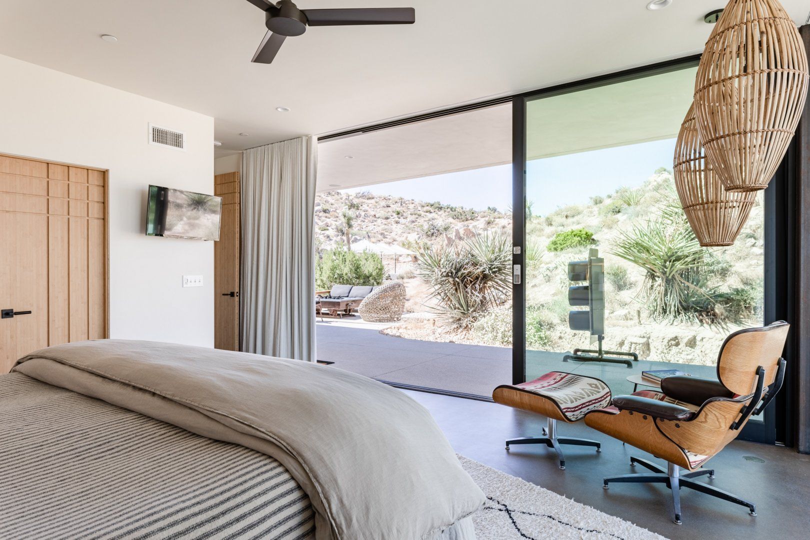 Nestled among large boulders and desert sands, this home is a true Joshua Tree getaway with a private saltwater pool/spa and outdoor shower. With no neighbours around, it's an escape from civilisation that's at one with nature and design. The floor-to-ceiling moving glass walls blur the lines between the indoors/outdoors, allowing you to take advantage of the surroundings at all times. Inside, works by local artists and famous designers merge, while the kitchen sets the scene for great meals. We could go on and on about this home – but you should really check it out for yourself!