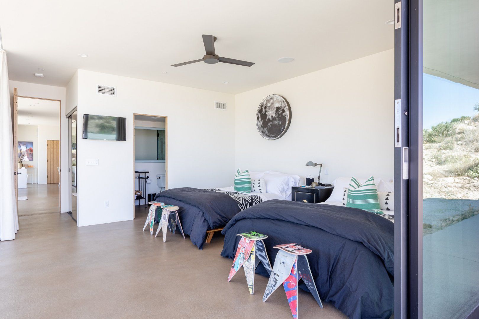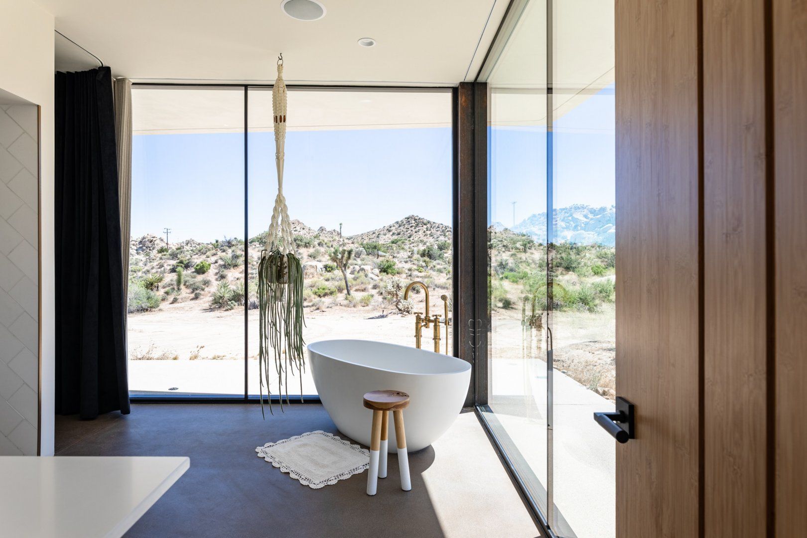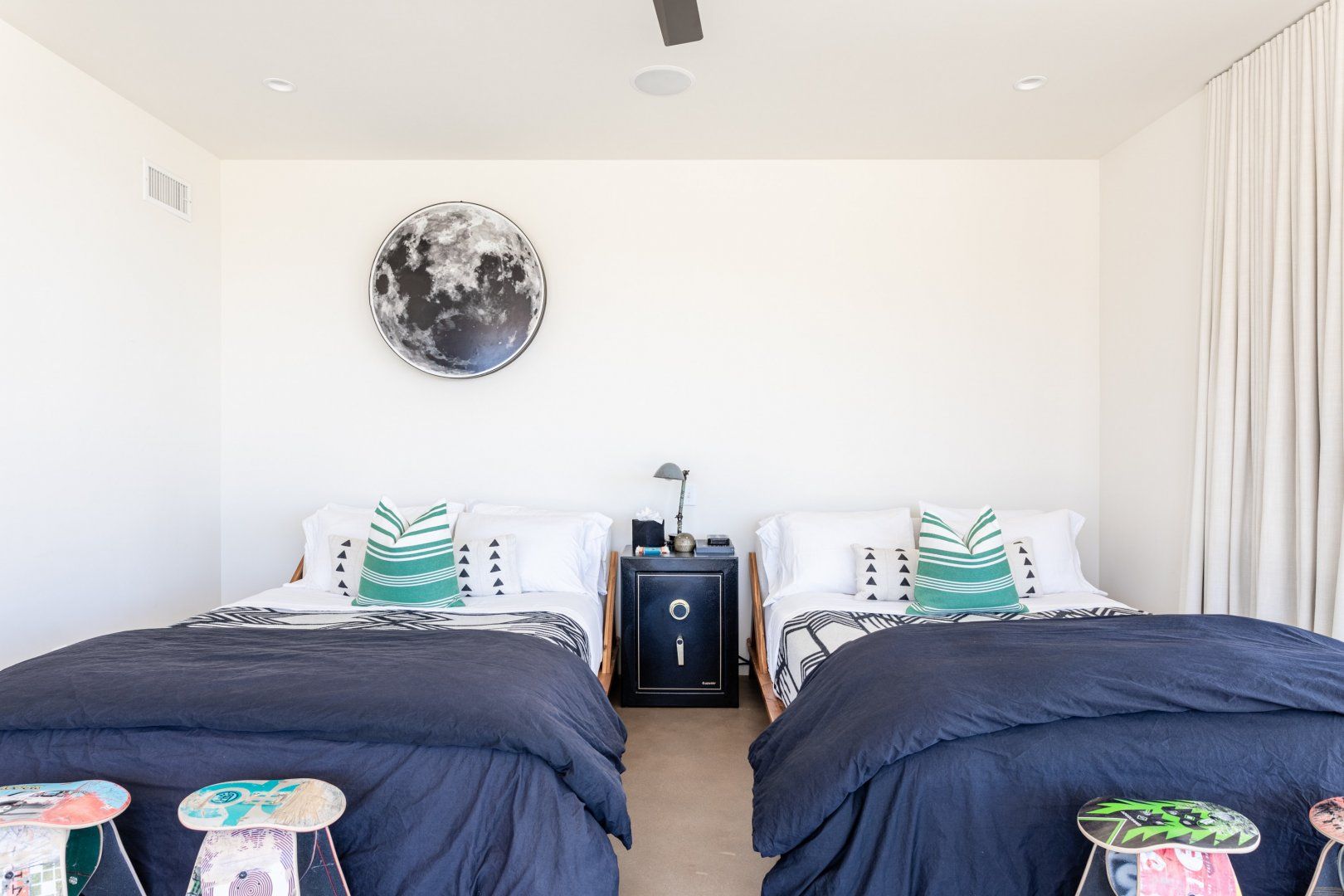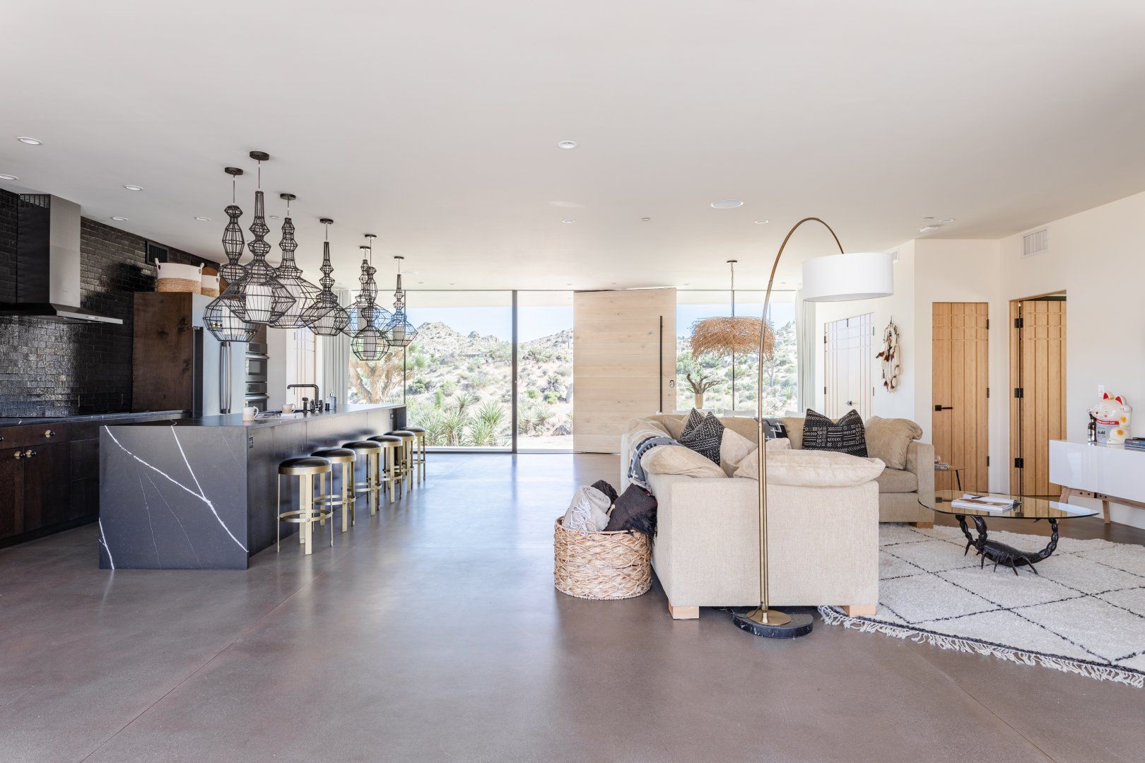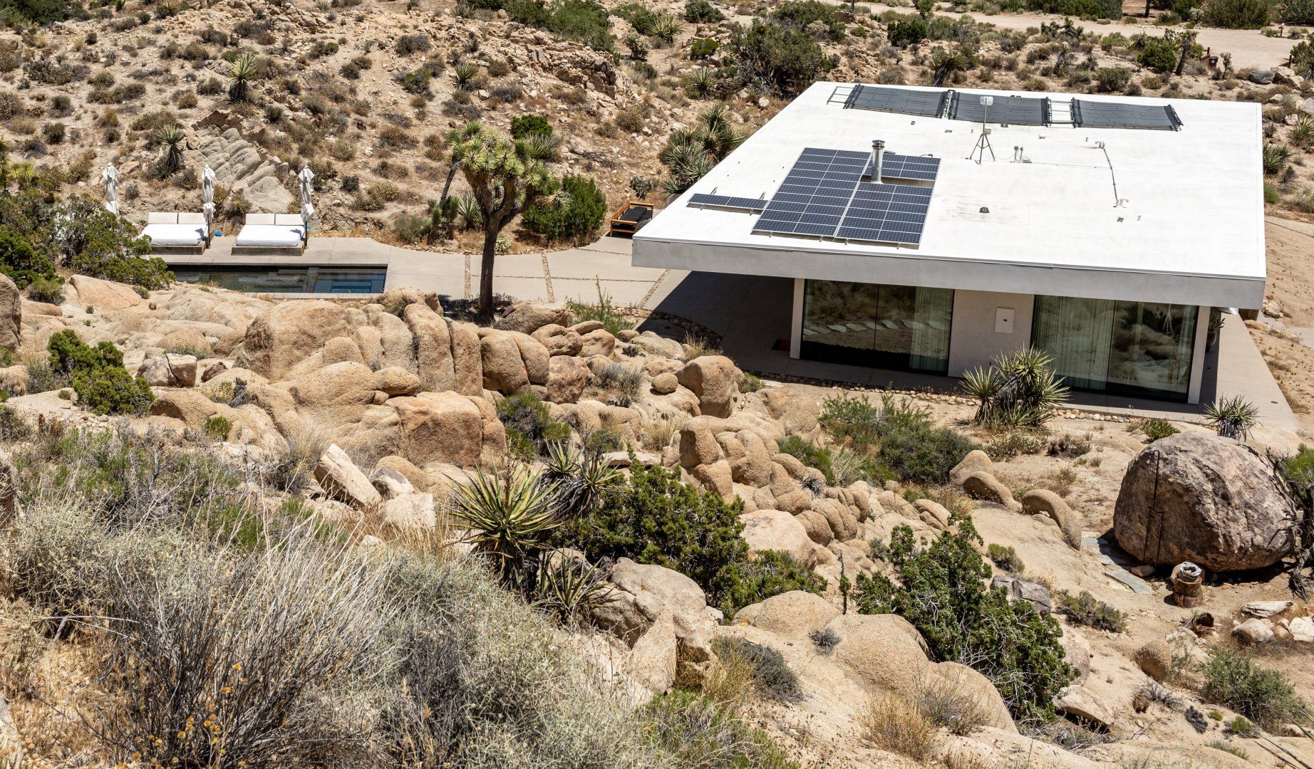 Nestled among large boulders and desert sands, this home is a true Joshua Tree getaway with a private saltwater pool/spa and outdoor shower. With no neighbours around, it's an escape from civilisation that's at one with nature and design. The floor-to-ceiling moving glass walls blur the lines between the indoors/outdoors, allowing you to take advantage of the surroundings at all times. Inside, works by local artists and famous designers merge, while the kitchen sets the scene for great meals. We could go on and on about this home – but you should really check it out for yourself!