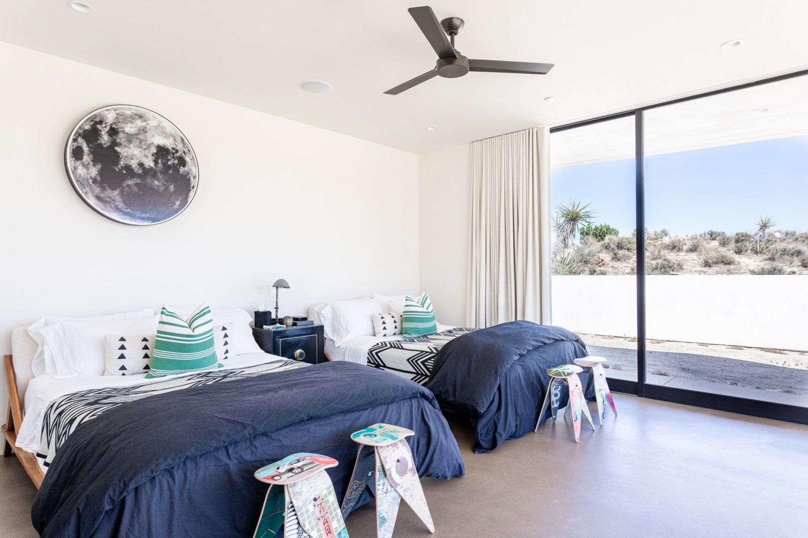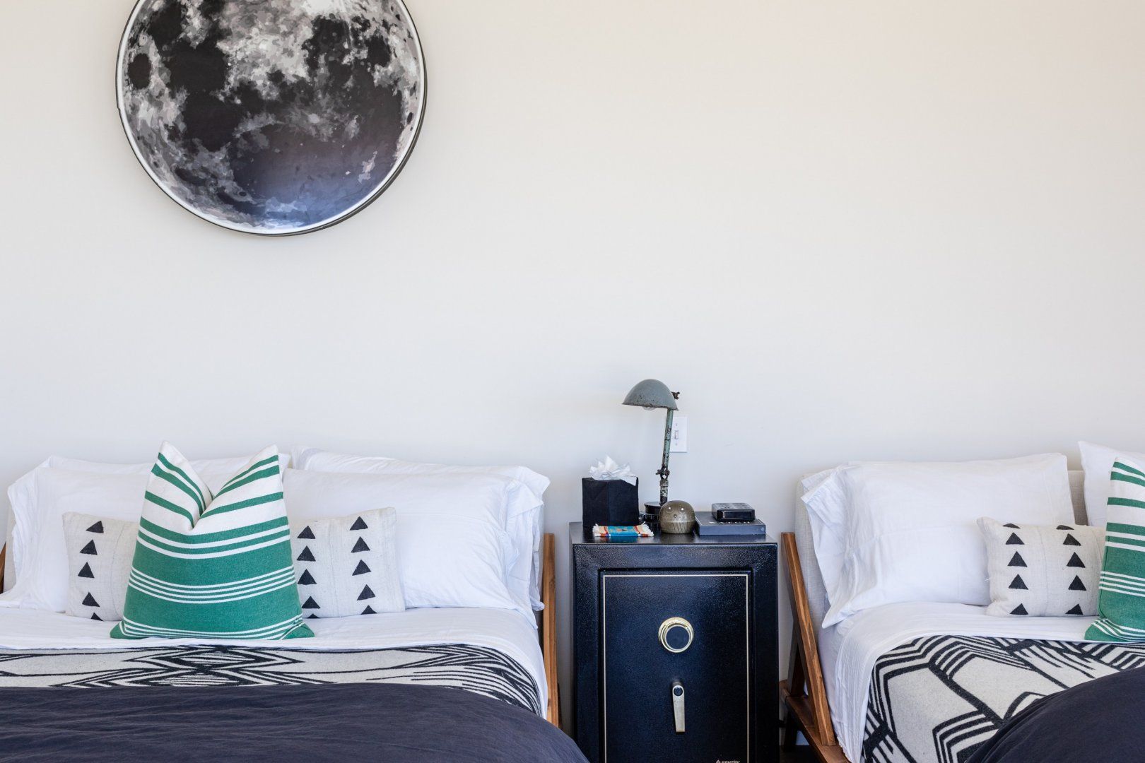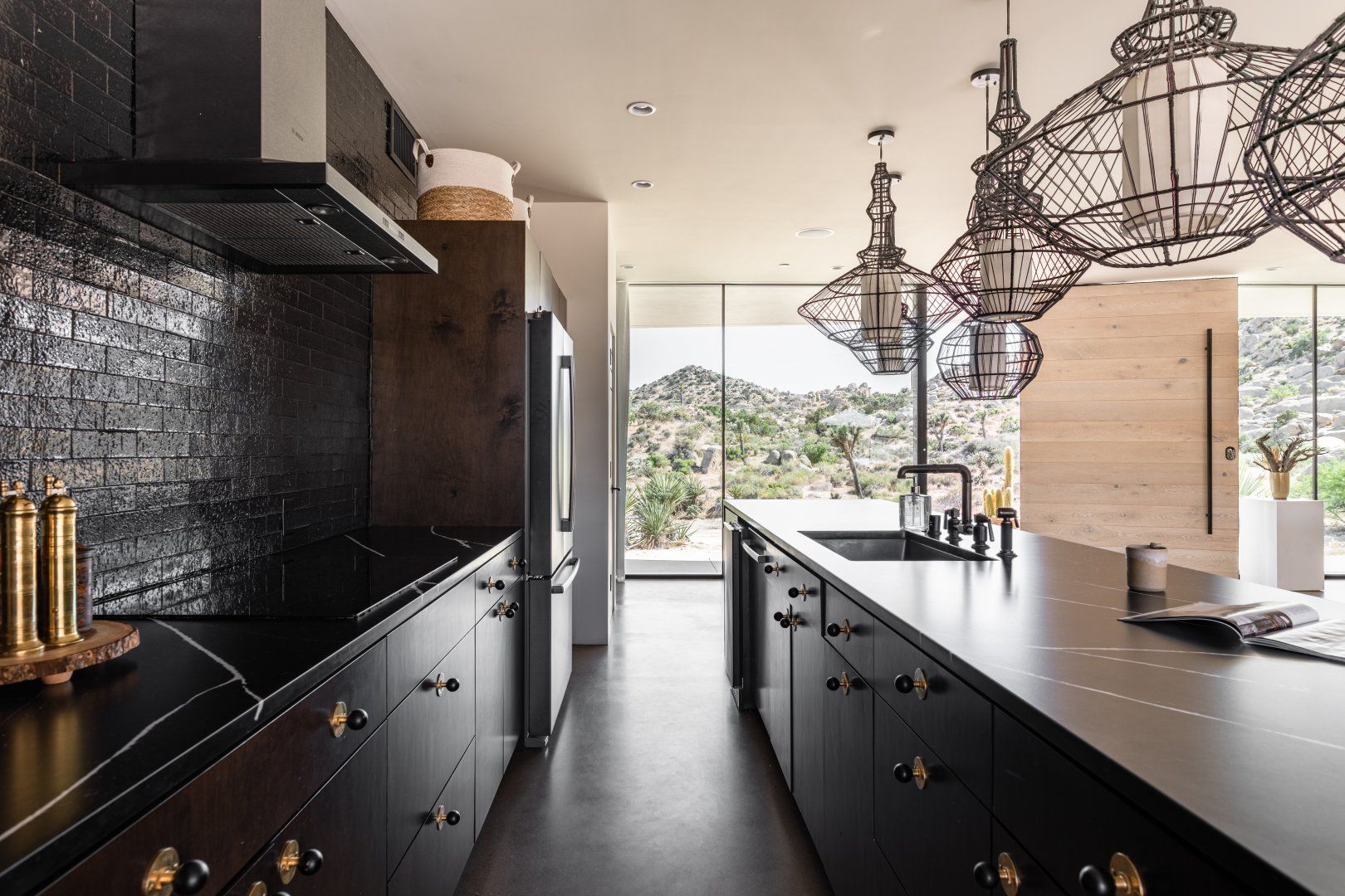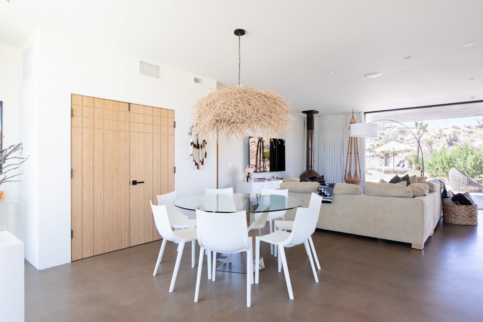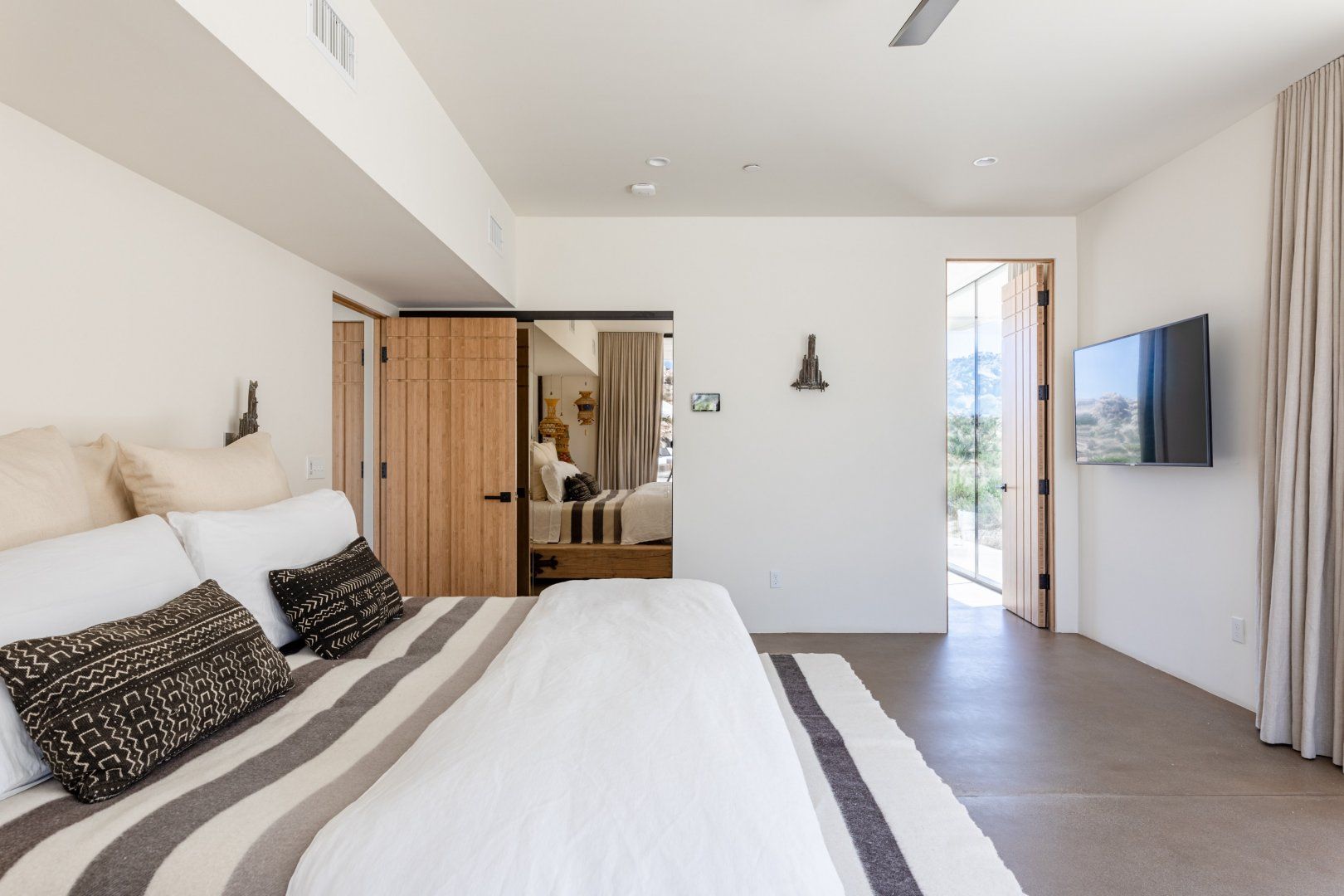 Nestled among large boulders and desert sands, this home is a true Joshua Tree getaway with a private saltwater pool/spa and outdoor shower. With no neighbours around, it's an escape from civilisation that's at one with nature and design. The floor-to-ceiling moving glass walls blur the lines between the indoors/outdoors, allowing you to take advantage of the surroundings at all times. Inside, works by local artists and famous designers merge, while the kitchen sets the scene for great meals. We could go on and on about this home – but you should really check it out for yourself!