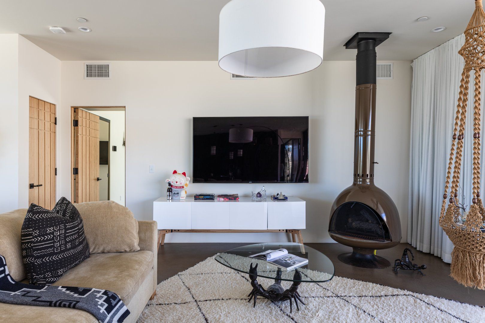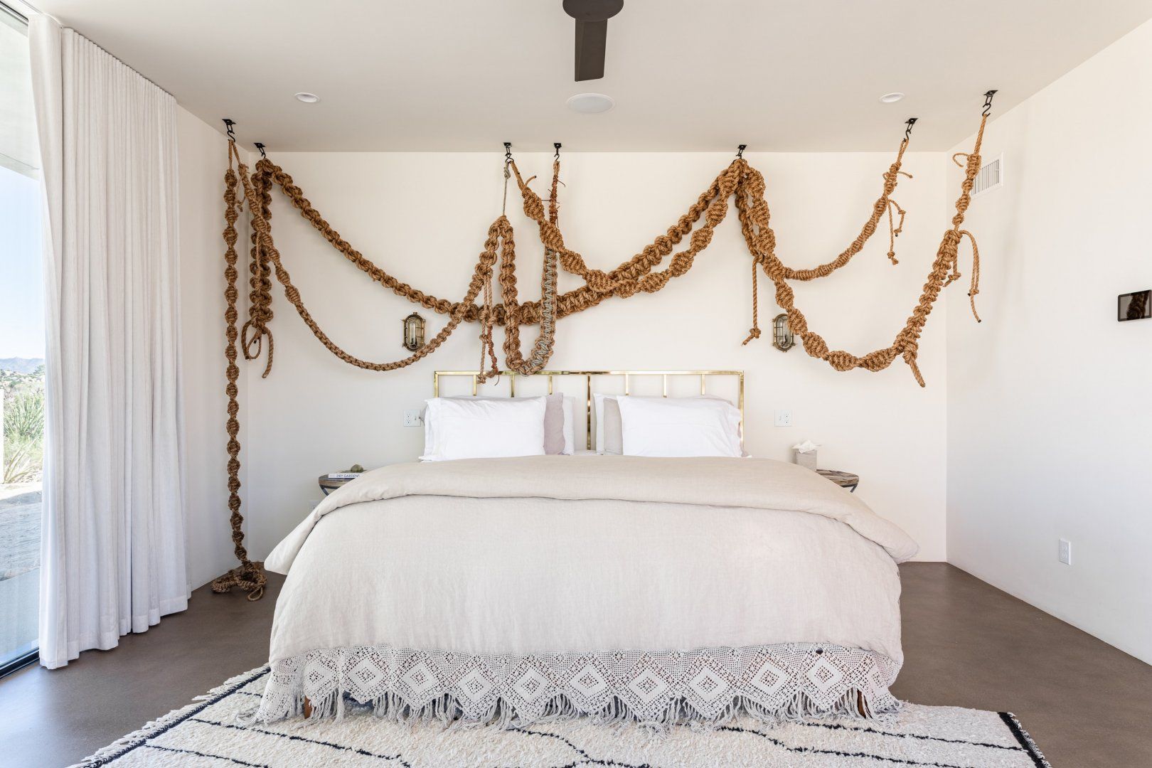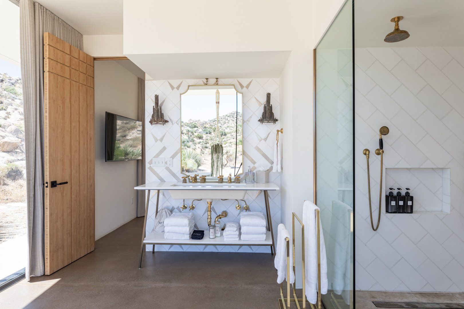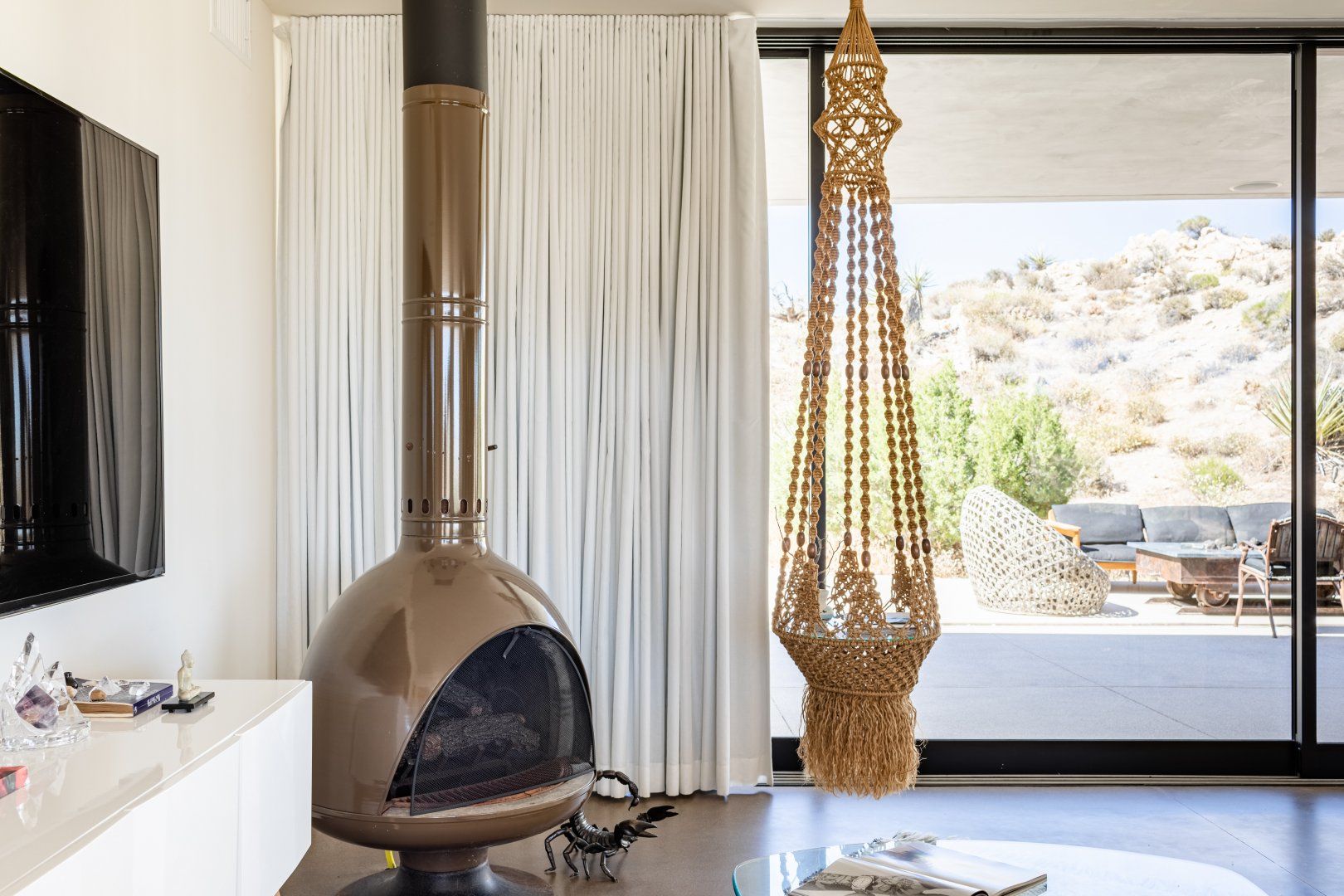 Nestled among large boulders and desert sands, this home is a true Joshua Tree getaway with a private saltwater pool/spa and outdoor shower. With no neighbours around, it's an escape from civilisation that's at one with nature and design. The floor-to-ceiling moving glass walls blur the lines between the indoors/outdoors, allowing you to take advantage of the surroundings at all times. Inside, works by local artists and famous designers merge, while the kitchen sets the scene for great meals. We could go on and on about this home – but you should really check it out for yourself!