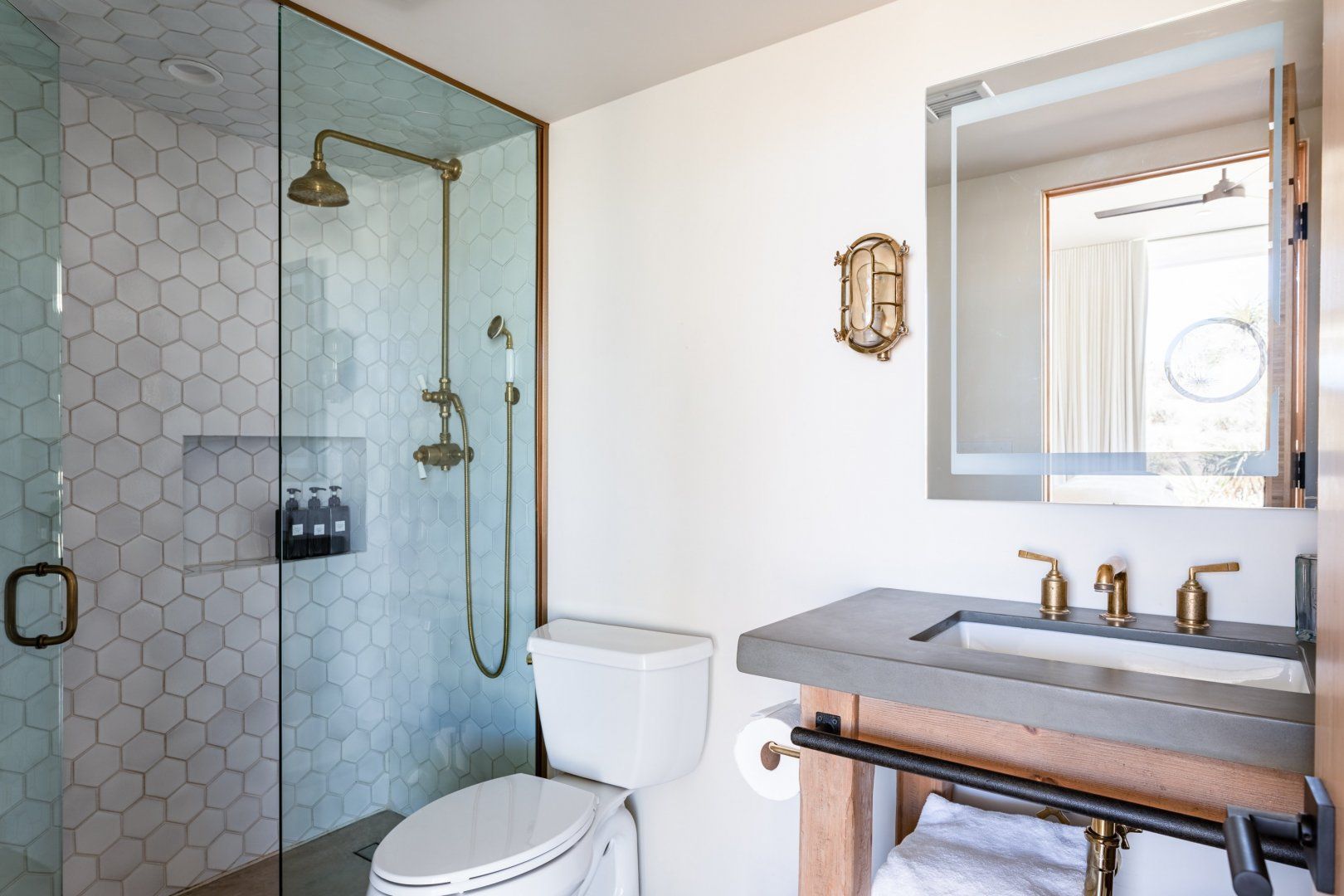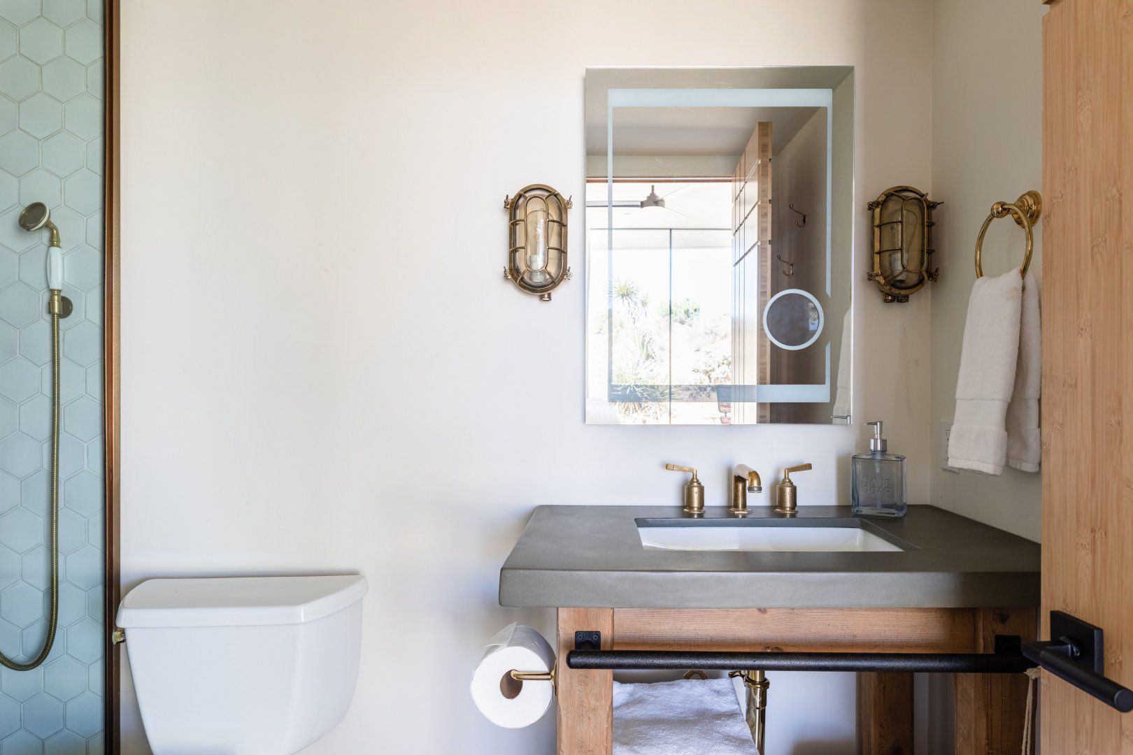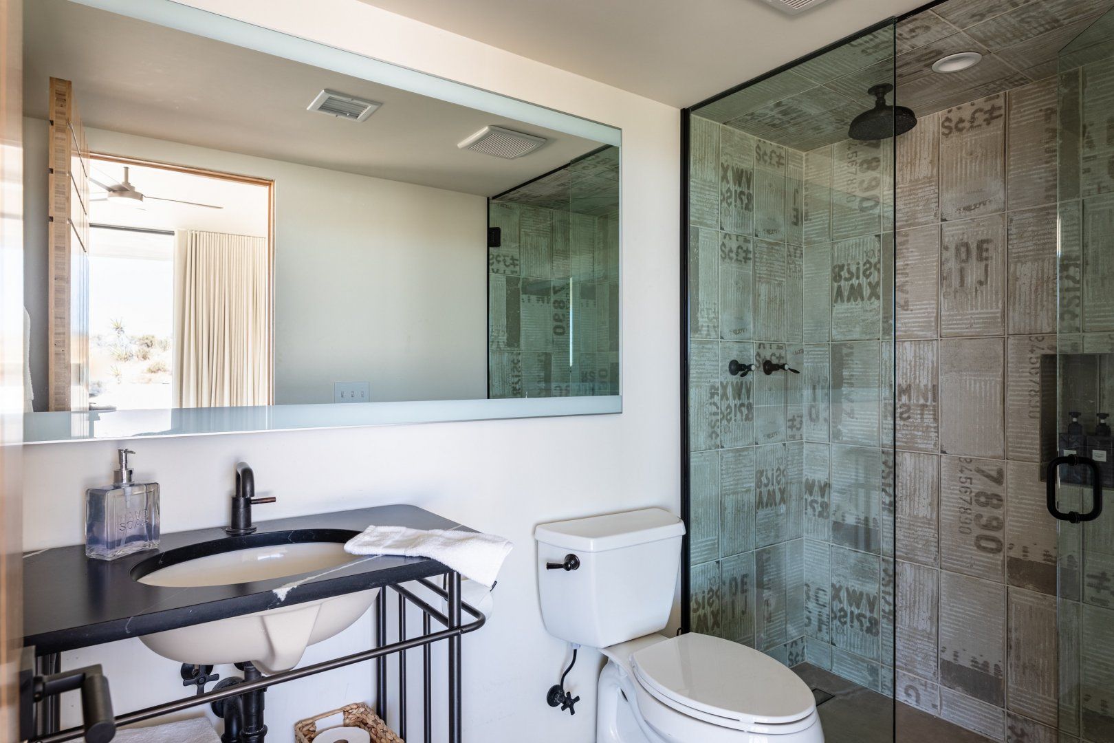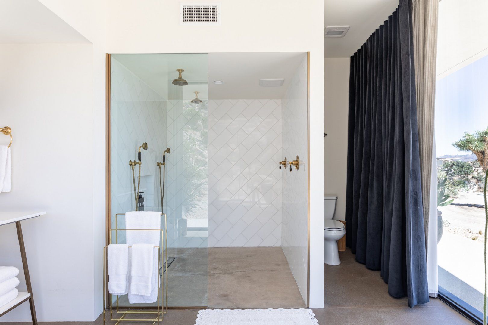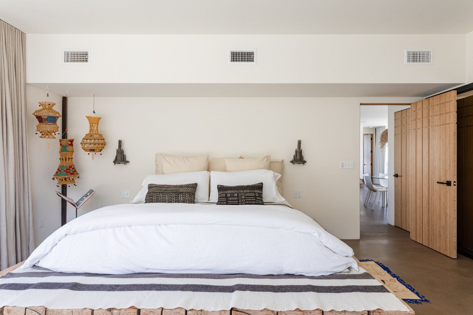 Nestled among large boulders and desert sands, this home is a true Joshua Tree getaway with a private saltwater pool/spa and outdoor shower. With no neighbours around, it's an escape from civilisation that's at one with nature and design. The floor-to-ceiling moving glass walls blur the lines between the indoors/outdoors, allowing you to take advantage of the surroundings at all times. Inside, works by local artists and famous designers merge, while the kitchen sets the scene for great meals. We could go on and on about this home – but you should really check it out for yourself!
