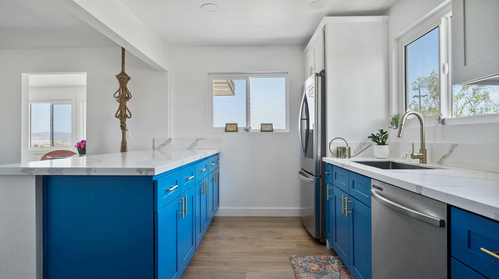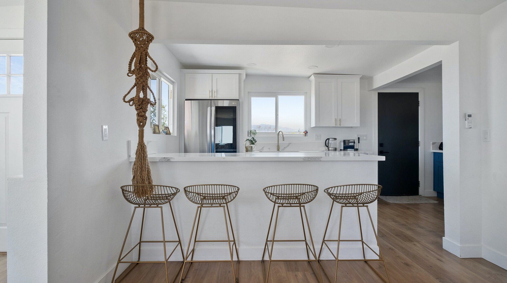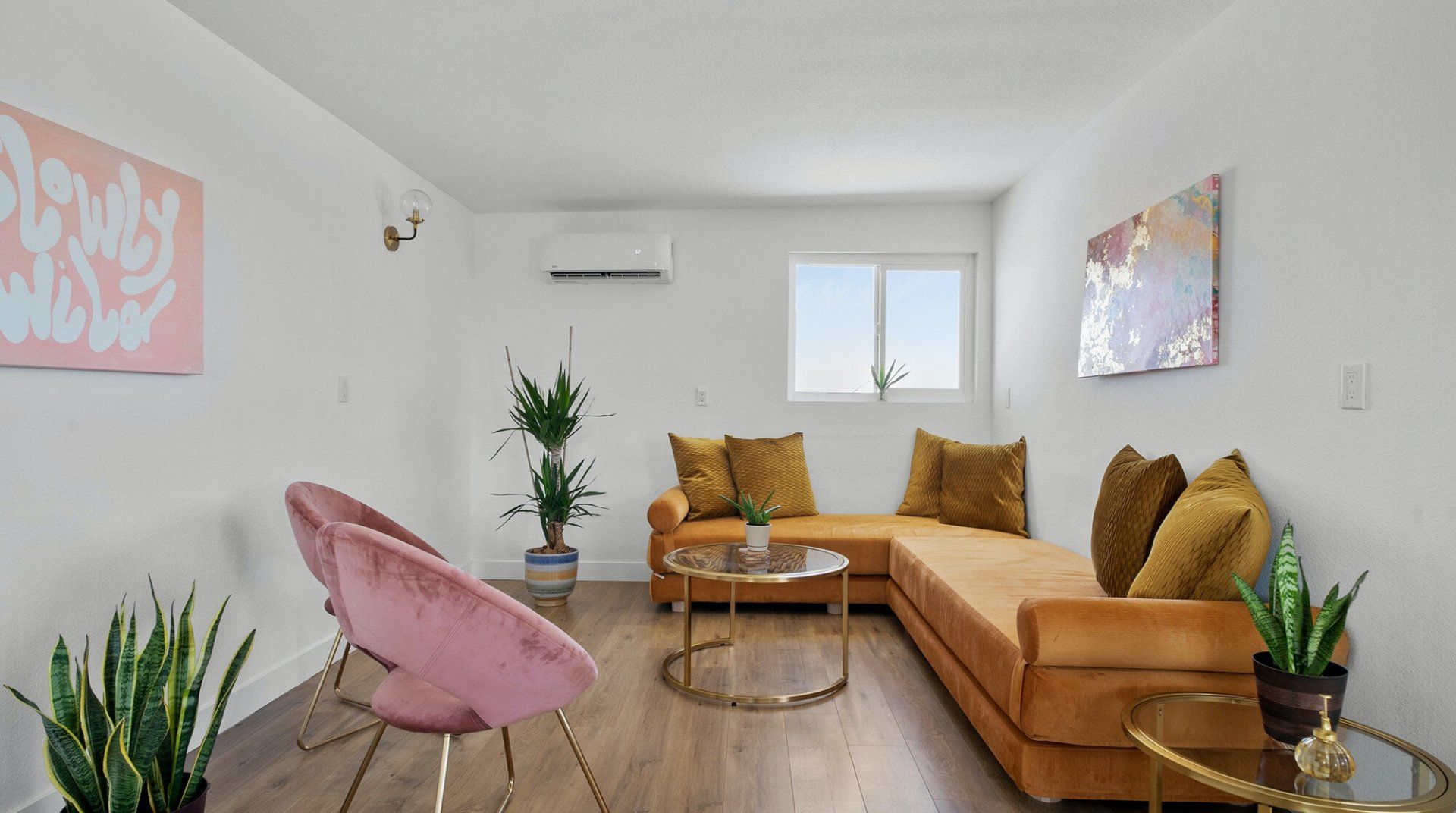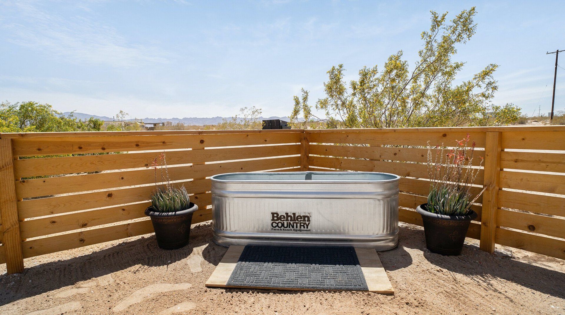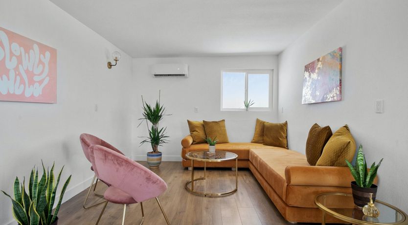 Turn down the dirt road to this dinky desert home and feel yourself unwind instantly. With rugged views in every direction, and arty touches like the mural by Pablo Damas and the custom glitter piano, it’s the kind of place where creative inspiration strikes. Maybe it’s the pastel sunrises, the painterly palette of the interior, or the huge blue skies. Either way, there's no better spot to take it all in. Spend your days exploring the unique landscapes of Joshua Park (twenty minutes’ drive), stargazing in the cowboy tub, or exploring your two acres of personal wilderness. As the sun sets, gather round the firepit with the ukulele and some marshmallows and watch the stars pop out one by one.