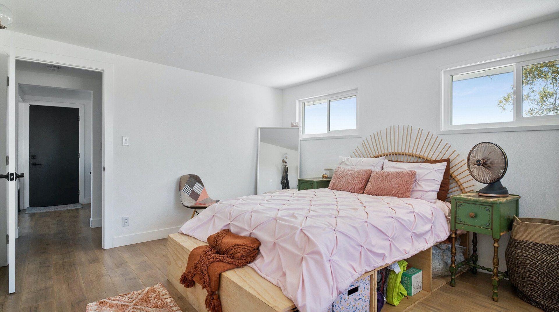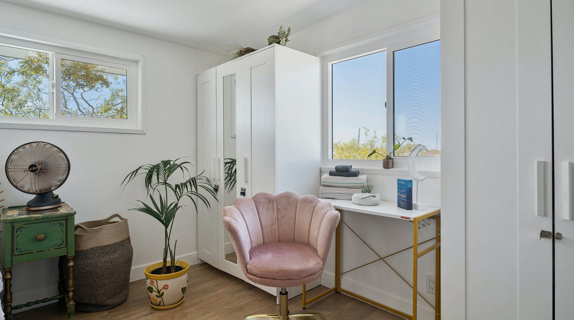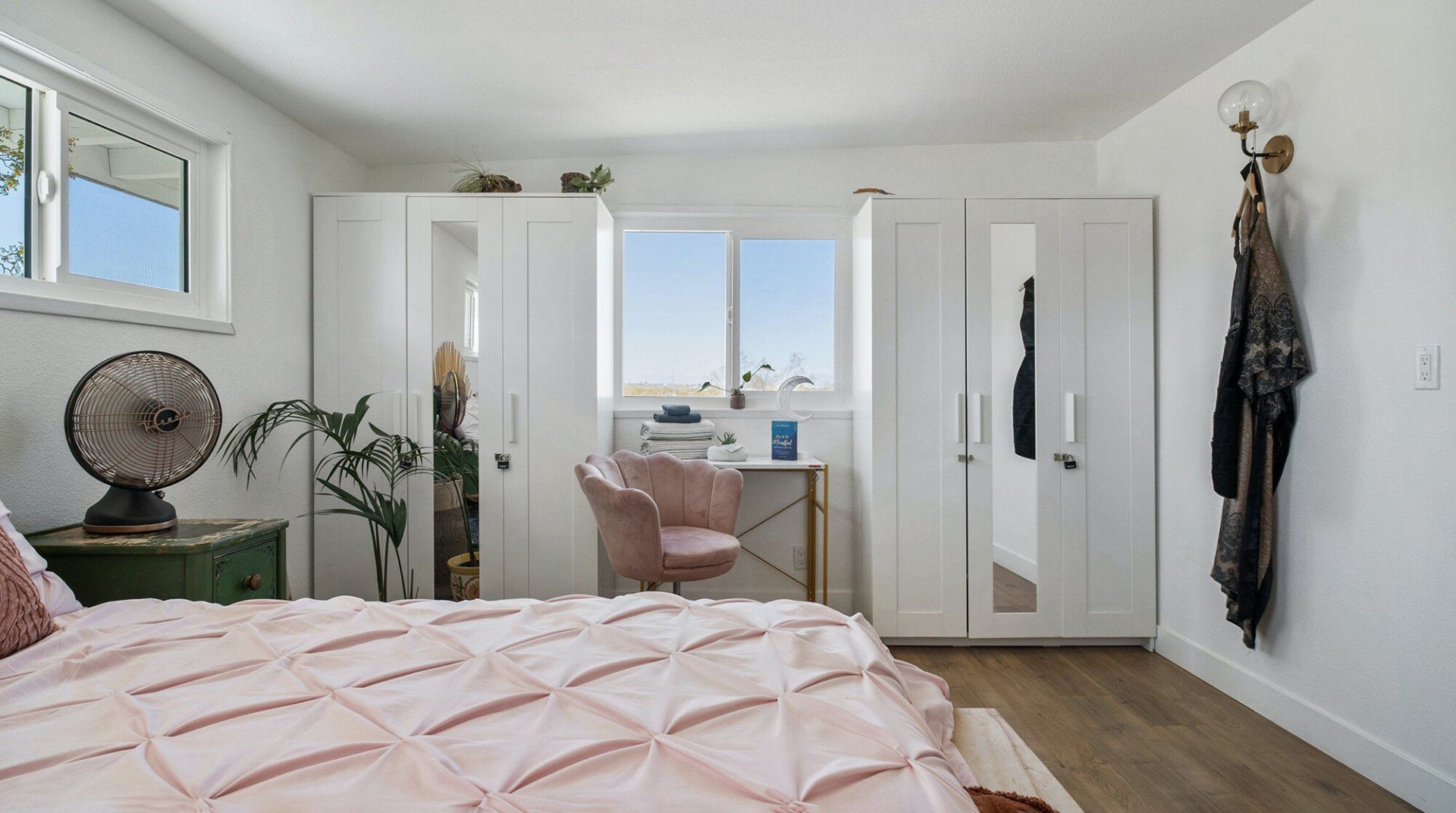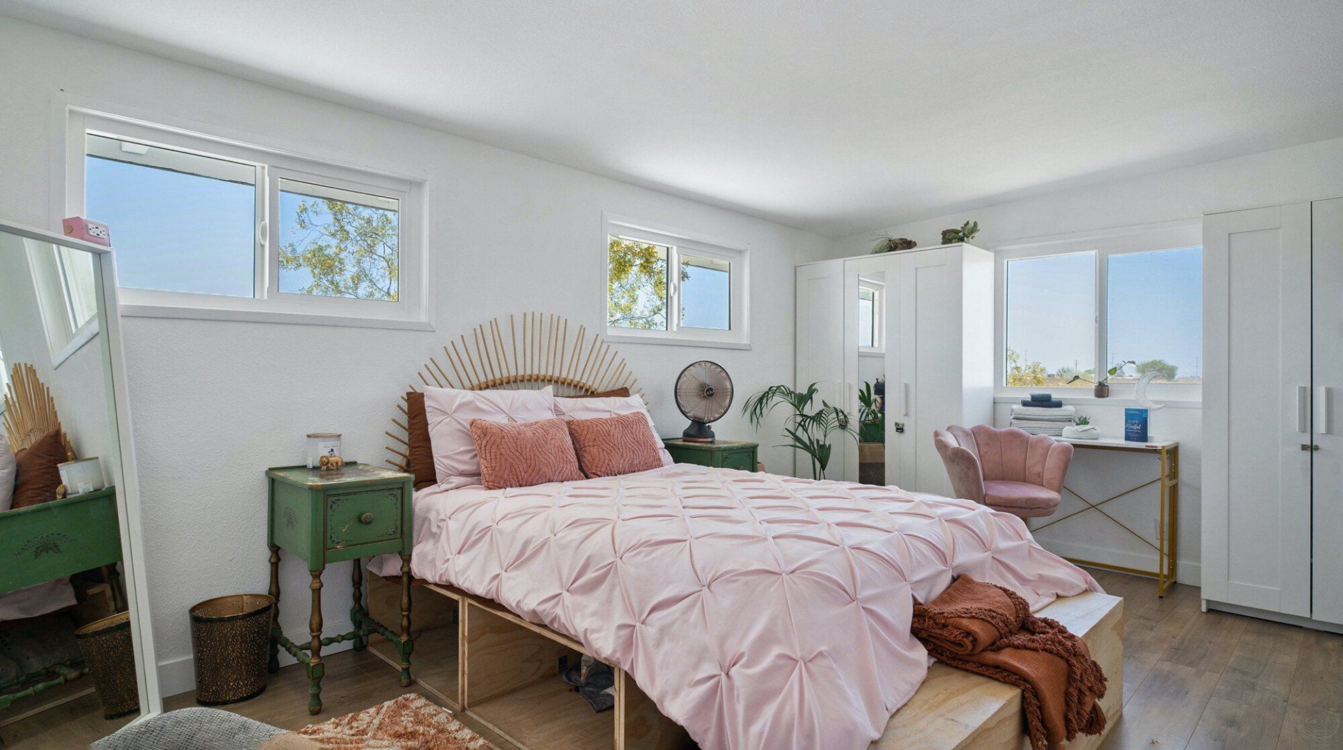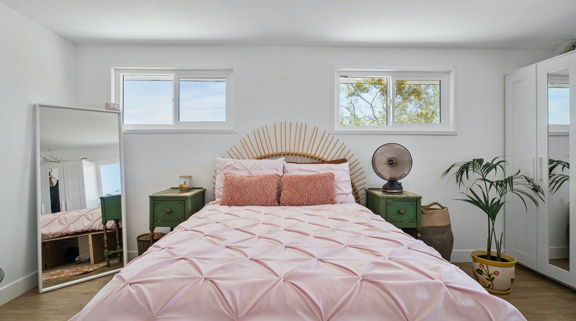 Turn down the dirt road to this dinky desert home and feel yourself unwind instantly. With rugged views in every direction, and arty touches like the mural by Pablo Damas and the custom glitter piano, it’s the kind of place where creative inspiration strikes. Maybe it’s the pastel sunrises, the painterly palette of the interior, or the huge blue skies. Either way, there's no better spot to take it all in. Spend your days exploring the unique landscapes of Joshua Park (twenty minutes’ drive), stargazing in the cowboy tub, or exploring your two acres of personal wilderness. As the sun sets, gather round the firepit with the ukulele and some marshmallows and watch the stars pop out one by one.