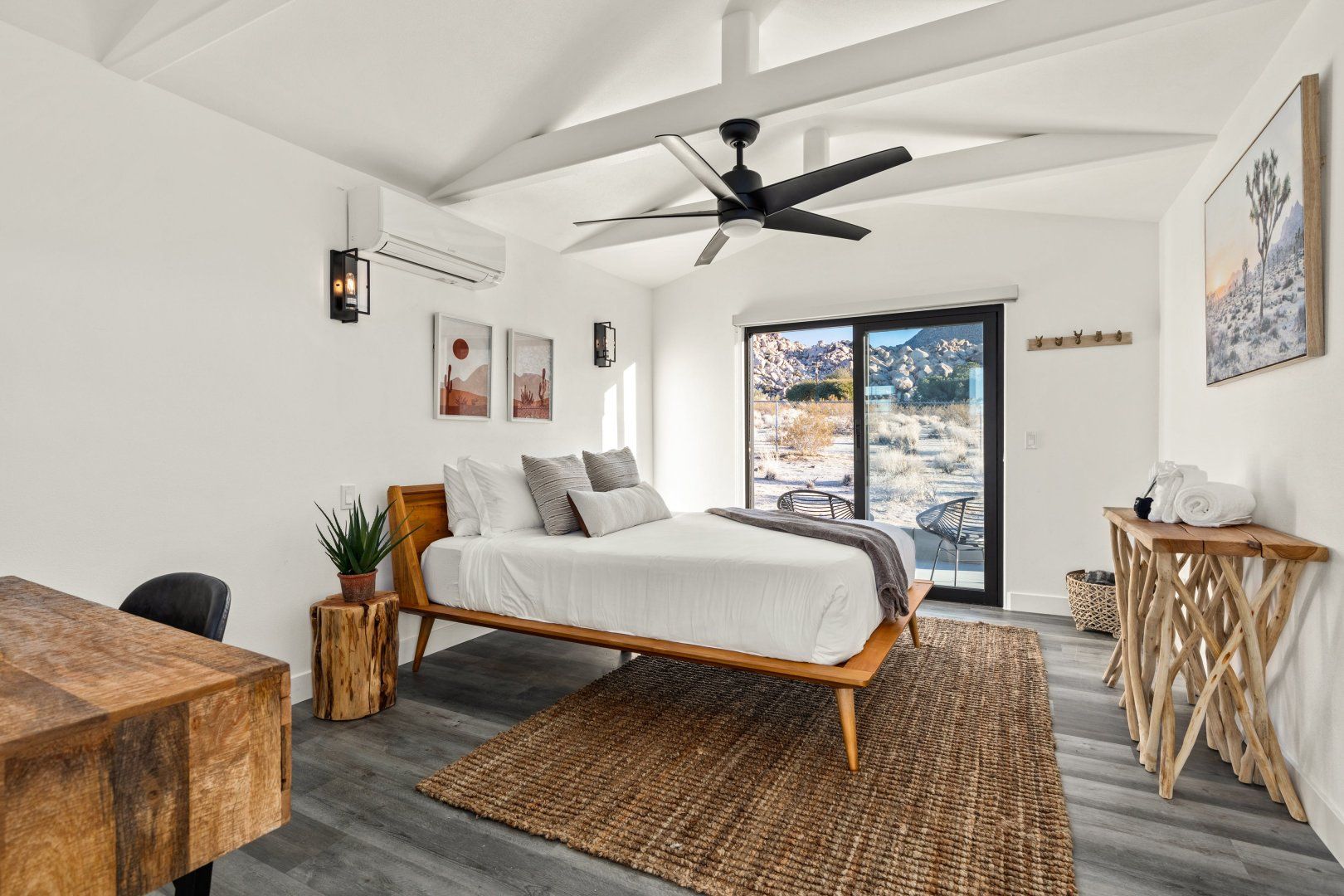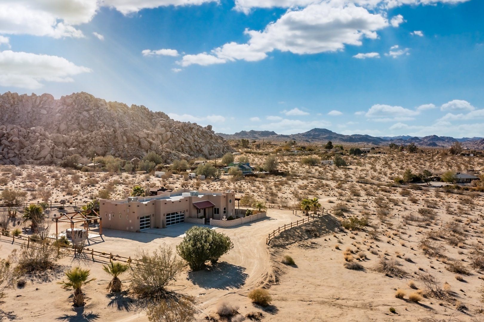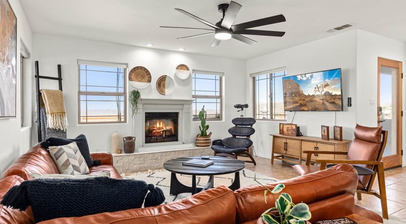 This home can be found in the south of Joshua Tree, an eight-minute drive downtown. It’s blessed with incredible panoramas from high on the mesa, taking in the dramatic mountains of the Joshua Tree National Park as well as a backdrop of the Big Bear Mountains to the west. Hikers will love exploring Indian Cove, which is ten minutes away, and it takes twelve minutes to drive to downtown 29 Palms – for an escape that feels as though it’s in the middle of nowhere, this home is remarkably well situated.