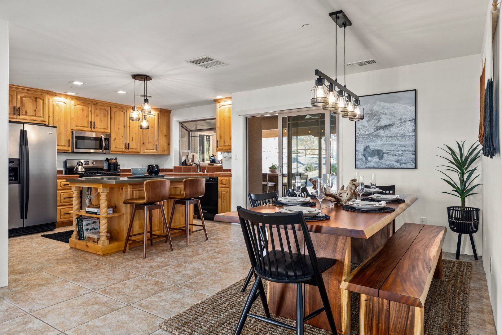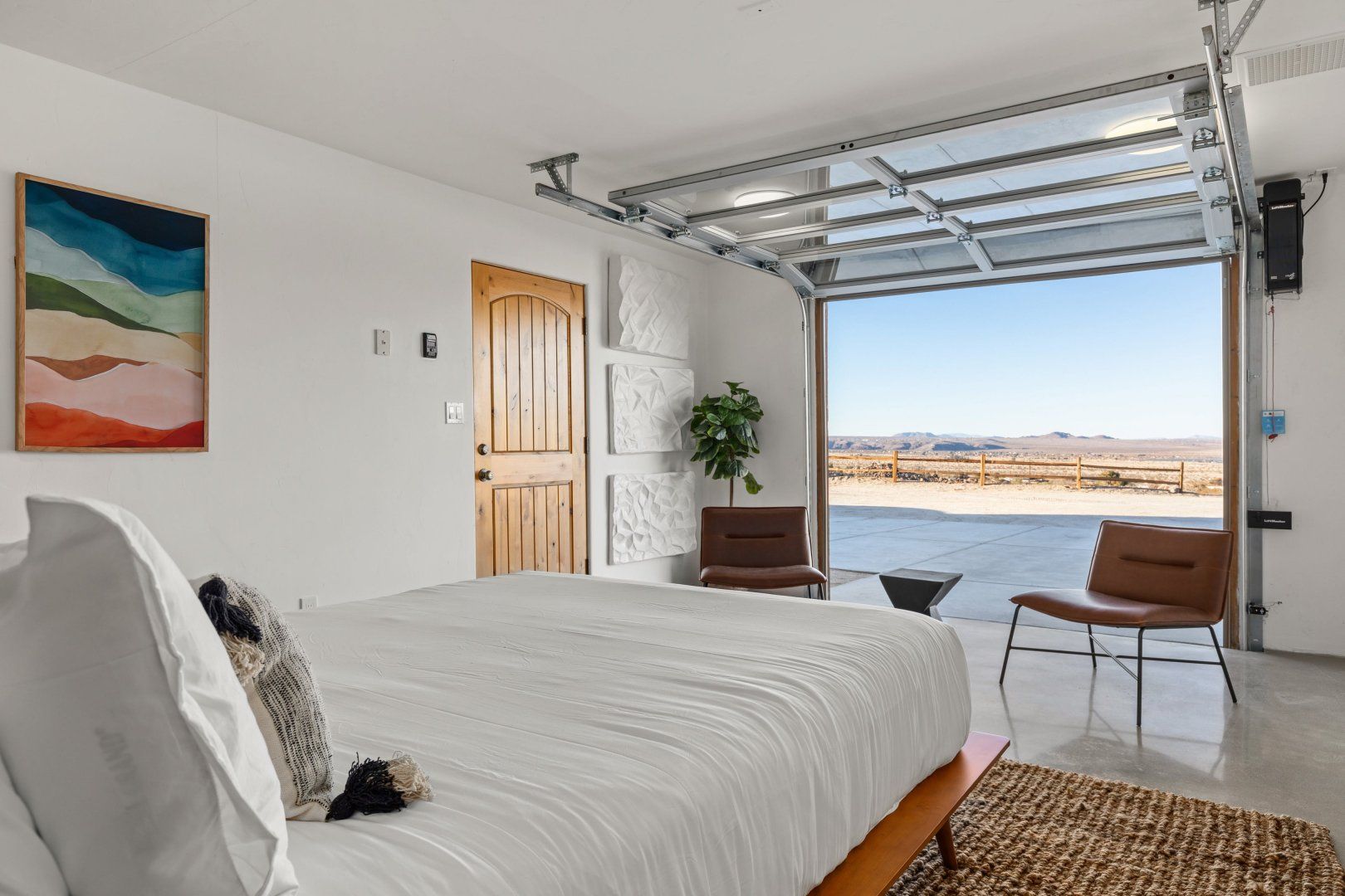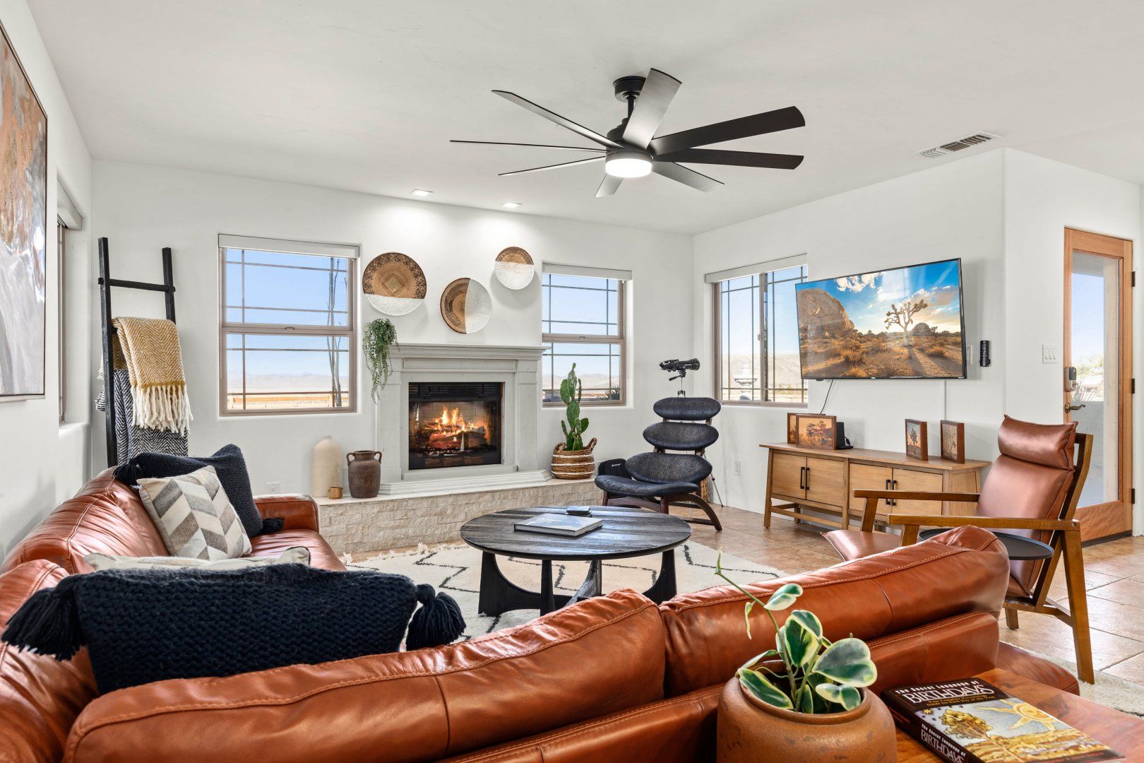 This home can be found in the south of Joshua Tree, an eight-minute drive downtown. It’s blessed with incredible panoramas from high on the mesa, taking in the dramatic mountains of the Joshua Tree National Park as well as a backdrop of the Big Bear Mountains to the west. Hikers will love exploring Indian Cove, which is ten minutes away, and it takes twelve minutes to drive to downtown 29 Palms – for an escape that feels as though it’s in the middle of nowhere, this home is remarkably well situated.