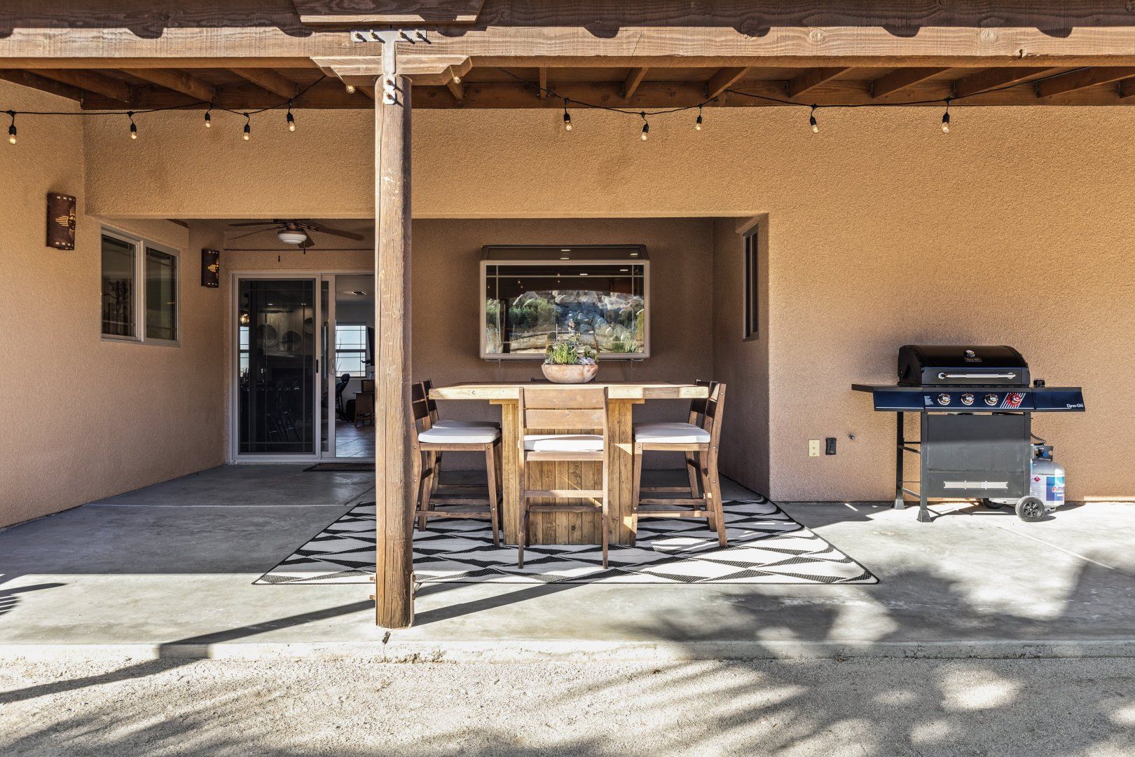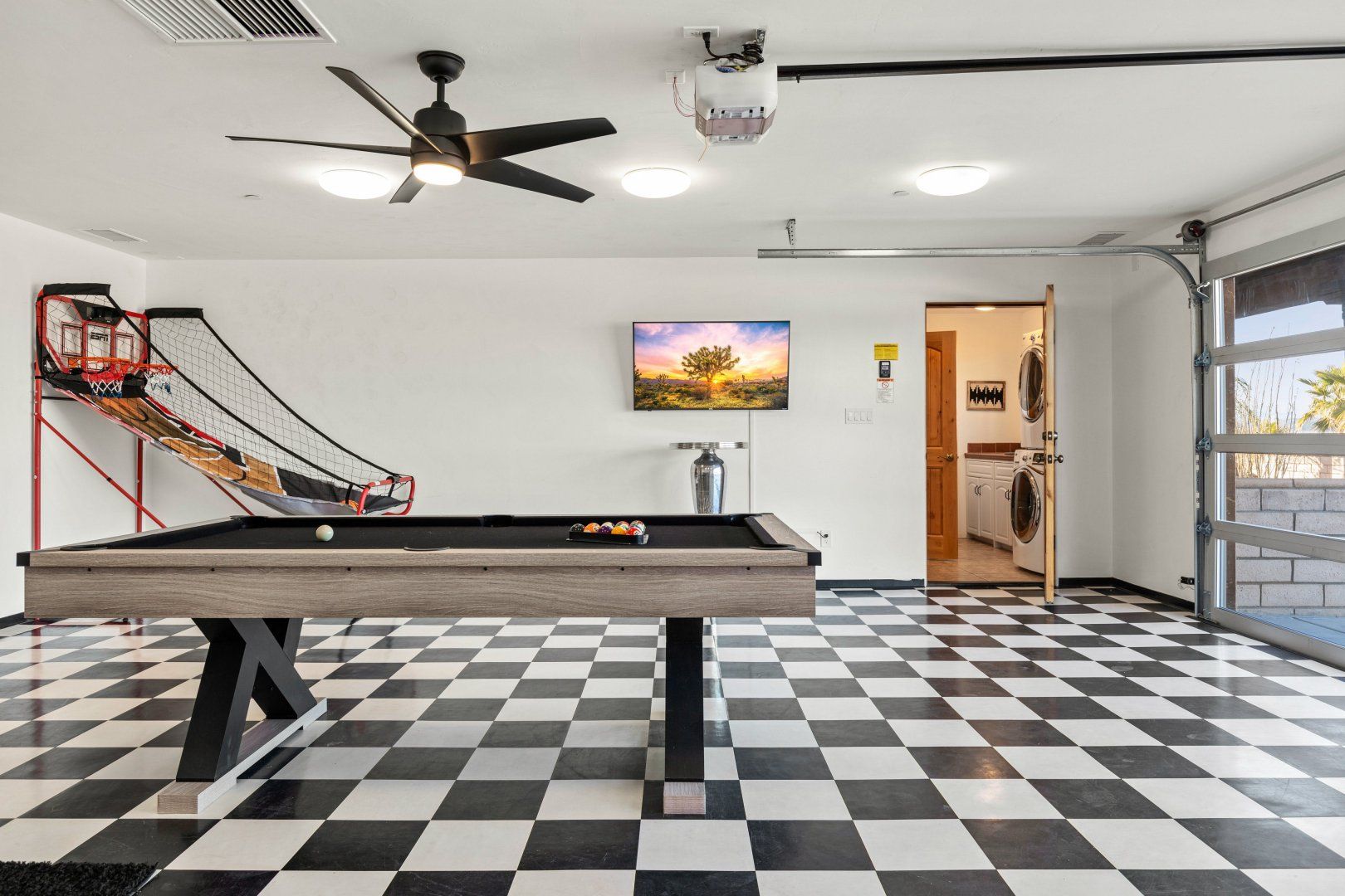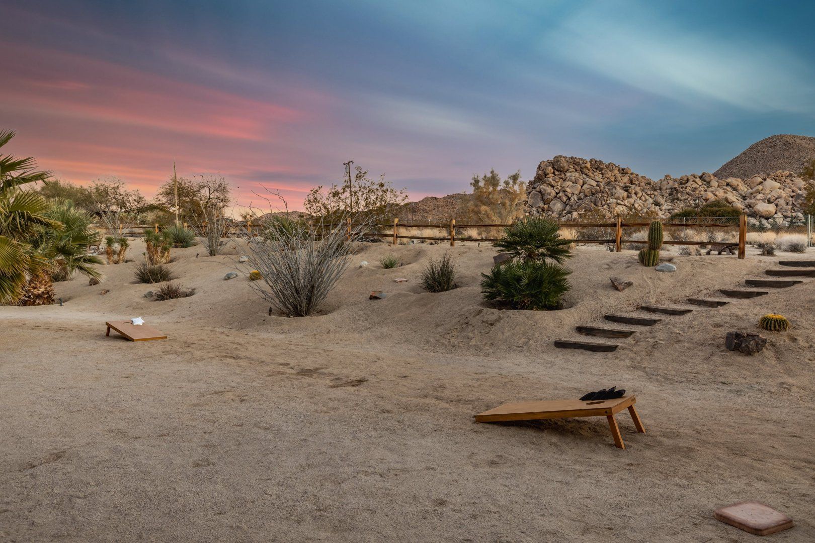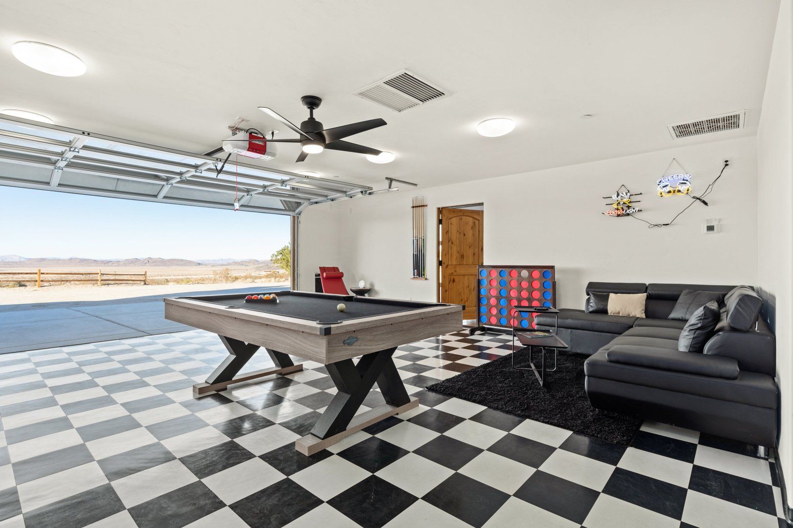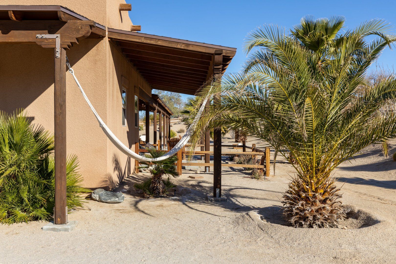 A custom-built estate set on five acres, this home is set to impress. It’s a remarkable space, with everything you might wish for. Beautiful bedrooms look out onto the desert, giving guests a glorious view each morning. A games room boasts a pool table and giant Connect Four, and there are also garden games in the landscaped grounds. Hammocks sway gently in the breeze, beckoning you to doze in the afternoon sun.