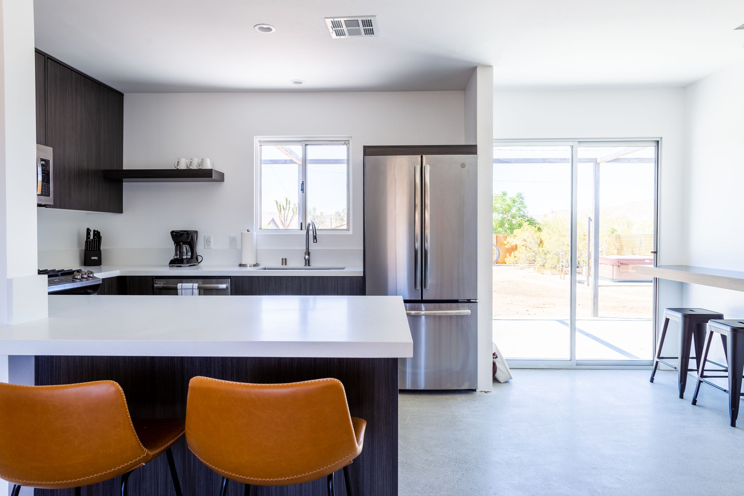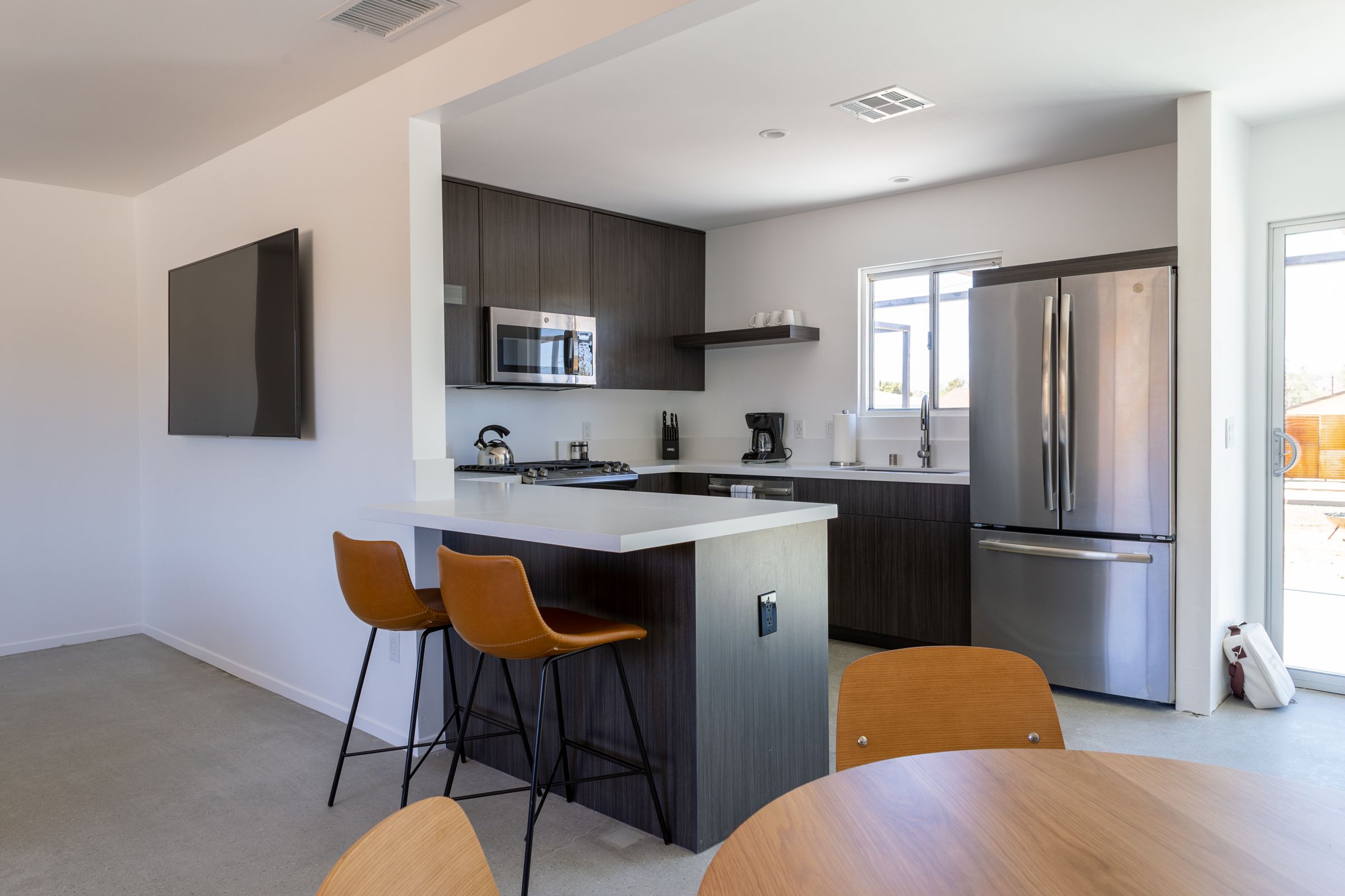 Private and unassuming, this home is perfectly positioned within walking distance of the Joshua Tree village and a short drive away from the west entrance to the national park. Modern and minimalist, this home has a warm and welcoming feel from the moment you step inside. Partake in a quiet game on your private bocce court before you head out to explore the nearby park's trails, wildlife and otherworldly rock formations, then return to soothe aching muscles while admiring the wilderness views from the hot tub. The fire pit provides an ideal spot for alfresco dining or sipping cocktails as the sun sets. If you want to explore further afield, there's no dearth of day trips from your home, with Palm Springs just a 40-minute journey away.