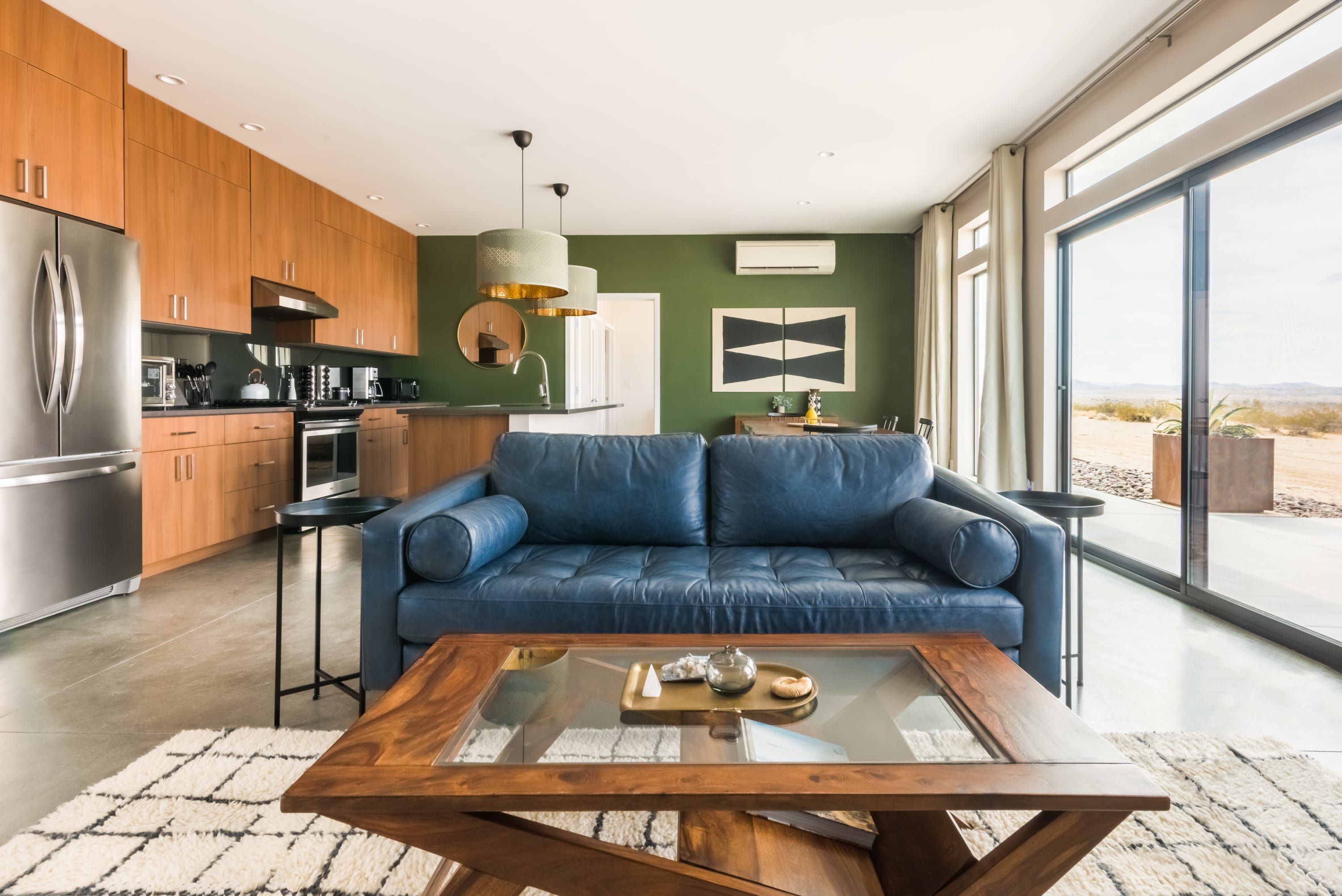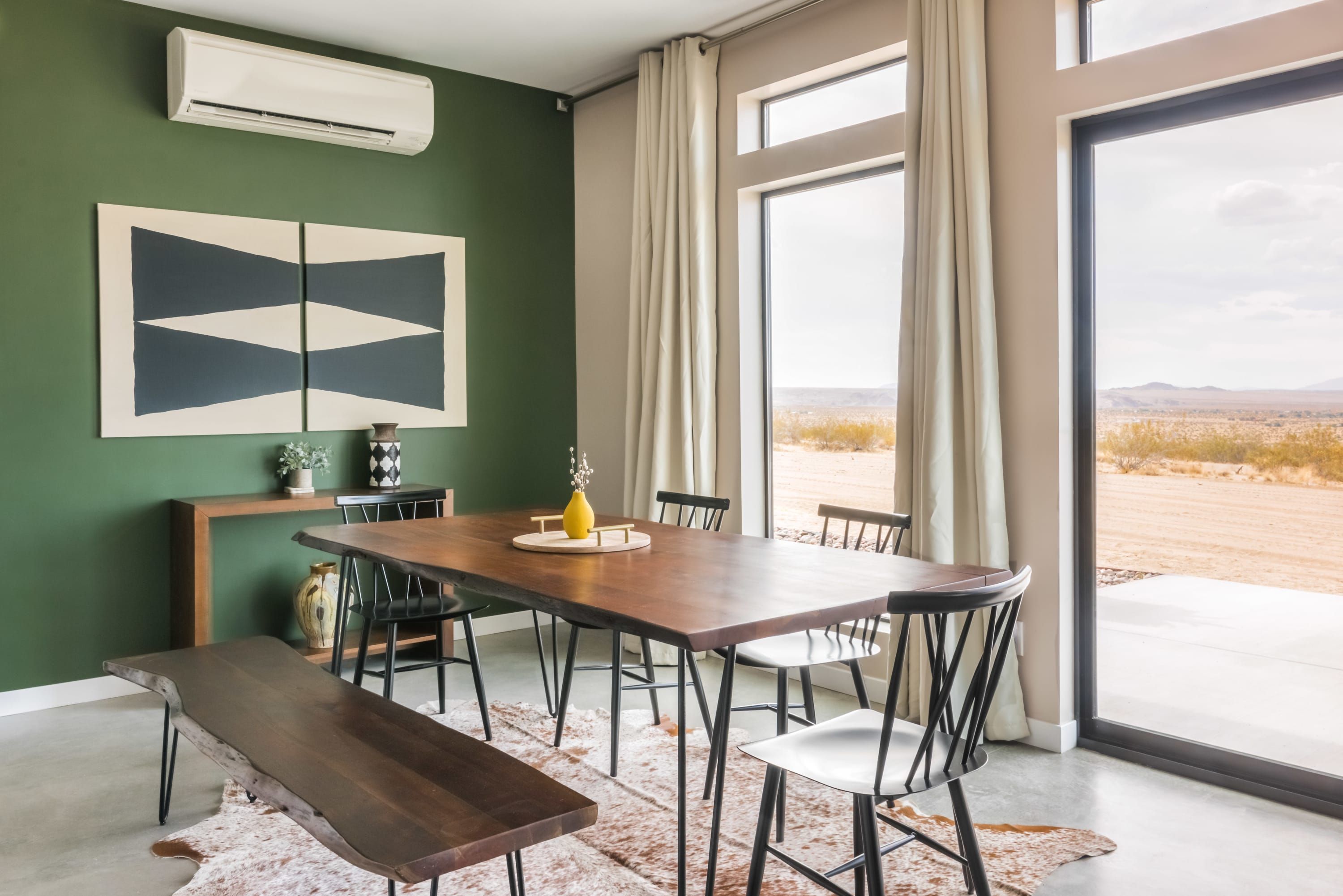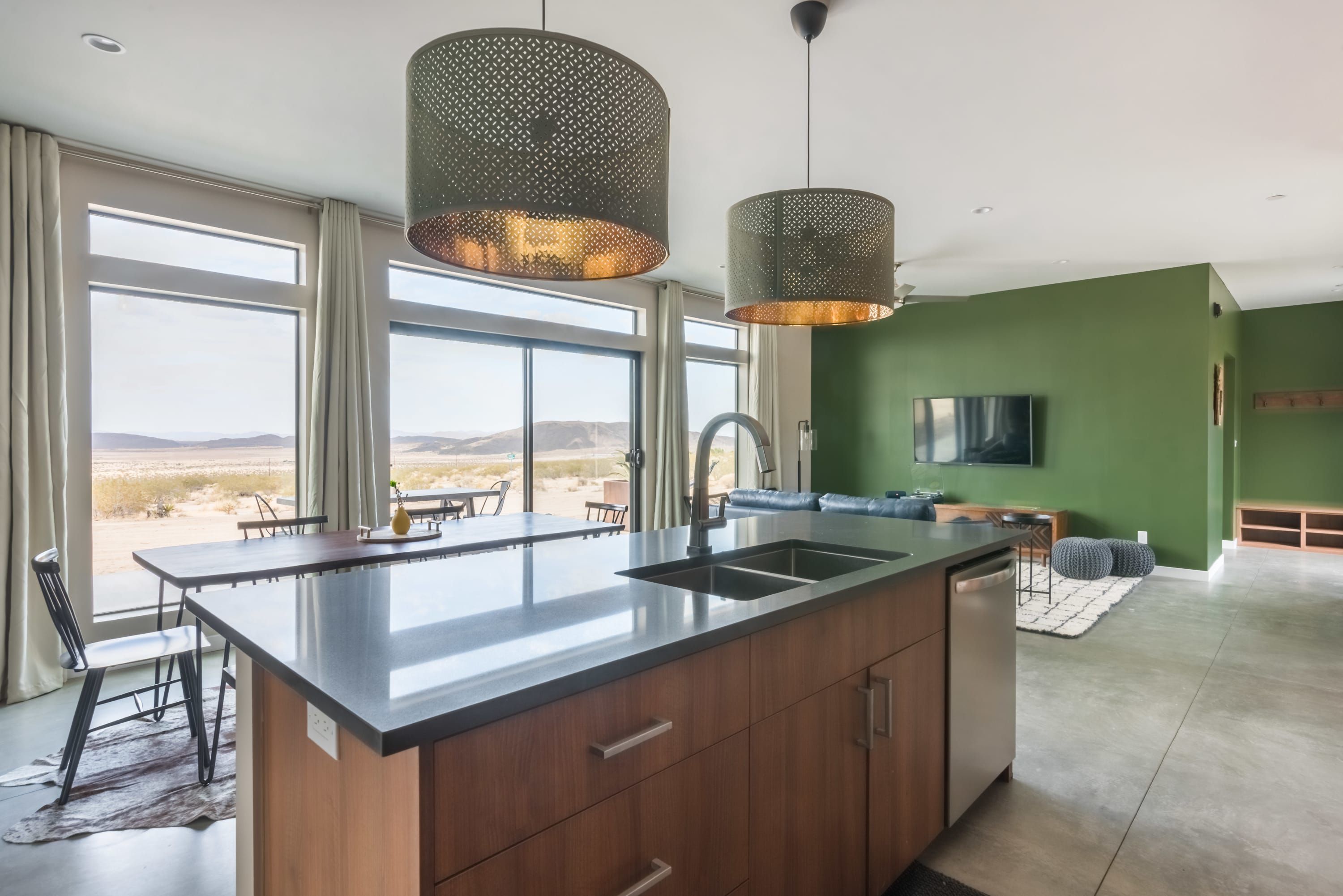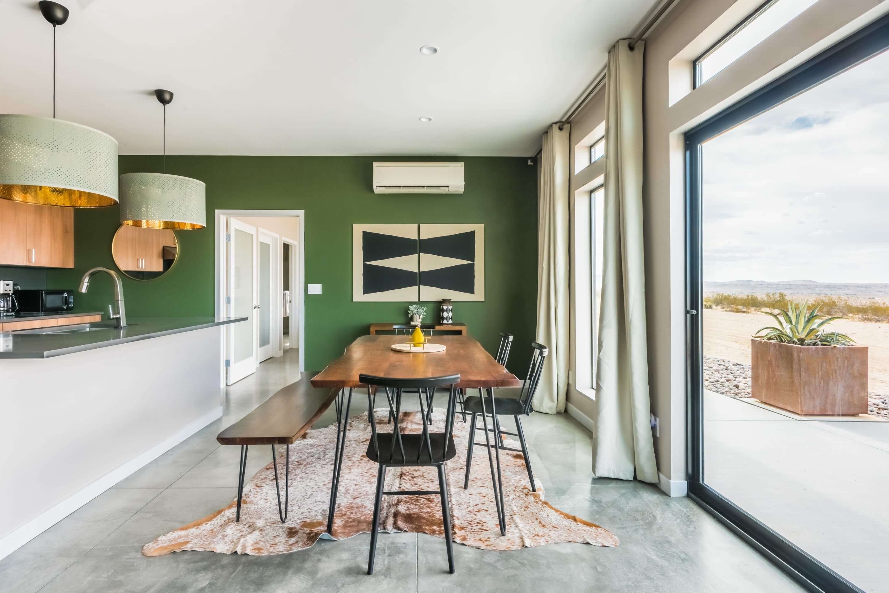 Leave the world behind with an off-grid retreat in breathtaking Joshua Tree. Powered entirely by solar, this eco-friendly desert home is a real escape from the everyday. Your host here is an artist and their attention to detail is felt in every corner of this home, from the mid-century modern furniture to the clean architectural lines and striking wall murals. Practise yoga, listen to vinyl, or work on a creative project of your own in the open-plan living space – the home’s seclusion and panoramic views of the desert landscape are perfect for sparking inspiration. Right by the entrance to the National Park, Joshua Tree is on your doorstep for hiking, climbing, and exploring the unique landscape. As the sun goes down (and sunsets here are a must), light up the fire pit and gather for storytelling and socialising beneath the magnificent desert stars.