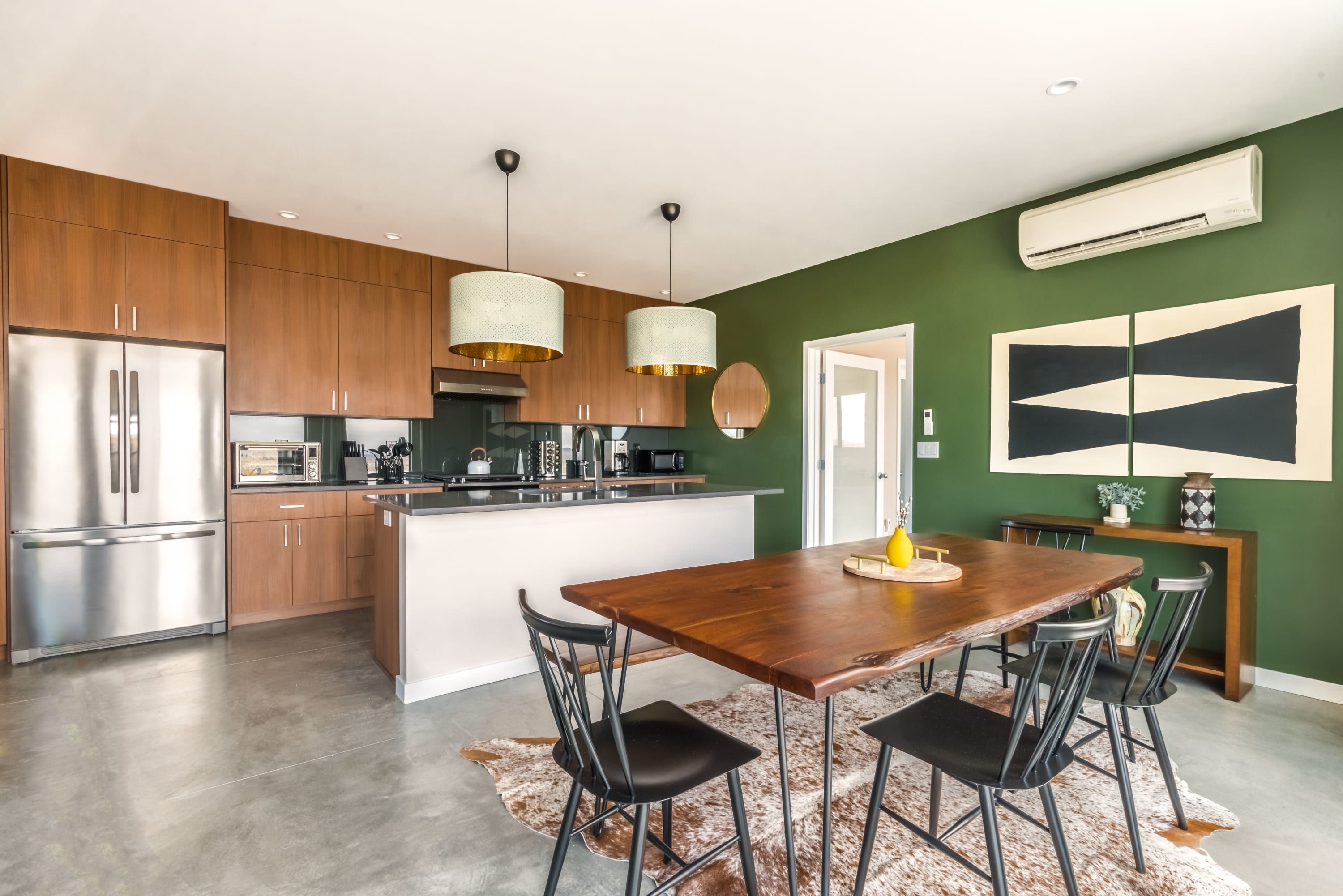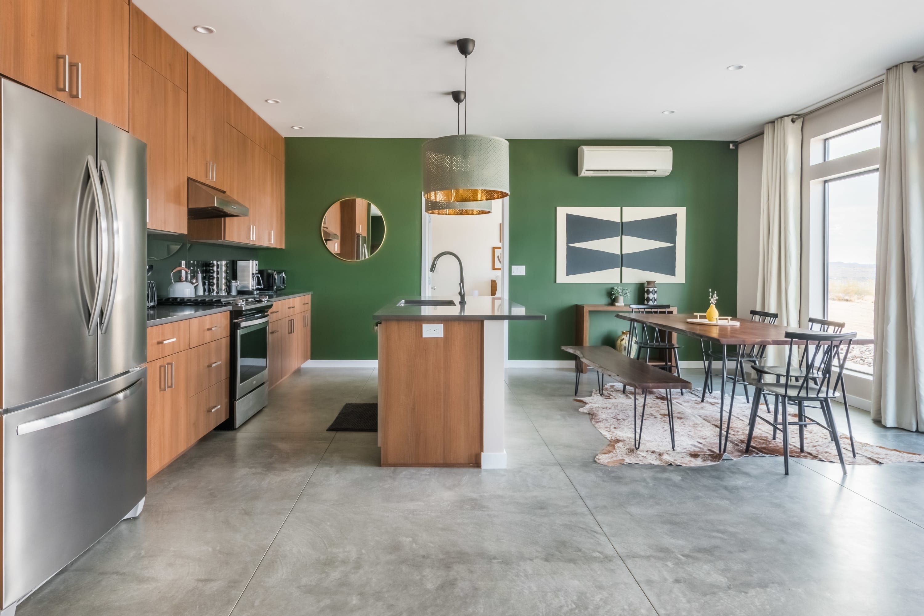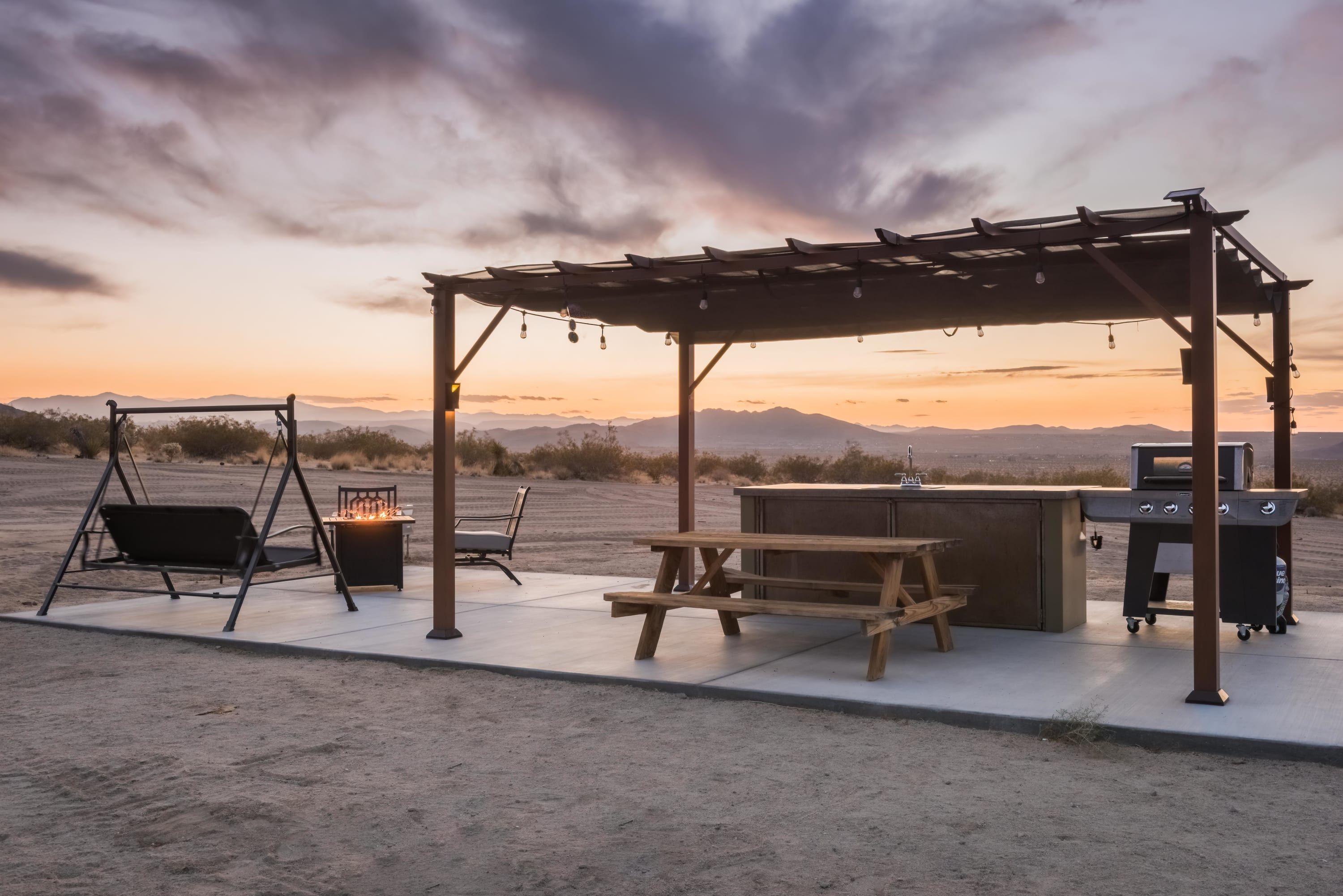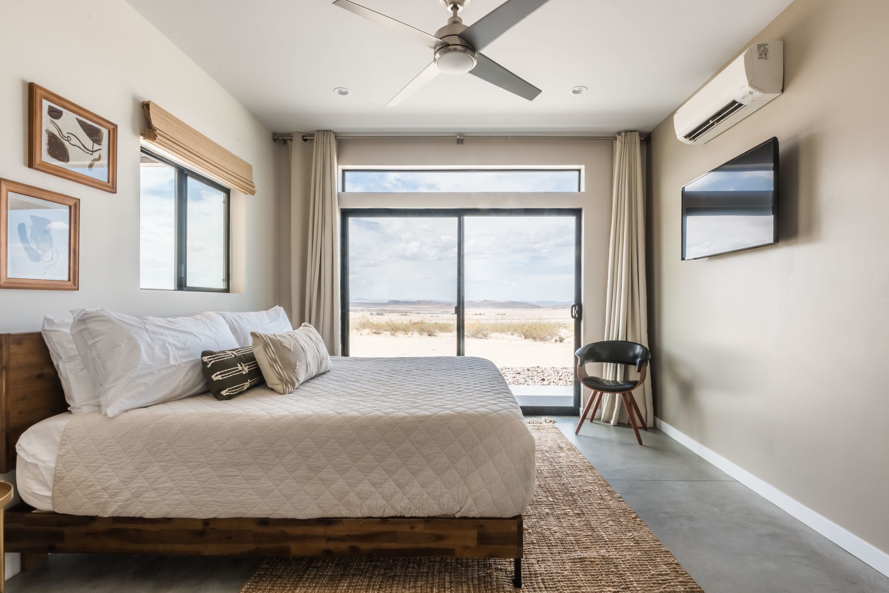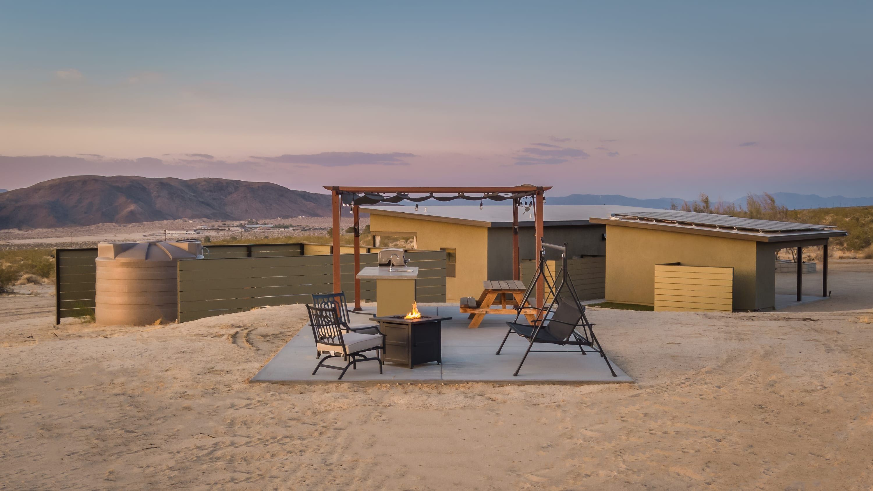 Leave the world behind with an off-grid retreat in breathtaking Joshua Tree. Powered entirely by solar, this eco-friendly desert home is a real escape from the everyday. Your host here is an artist and their attention to detail is felt in every corner of this home, from the mid-century modern furniture to the clean architectural lines and striking wall murals. Practise yoga, listen to vinyl, or work on a creative project of your own in the open-plan living space – the home’s seclusion and panoramic views of the desert landscape are perfect for sparking inspiration. Right by the entrance to the National Park, Joshua Tree is on your doorstep for hiking, climbing, and exploring the unique landscape. As the sun goes down (and sunsets here are a must), light up the fire pit and gather for storytelling and socialising beneath the magnificent desert stars.