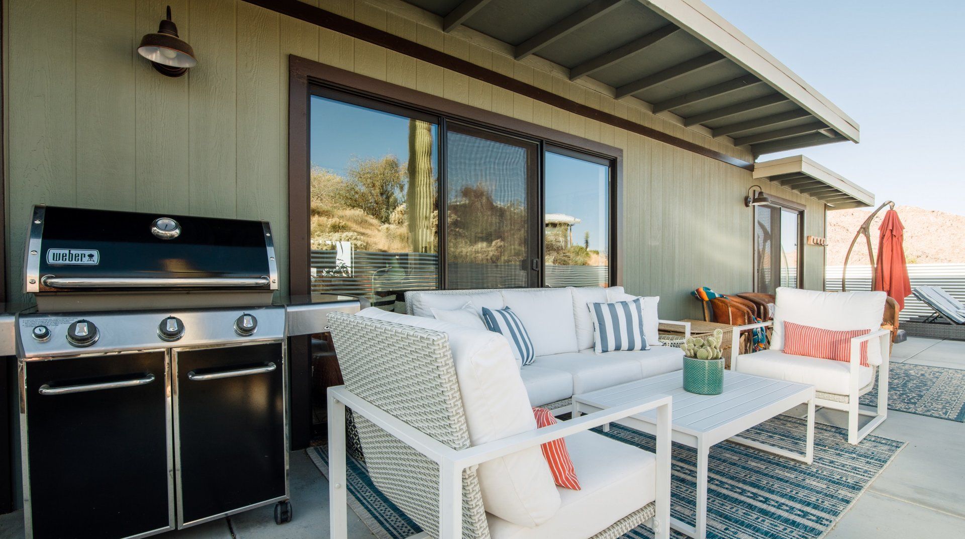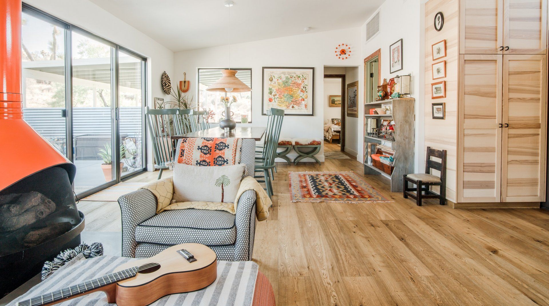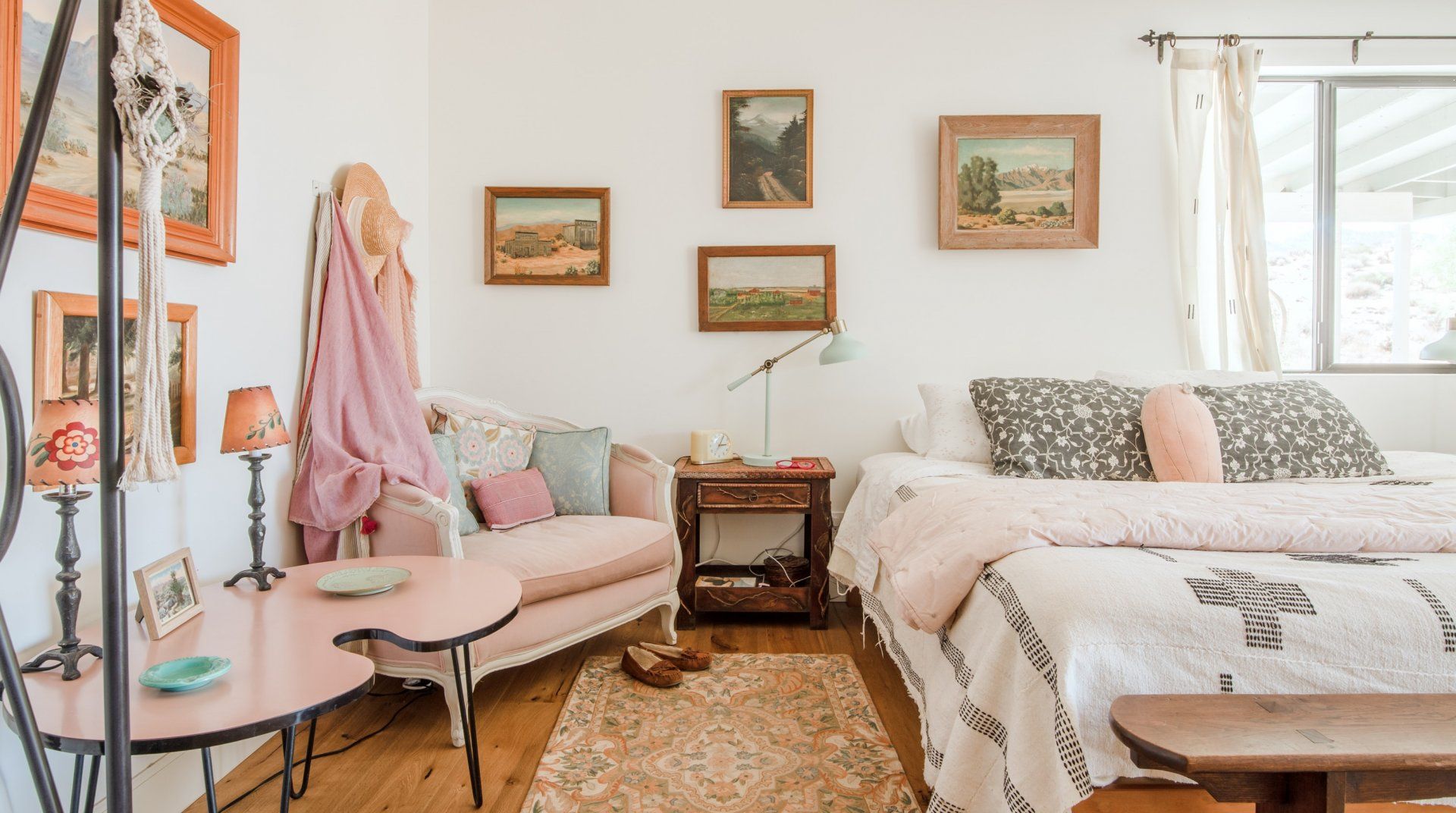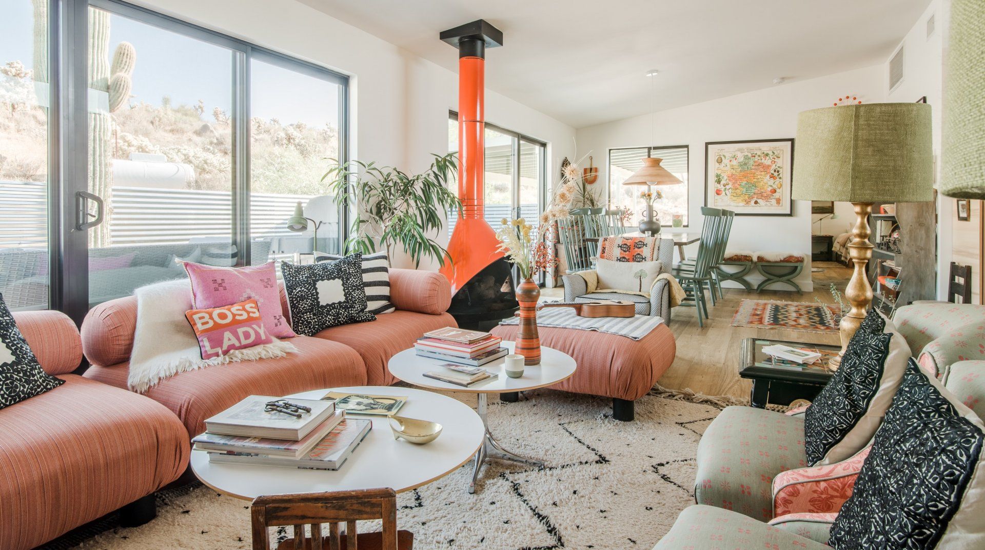 A mid-century masterpiece with personality to spare, this home hidden away in the desert is a spectacular stay. Every room here has been curated as if it were a museum, and many of the vintage trinkets and treasures belong to the home's owner, celebrated designer Julia Chasman. The living room is the heart of the buzz, warm and rich thanks to the striking orange-red woodburner, old piano, Art Deco lampshades and ikat rugs. The delightful bedrooms have a Western country feel with large, plush beds, framed storybook illustrations and patchwork quilts, while the en-suite bathrooms feature magnificent free-standing roll-top bathtubs and patterned-tiled walk-in showers. And the outside is just as much as a masterpiece as the inside. On the deck take in those uninterrupted views of the Joshua Tree desert, before jumping into the hot tub - best enjoyed at nightfall where you might lucky enough to spot a shooting star.