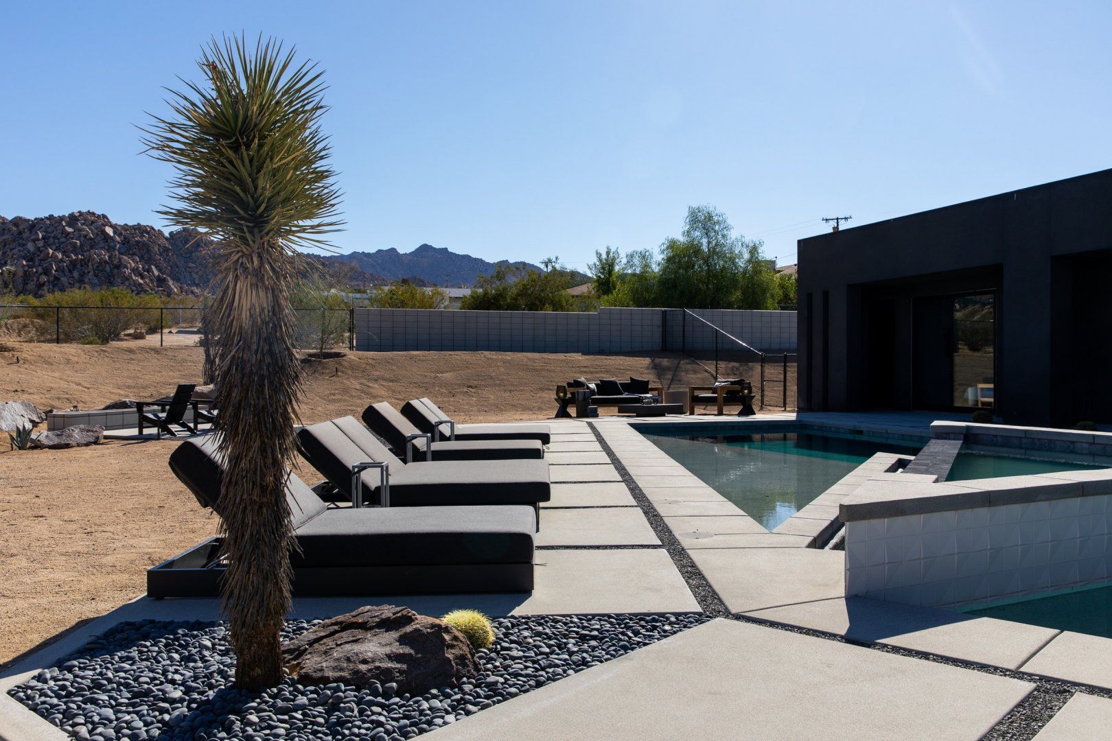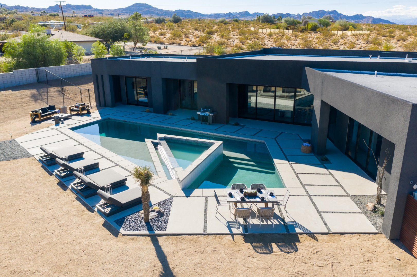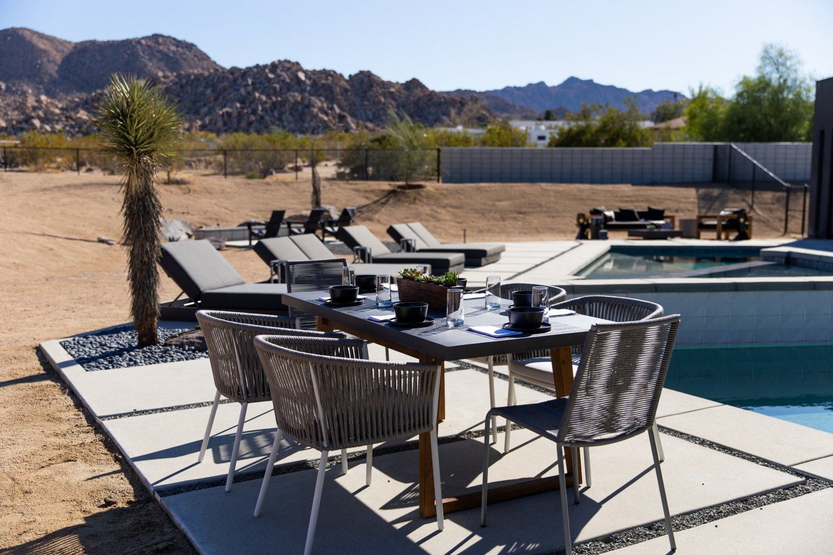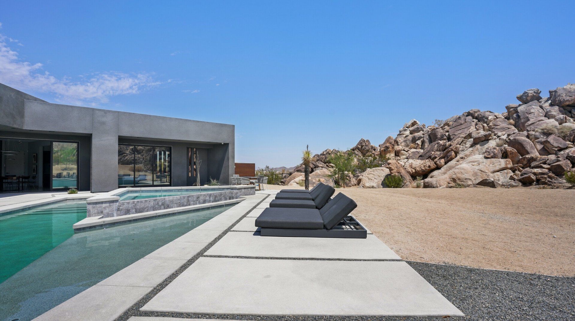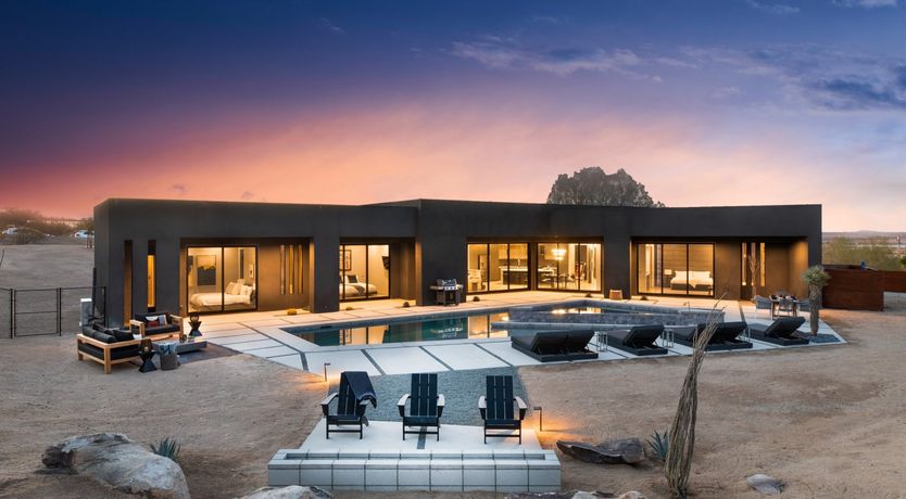 This Joshua Tree home is a gorgeous piece of modern architecture, set in over an acre of land in the middle of the desert. It offers great access to the park, as well as other hiking trails, and while you shouldn’t ignore that, the home is a destination in itself. The views of the landscape are probably the first things that you’ll notice, and with good reason. On top of that, pools, hot tubs, and fire pits aren’t unusual in and around Joshua Tree, but rarely do you come across examples that have so much style. Each amenity fits within the aesthetic of the larger home in a deliberate, measured way and a dedicated hospitality concierge is on hand to help you arrange anything you may want or need. We can go on to list more features, but even that wouldn’t capture the grandeur of the home. Relaxing beside the pool as the sun sets or swapping stories around the fire pit under the stars are the kind of experiences you won’t forget in a hurry.