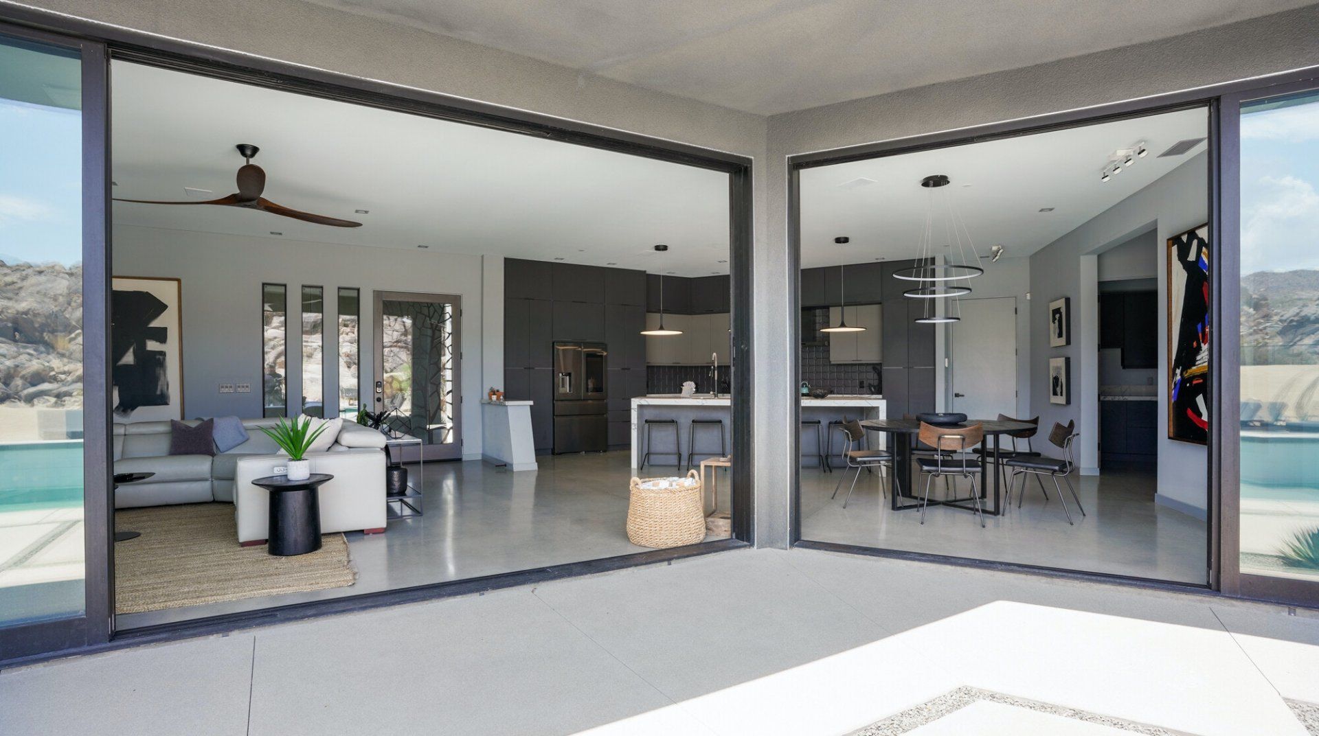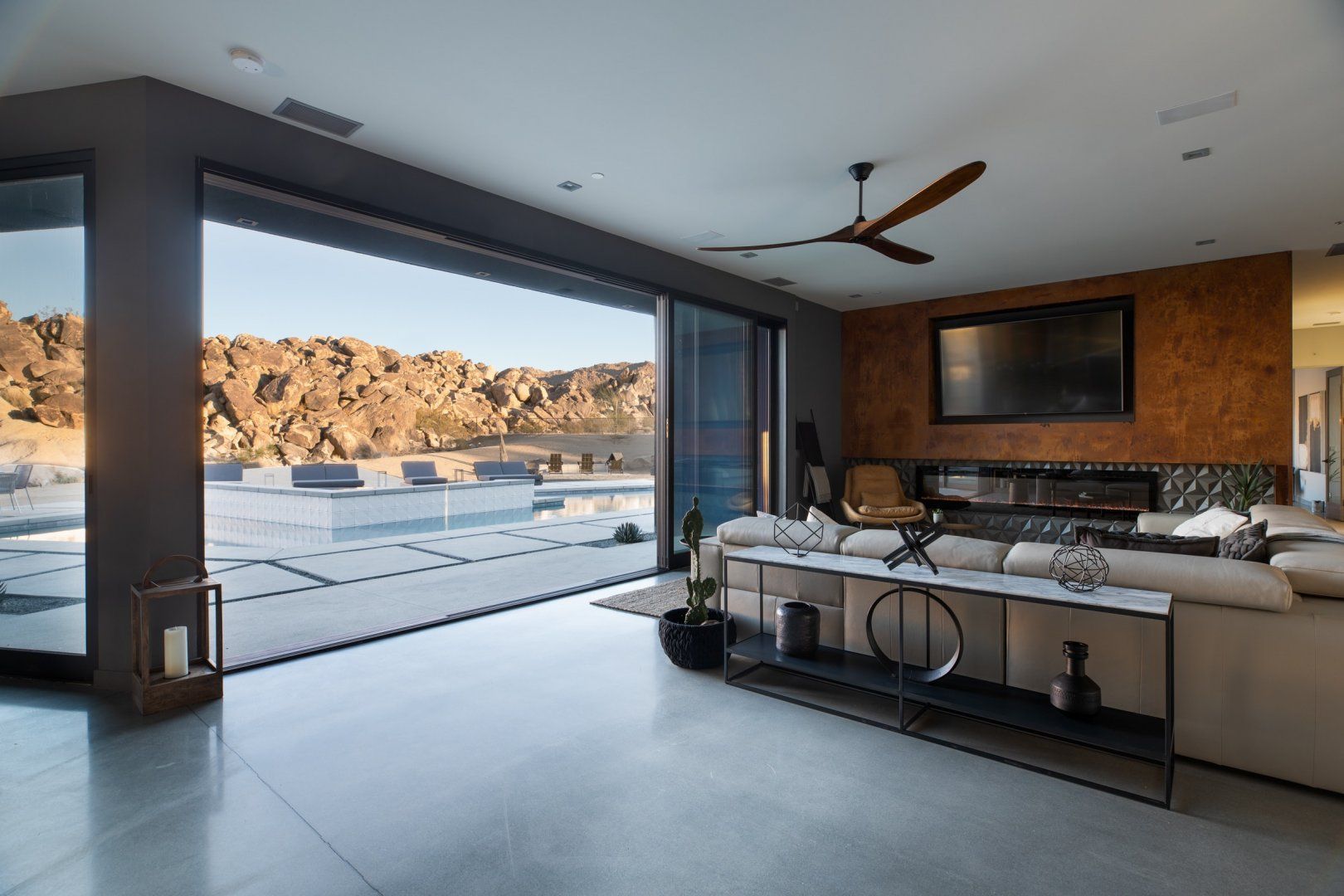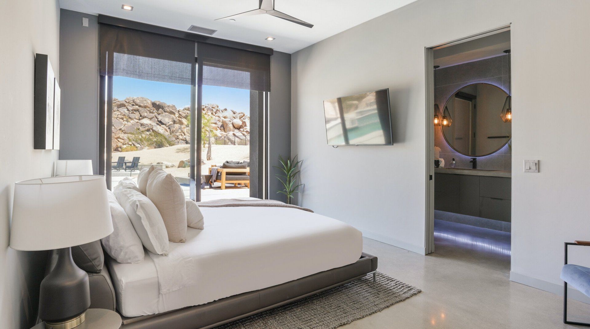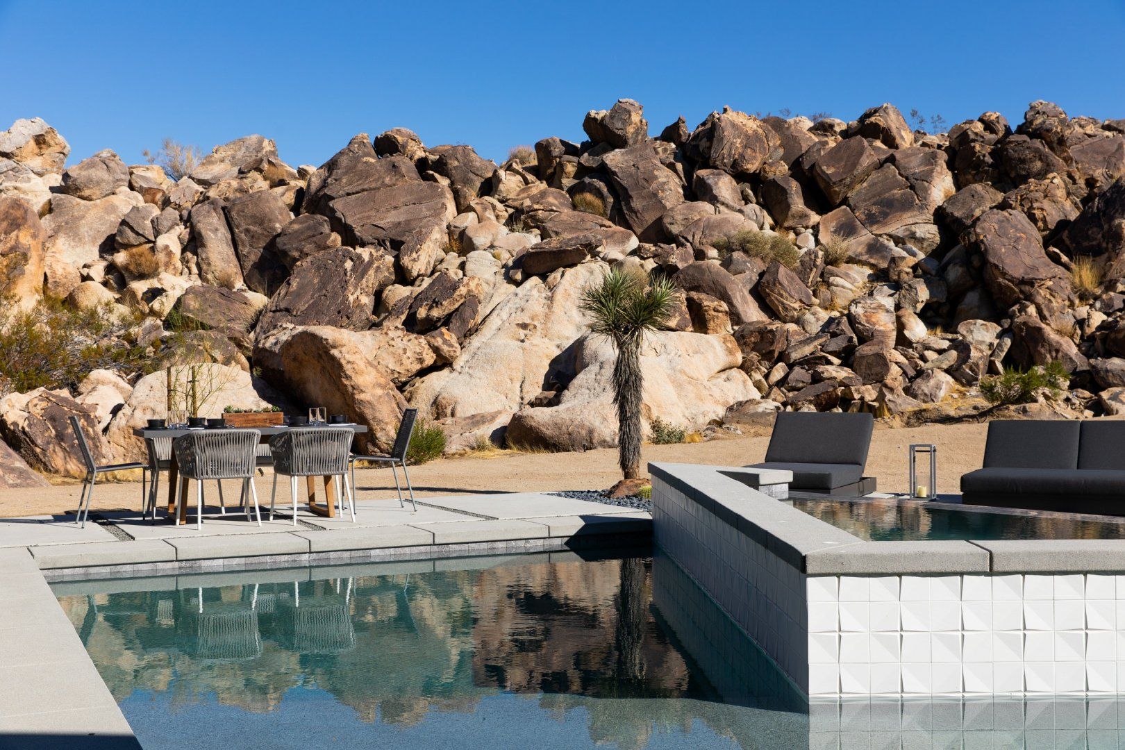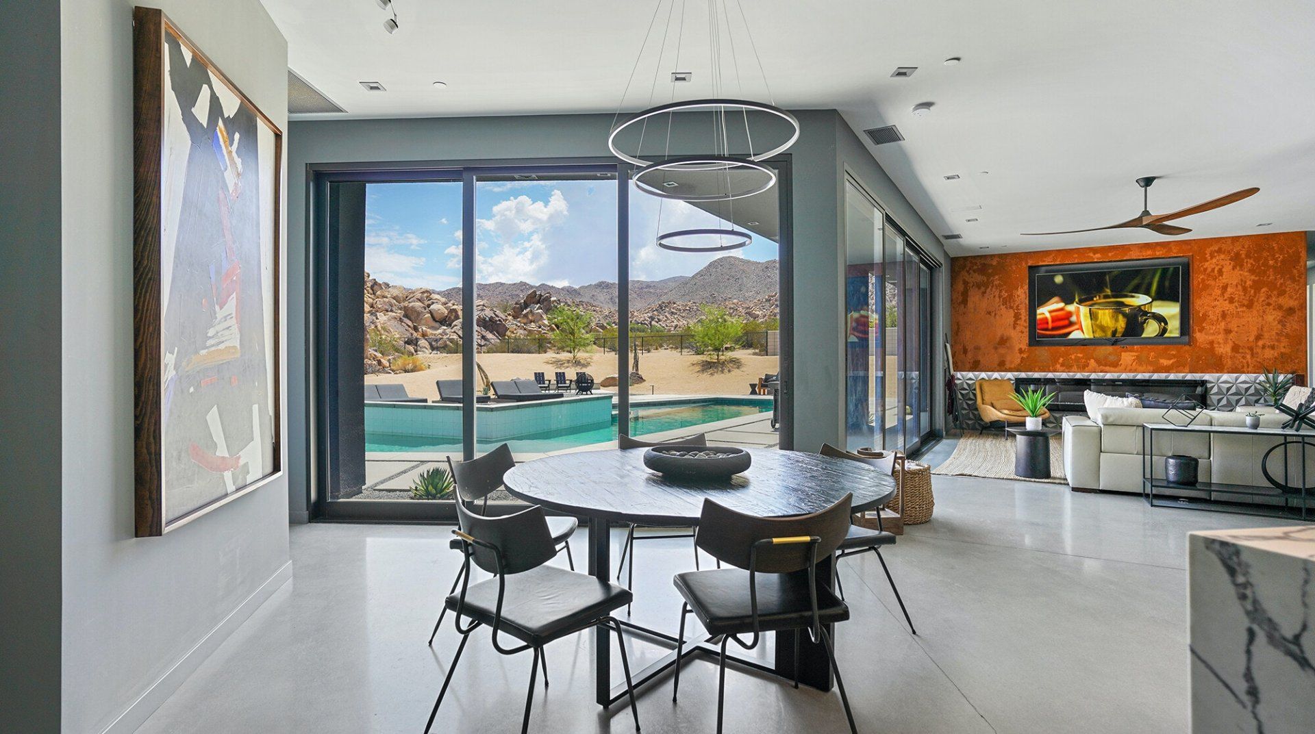 This Joshua Tree home is a gorgeous piece of modern architecture, set in over an acre of land in the middle of the desert. It offers great access to the park, as well as other hiking trails, and while you shouldn’t ignore that, the home is a destination in itself. The views of the landscape are probably the first things that you’ll notice, and with good reason. On top of that, pools, hot tubs, and fire pits aren’t unusual in and around Joshua Tree, but rarely do you come across examples that have so much style. Each amenity fits within the aesthetic of the larger home in a deliberate, measured way and a dedicated hospitality concierge is on hand to help you arrange anything you may want or need. We can go on to list more features, but even that wouldn’t capture the grandeur of the home. Relaxing beside the pool as the sun sets or swapping stories around the fire pit under the stars are the kind of experiences you won’t forget in a hurry.