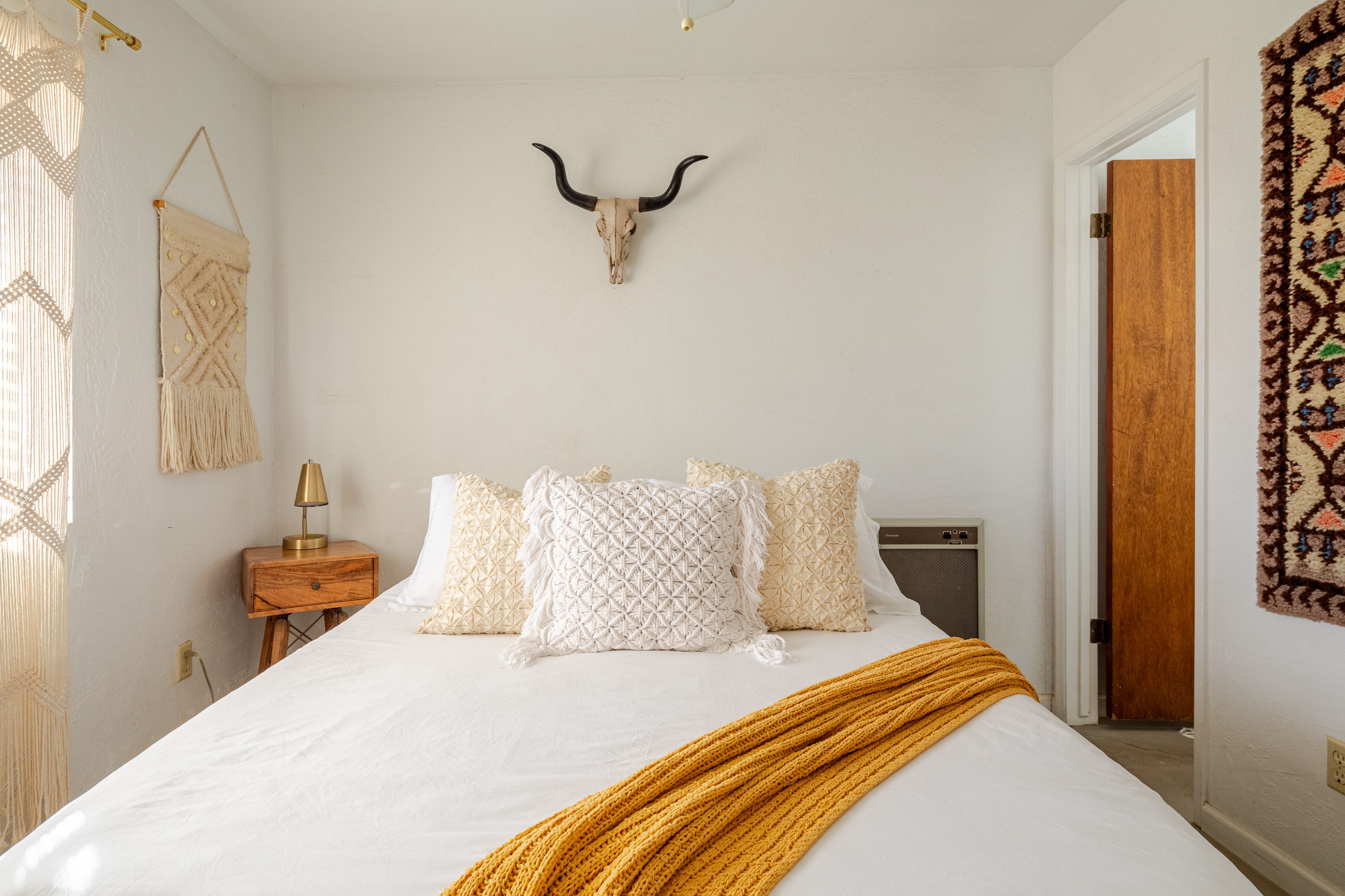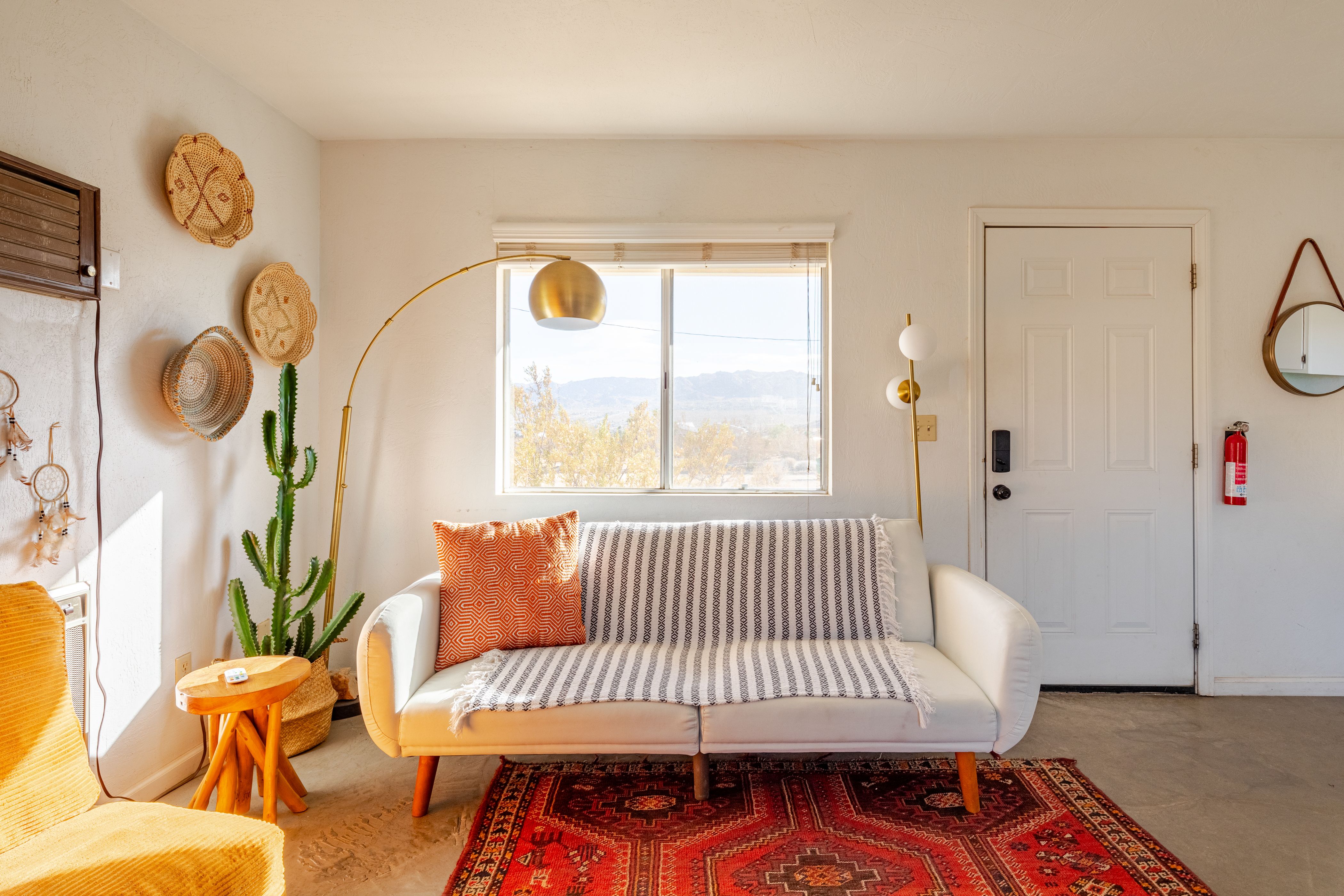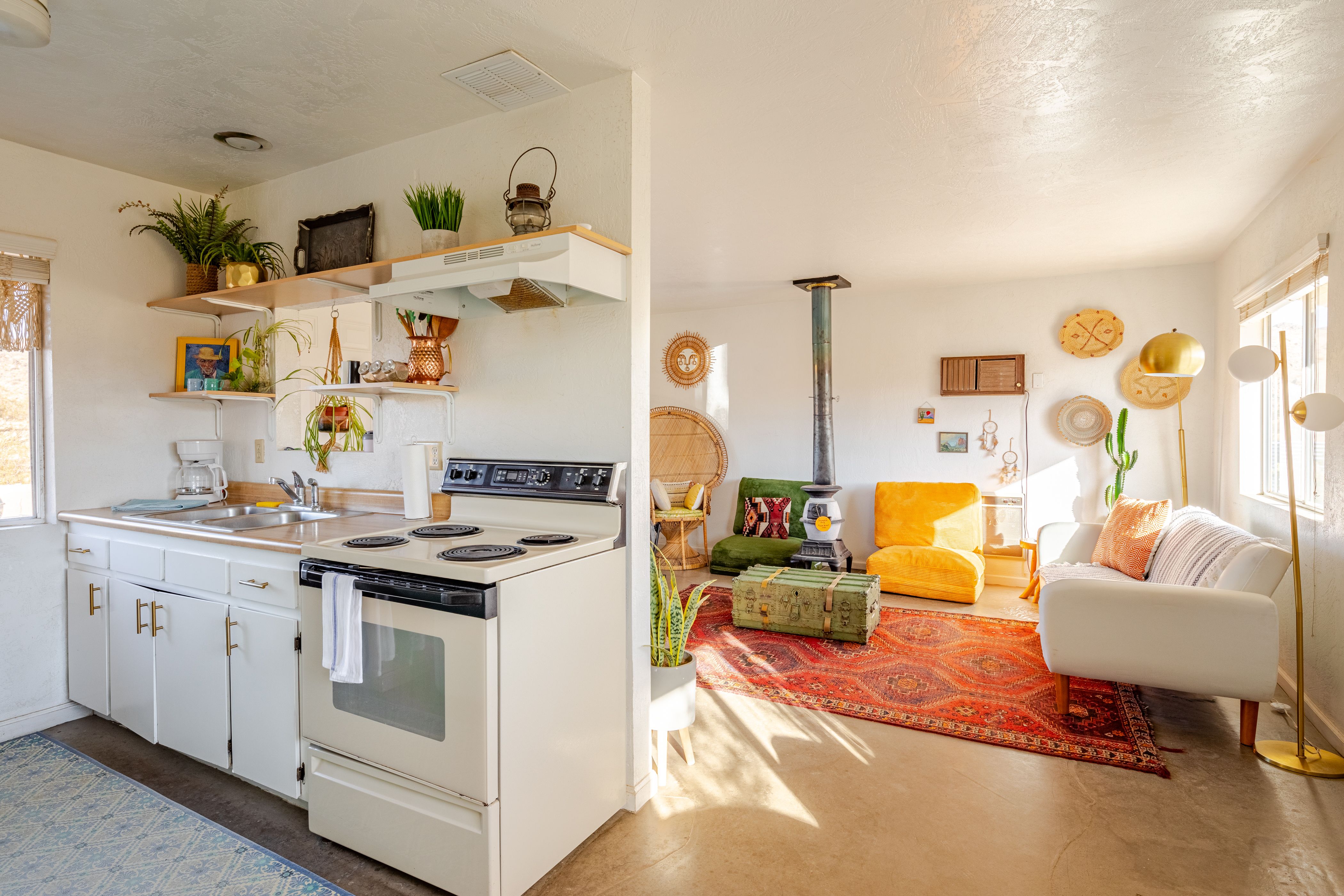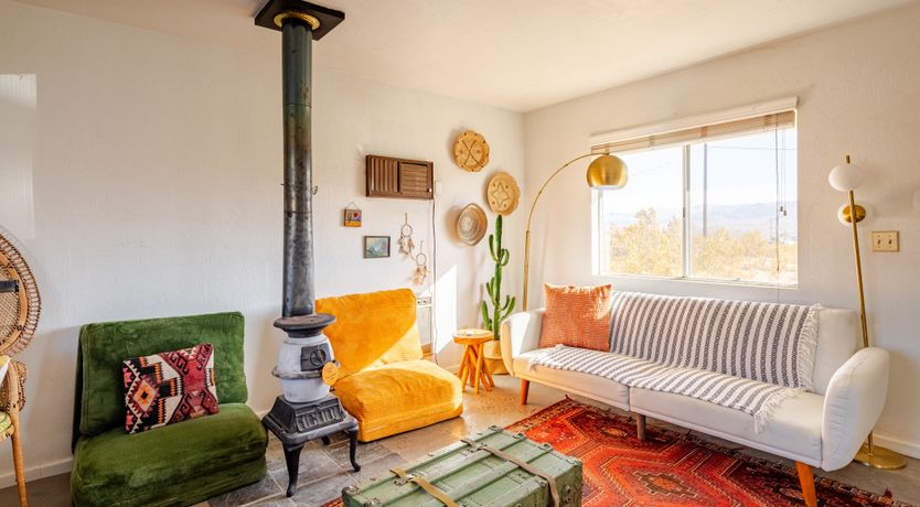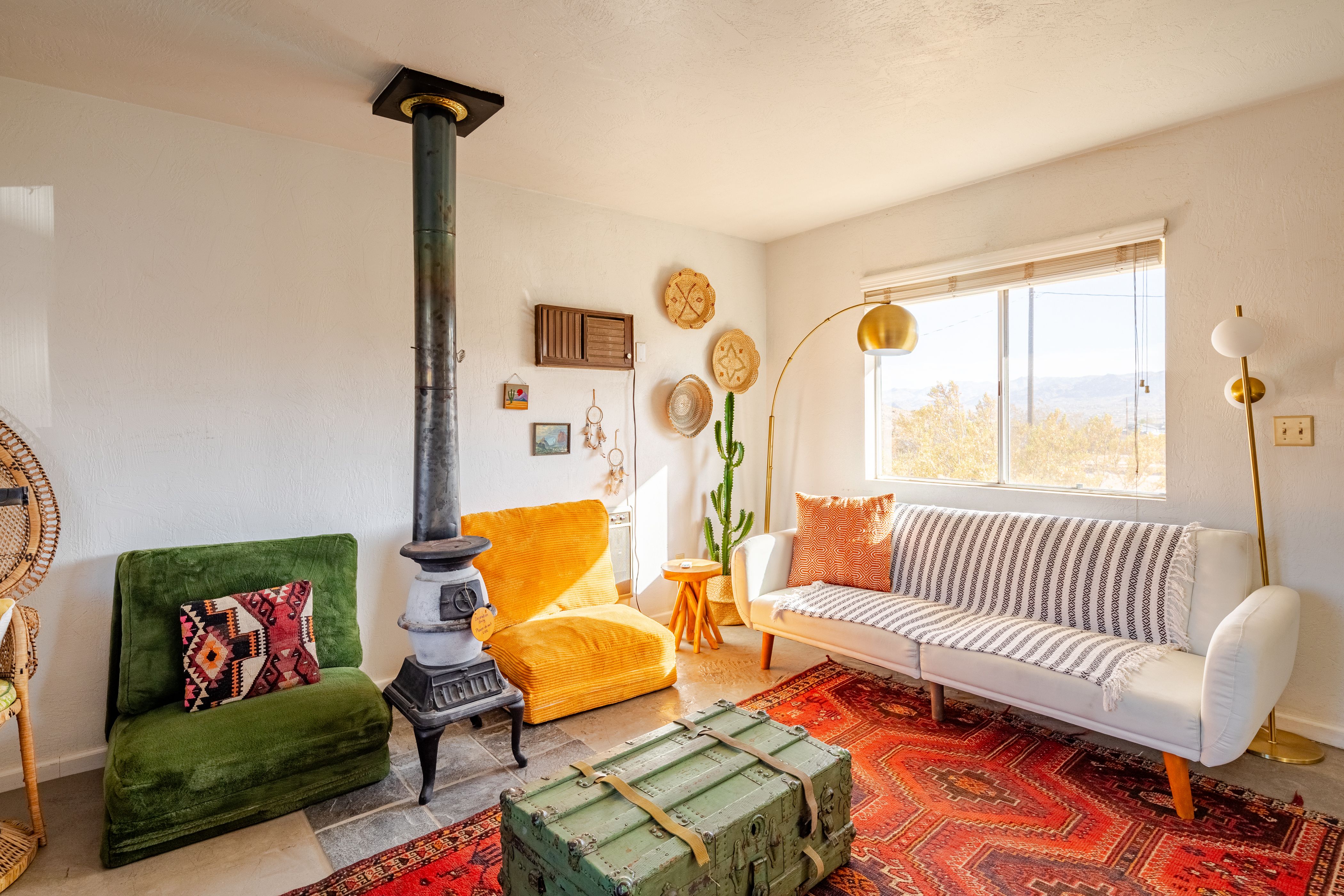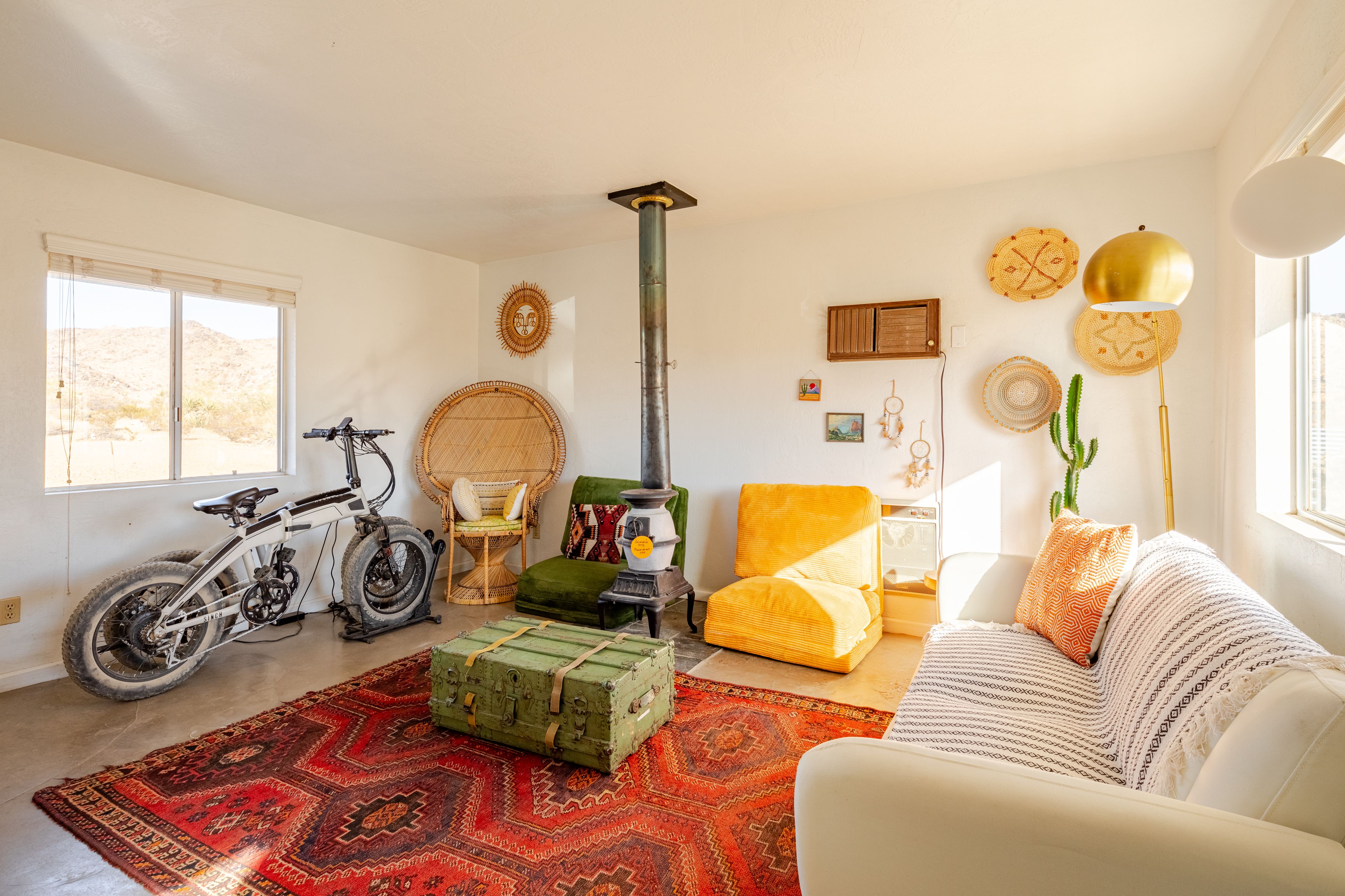 There's something special about desert light, and this captivating Joshua Tree retreat is the perfect place to observe it. The sunsets are visible from the outdoor Jacuzzi or cooling cowboy tub, while the mirrored dome in the garden was designed with stargazing in mind. It's clear as soon as you arrive that your hosts, Cherish and Ramon, have put a lot of effort into the interiors of the home, and they've bestowed it with a certain rustic desert charm that's hard to pinpoint. Of course, it doesn't hurt that you can step directly out onto the deck in the cool of the morning and watch the desert critters scurrying around before they're forced to retreat from the heat of the day. If you want to head off for the day, the west entrance to Joshua Tree National Park is only two miles away, your gateway to almost 800,000 acres of mystic desert. Your hosts also provide two eclectic bikes that you can use to pedal your way across the desert.