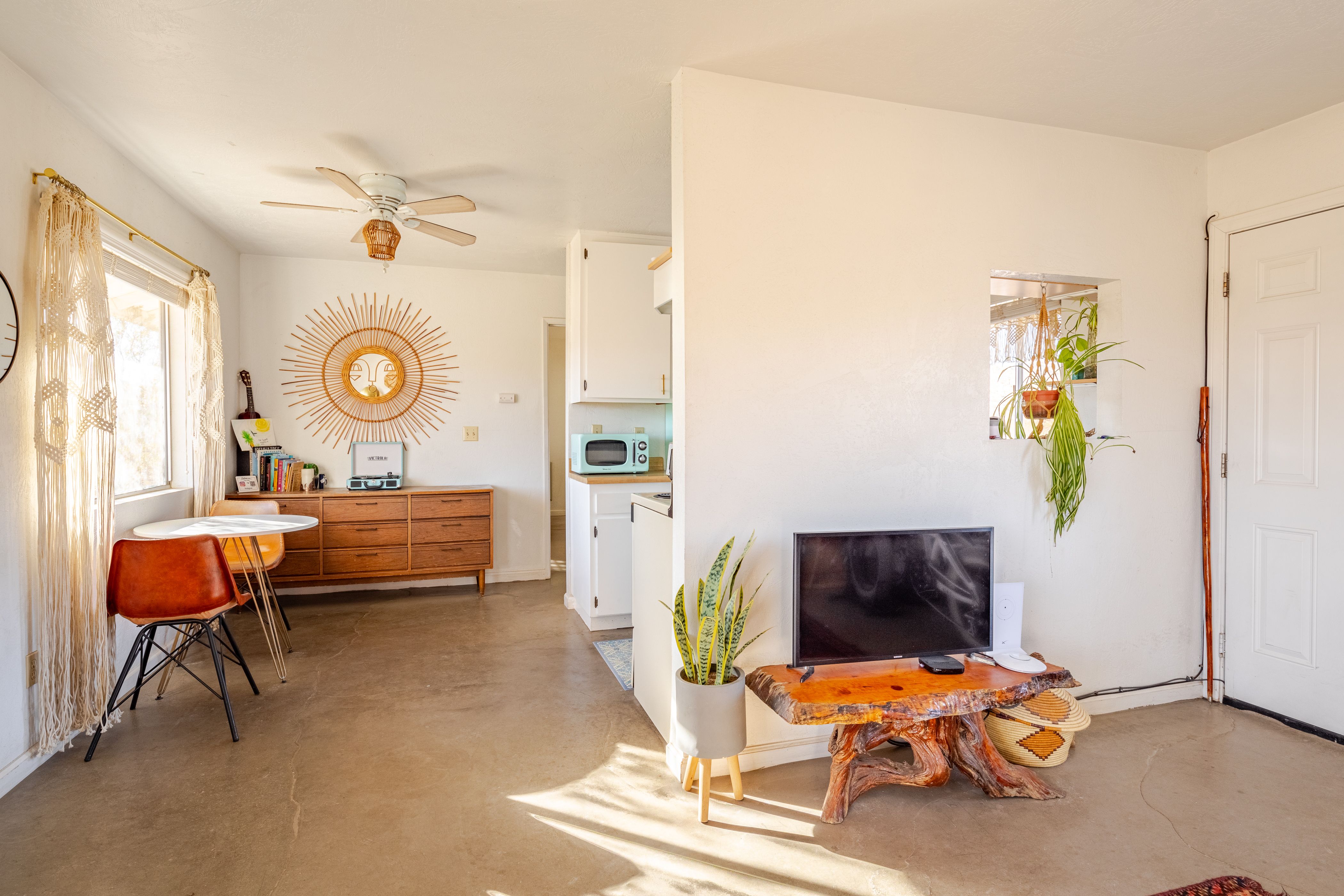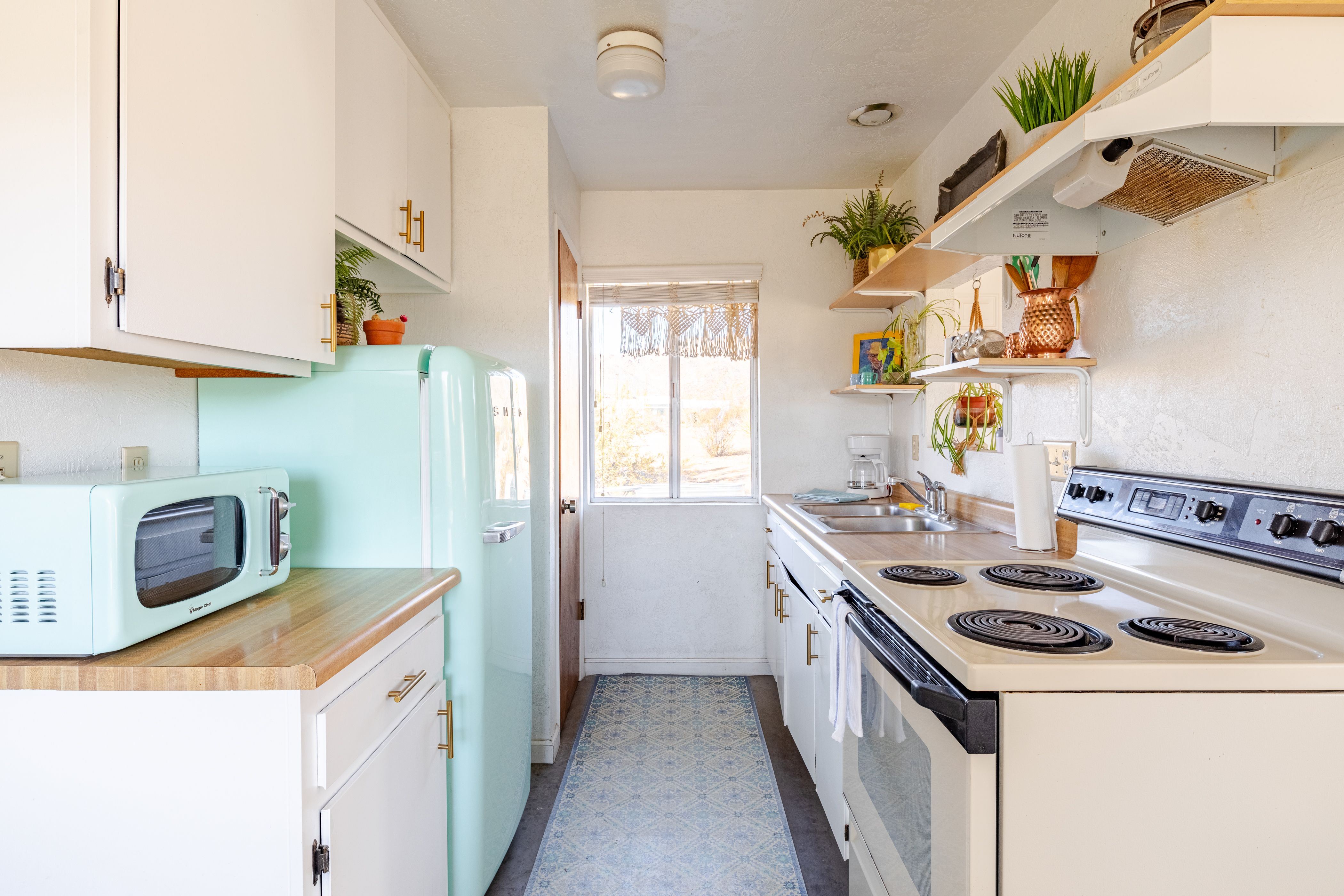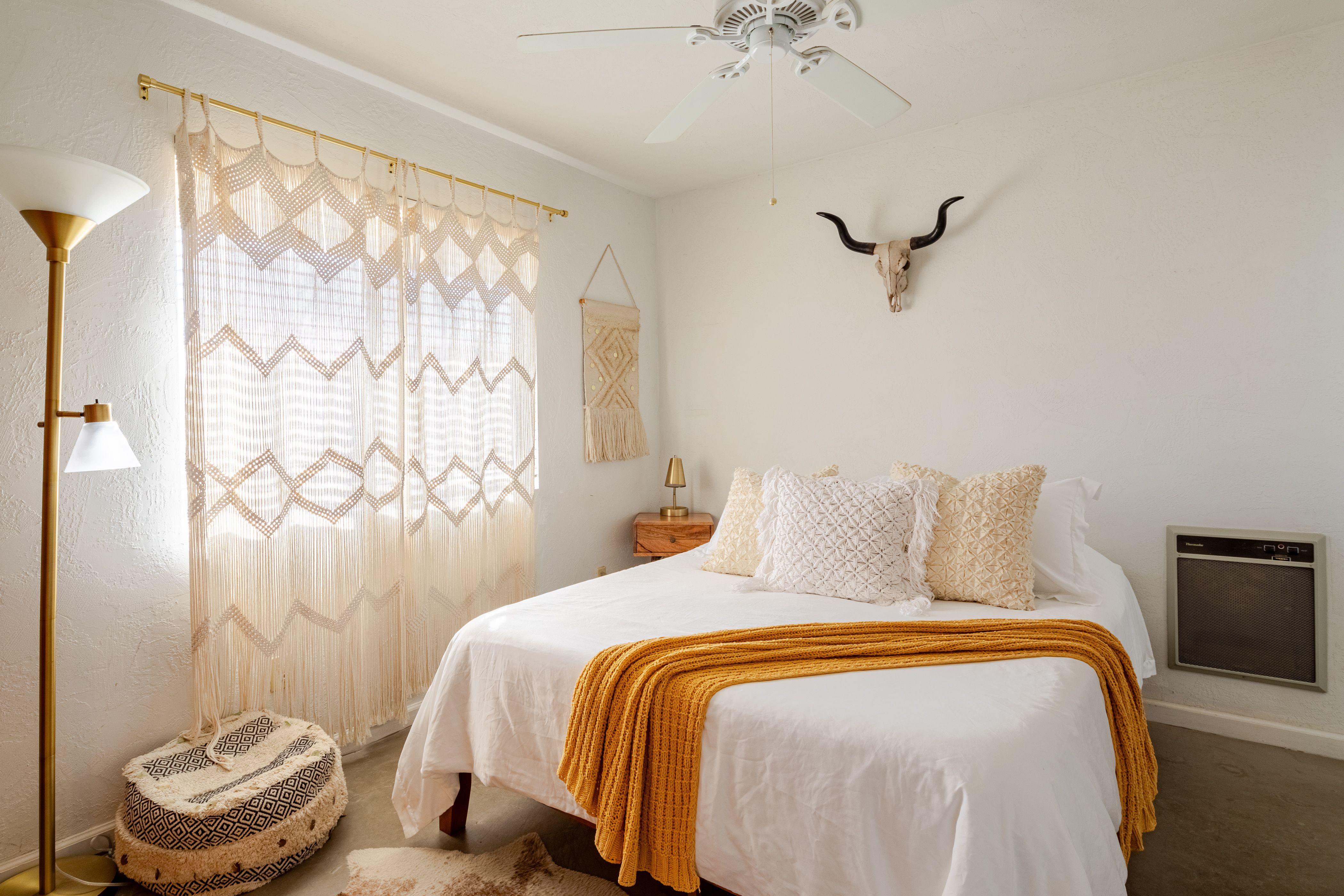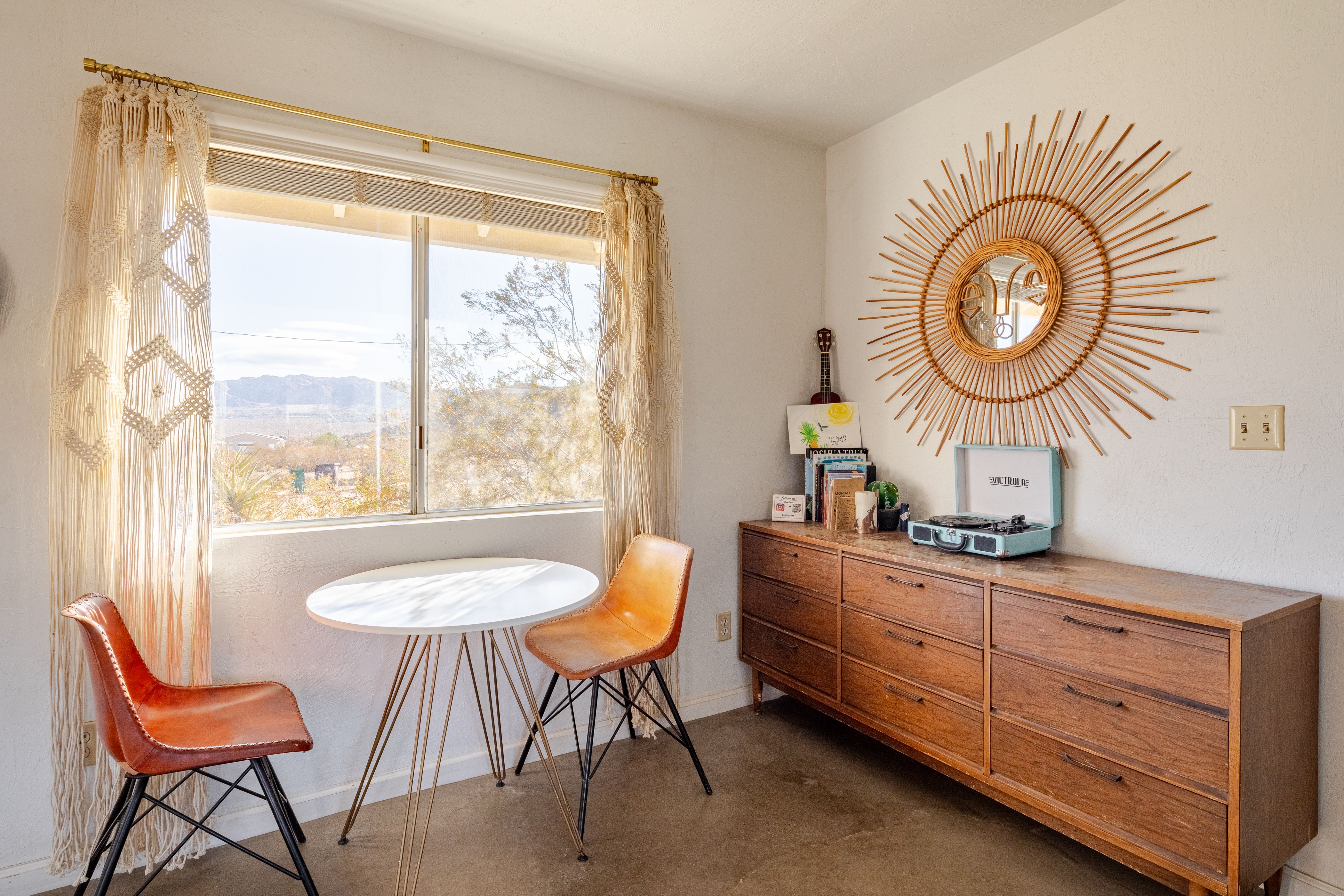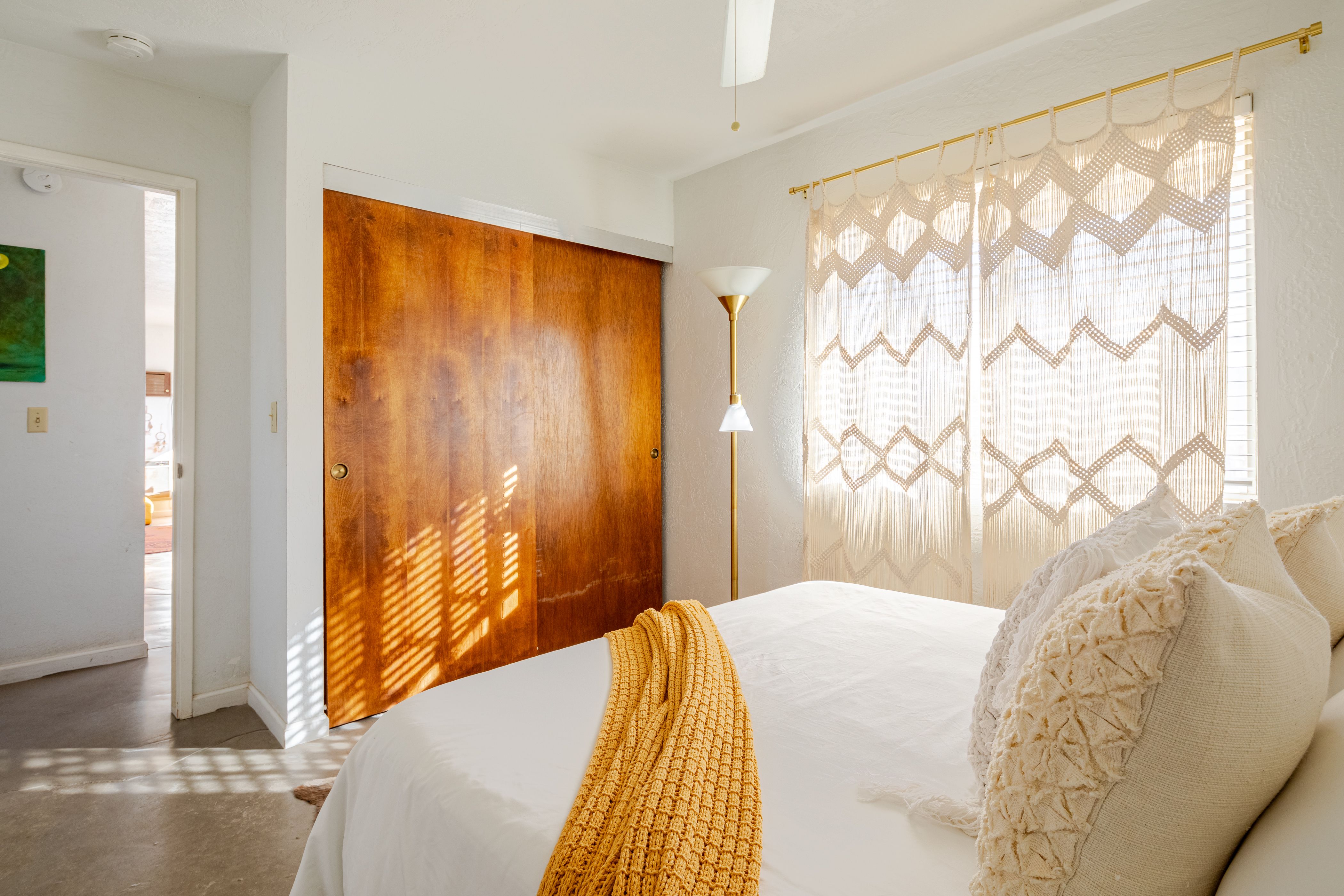 There's something special about desert light, and this captivating Joshua Tree retreat is the perfect place to observe it. The sunsets are visible from the outdoor Jacuzzi or cooling cowboy tub, while the mirrored dome in the garden was designed with stargazing in mind. It's clear as soon as you arrive that your hosts, Cherish and Ramon, have put a lot of effort into the interiors of the home, and they've bestowed it with a certain rustic desert charm that's hard to pinpoint. Of course, it doesn't hurt that you can step directly out onto the deck in the cool of the morning and watch the desert critters scurrying around before they're forced to retreat from the heat of the day. If you want to head off for the day, the west entrance to Joshua Tree National Park is only two miles away, your gateway to almost 800,000 acres of mystic desert. Your hosts also provide two eclectic bikes that you can use to pedal your way across the desert.