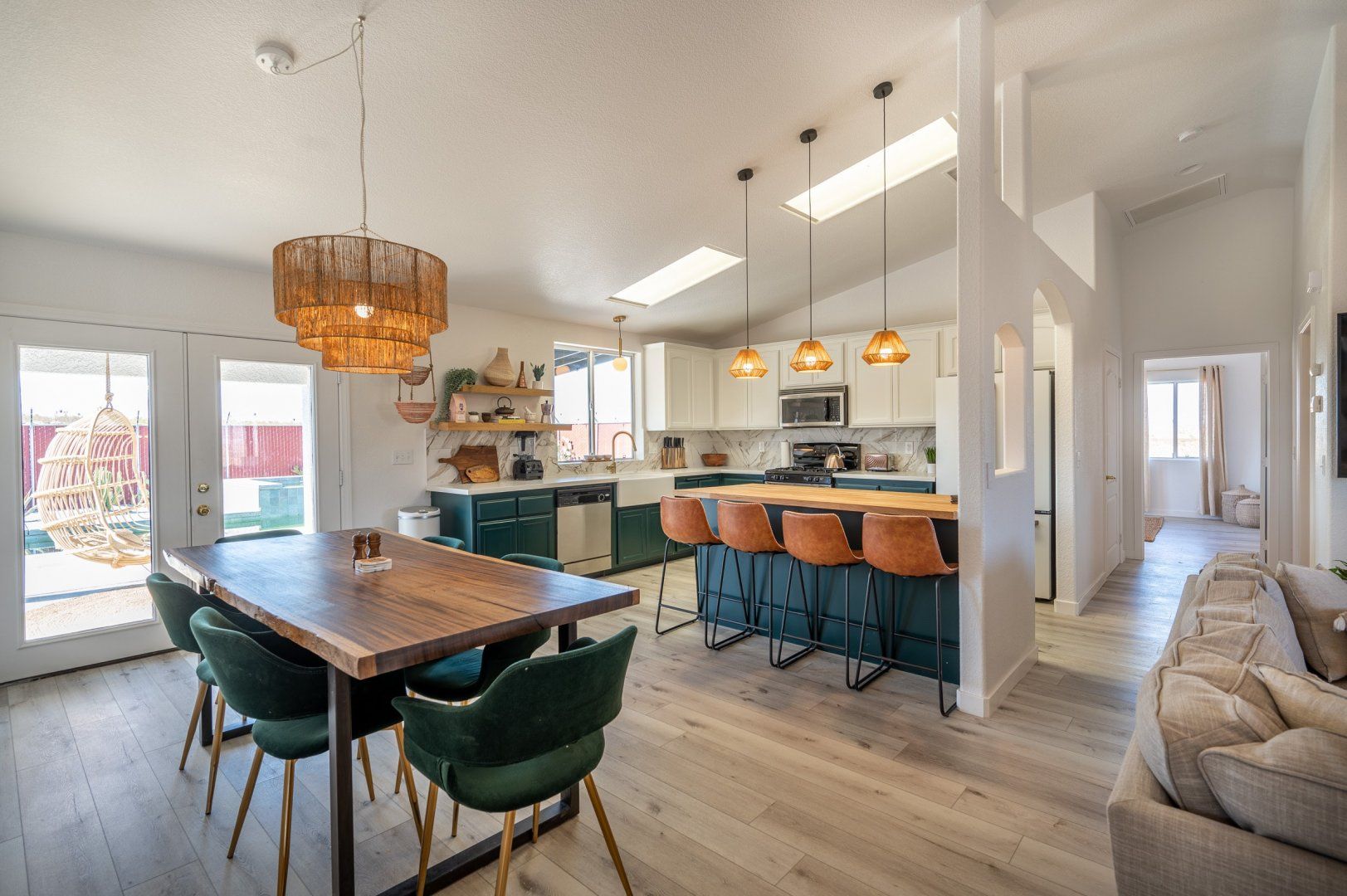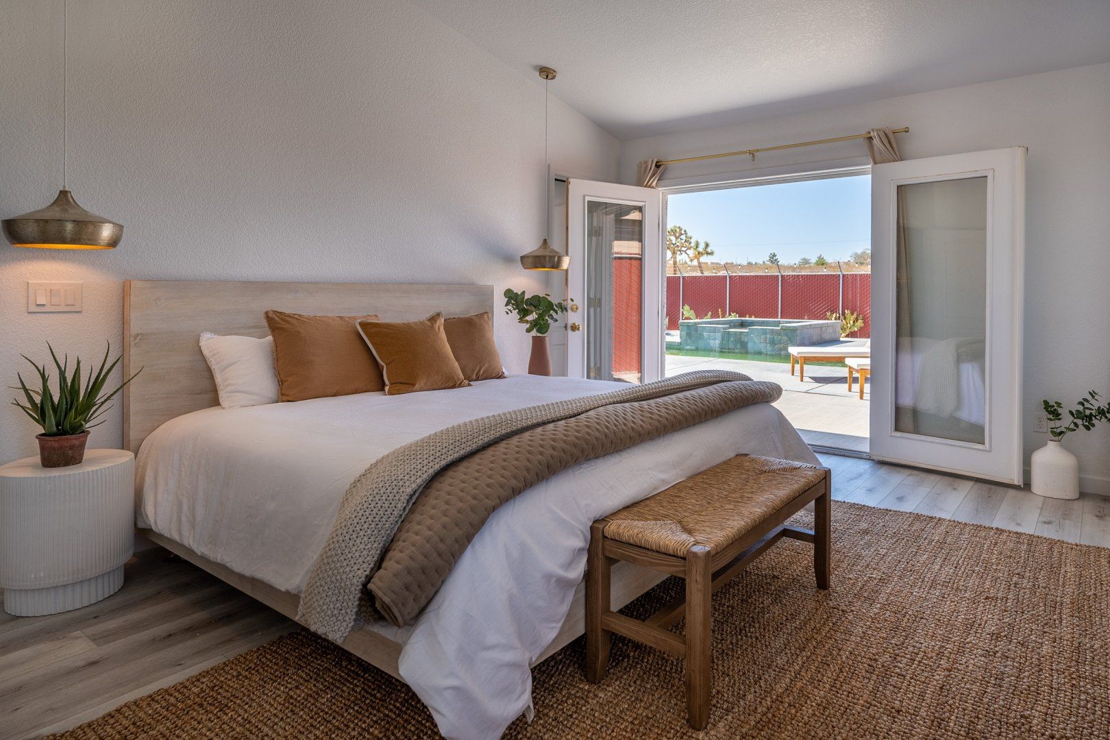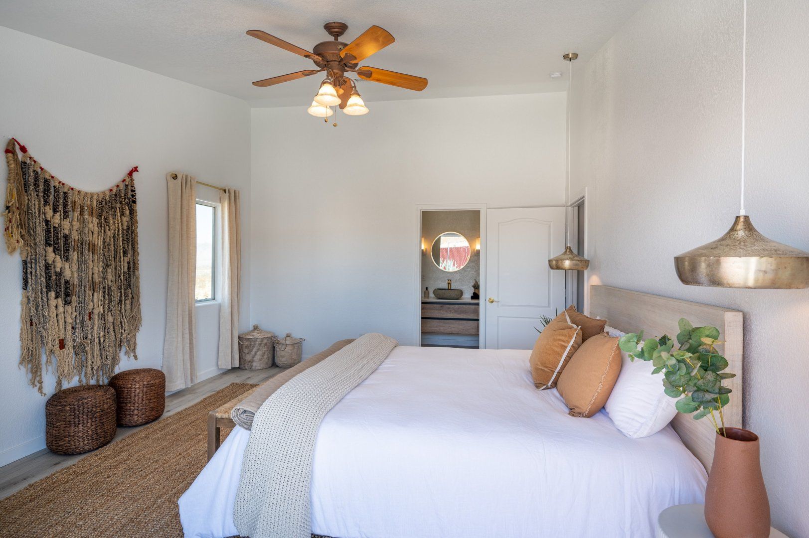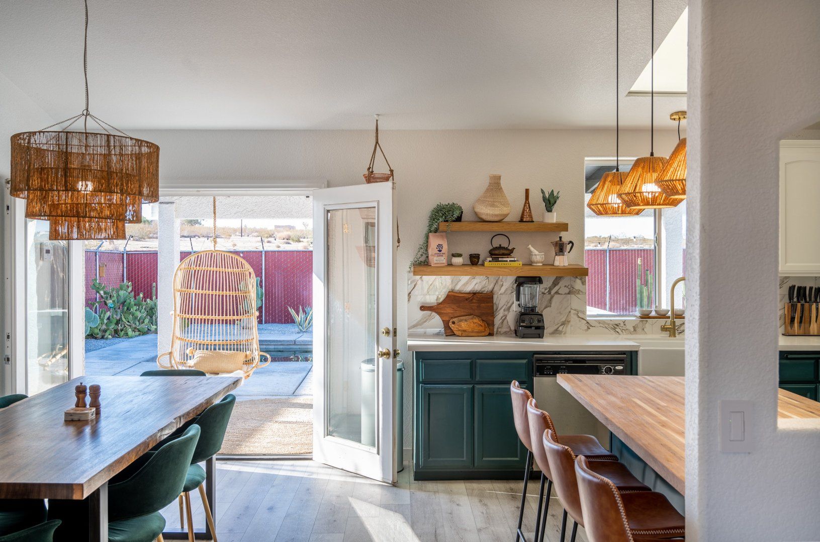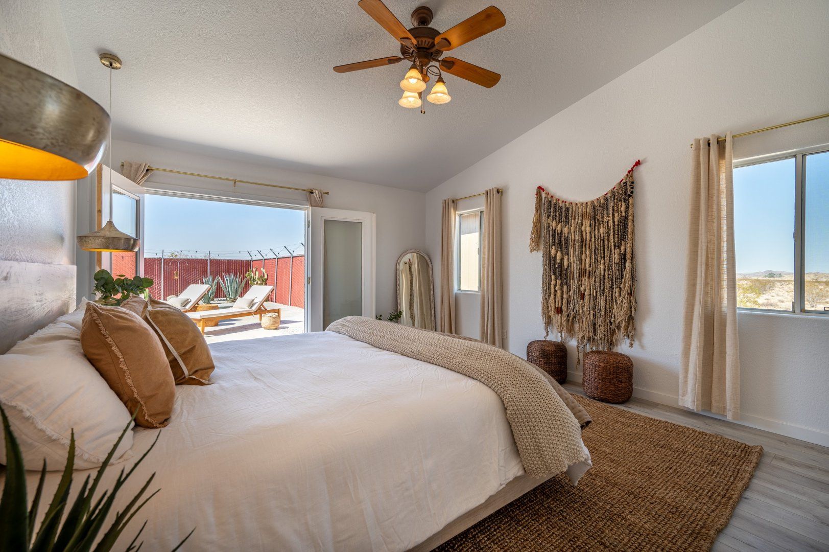 Nestled in 2.5 acres, this haven welcomes you to rest, recharge and experience the magic of desert living. Inside, the rooms are styled with art and furnishings collected from travels across the world, plus the owners have taken care to ensure maximum comfort with memory foam mattresses, toiletries and a range of extra services – including a private chef and massage treatments. There’s also a swimming pool, hot tub and yoga studio – perfect for those in search of a meditative retreat. And when you’re looking to spread your wings, it’s just a short seven-minute drive into downtown Joshua Tree.