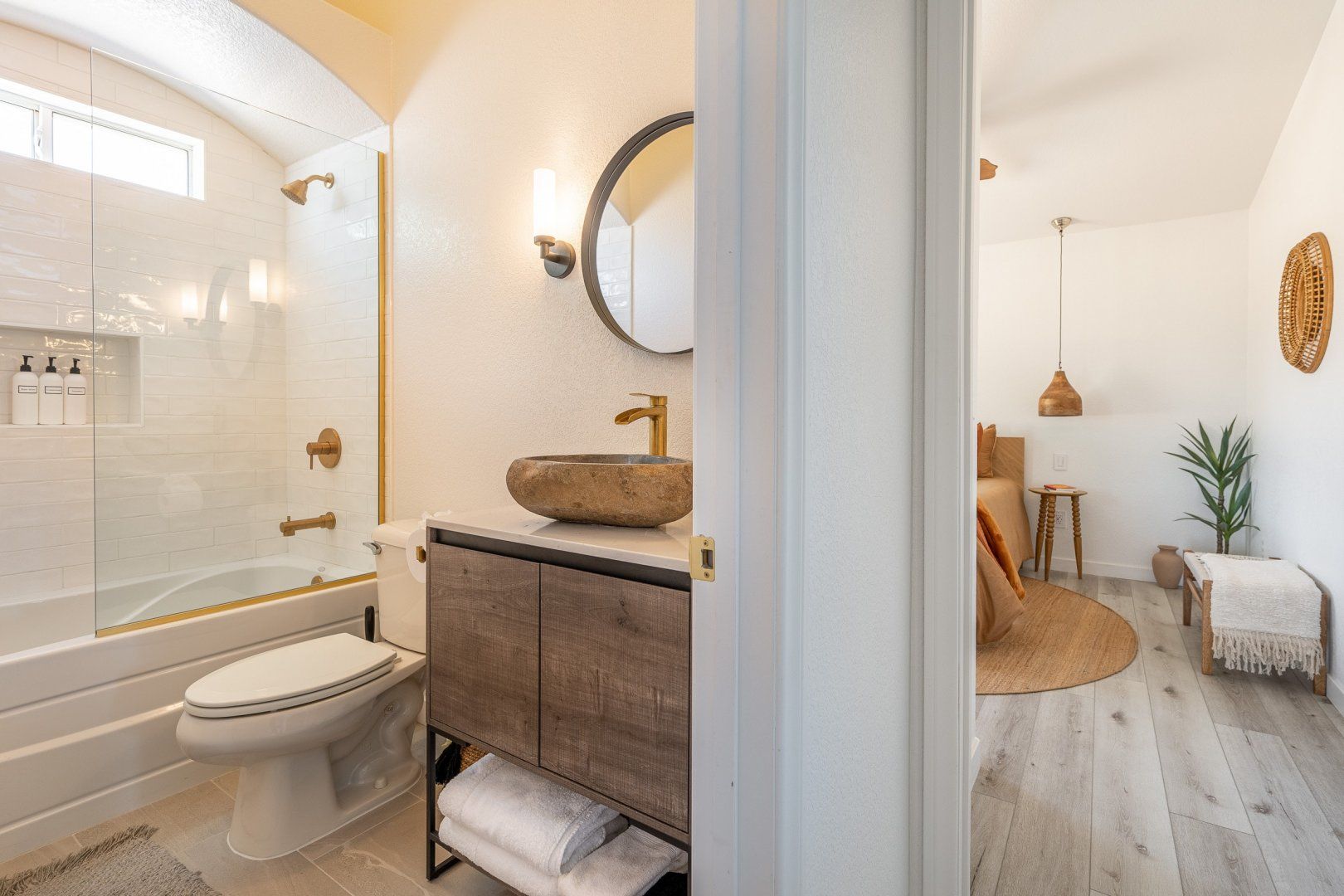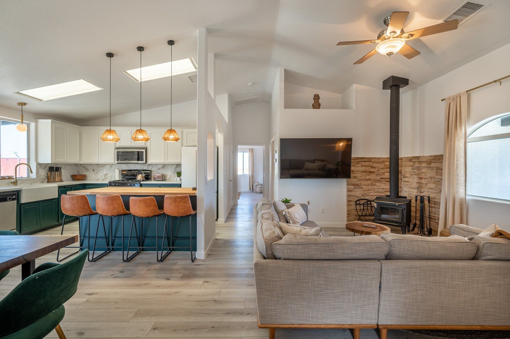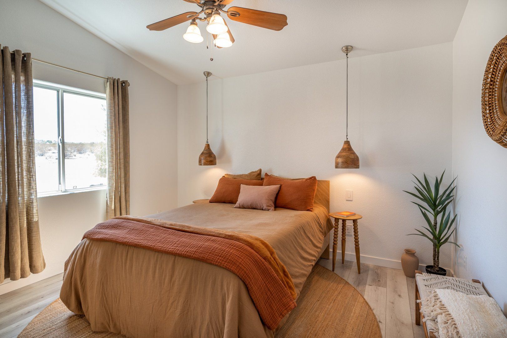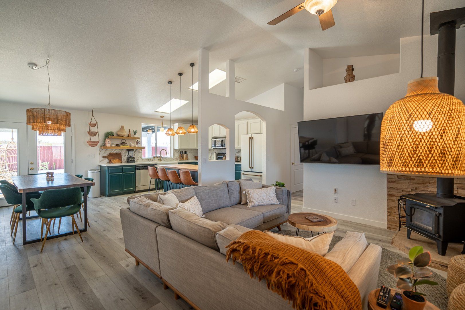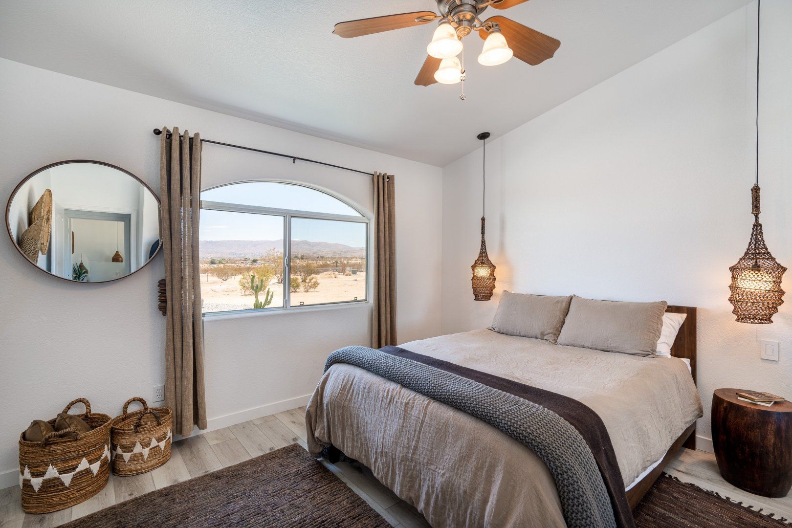 Nestled in 2.5 acres, this haven welcomes you to rest, recharge and experience the magic of desert living. Inside, the rooms are styled with art and furnishings collected from travels across the world, plus the owners have taken care to ensure maximum comfort with memory foam mattresses, toiletries and a range of extra services – including a private chef and massage treatments. There’s also a swimming pool, hot tub and yoga studio – perfect for those in search of a meditative retreat. And when you’re looking to spread your wings, it’s just a short seven-minute drive into downtown Joshua Tree.
