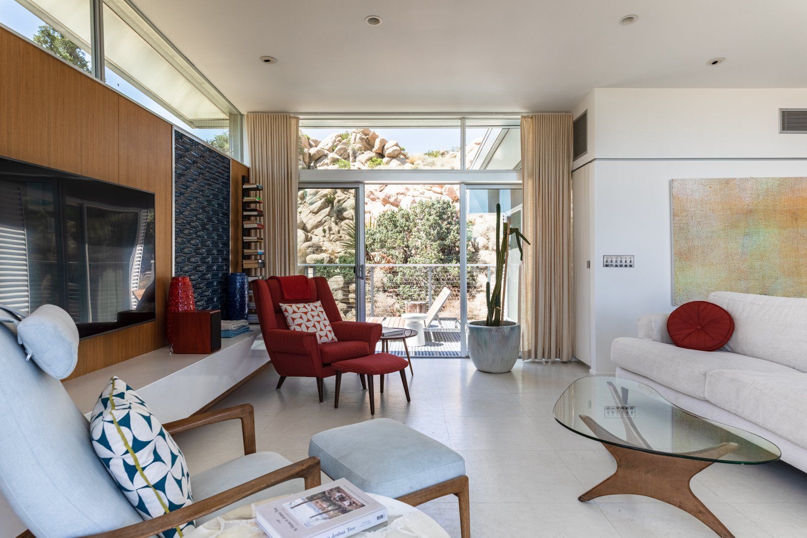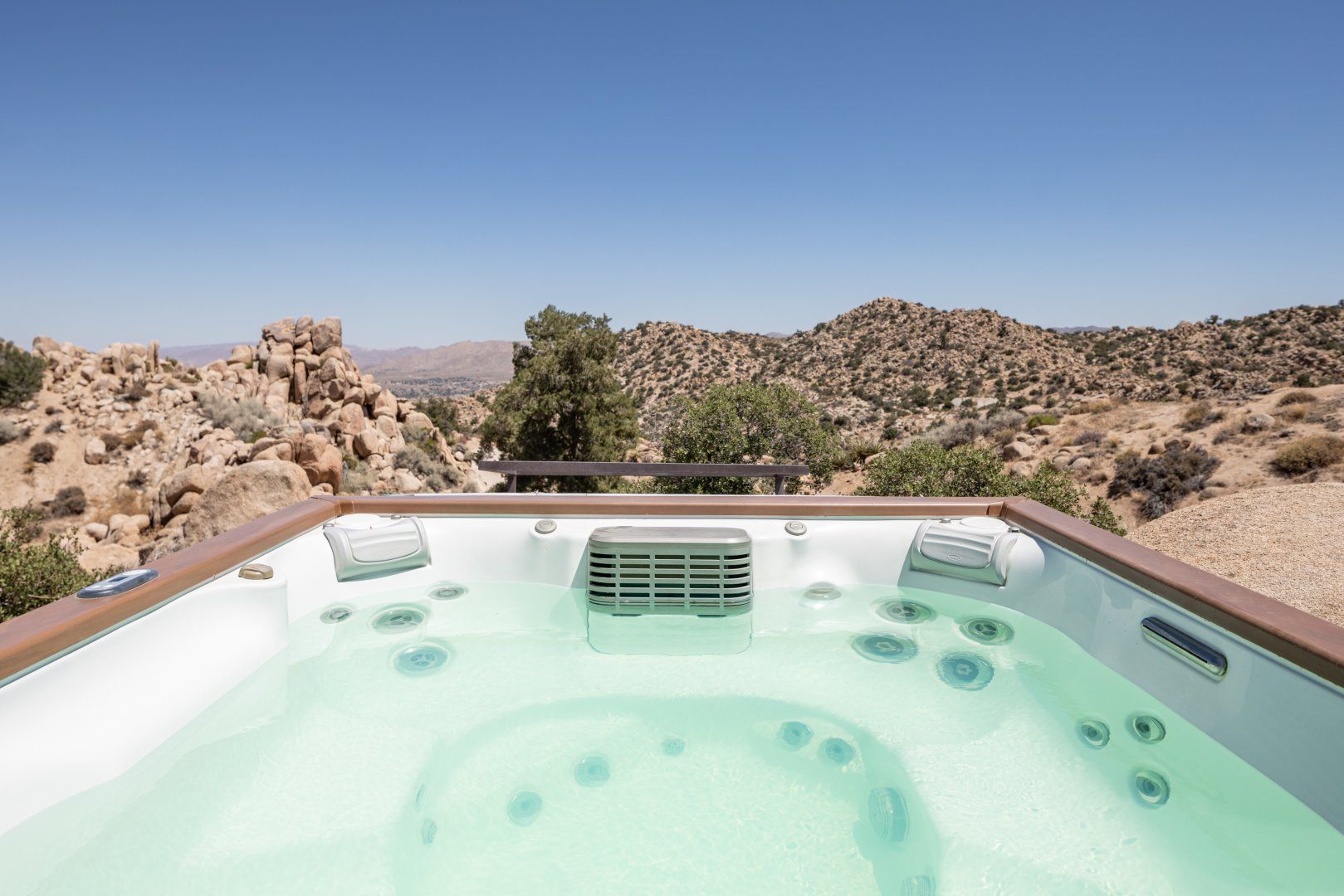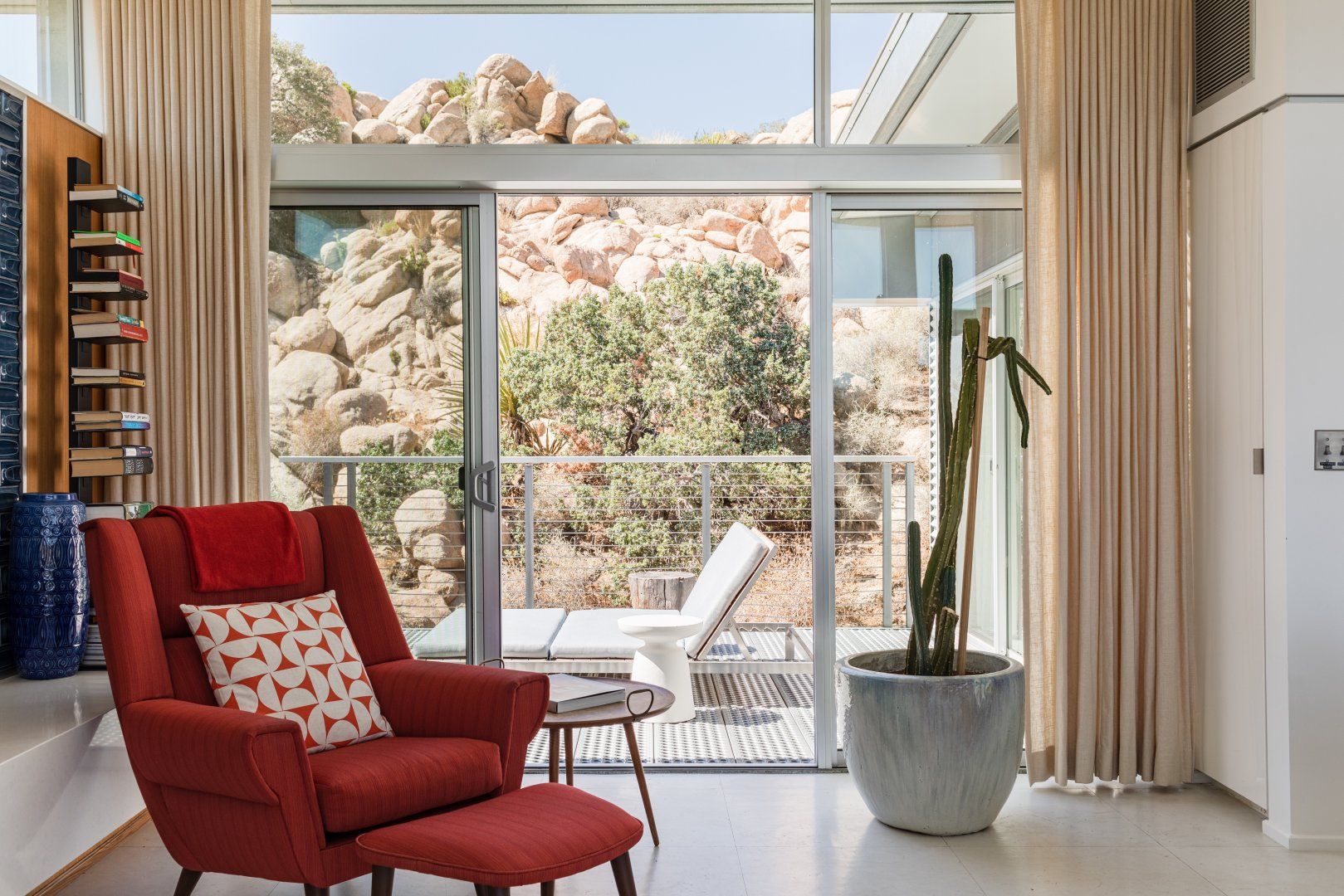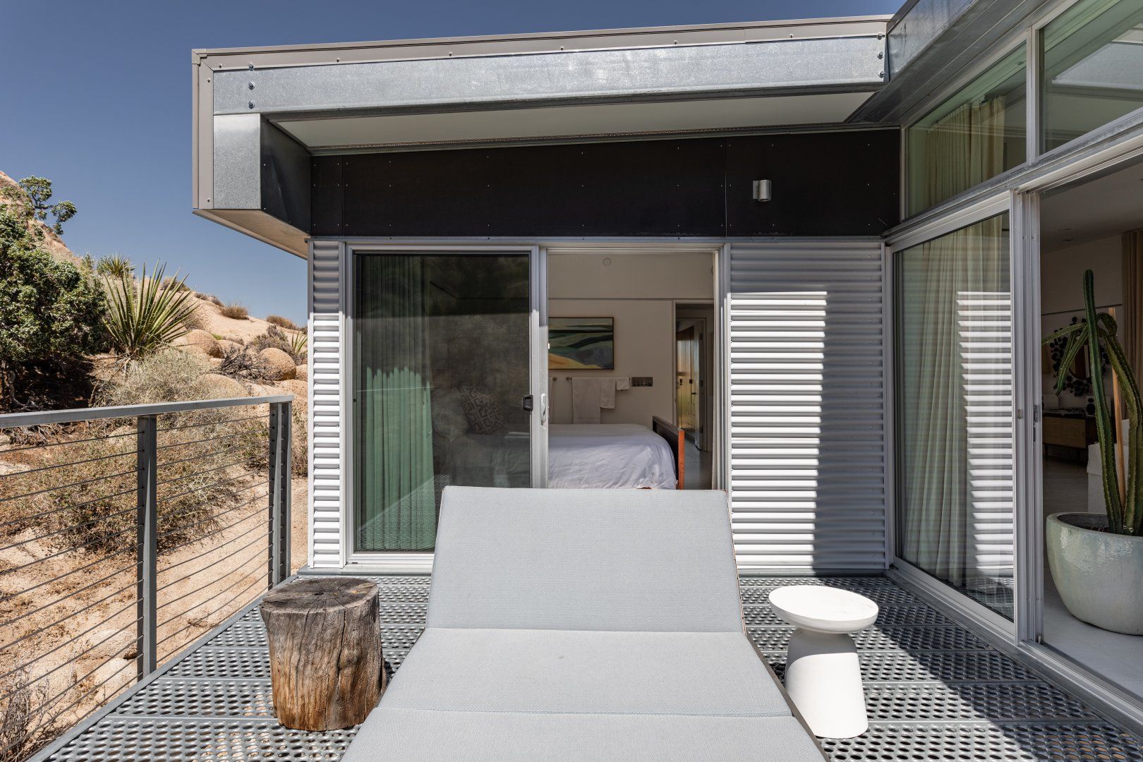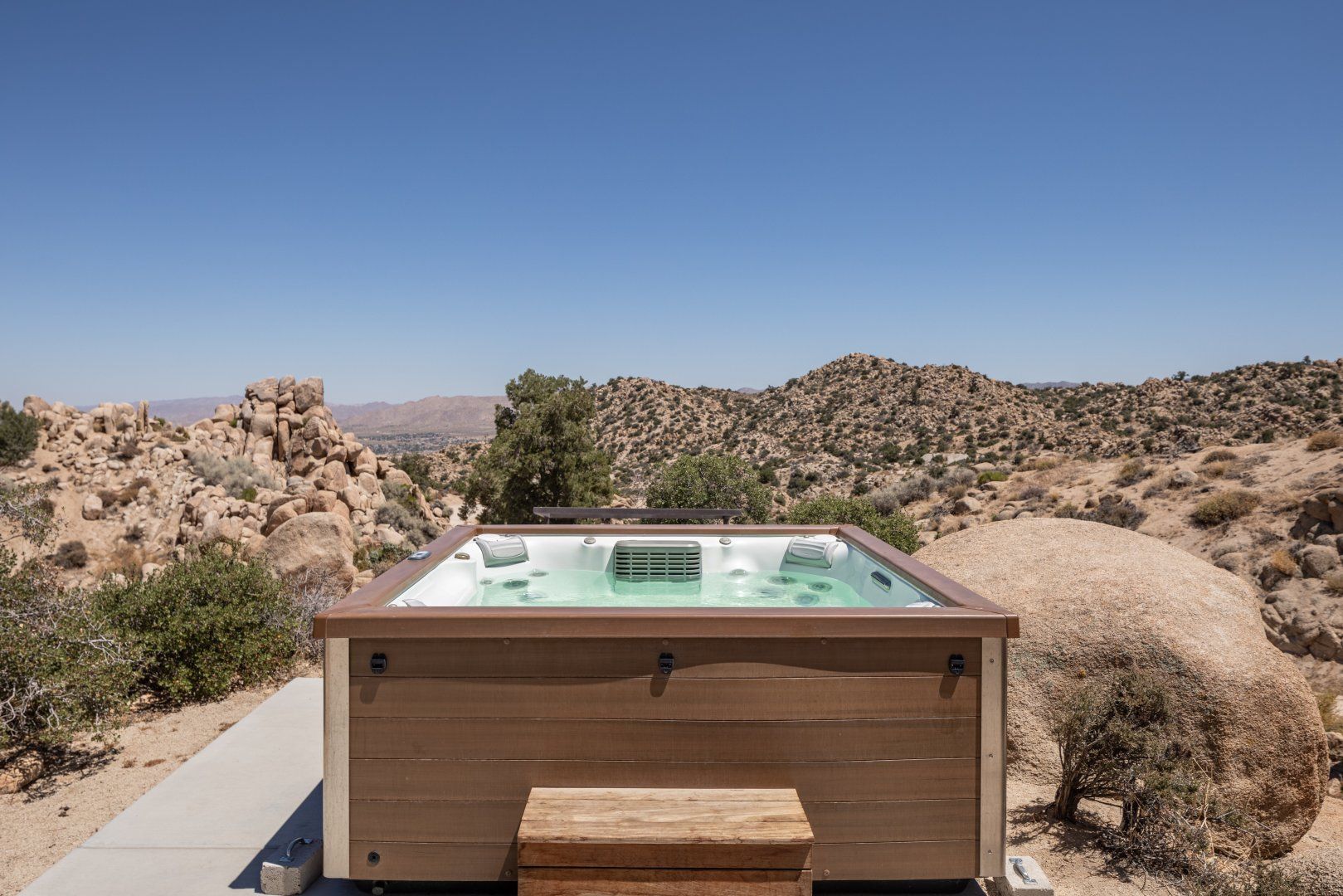 Surrounded by ten acres of stunning desert landscape in the Yucca Valley, this remarkable net-zero energy home really is the epitome of a secluded getaway. It’s been profiled in Dwell Magazine as well as on countless high-end websites, and you can immediately see why. With glass sliding doors in each room inviting you to step out into the wild beauty outside, there’s a seamless flow between indoors and outdoors making this home feel completely at one with the Mojave Desert. We love the balcony equipped with a sun chair – accessed via the master bedroom and living room – and the outdoor shower that will get any morning off to a refreshing start. Spend the day hiking around your sun-drenched house, taking in the majesty of the ancient junipers, weathered boulders, desert oaks and piñon pines, or hop in your car to visit Joshua Tree National Park, just a twenty-minute drive away. After a day of adventuring, come back home for drinks around the fire pit before firing up the barbecue for an alfresco feast. Then end the night with a soak in the hot tub while you watch the night sky turn into a blanket of shimmering stars.