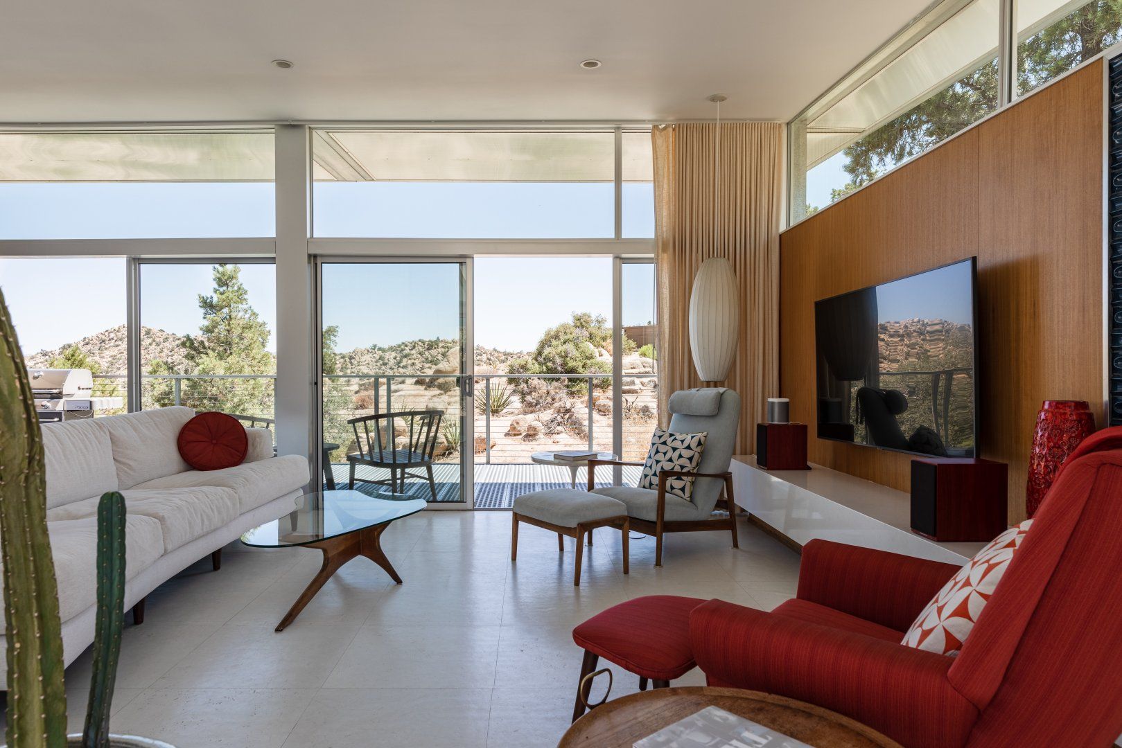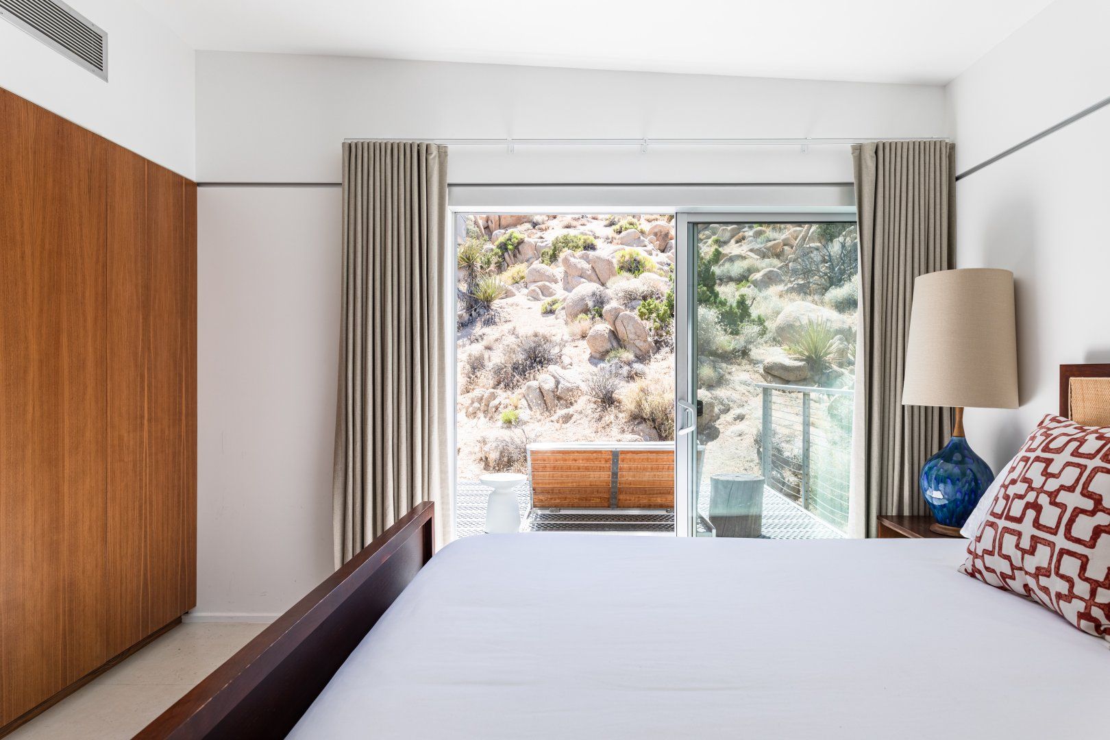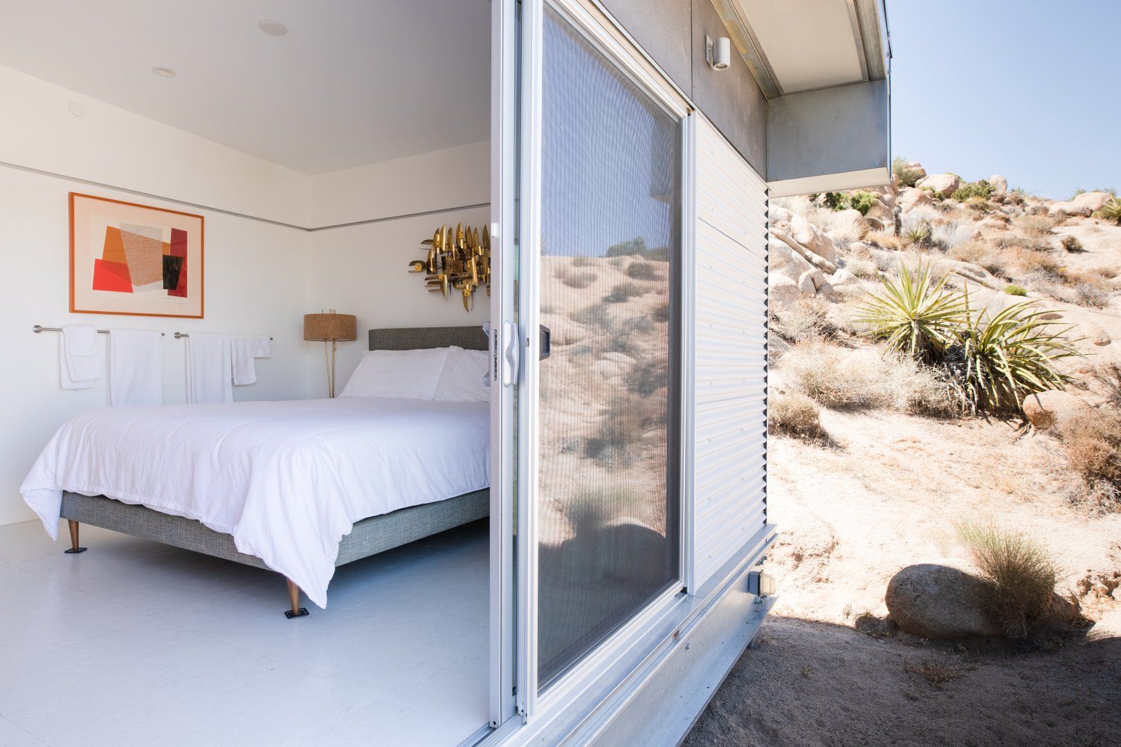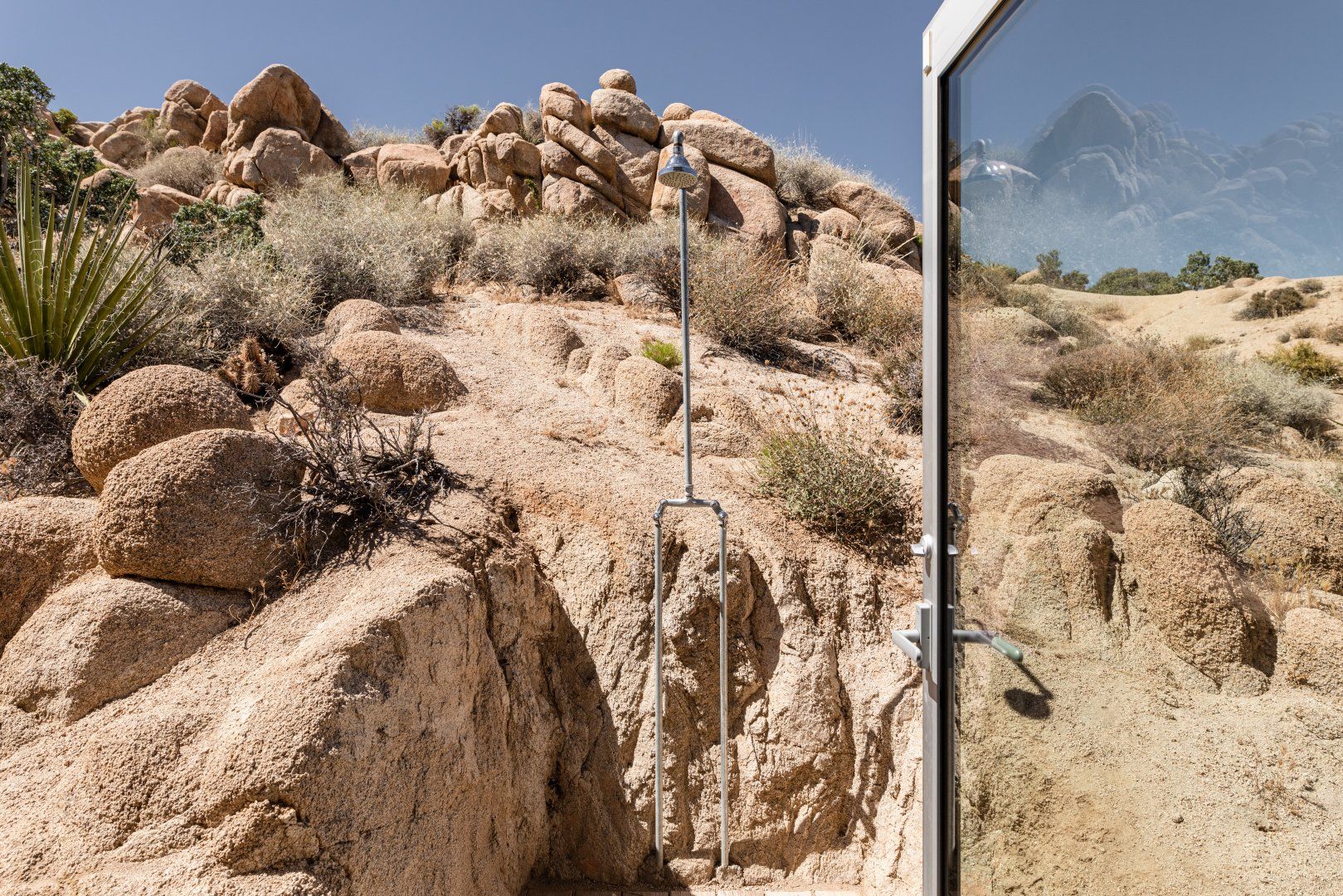 Surrounded by ten acres of stunning desert landscape in the Yucca Valley, this remarkable net-zero energy home really is the epitome of a secluded getaway. It’s been profiled in Dwell Magazine as well as on countless high-end websites, and you can immediately see why. With glass sliding doors in each room inviting you to step out into the wild beauty outside, there’s a seamless flow between indoors and outdoors making this home feel completely at one with the Mojave Desert. We love the balcony equipped with a sun chair – accessed via the master bedroom and living room – and the outdoor shower that will get any morning off to a refreshing start. Spend the day hiking around your sun-drenched house, taking in the majesty of the ancient junipers, weathered boulders, desert oaks and piñon pines, or hop in your car to visit Joshua Tree National Park, just a twenty-minute drive away. After a day of adventuring, come back home for drinks around the fire pit before firing up the barbecue for an alfresco feast. Then end the night with a soak in the hot tub while you watch the night sky turn into a blanket of shimmering stars.