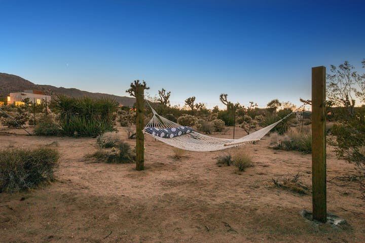 Spend your days lounging by the pool or make the short drive into Joshua Tree National Park – there are great hiking trails throughout this area. Make a stop in Pioneer town – only a twenty–minute drive away and then pick up any supplies from the local supermarket – only a ten–minute drive.