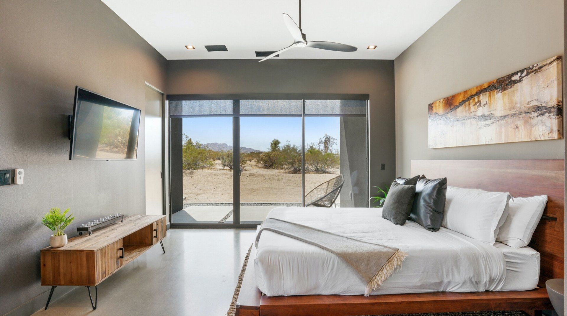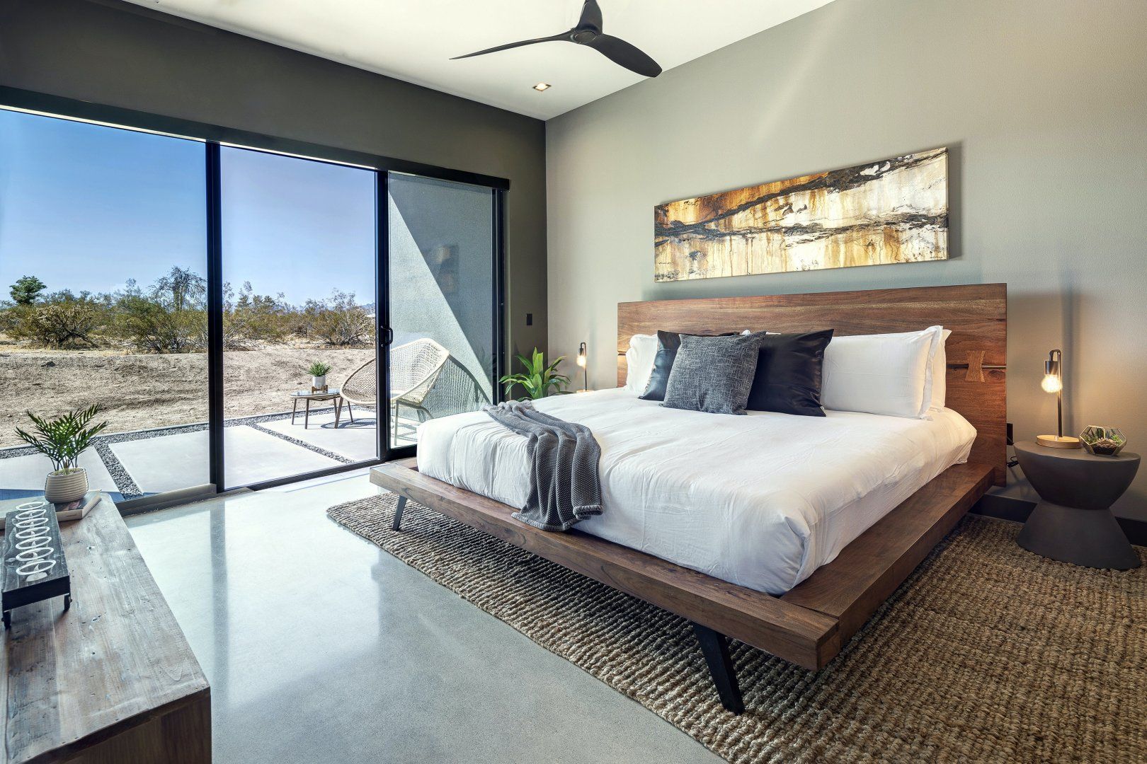 Set in over an acre of private desert, The Sundial is as characteristic a piece of modern desert architecture as you’ll see. The home is enveloped by the stillness and tranquility that comes with such isolation – evenings spent on the terrace beneath the stars offer a different speed of life to the city. The views of the national park at sunset are breathtaking, and the way that the interiors open up to nature, framing the vistas, is unique. It’s also worth mentioning that the location is pretty convenient. Despite the feeling of complete seclusion, downtown Joshua Tree is about five minutes away, with Palm Springs less than hour. And Michael and his team go the extra mile in their levels of service, providing a dedicated hospitality concierge in order to help you arrange anything you want or need.