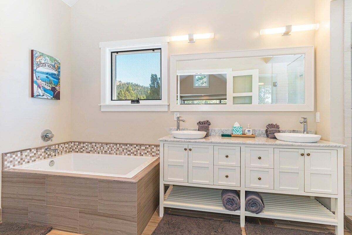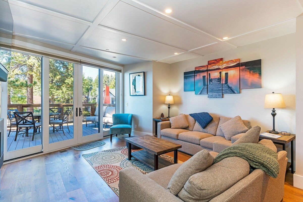 This comfortable North Lake Tahoe home couldn't be better placed to enjoy the lake in the summer and surrounding mountains during the colder months. Watercraft rentals are available to pick up literally seconds away - plus there's access to a private part of the beach with fire pits and loungers available for guests in the complex. While skiing, snowboarding and hiking are possible at Northstar, ten minutes away by car, and Alpine/Squaw, twenty minutes away. The home is light, friendly and cheerful, and is sure to please families and guests of all ages.