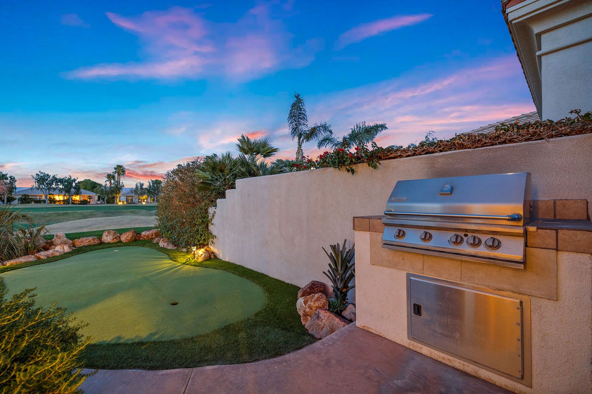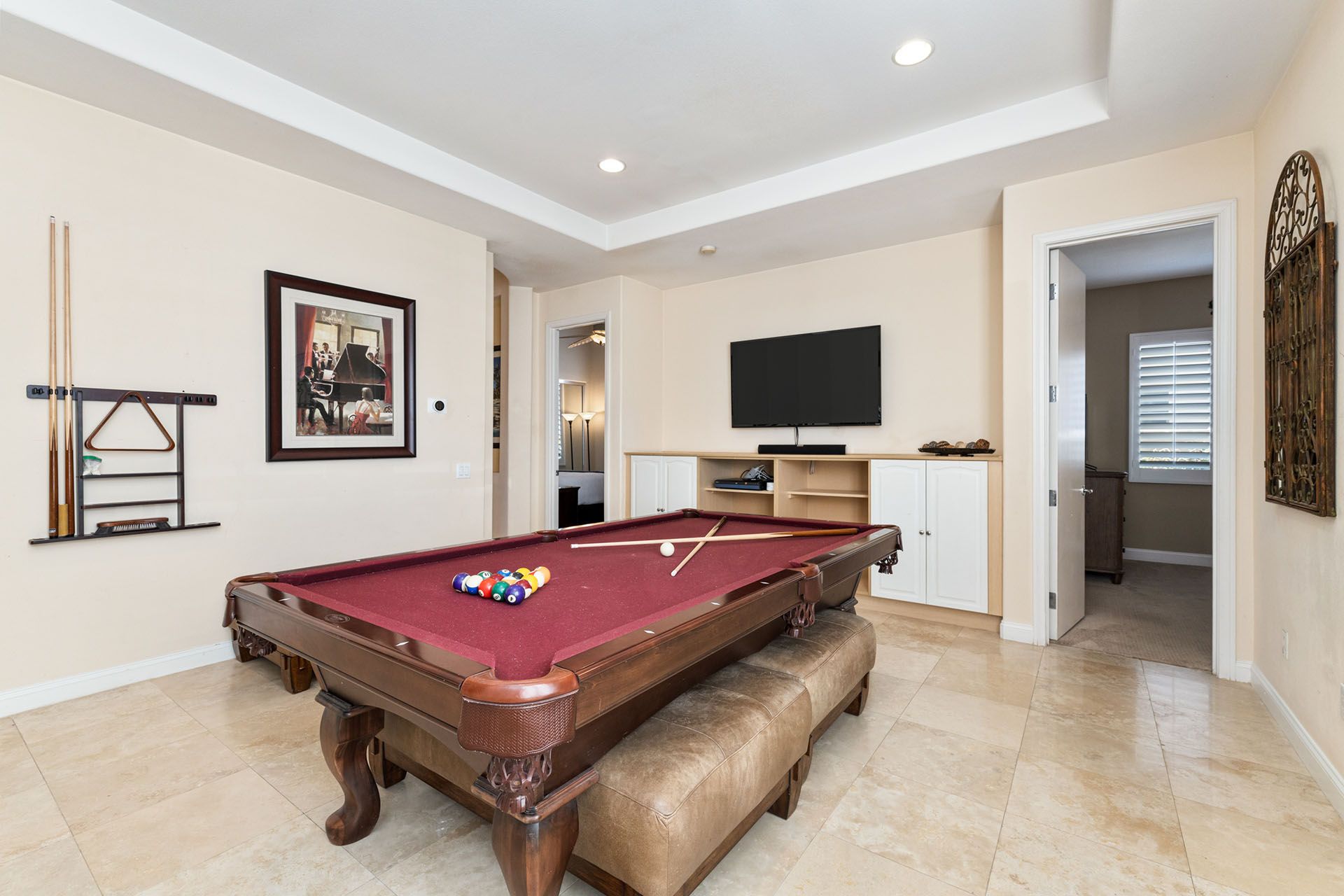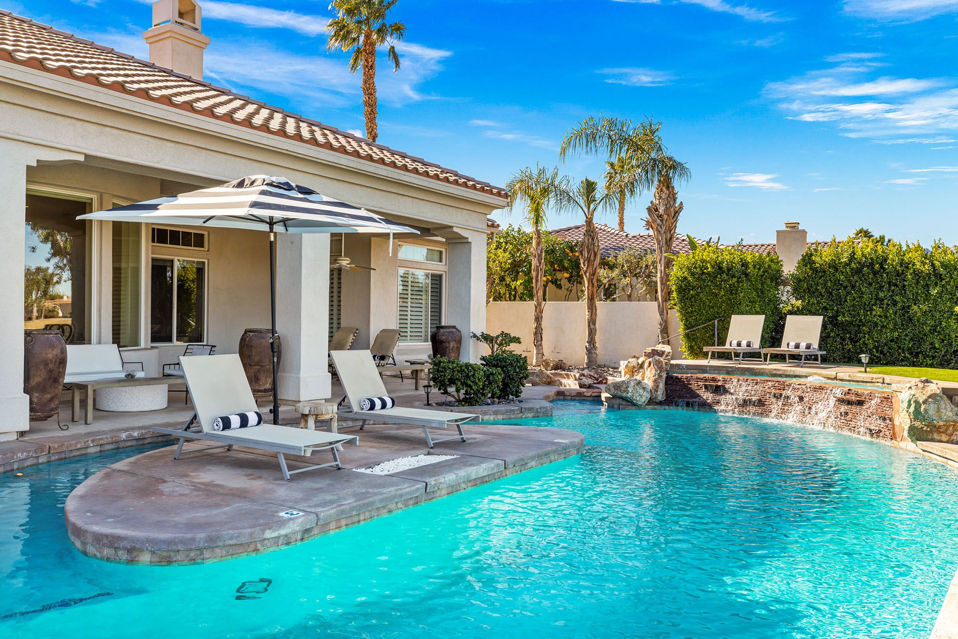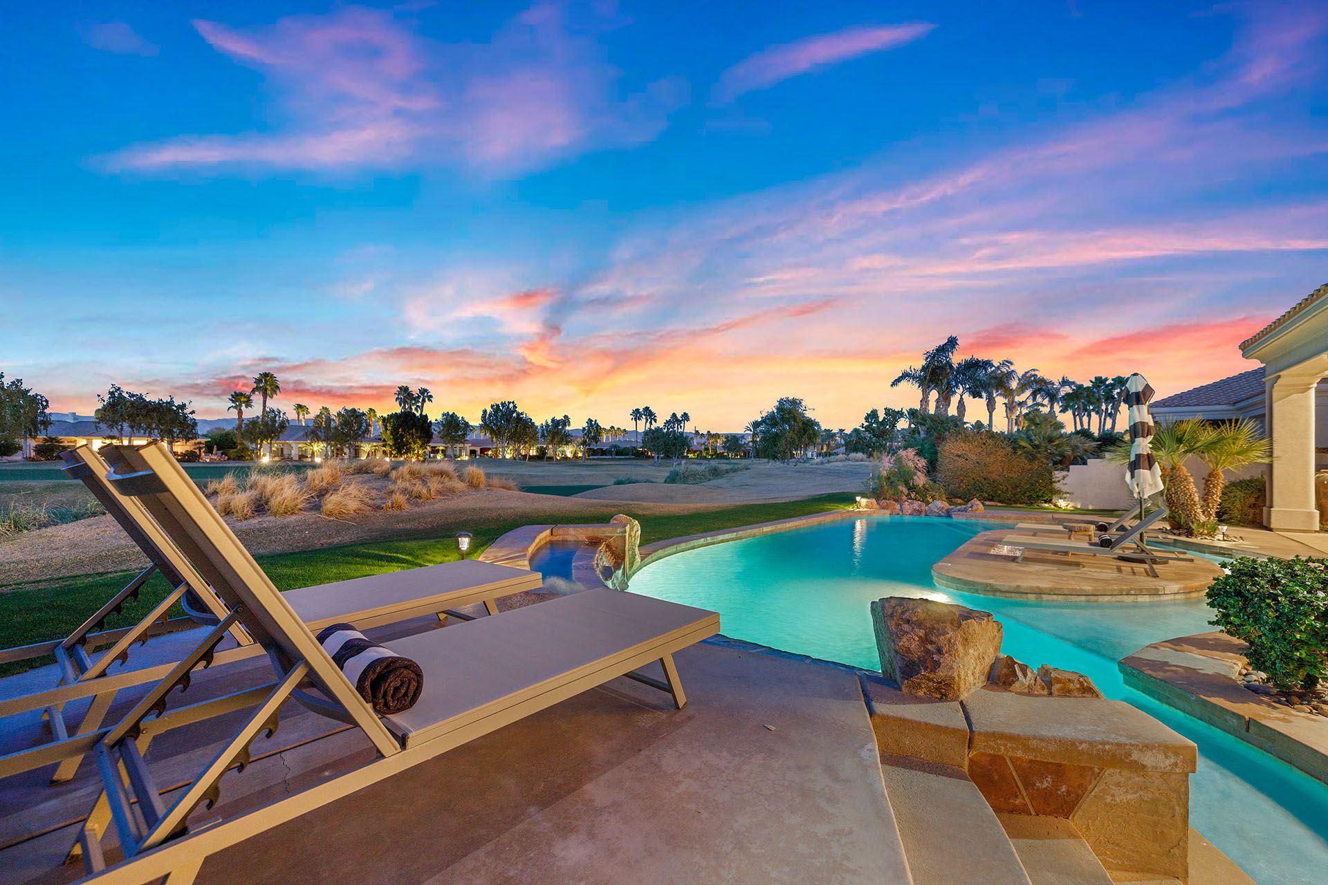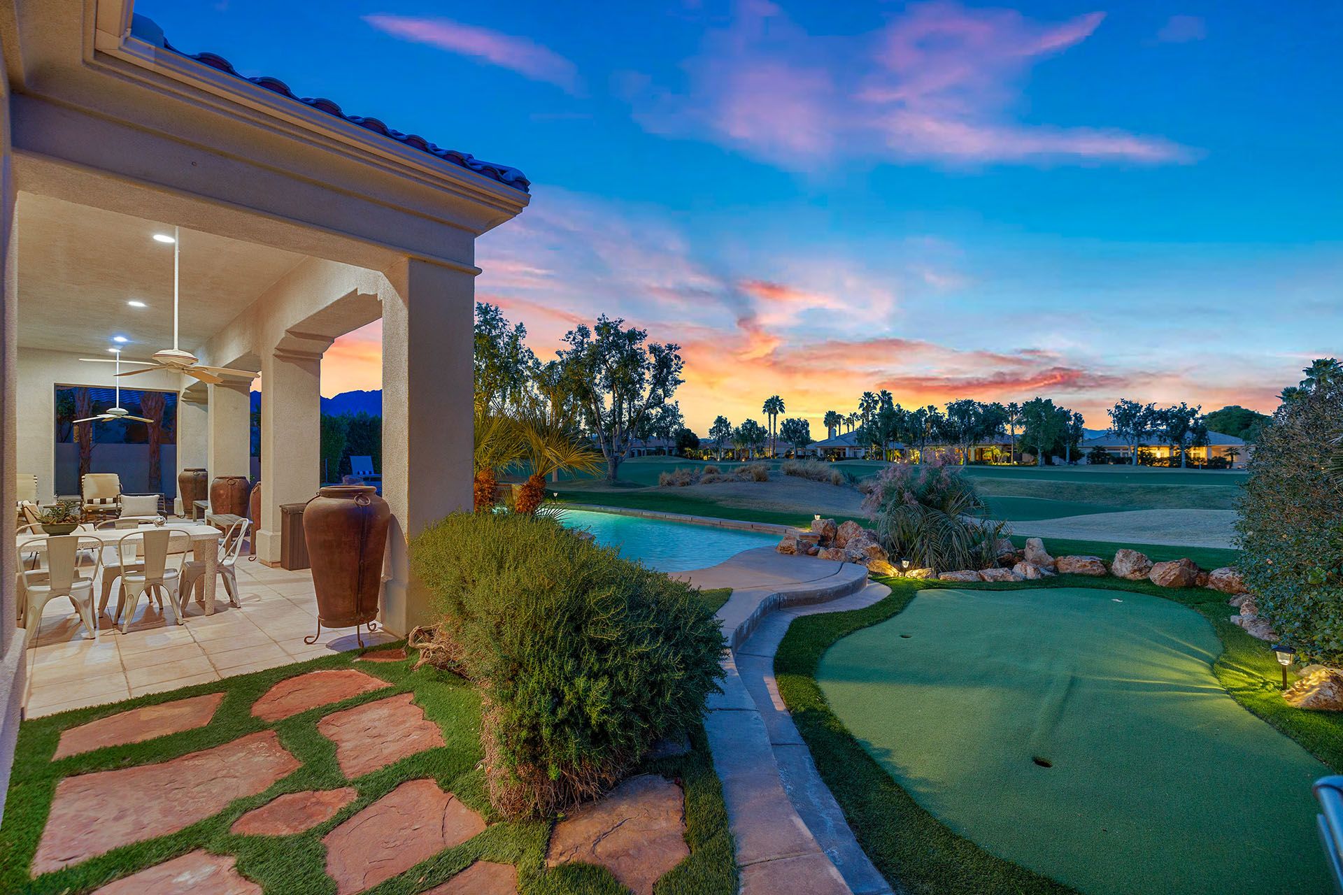 Golf lovers, rejoice. This luxurious home is located on a fairway and comes with its very own putting green in the garden. There's also a swimming pool with a cascading waterfall out here, as well as a barbecue and seating – so you can go from swimming to grilling in moments, and there's even a firepit for cosy after-dinner drinks. There's also a large dining table inside for shared meals, and you can top off the evening in the billiards room while the little ones sleep soundly in the bunk bed room. When you're ready to explore, you'll find restaurants, shopping districts, and hiking trails a short drive away.