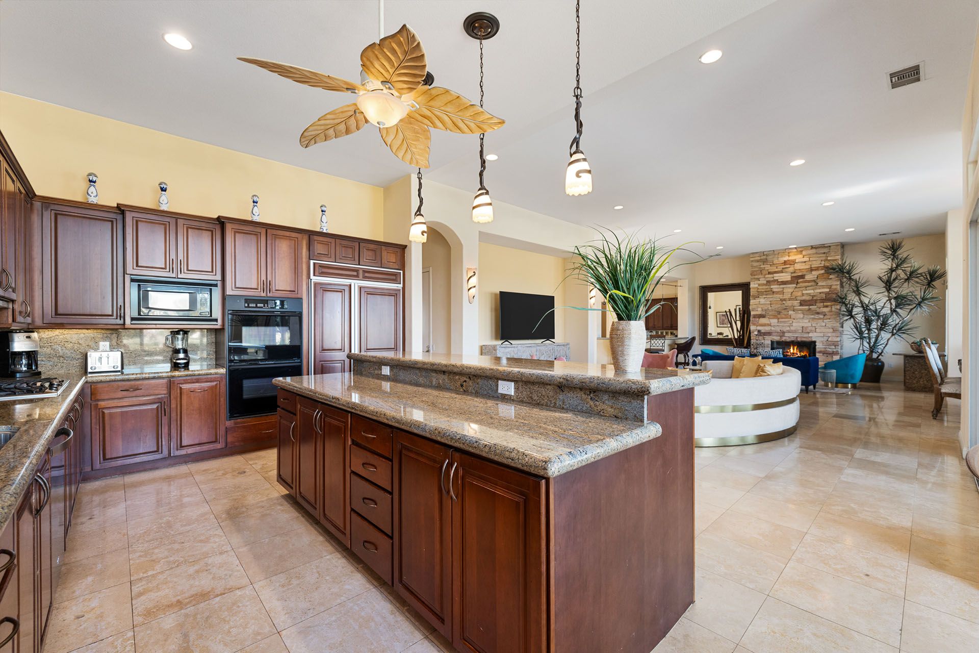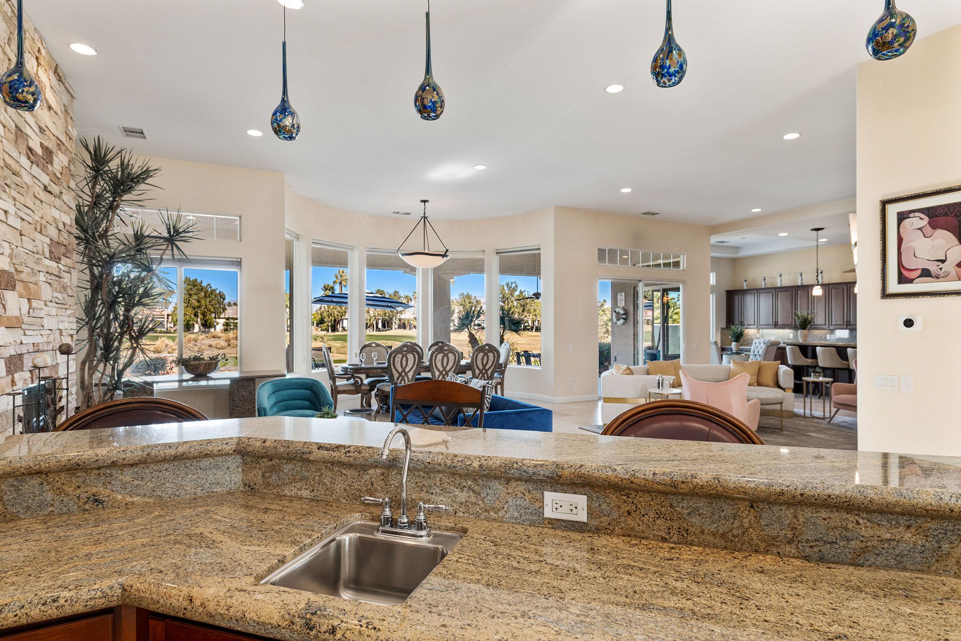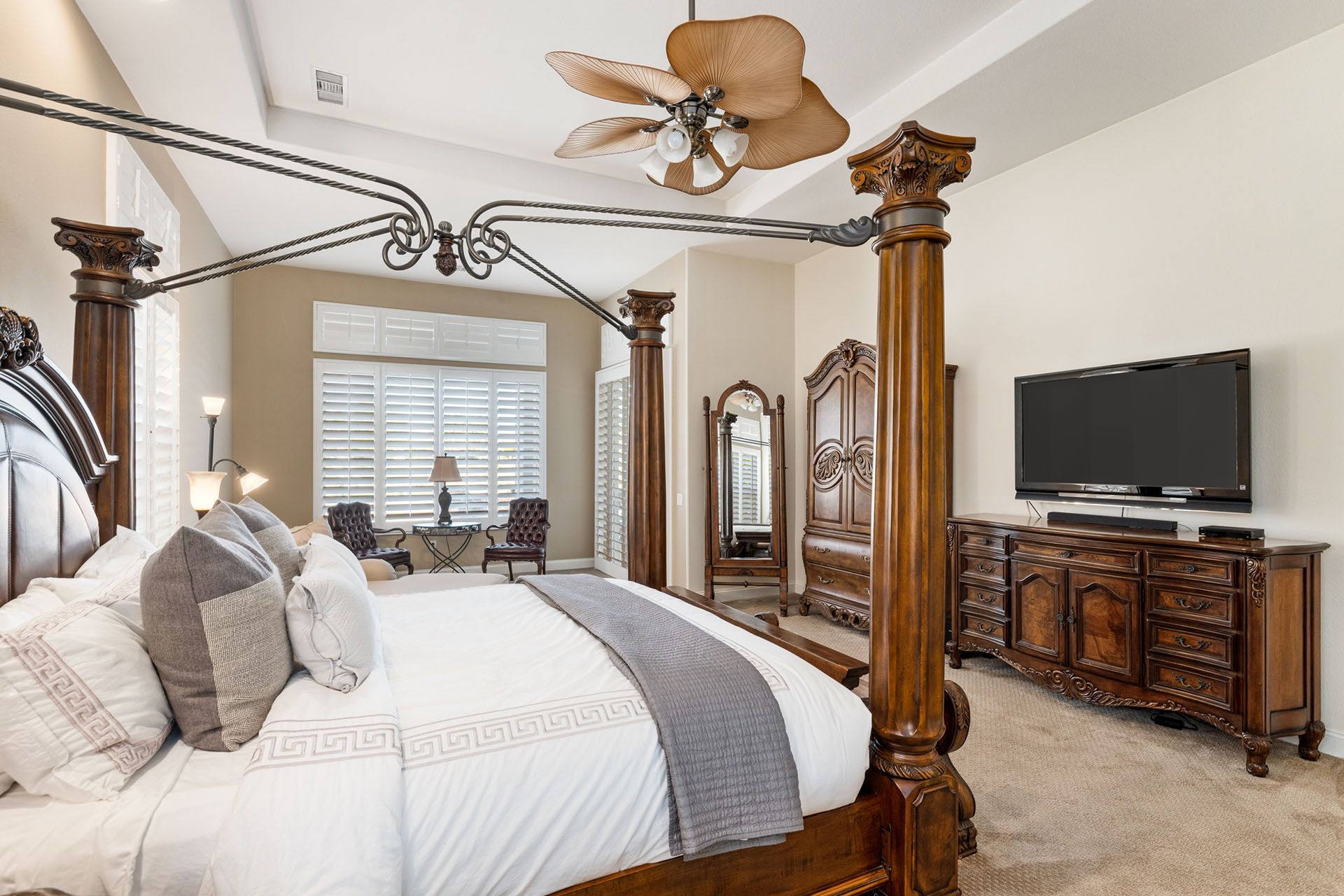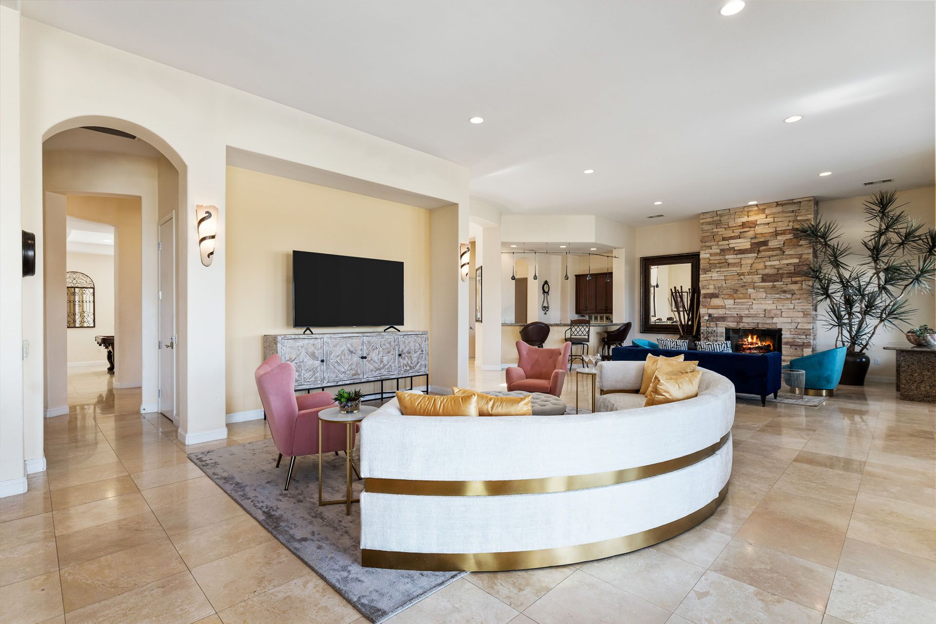 Golf lovers, rejoice. This luxurious home is located on a fairway and comes with its very own putting green in the garden. There's also a swimming pool with a cascading waterfall out here, as well as a barbecue and seating – so you can go from swimming to grilling in moments, and there's even a firepit for cosy after-dinner drinks. There's also a large dining table inside for shared meals, and you can top off the evening in the billiards room while the little ones sleep soundly in the bunk bed room. When you're ready to explore, you'll find restaurants, shopping districts, and hiking trails a short drive away.