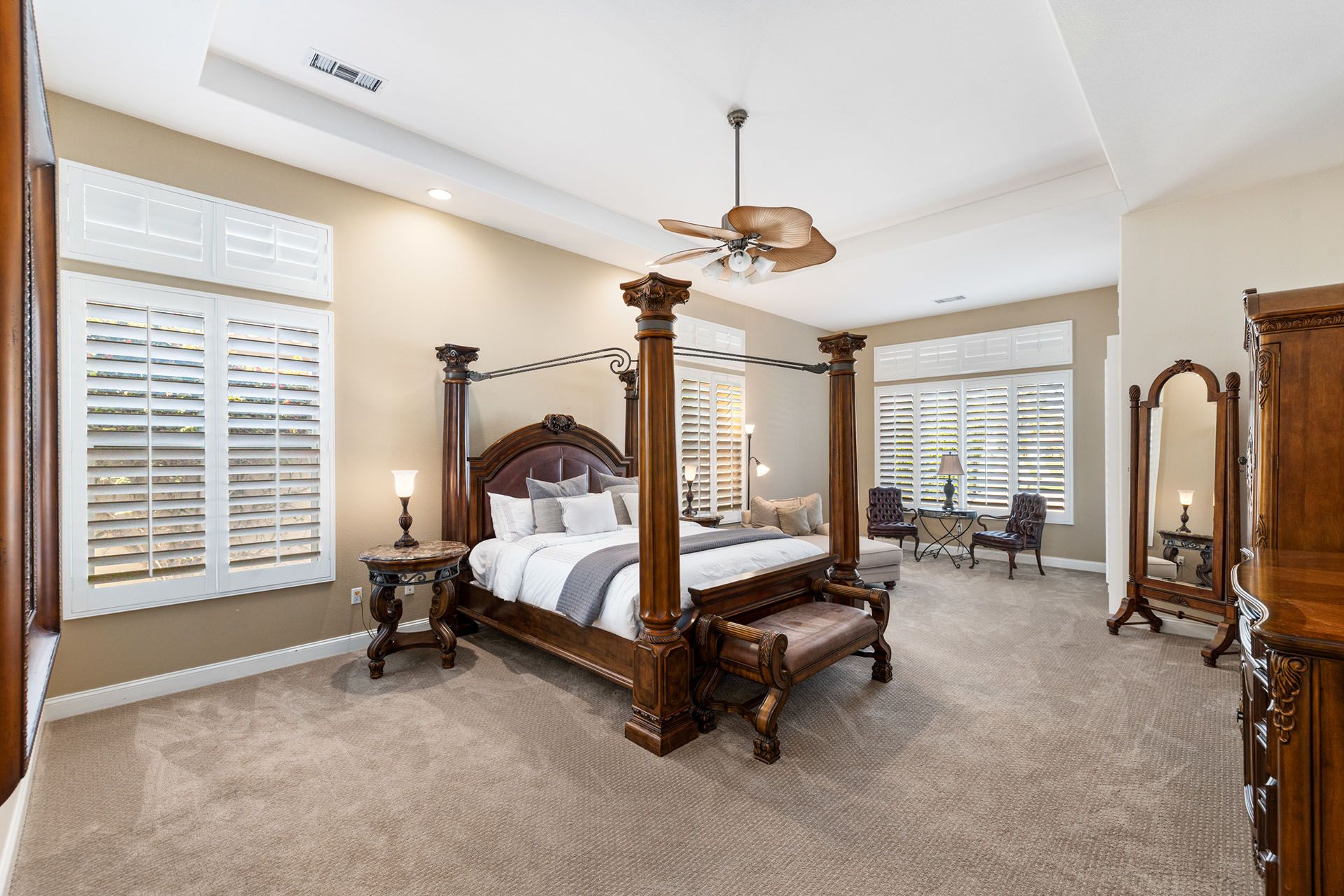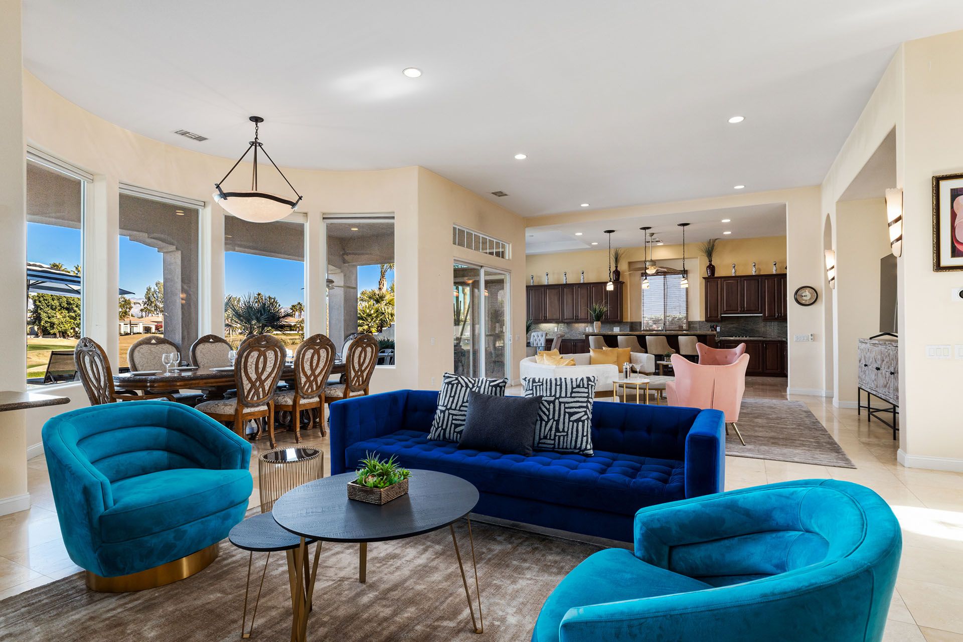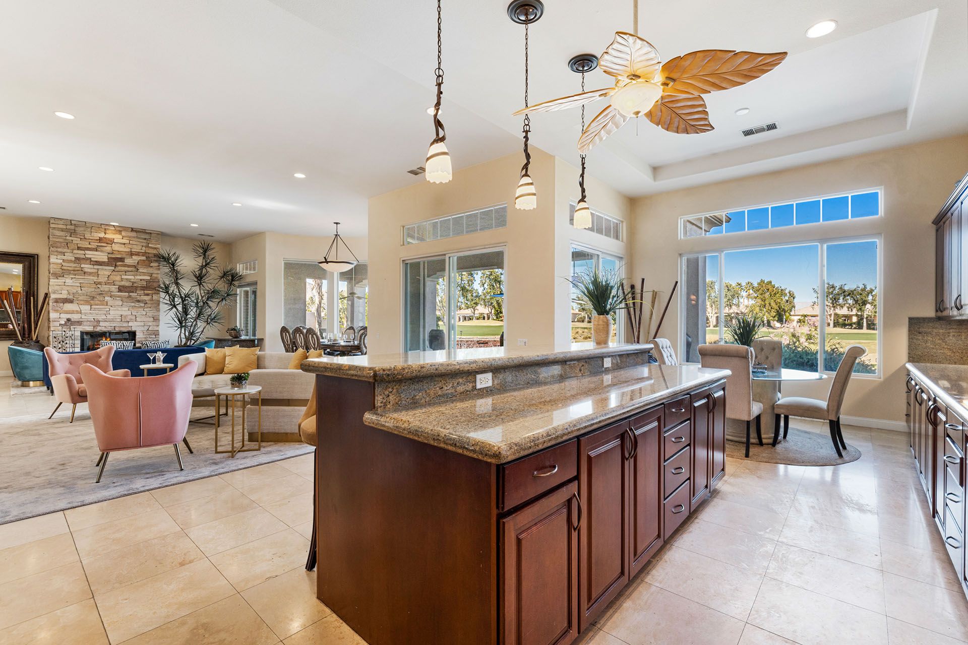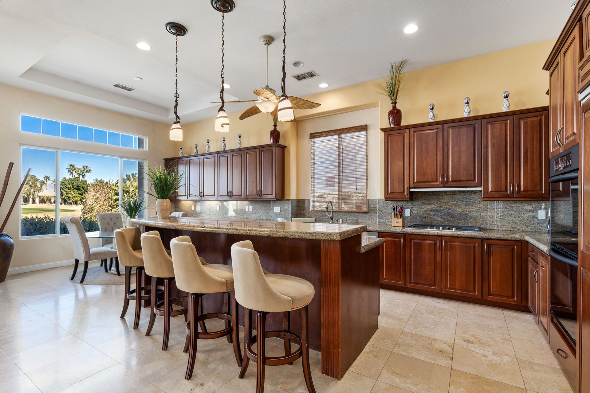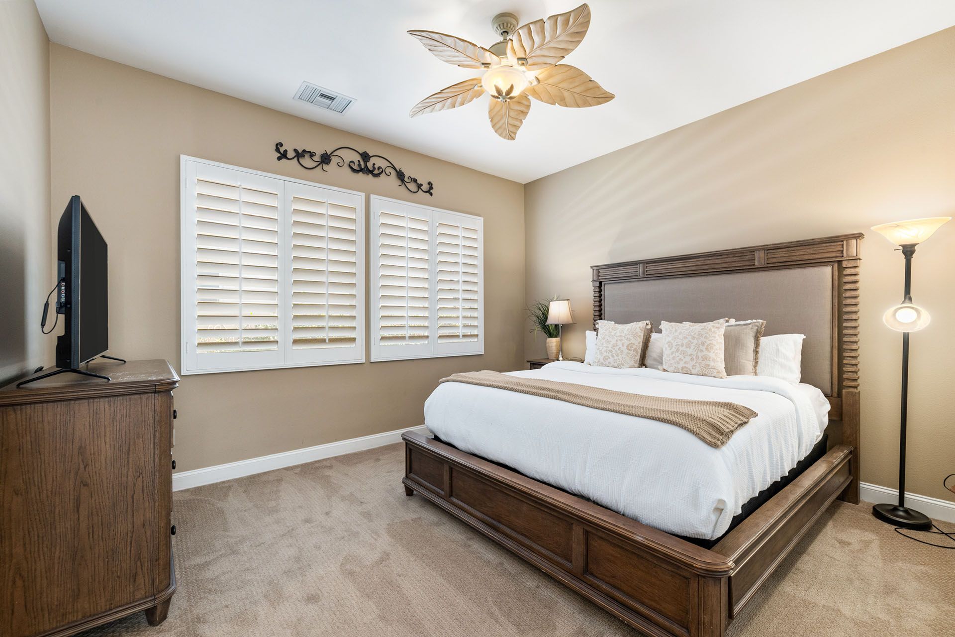 Golf lovers, rejoice. This luxurious home is located on a fairway and comes with its very own putting green in the garden. There's also a swimming pool with a cascading waterfall out here, as well as a barbecue and seating – so you can go from swimming to grilling in moments, and there's even a firepit for cosy after-dinner drinks. There's also a large dining table inside for shared meals, and you can top off the evening in the billiards room while the little ones sleep soundly in the bunk bed room. When you're ready to explore, you'll find restaurants, shopping districts, and hiking trails a short drive away.