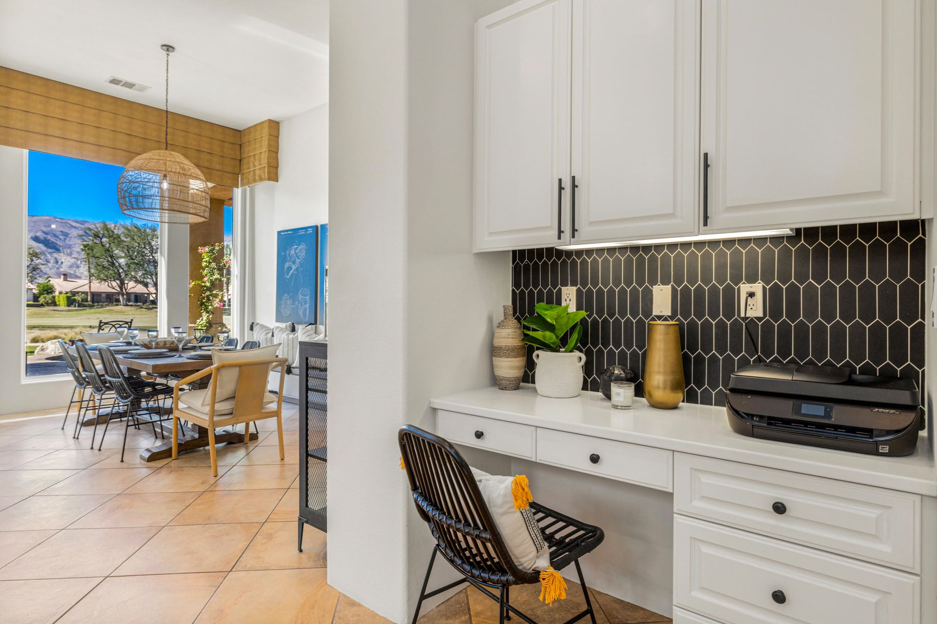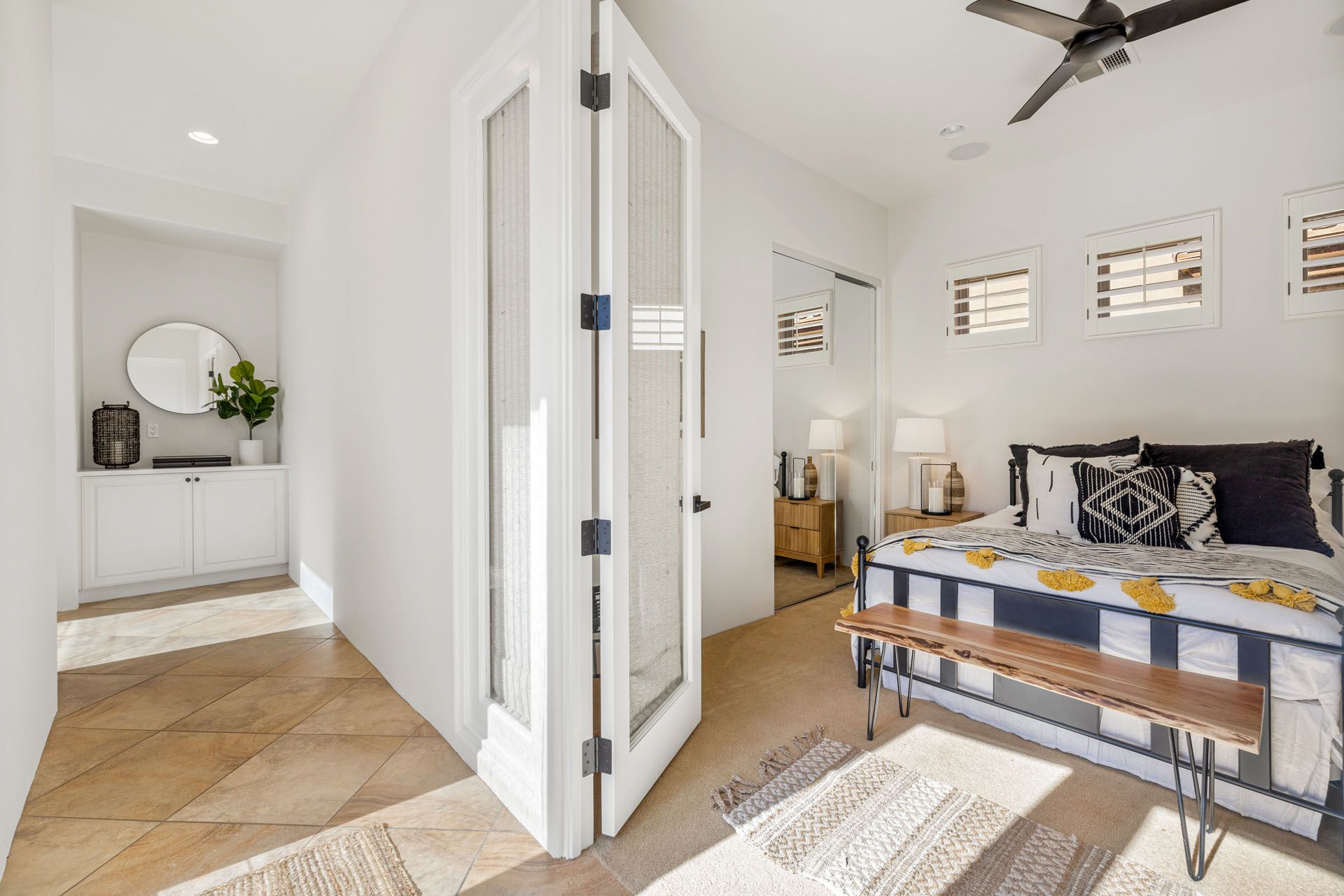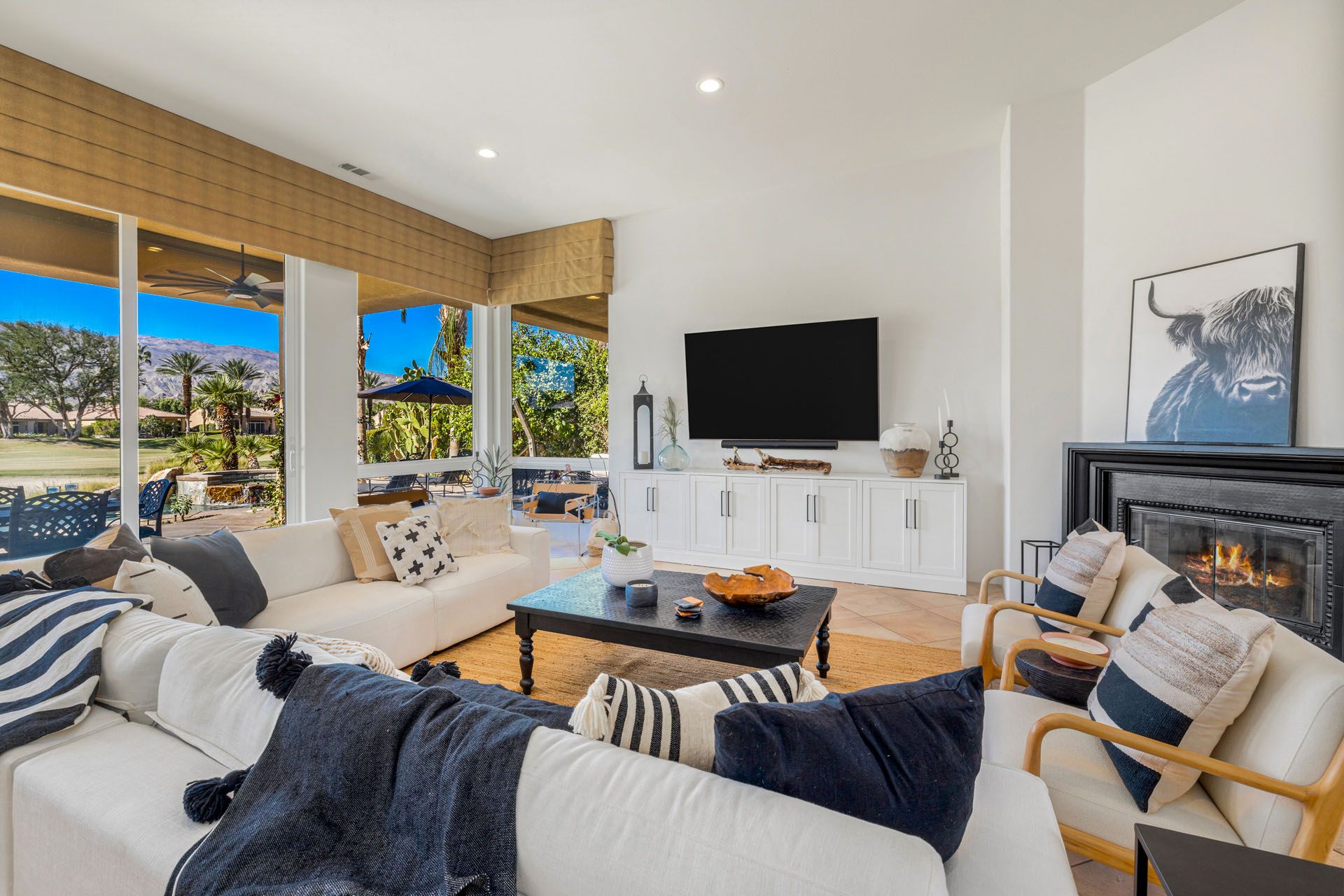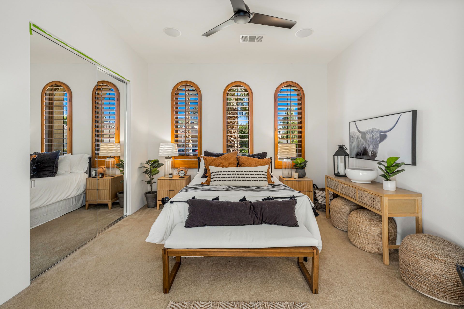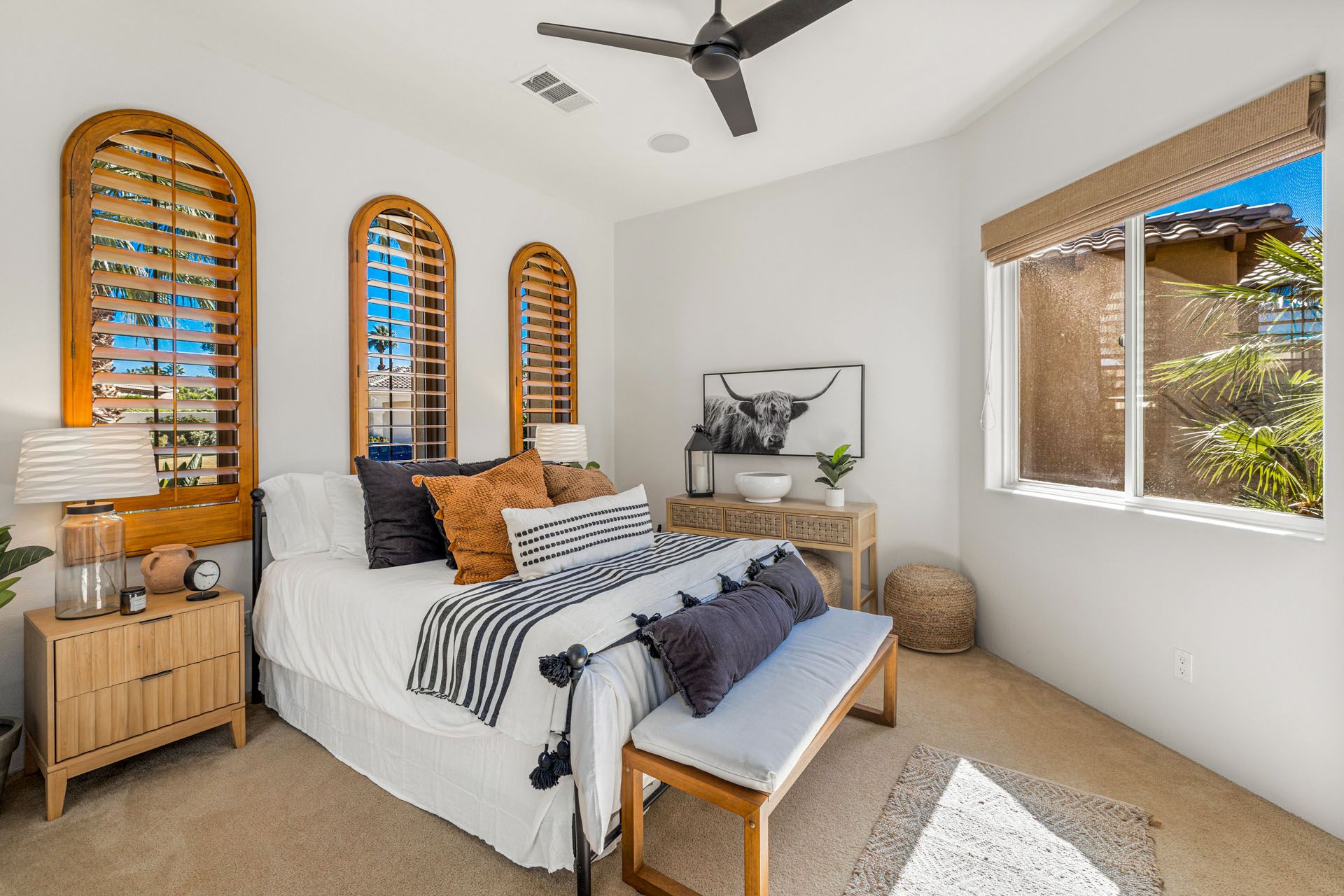 This desert home is all about wide horizons and effortless living. From the saltwater pool you can watch the sun dip behind the mountains, or linger by the firepit as the cool desert night settles in. Inside, sunlight streams through big windows onto generous spaces made for gathering – cocktails at the bar, a game of billiards, or a quiet dinner together. Bedrooms feel like private retreats, each one designed for rest after a day on the course, hiking through the desert, or visiting the restaurants and eateries of nearby Palm Springs.