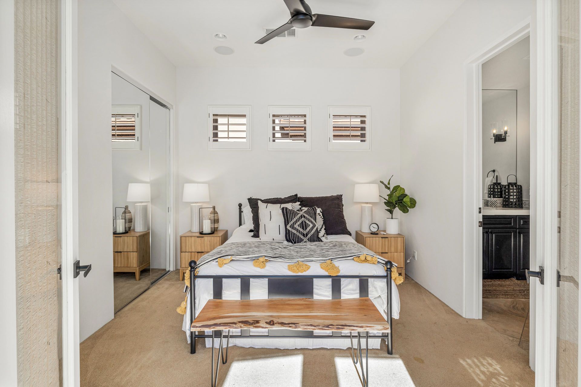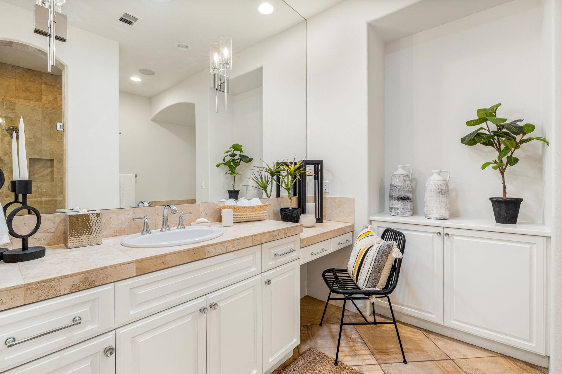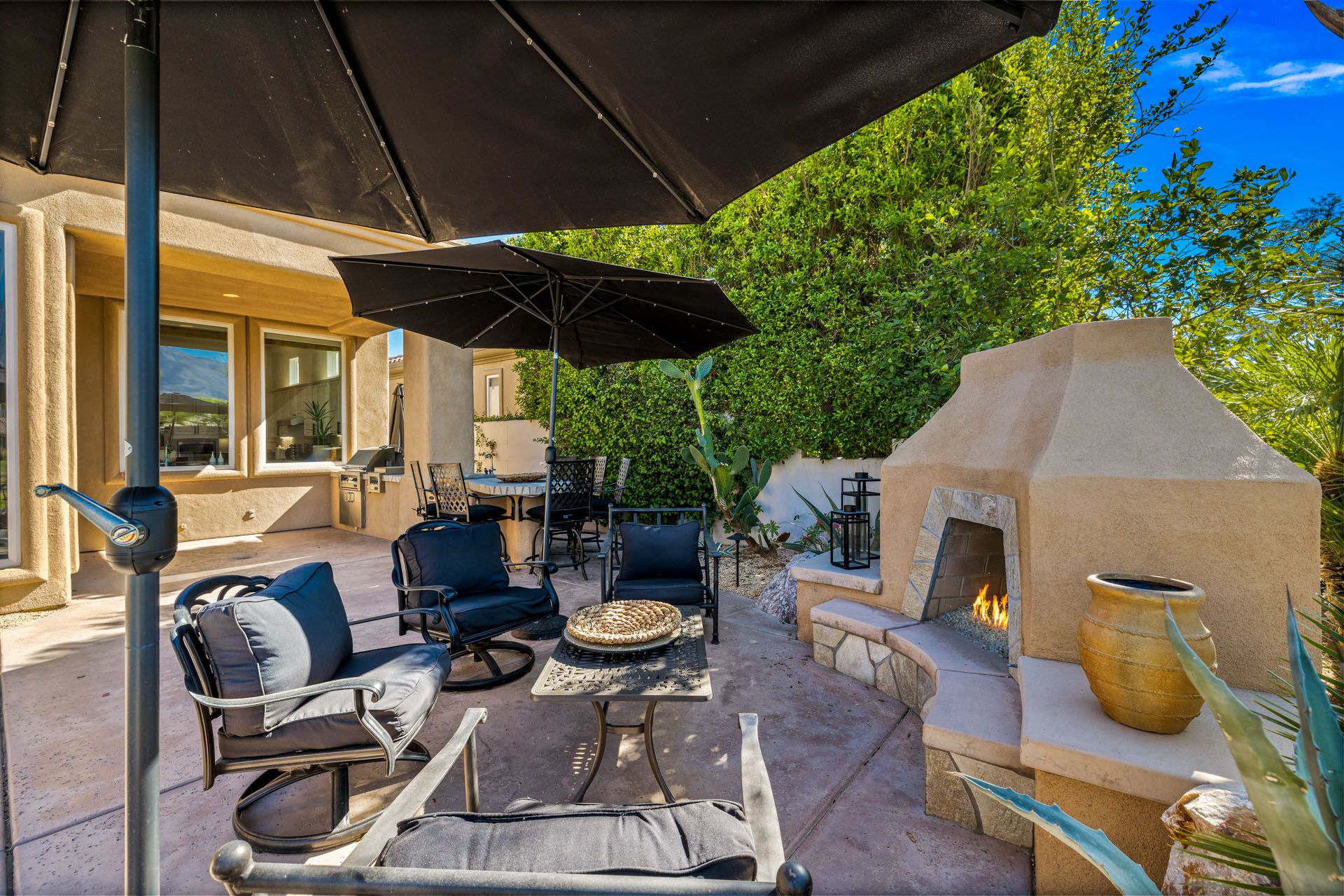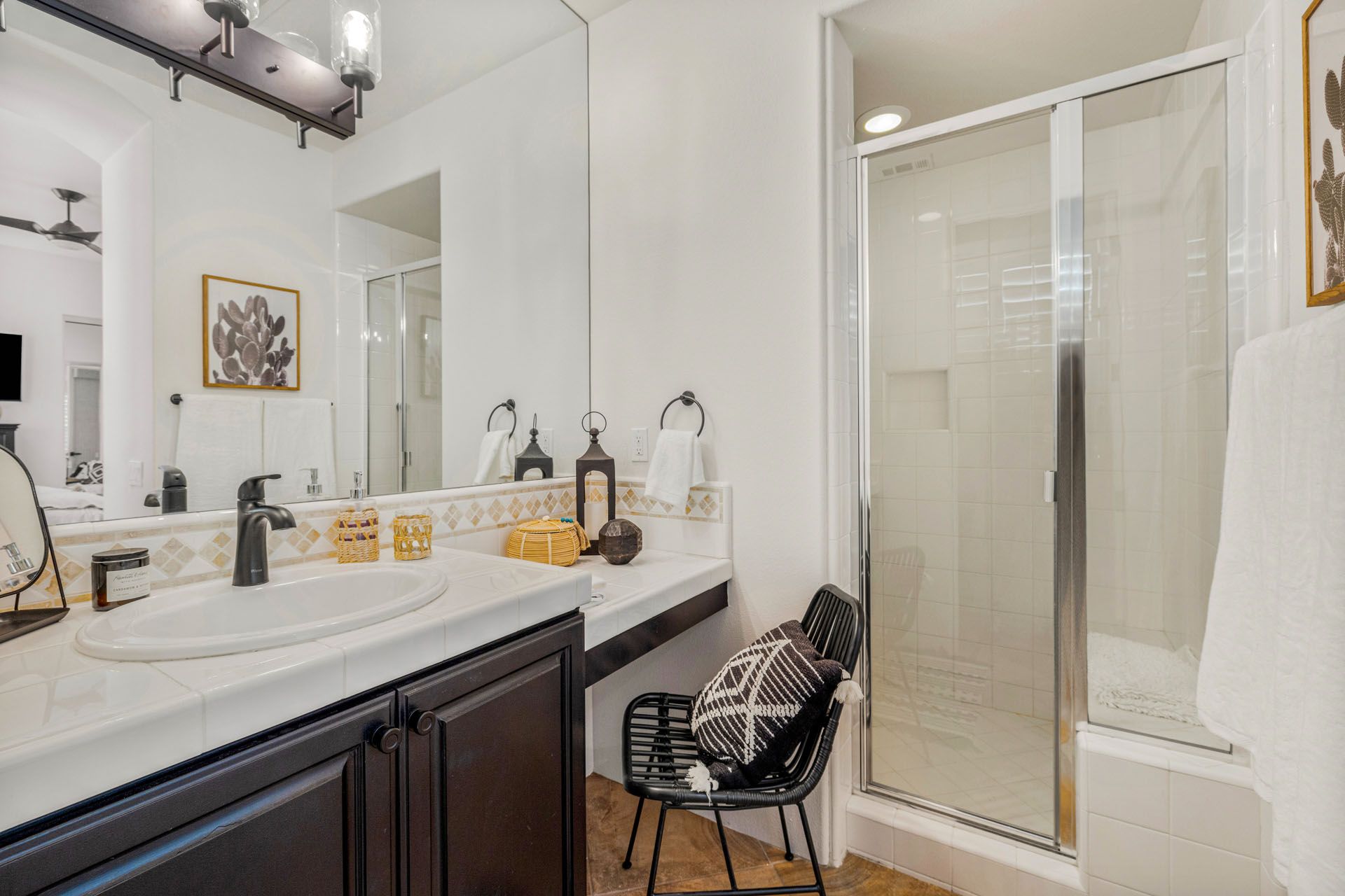 This desert home is all about wide horizons and effortless living. From the saltwater pool you can watch the sun dip behind the mountains, or linger by the firepit as the cool desert night settles in. Inside, sunlight streams through big windows onto generous spaces made for gathering – cocktails at the bar, a game of billiards, or a quiet dinner together. Bedrooms feel like private retreats, each one designed for rest after a day on the course, hiking through the desert, or visiting the restaurants and eateries of nearby Palm Springs.