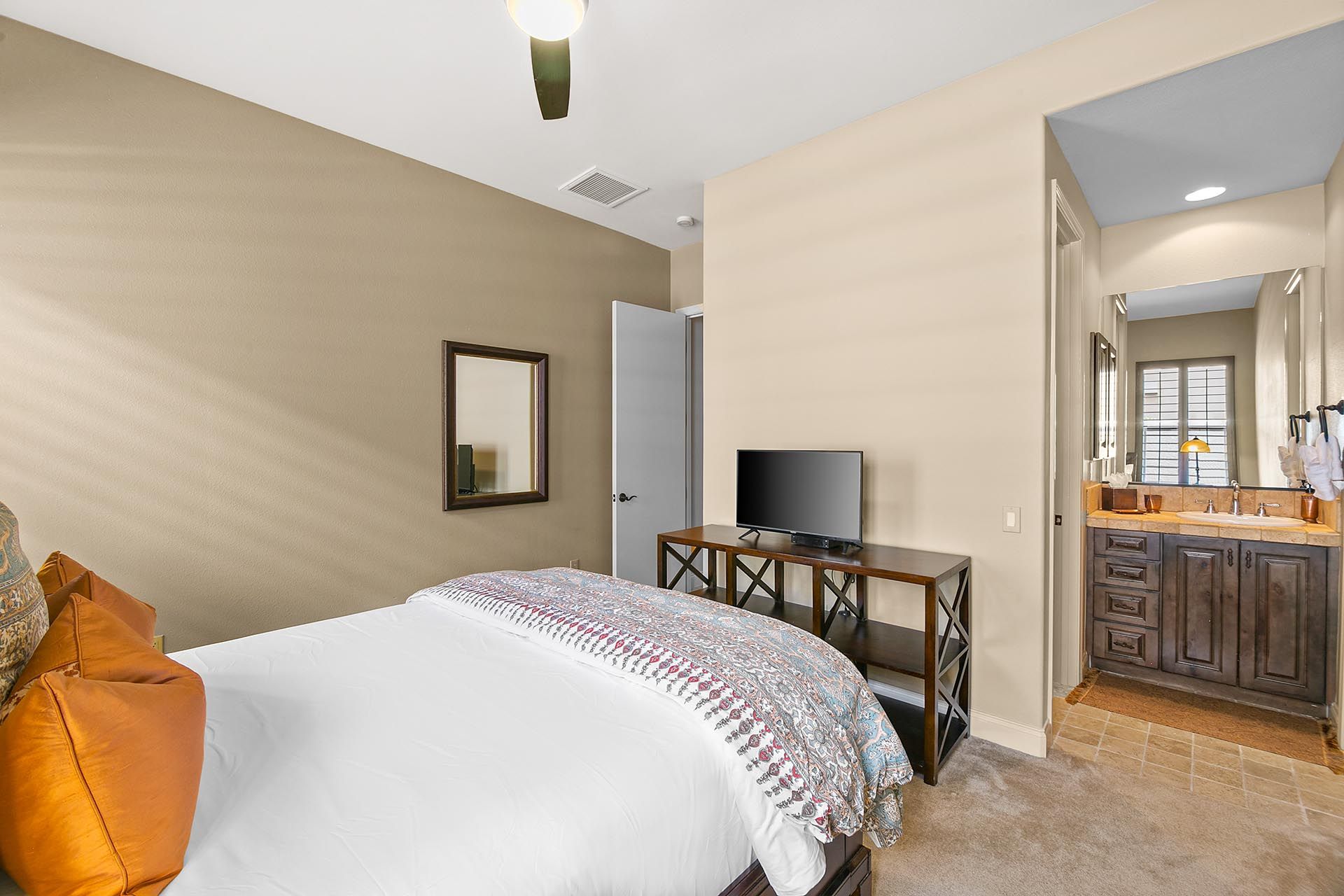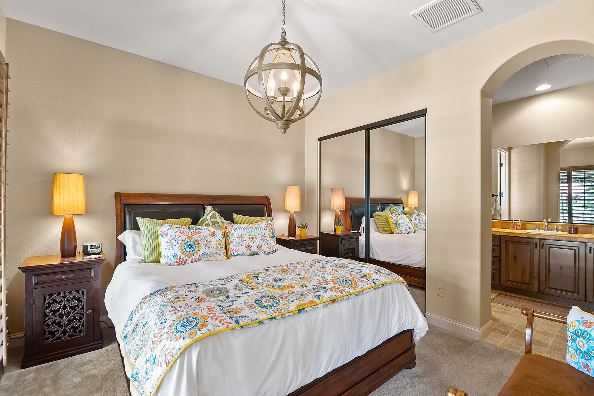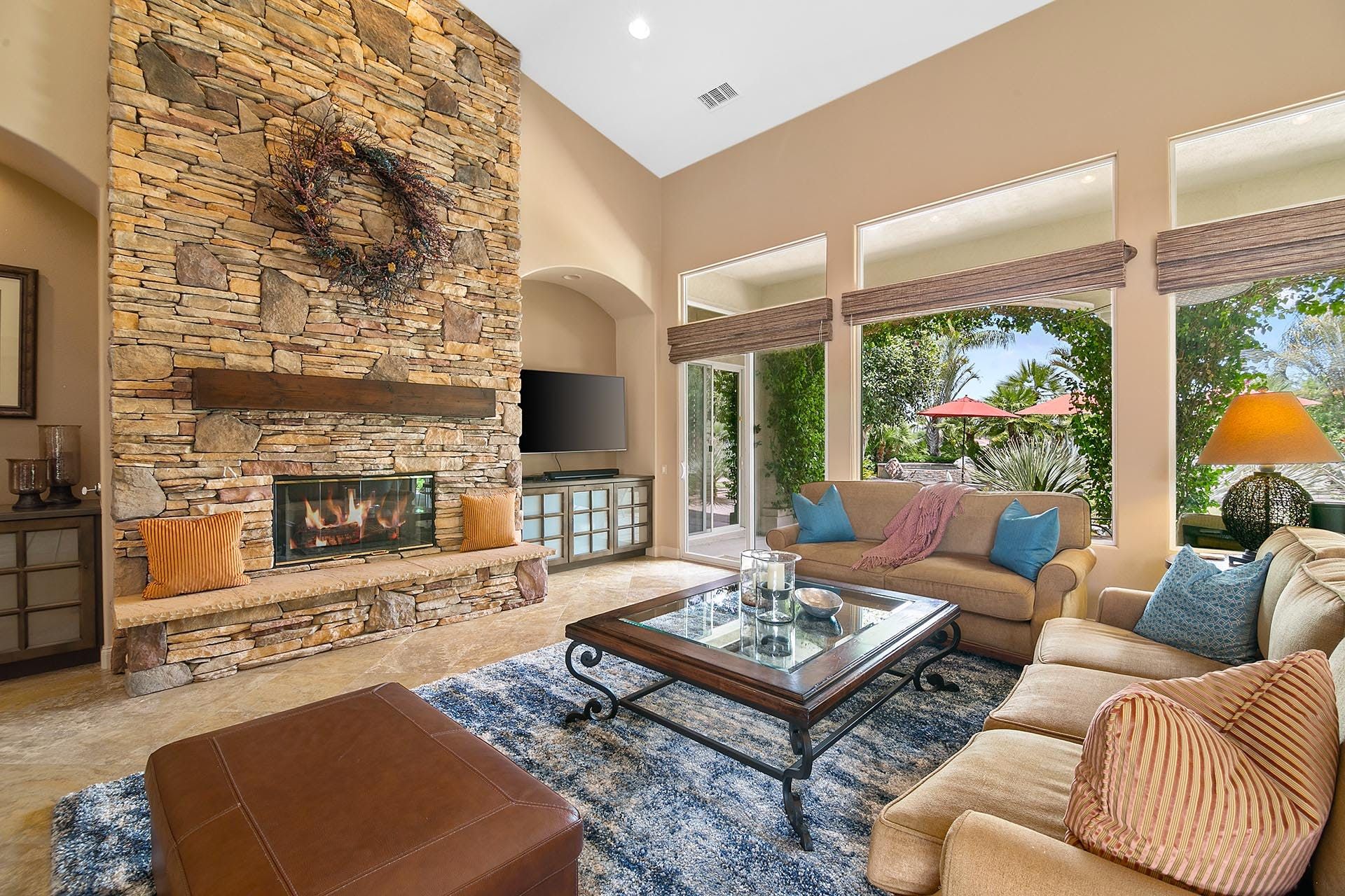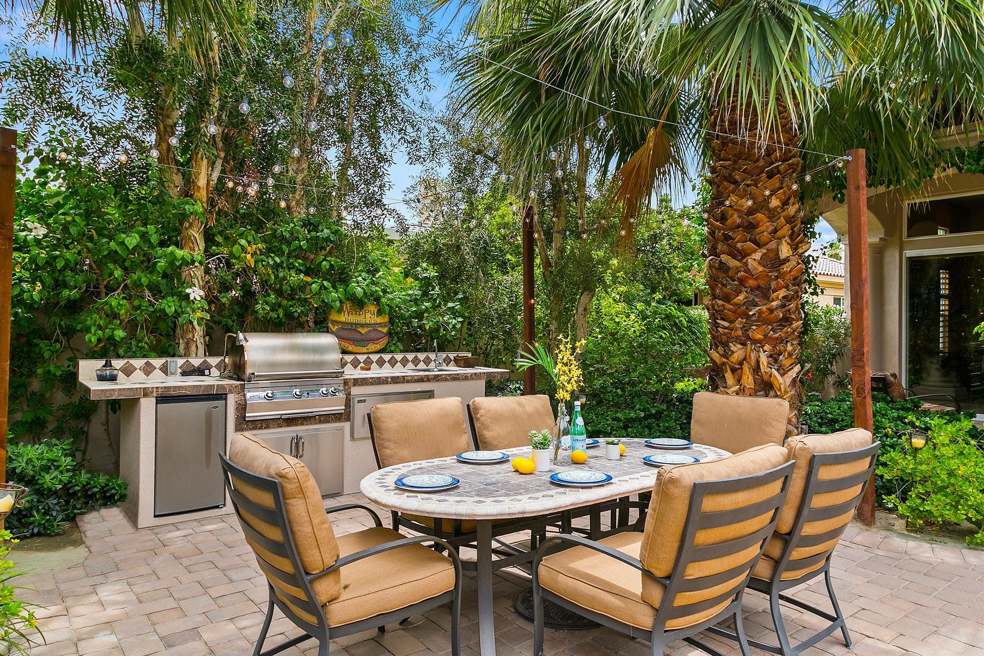 Spend days out in the lush garden, with its tropical hibiscus, citrus, bird of paradise and, of course, palm trees. While there’s plenty of places to sit, you’ll probably be moving from the pool to the Jacuzzi, to the sun lounger and then back to the pool again. Toss a round of cornhole with friends or family, or play some golf on your own personal putting green. When the sun sets and the desert night air settles in, light up the grill and fire pit for a cosy dinner under the stars. Inside, you’ll find the home is equally well set up for entertaining – the enormous kitchen is ideal for fixing up elaborate dinners, while the pool table and wet bar provide the evening’s fun and games. Even from inside, you can enjoy the wonderful landscaping of the garden, with the large paneled living room windows providing a beautiful view of the inviting outdoors. The bedroom suites are roomy and the bathrooms are spotless, adding to the comfort found in every room of this thoughtfully designed home. Though it will be hard to run out of things to do here, it’s worth making time for the area’s hiking and shopping. The famous El Paseo shopping district is only fifteen minutes away and Empire Polo Grounds is just four minutes away. Plus, if you fancy a larger golf course, you’re already on one, with several more in the surrounding area.