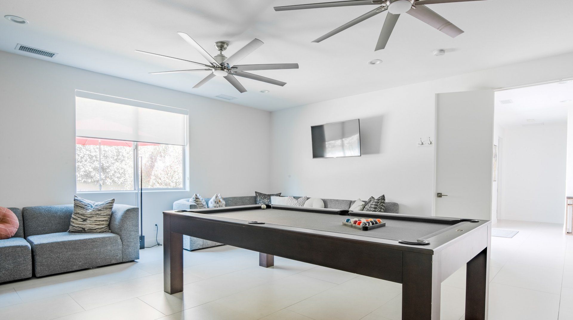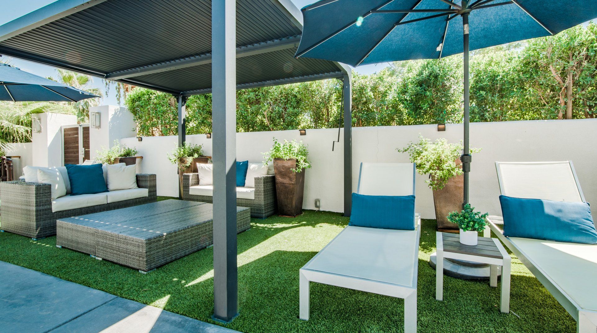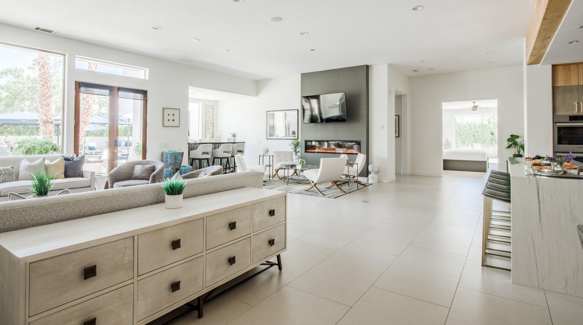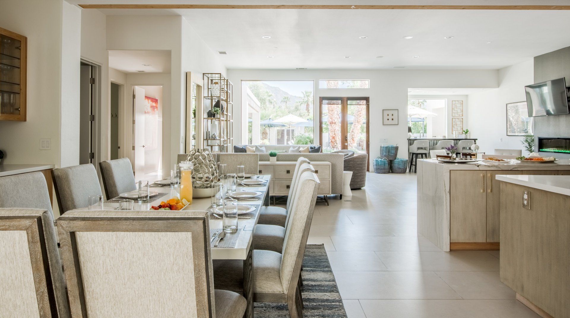 This villa subtly blends Mediterranean and modernist influences. Built for cloudless skies, this home uses geometrical shapes and sharp lines to emphasise light and shadow. The stylish back garden is a sun trap, and there are enough deckchairs to go around, so no one will be fighting for the best space. For those feeling the midday heat, you can even soak in rays on built-in pool beds or simply swim off any stickiness. Make lunch in the outdoor kitchen and enjoy it alfresco, while looking out over the breathtaking Santa Rosa mountains. The interior is just as stylish, blending sleek monochrome tones. The spacious open-plan living space has enough cosy corners for a large party, and you can easily find your own private spot to relax. With a pool table, miniature putting green and TV room, there’s ample opportunity to entertain the children (and adults). Once you’ve exhausted these activities, head into La Quinta or visit the closeby PGA West Golf Course.