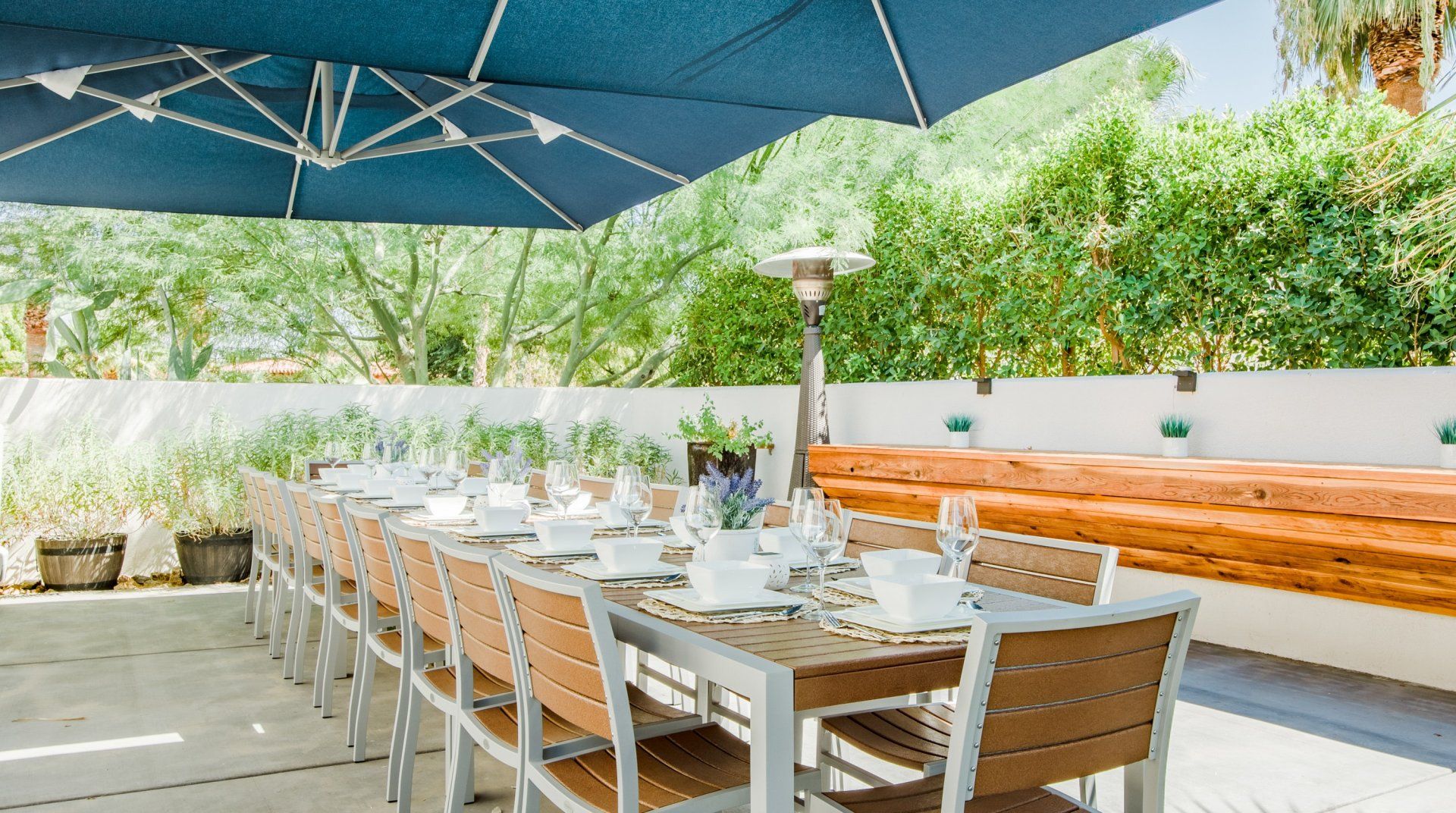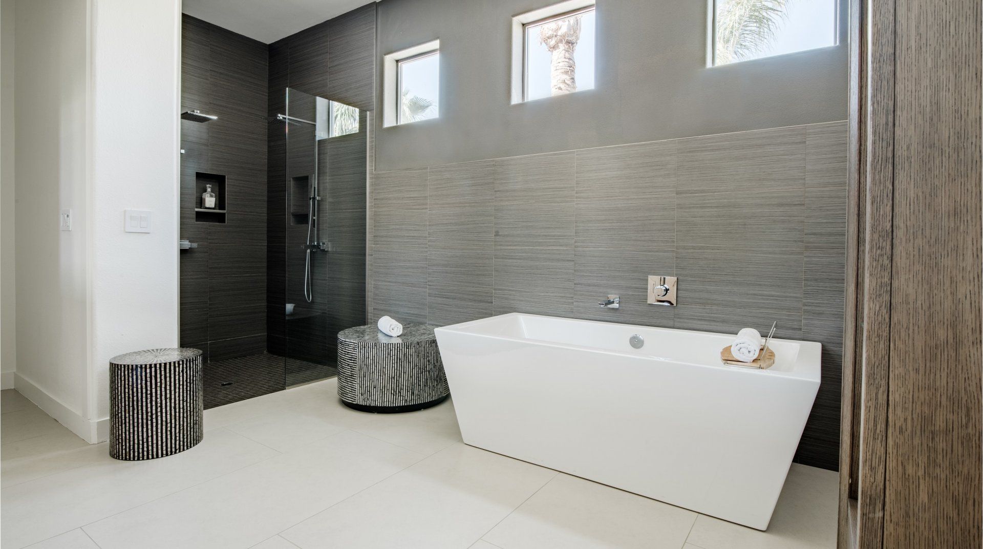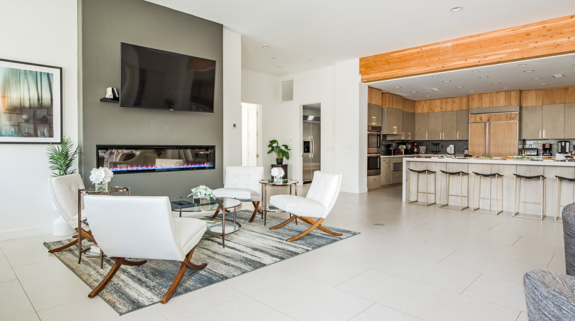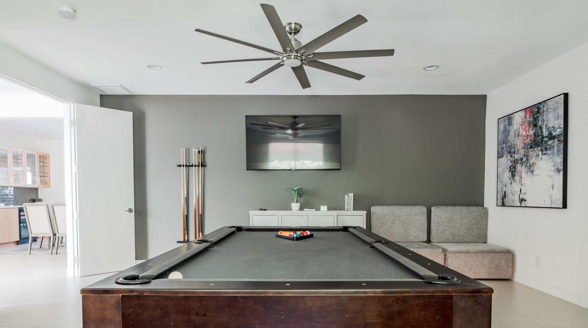 This villa subtly blends Mediterranean and modernist influences. Built for cloudless skies, this home uses geometrical shapes and sharp lines to emphasise light and shadow. The stylish back garden is a sun trap, and there are enough deckchairs to go around, so no one will be fighting for the best space. For those feeling the midday heat, you can even soak in rays on built-in pool beds or simply swim off any stickiness. Make lunch in the outdoor kitchen and enjoy it alfresco, while looking out over the breathtaking Santa Rosa mountains. The interior is just as stylish, blending sleek monochrome tones. The spacious open-plan living space has enough cosy corners for a large party, and you can easily find your own private spot to relax. With a pool table, miniature putting green and TV room, there’s ample opportunity to entertain the children (and adults). Once you’ve exhausted these activities, head into La Quinta or visit the closeby PGA West Golf Course.