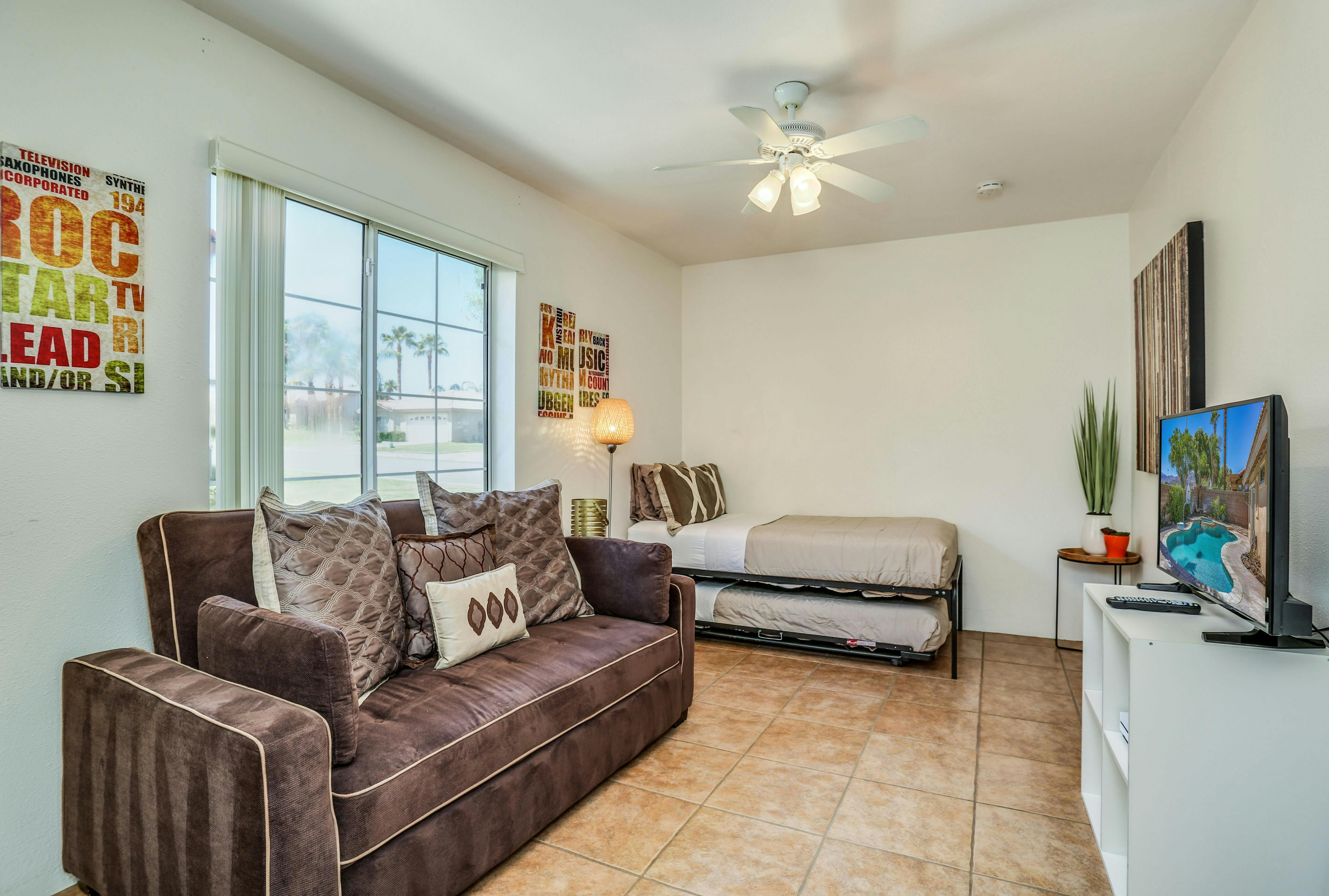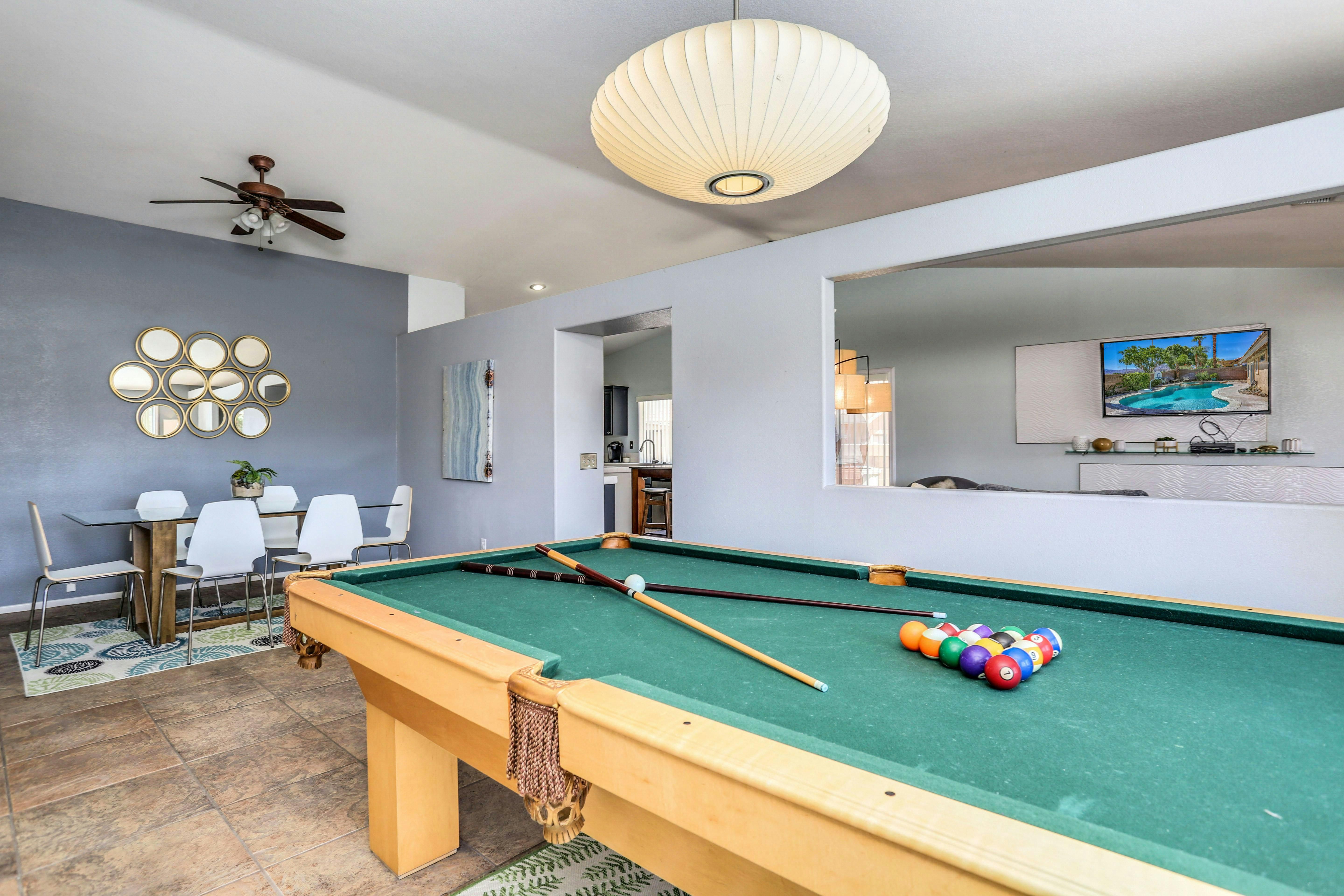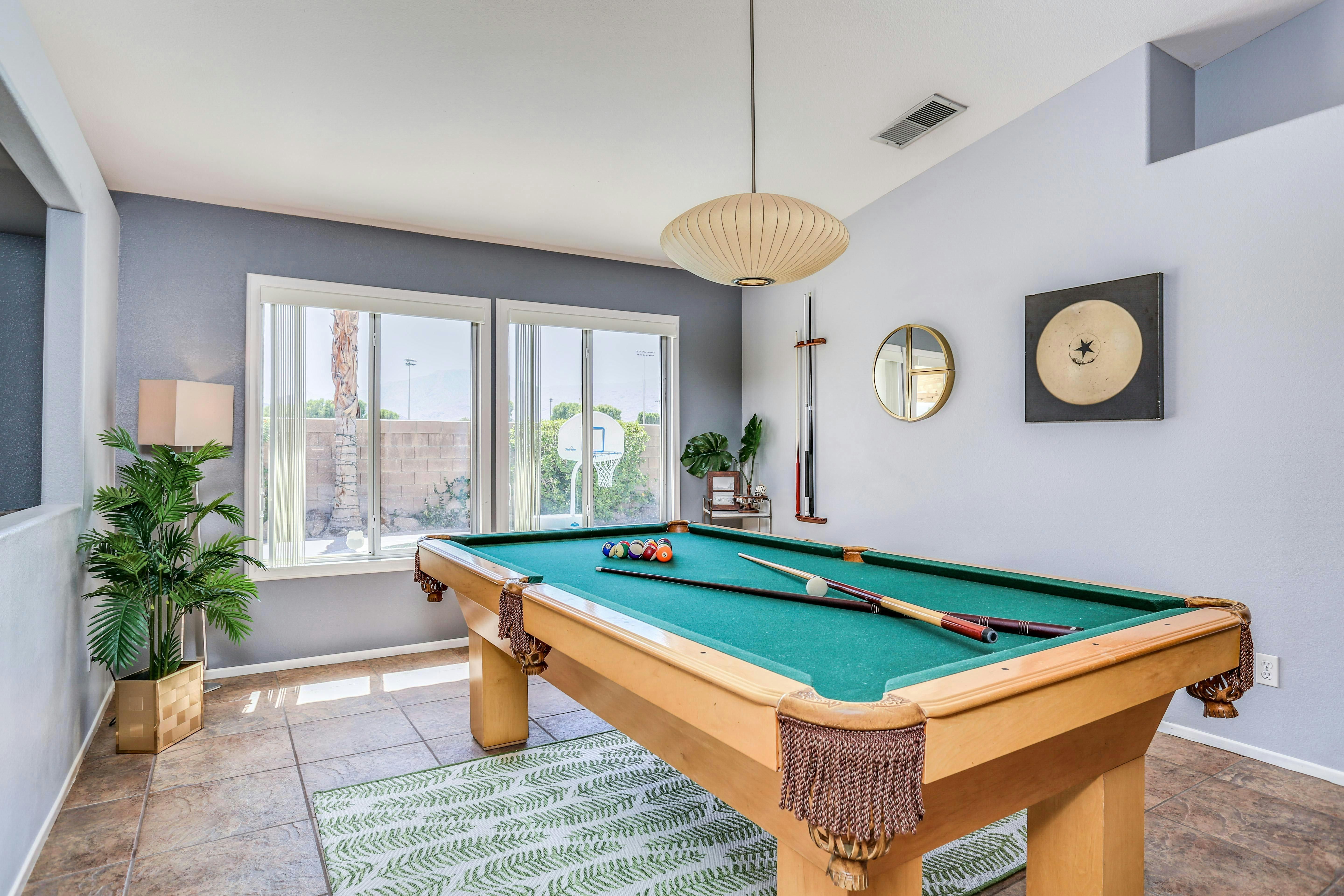 If you come to the desert, make it be for this diamond in the sand. You'll be mesmerized by its marvelous simplicity and breath-taking livability. This La Quinta home offers style for miles, yet is fully equipped to entertain and provide utter relaxation. Whether you're traveling with friends, enjoying a bachelor or bachelorette getaway, or bringing along the whole family, everything you need is waiting for you here. With four bedrooms, three bathrooms, and an epic outdoor space featuring two lounge chairs, it's truly an incredible and unforgettable place to call home. Enjoy amenities such as a billiard table, saltwater pool, saltwater hot tub, washer and dryer, Wi-Fi, propane BBQ, and a two-car garage. Located close to Coachella and Stagecoach festivals, this approximately 1938 sq ft La Quinta retreat promises a memorable stay in the heart of the desert.