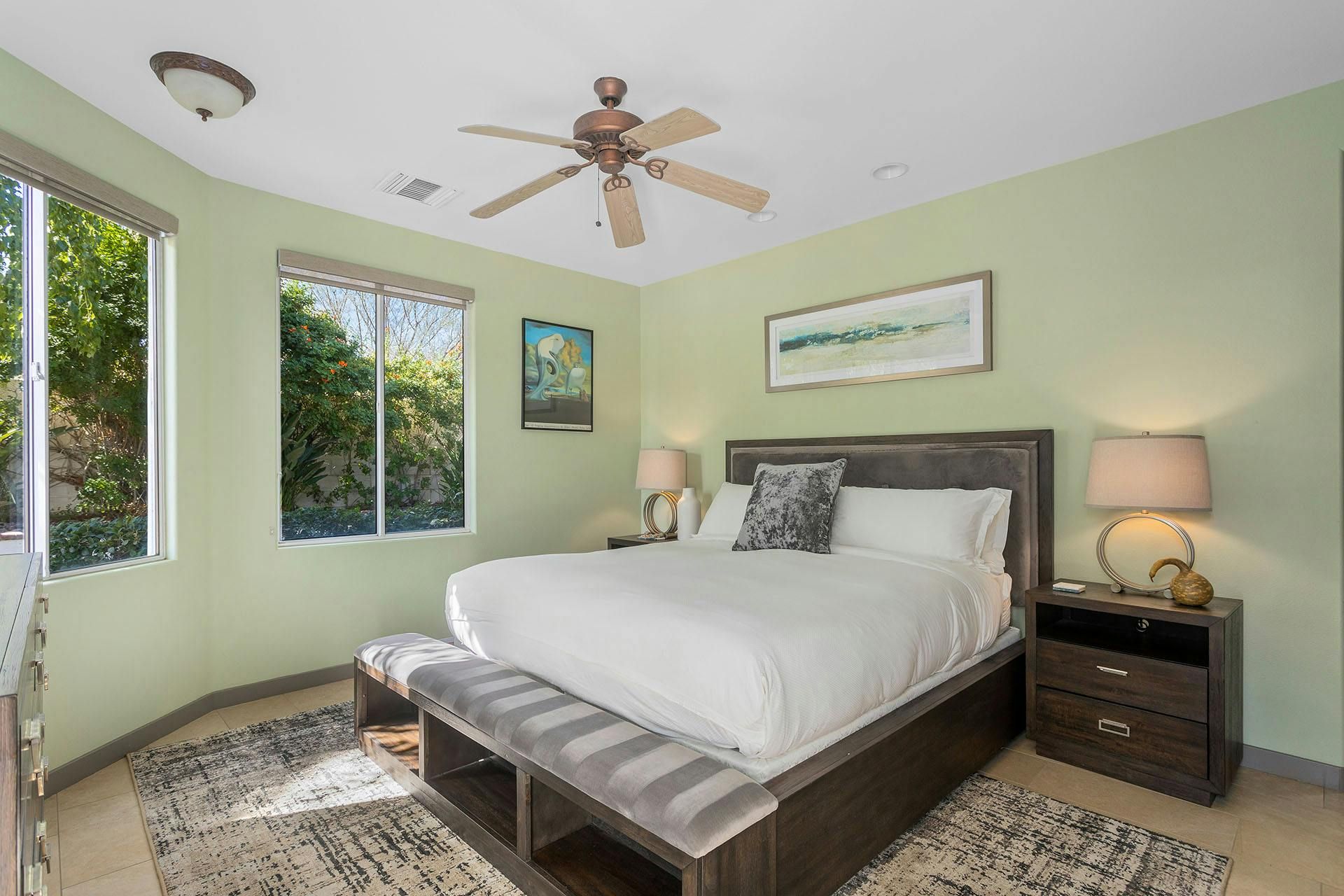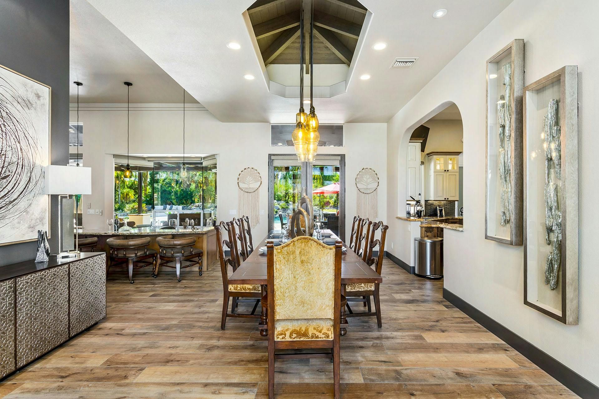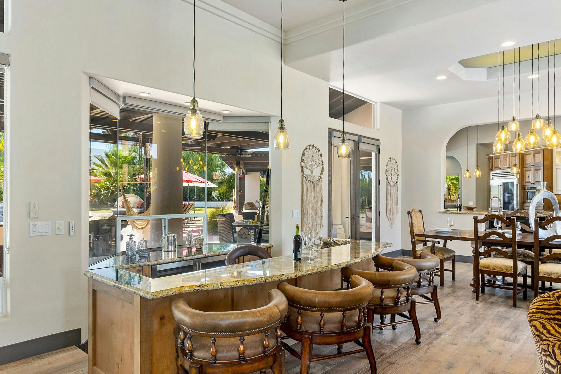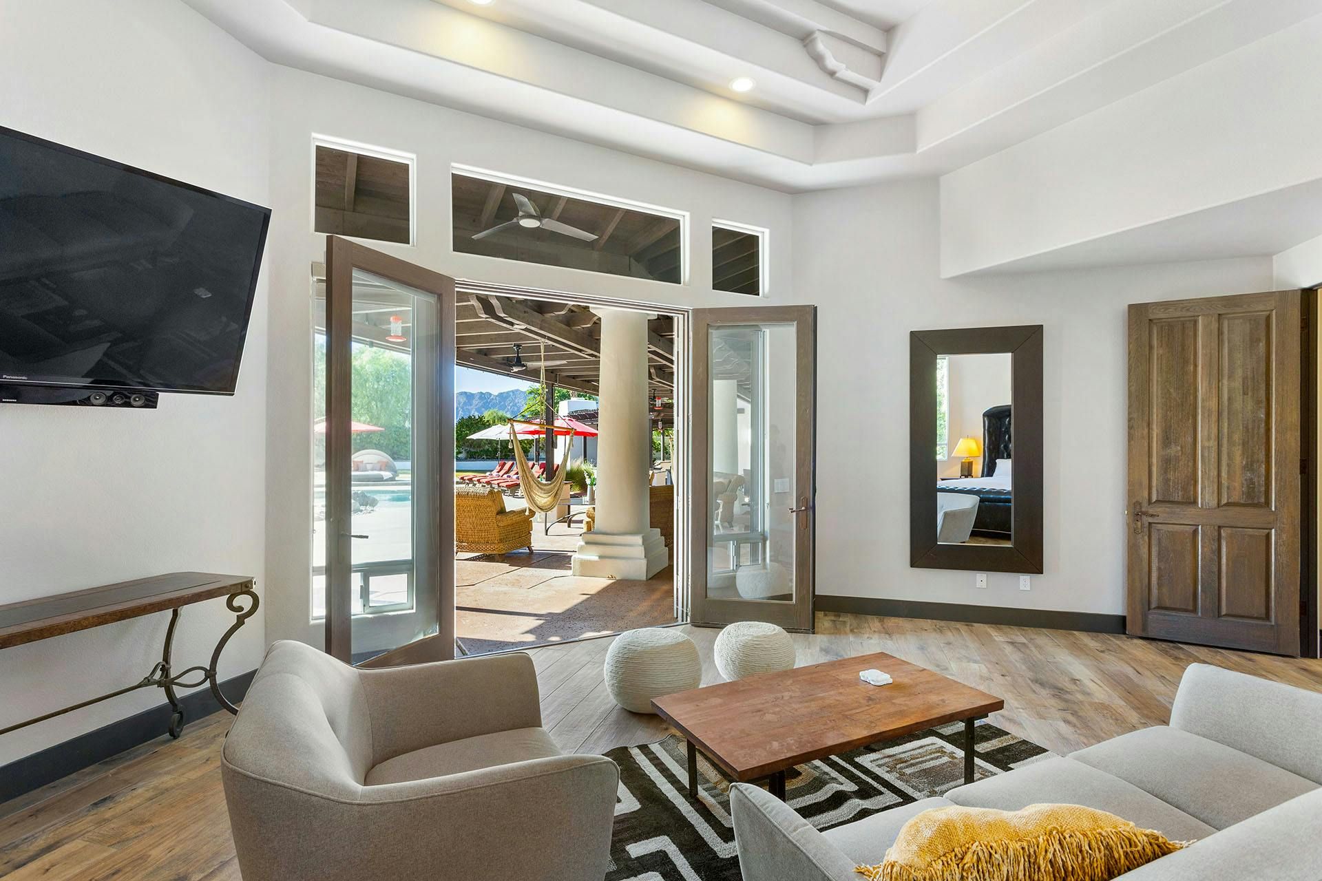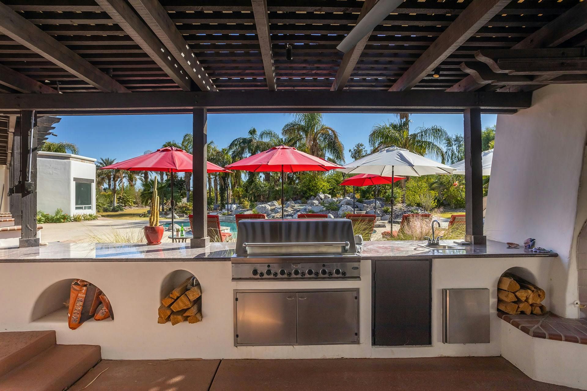 Fringed by mountains, this La Quinta villa captures the spirit of desert living at its most indulgent. Spend sun-drenched days floating in the lagoon-style pool, surrounded by palms and citrus trees, complete with a mini waterfall, two built-in barbecues and a misting system to keep you cool. There are three bedrooms in the main house, while a separate two-bedroom casita offers privacy for friends or family. Beyond the gates, you’ll find world-class golf courses, hiking trails through the Santa Rosa Mountains, and the boutiques and restaurants of Old Town La Quinta — with Palm Springs just a thirty-minute drive away.