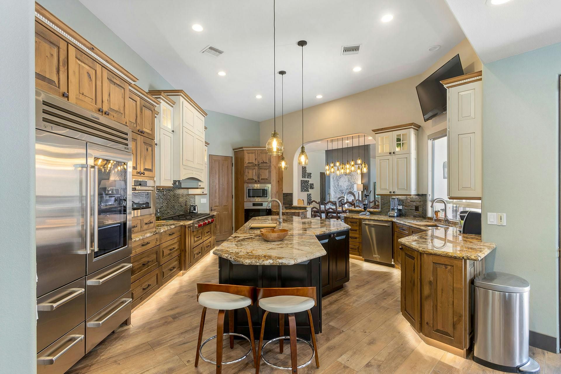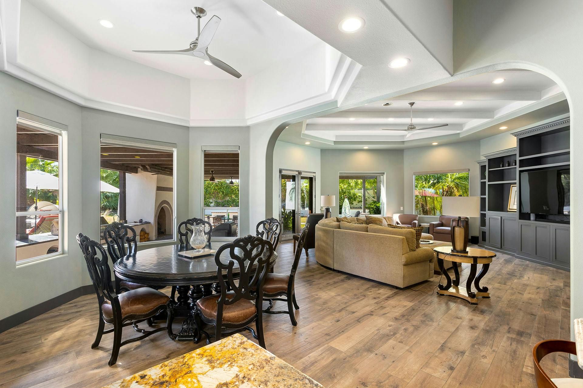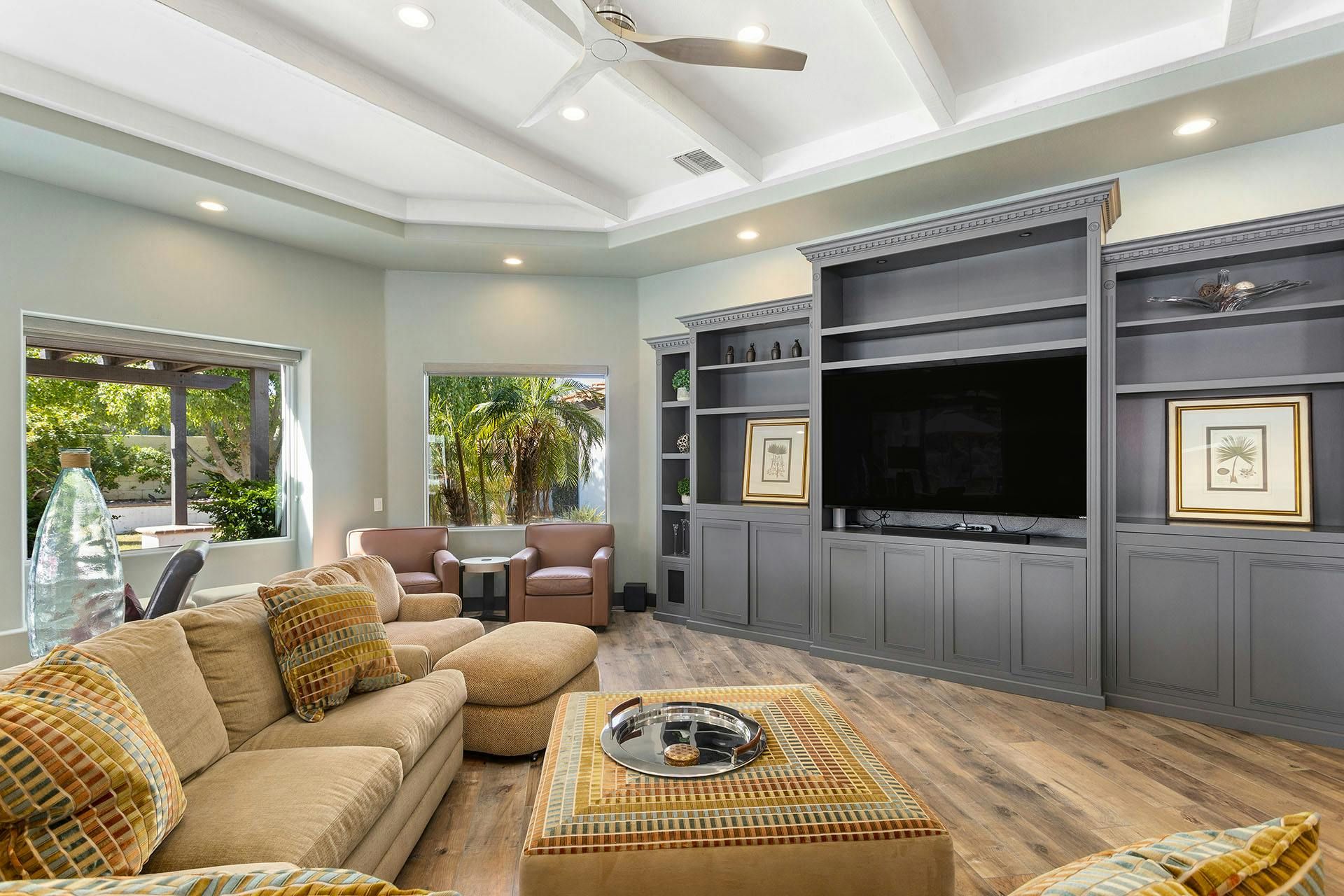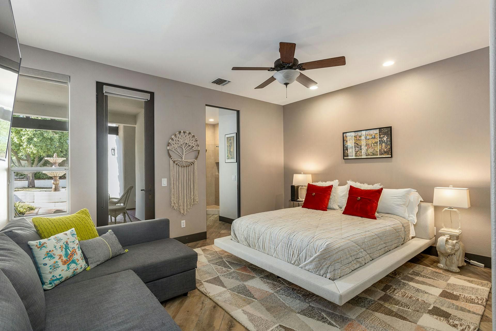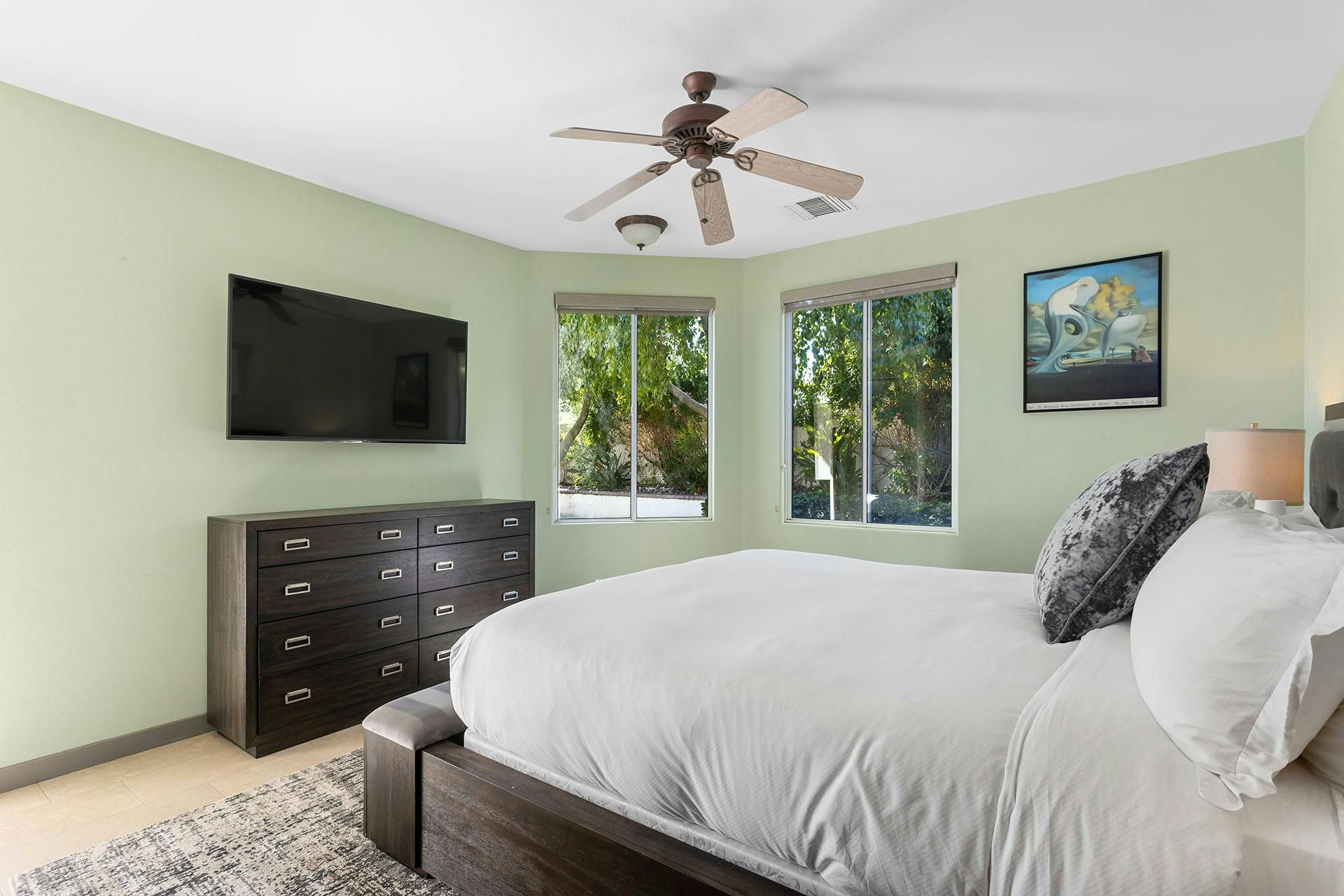 Fringed by mountains, this La Quinta villa captures the spirit of desert living at its most indulgent. Spend sun-drenched days floating in the lagoon-style pool, surrounded by palms and citrus trees, complete with a mini waterfall, two built-in barbecues and a misting system to keep you cool. There are three bedrooms in the main house, while a separate two-bedroom casita offers privacy for friends or family. Beyond the gates, you’ll find world-class golf courses, hiking trails through the Santa Rosa Mountains, and the boutiques and restaurants of Old Town La Quinta — with Palm Springs just a thirty-minute drive away.