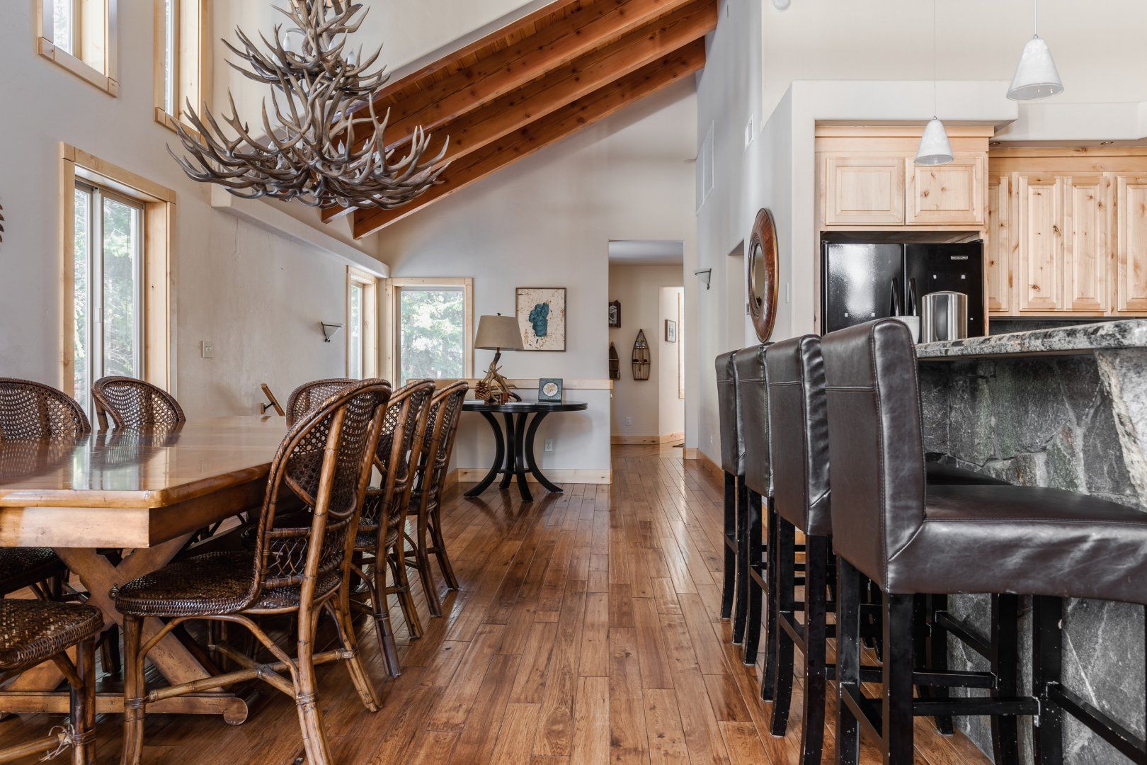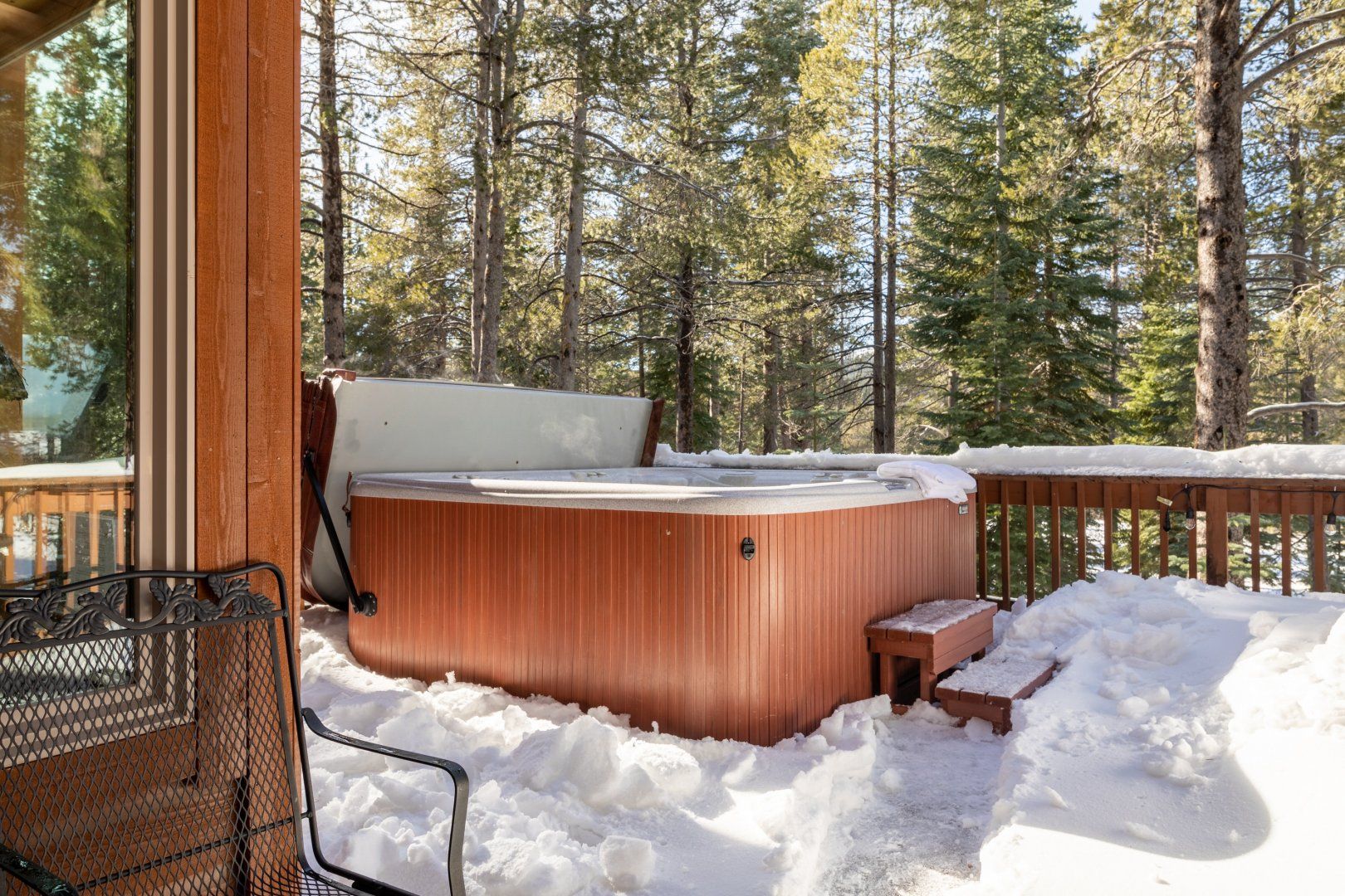 Welcoming up to twelve guests, Colours of the Lake is the perfect home for a large family gathering just outside of Donner Lake. Whether you decide to visit in the summer or the winter, this area has plenty to offer to make it magical all year long. The open-plan living area is the home’s main social hub, perfect for chit-chatting while someone prepares dinner, heated debates around the large dining table, or family games in front of the roaring fire. Then step outside and admire the wonderful views from the back deck. From here, you can also spot the sixteenth-hole of the Tahoe Donner Golf Course, which is surely worth a visit if you enjoy the game of golf. Spend your days swimming in any of the area’s magical lakes, enjoy exclusive skiing in colder months or just hang back at the home and relax with a great book and even better company. However you choose to spend your time here, you’ll be glad to soak your tired muscles in the outdoor hot tub at the end of a long day.
