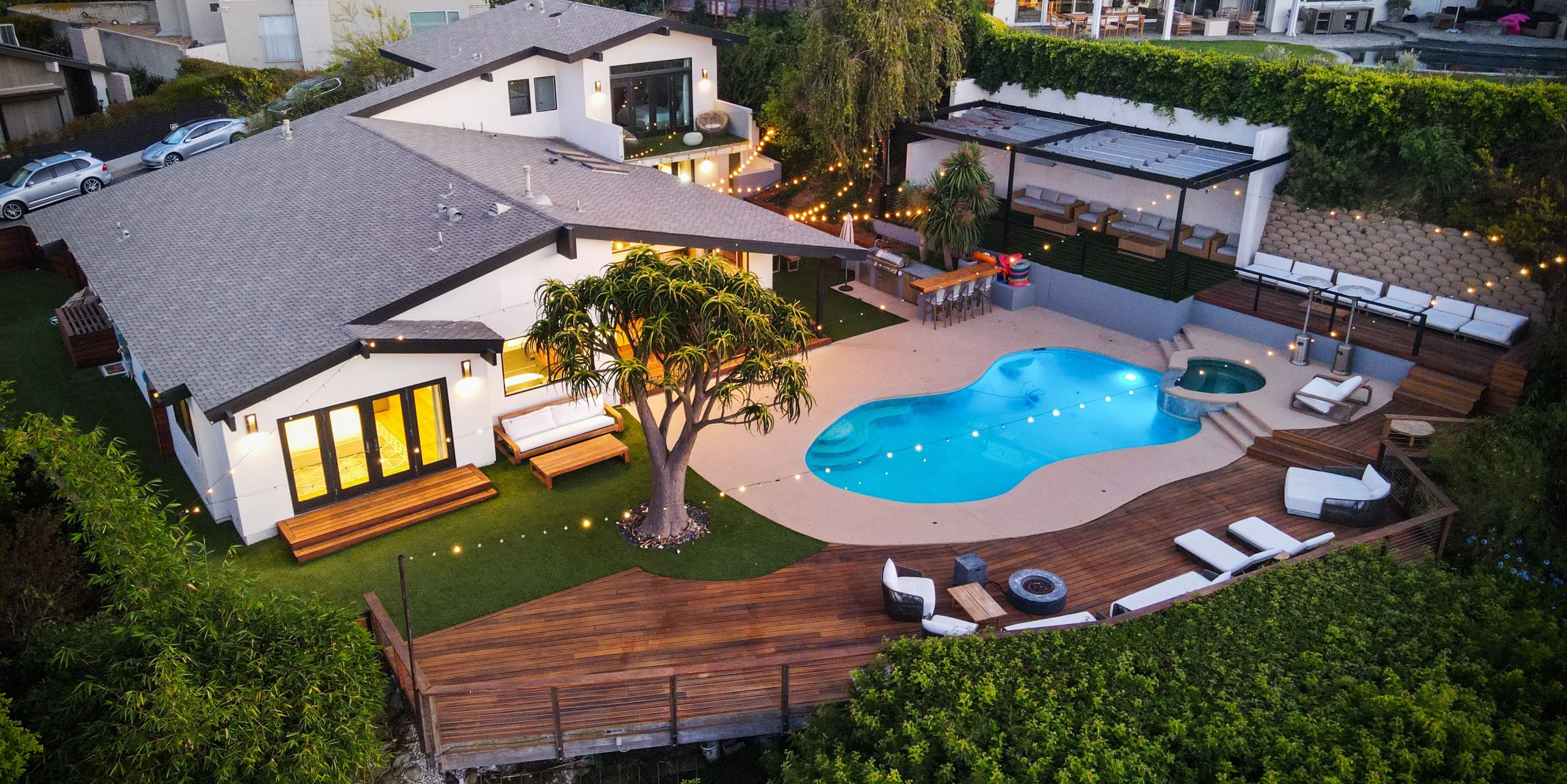 Nestled into the hillside with sweeping views across Studio City, this modern villa serves up a slice of the Hollywood lifestyle. Inside, it’s all bright and breezy, with floor-to-ceiling windows, five generous bedrooms, and a home cinema. Step outside and you’ll find a pool with an in-built jacuzzi, plus plenty of spots for soaking up the sun or dozing in the shade. And the location? The neighbourhood has long been a haven for actors, writers, and creatives, with great cafés, indie shops, and bars. And when you’re ready to swap serenity for the spotlight, Hollywood is just fifteen minutes away.