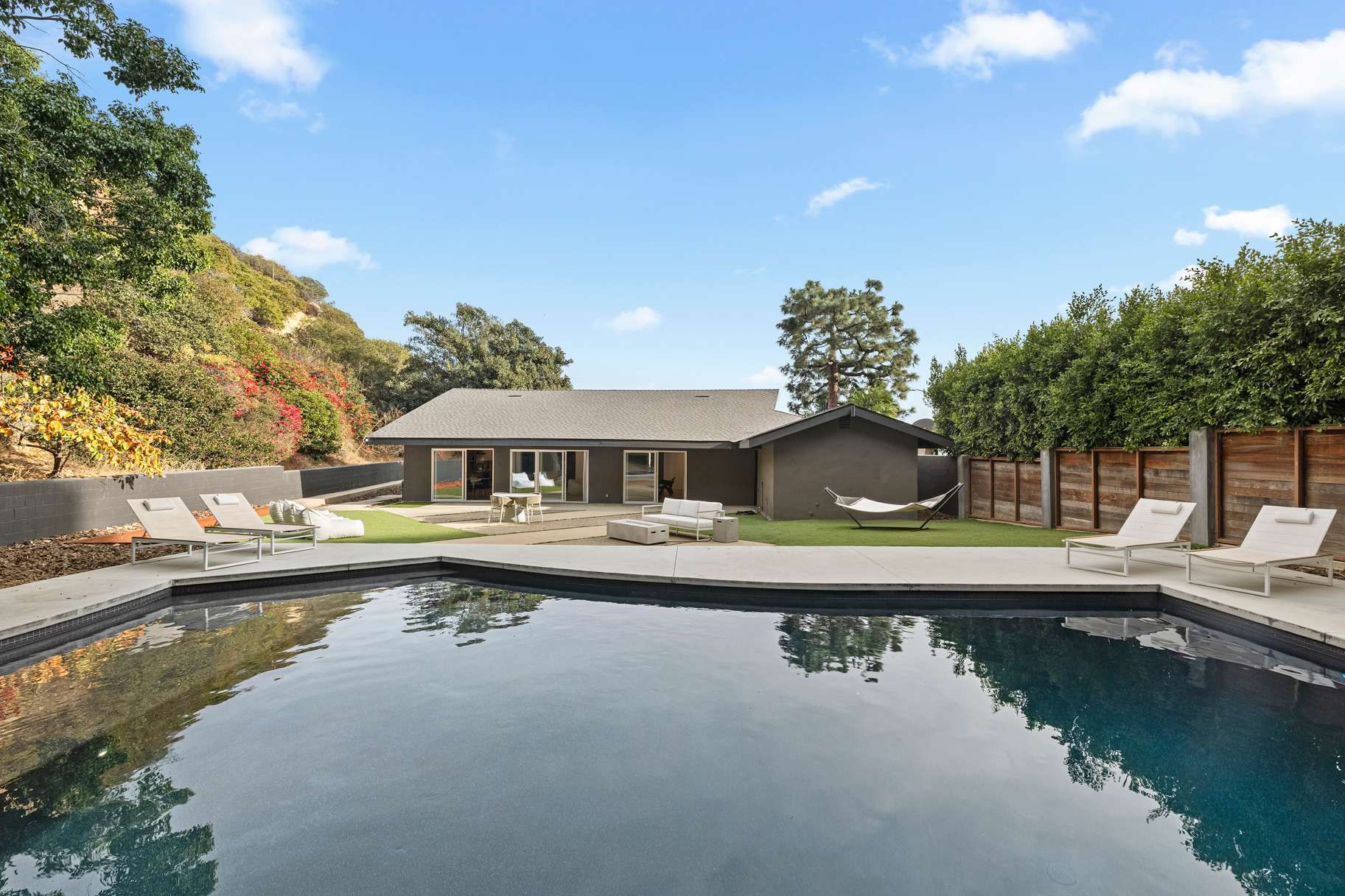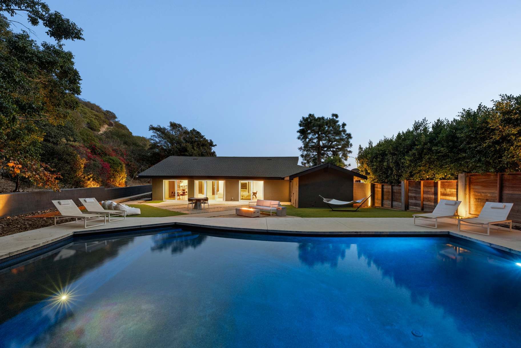 Firstly, we love how perfectly nestled this home feels in the Hollywood Hills – surrounded by greenery and tucked away on a quiet cul-de-sac, it offers a real sense of peace and privacy that’s hard to find in the city. The outdoor space is a highlight, with a private pool, hot tub, and patio setting the scene for long, lazy days in the Californian sun. Inside, there’s a well-equipped kitchen for easy family meals and comfortable living spaces to unwind in together. When you’re ready to head out, Sunset Strip, Beverly Hills and West Hollywood are just a short drive away, giving you the best of both worlds – total tranquillity at home, with LA’s buzz close by.