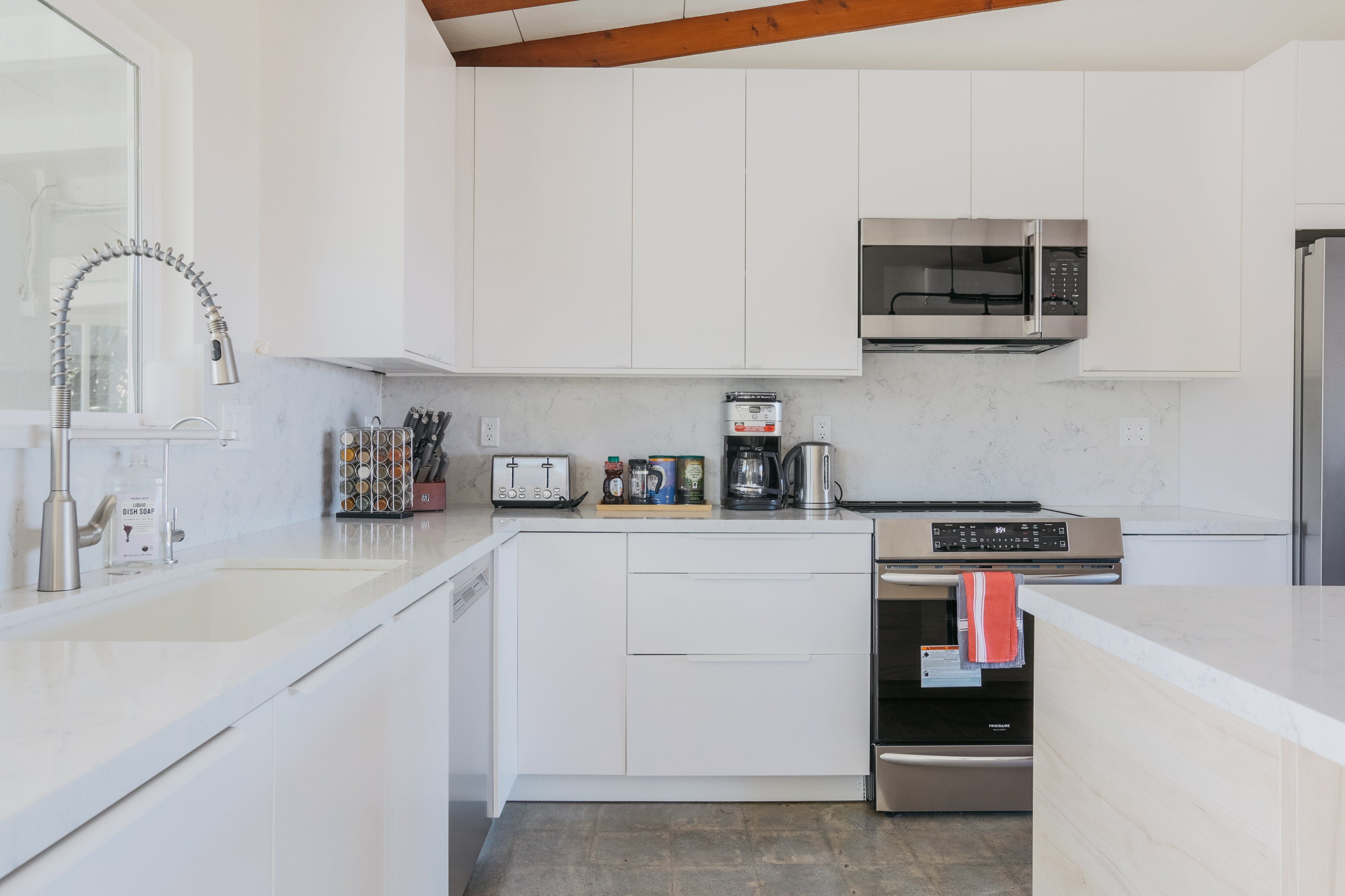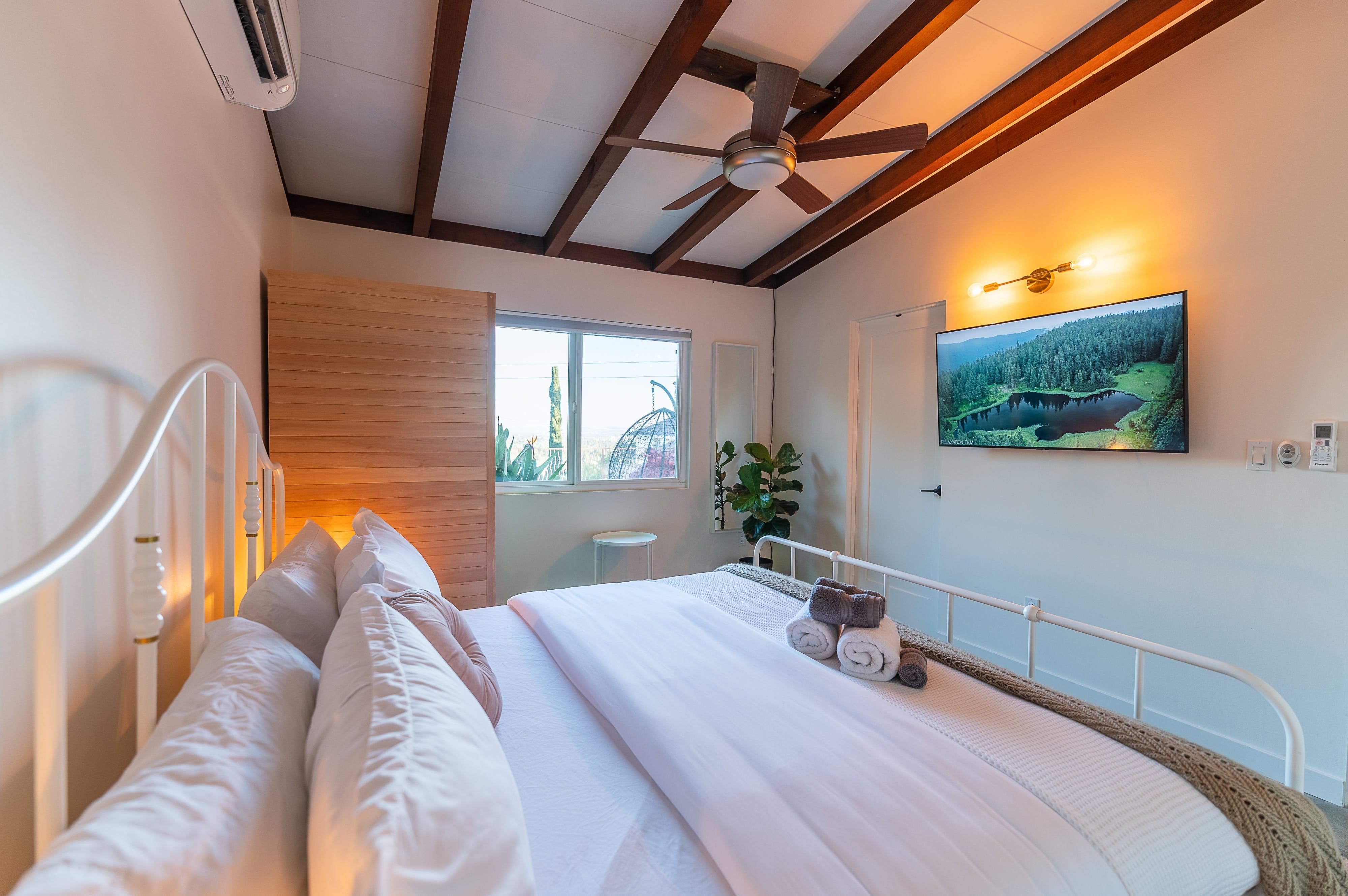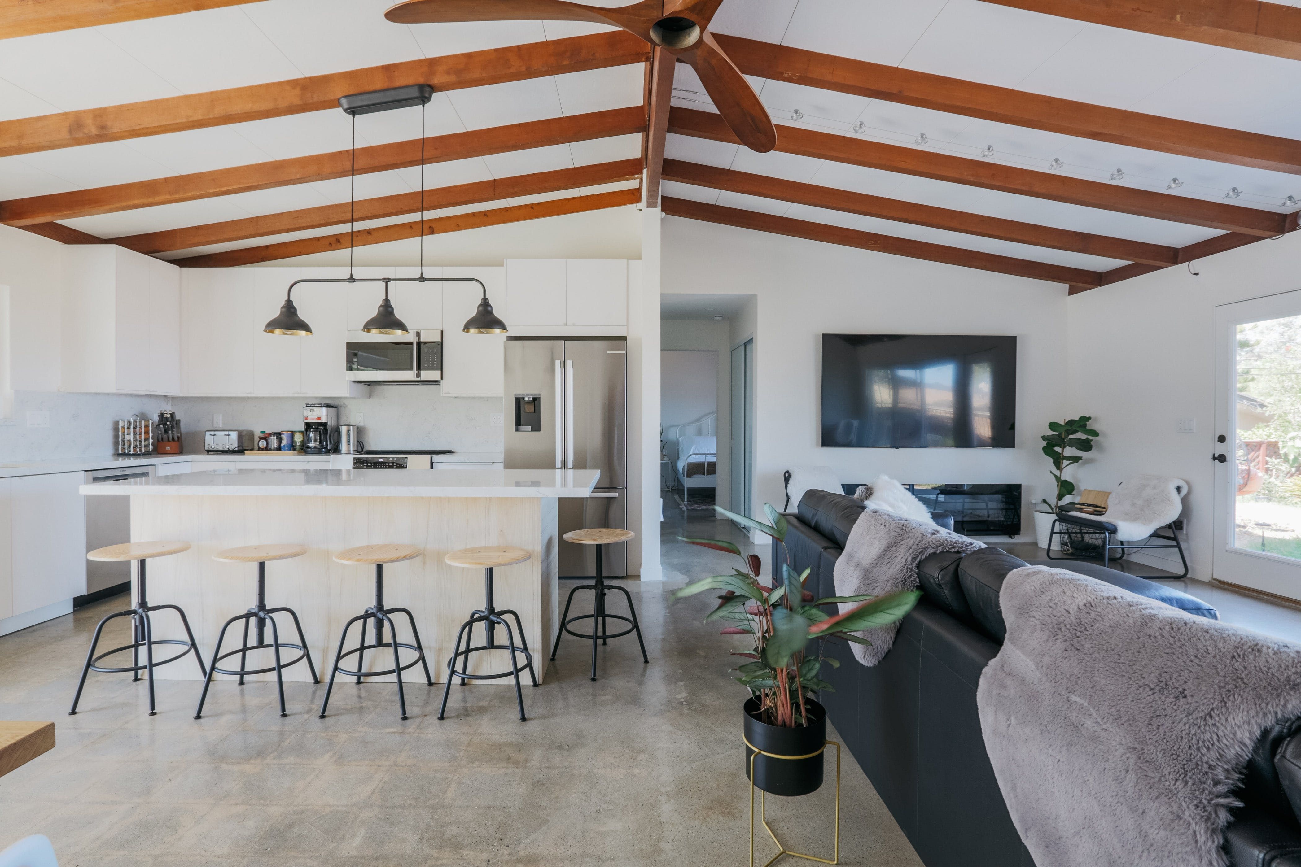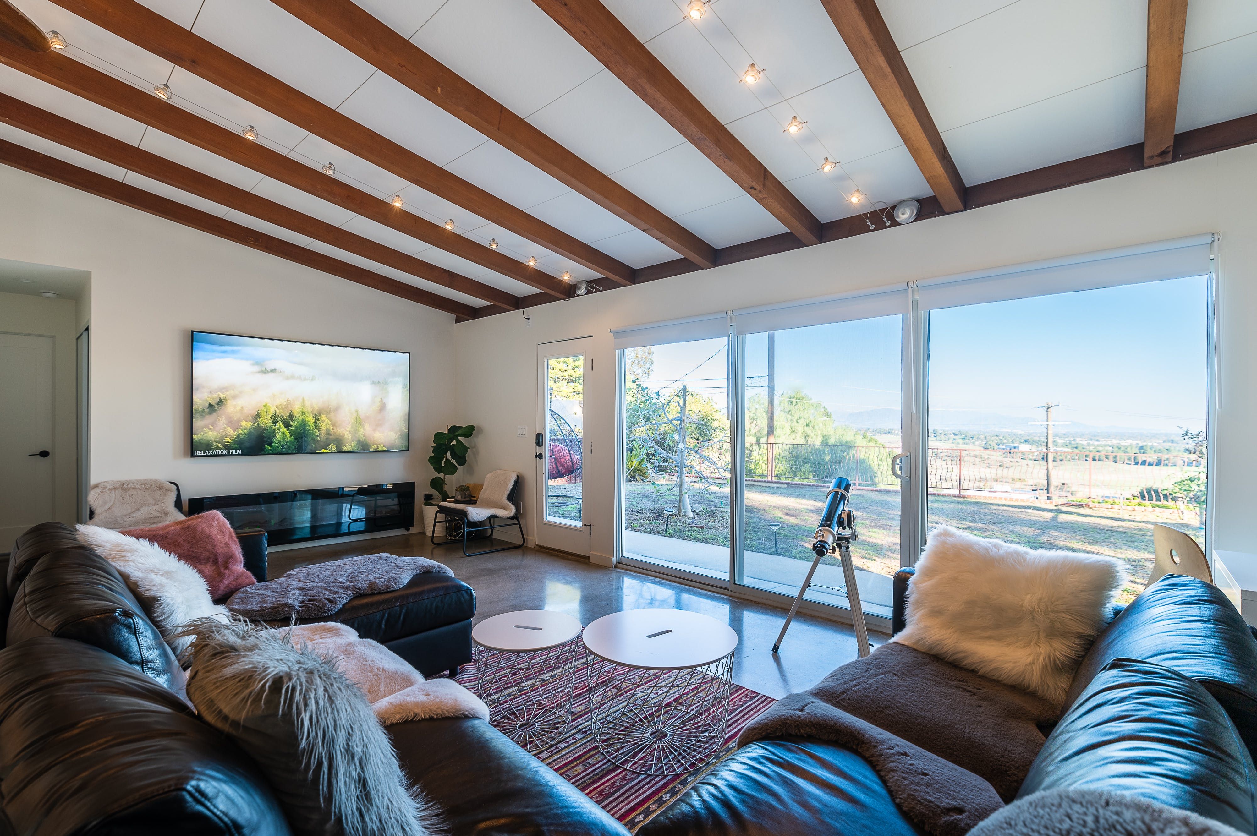 Located in the West Hills neighbourhood, in the western San Fernando Valley, this home is all about unwinding and reconnecting with nature. There’s a terrace complete with a hot tub and knockout views of the undulating landscape. Inside, the place is kitted out with everything you need and the sauna really ramps up the relaxation. It’s worth noting the third bedroom is separate from the main house and in order to use the loo, you’ll need to go through the covered patio and living room to use the bathroom in the hallway. Location-wise, you’re not far from highways 101 and 118, and it’s less than an hour’s drive to Hollywood.