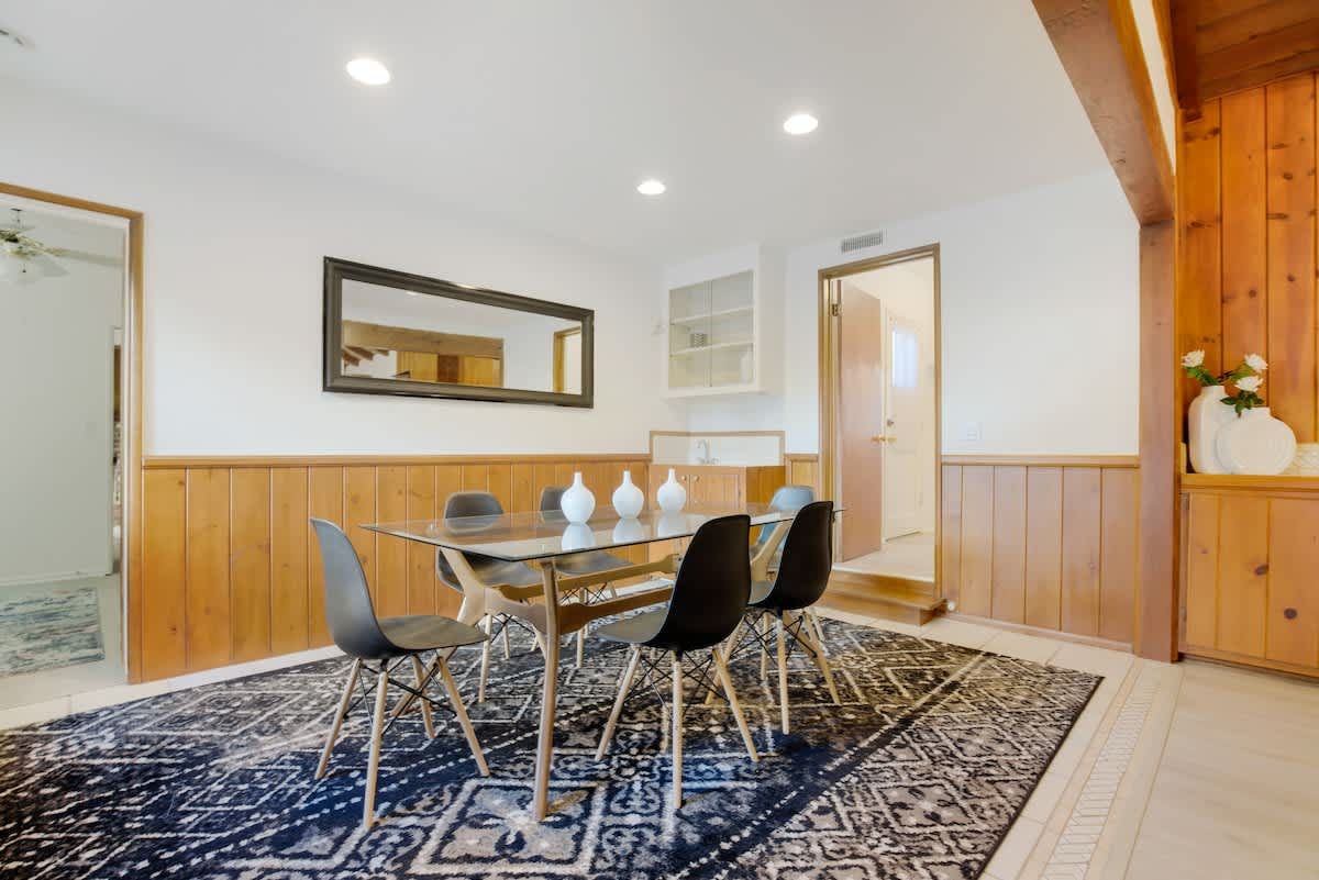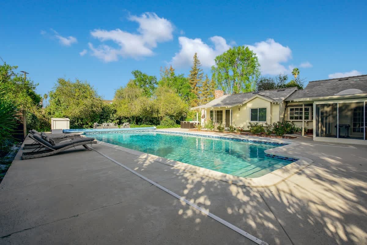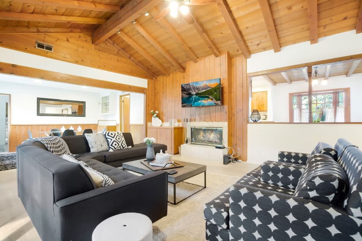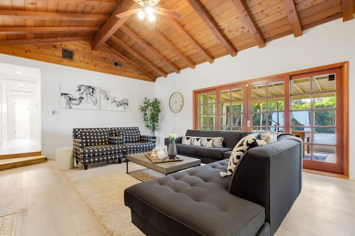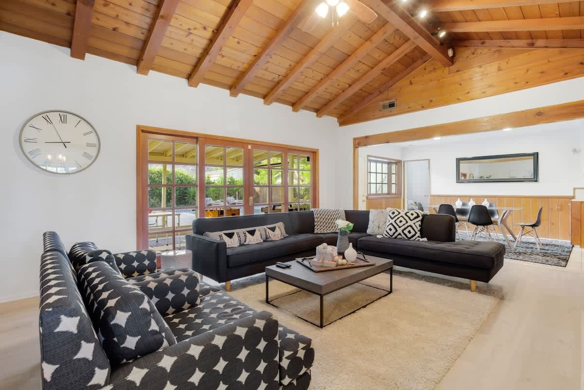With an Olympic sized pool and a peaceful yard, this home sets the tone for laidback stay in LA. There’s a poolside cabana, a sunlit terrace and a games room with ping pong and air hockey for family fun. Inside, the rooms are rustic and traditional with plenty of space to stretch out and spend quality time together. You can enhance your stay with special extras like a private chef, housekeeping and luxury car rentals. It’s also just a short drive to Westfield Topanga, while Malibu is just thirty-minutes away.