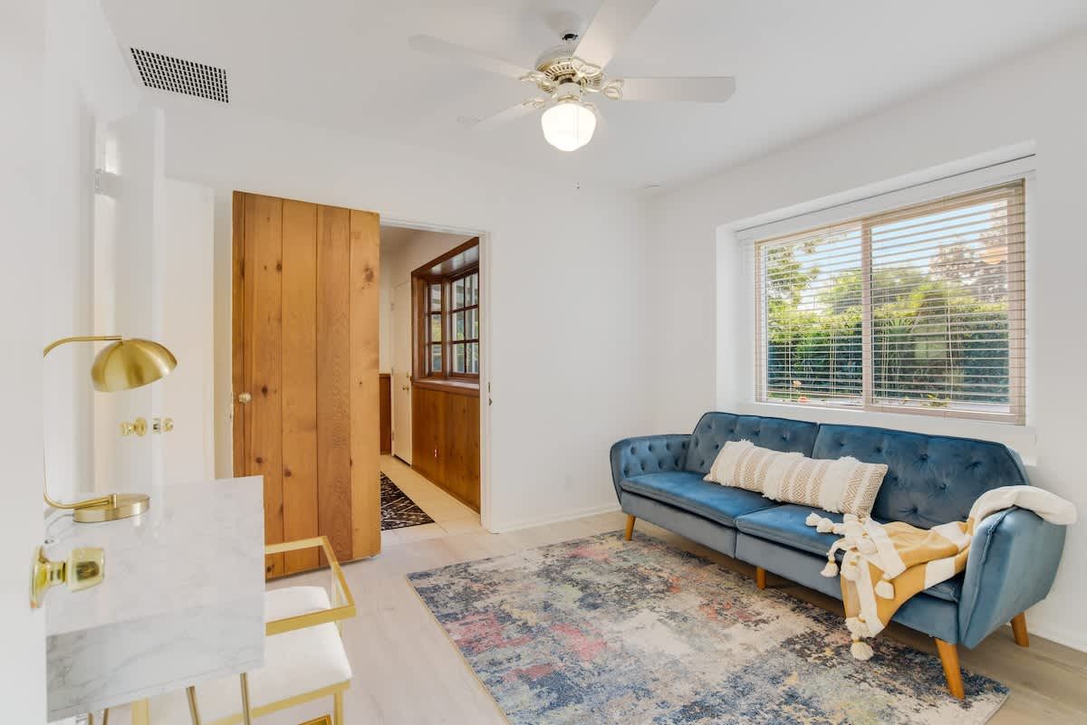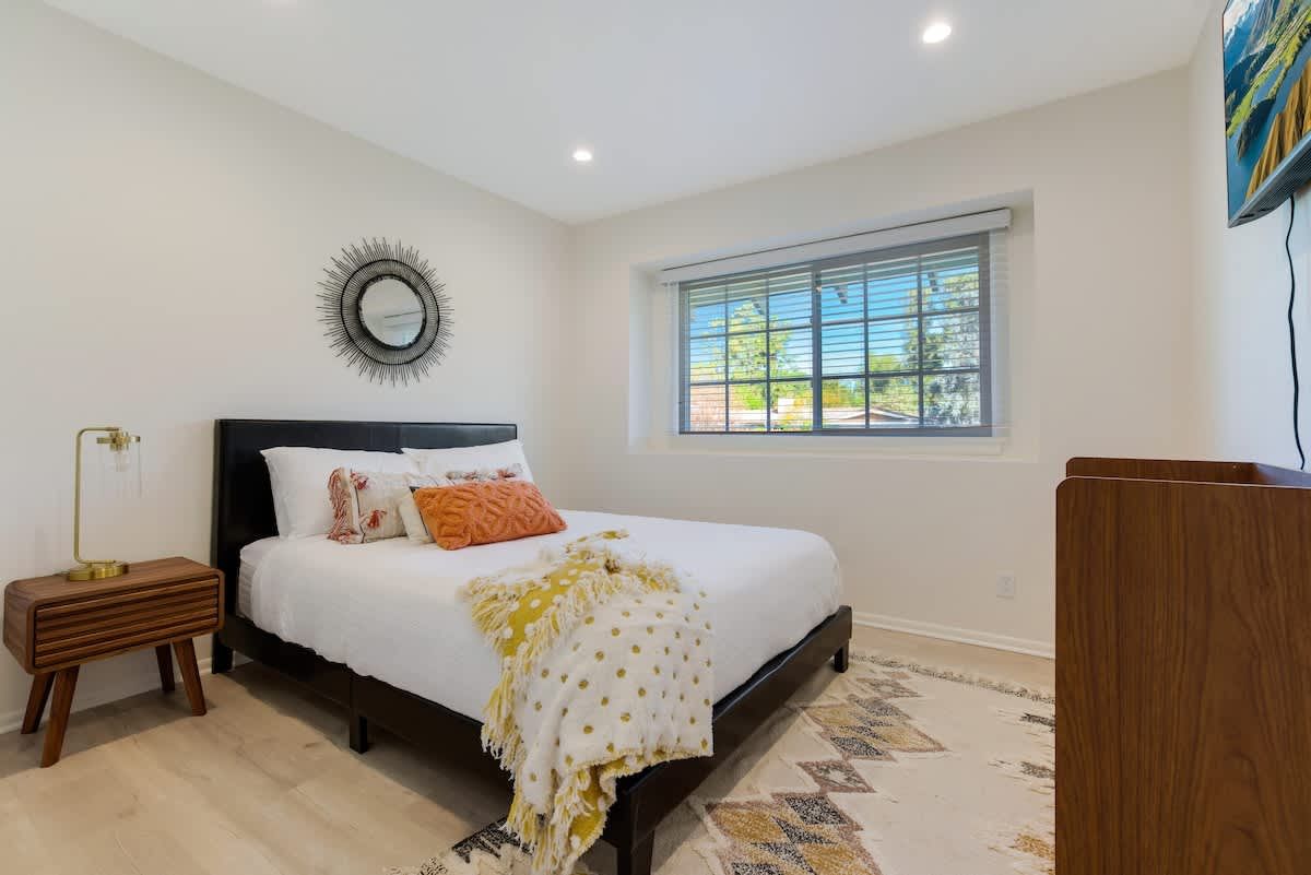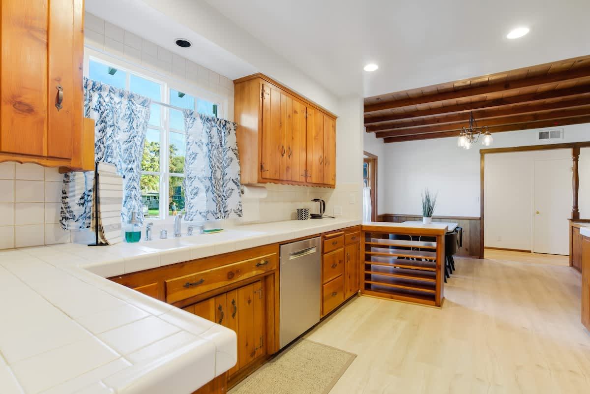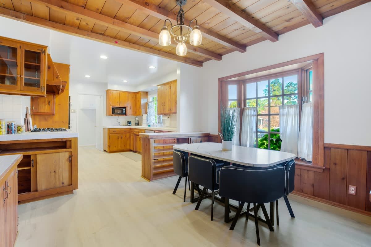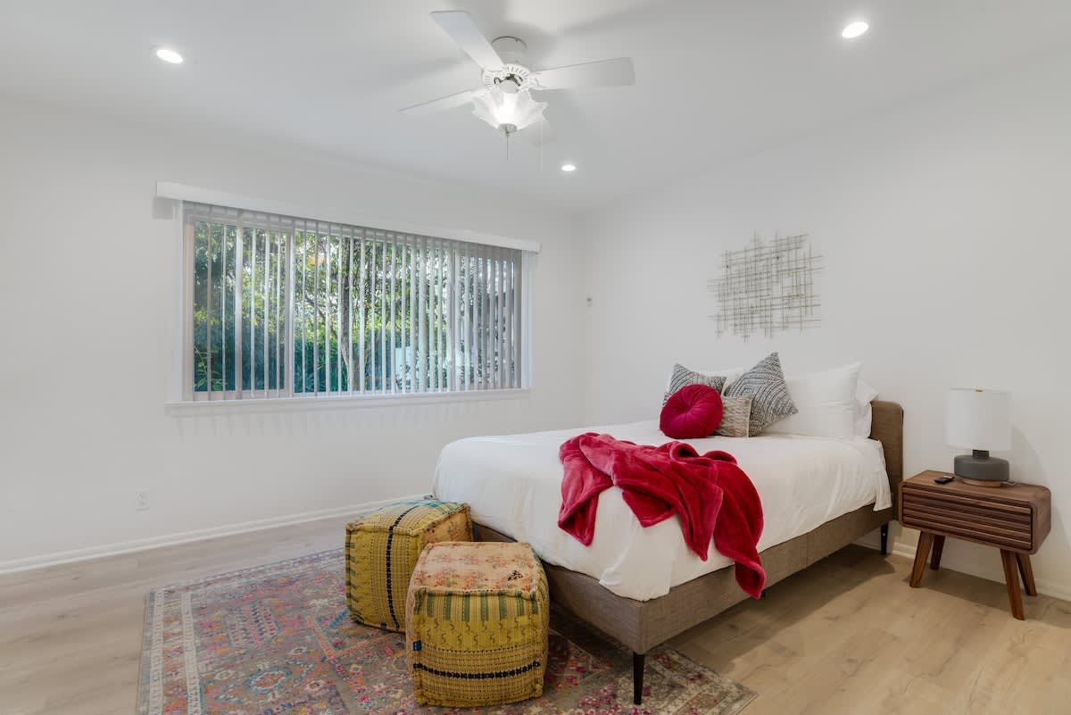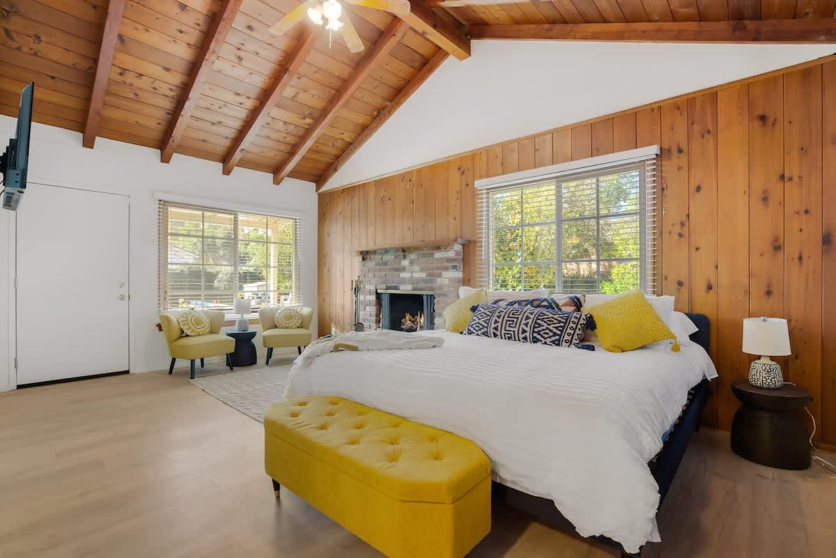 With an Olympic sized pool and a peaceful yard, this home sets the tone for laidback stay in LA. There’s a poolside cabana, a sunlit terrace and a games room with ping pong and air hockey for family fun. Inside, the rooms are rustic and traditional with plenty of space to stretch out and spend quality time together. You can enhance your stay with special extras like a private chef, housekeeping and luxury car rentals. It’s also just a short drive to Westfield Topanga, while Malibu is just thirty-minutes away.
