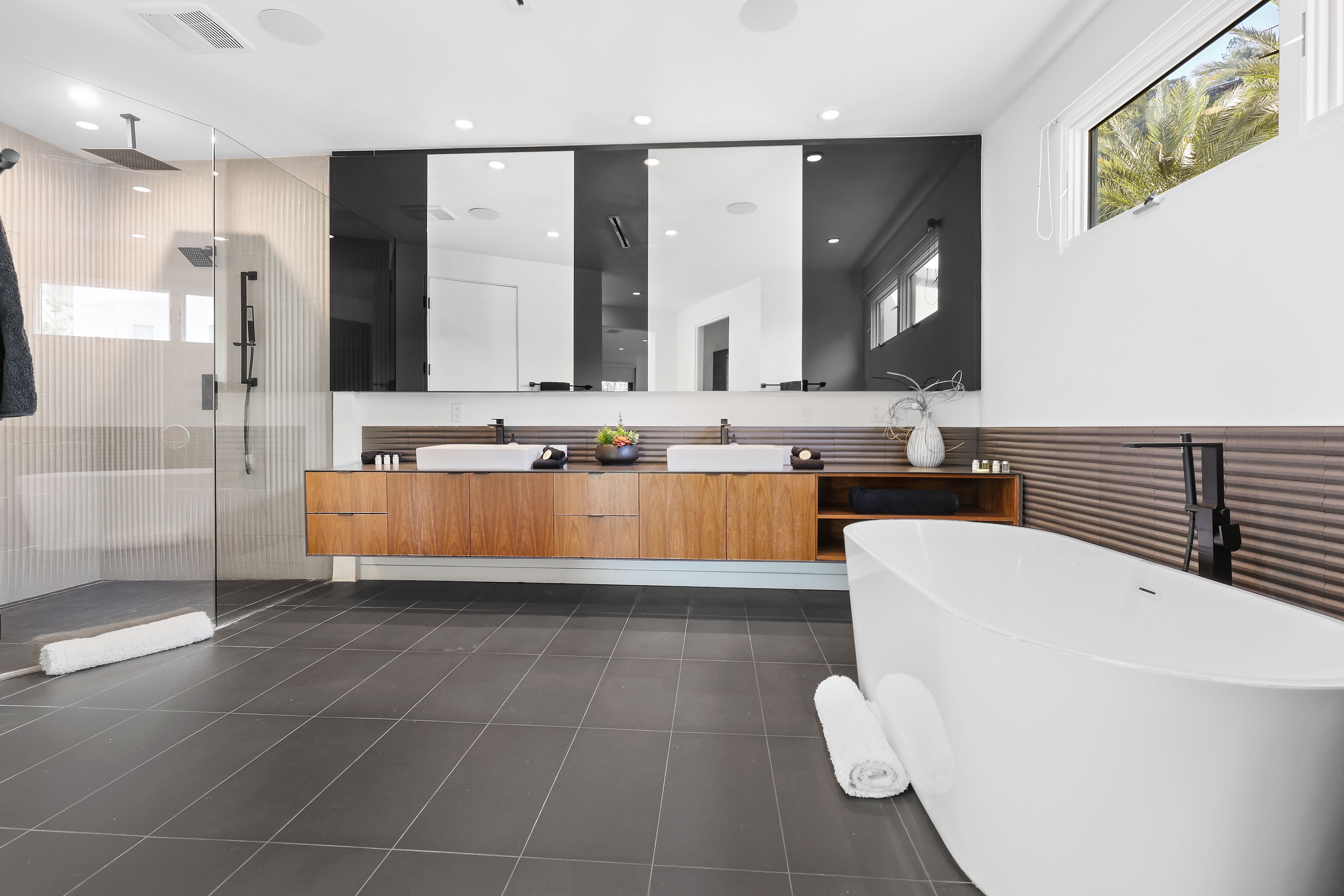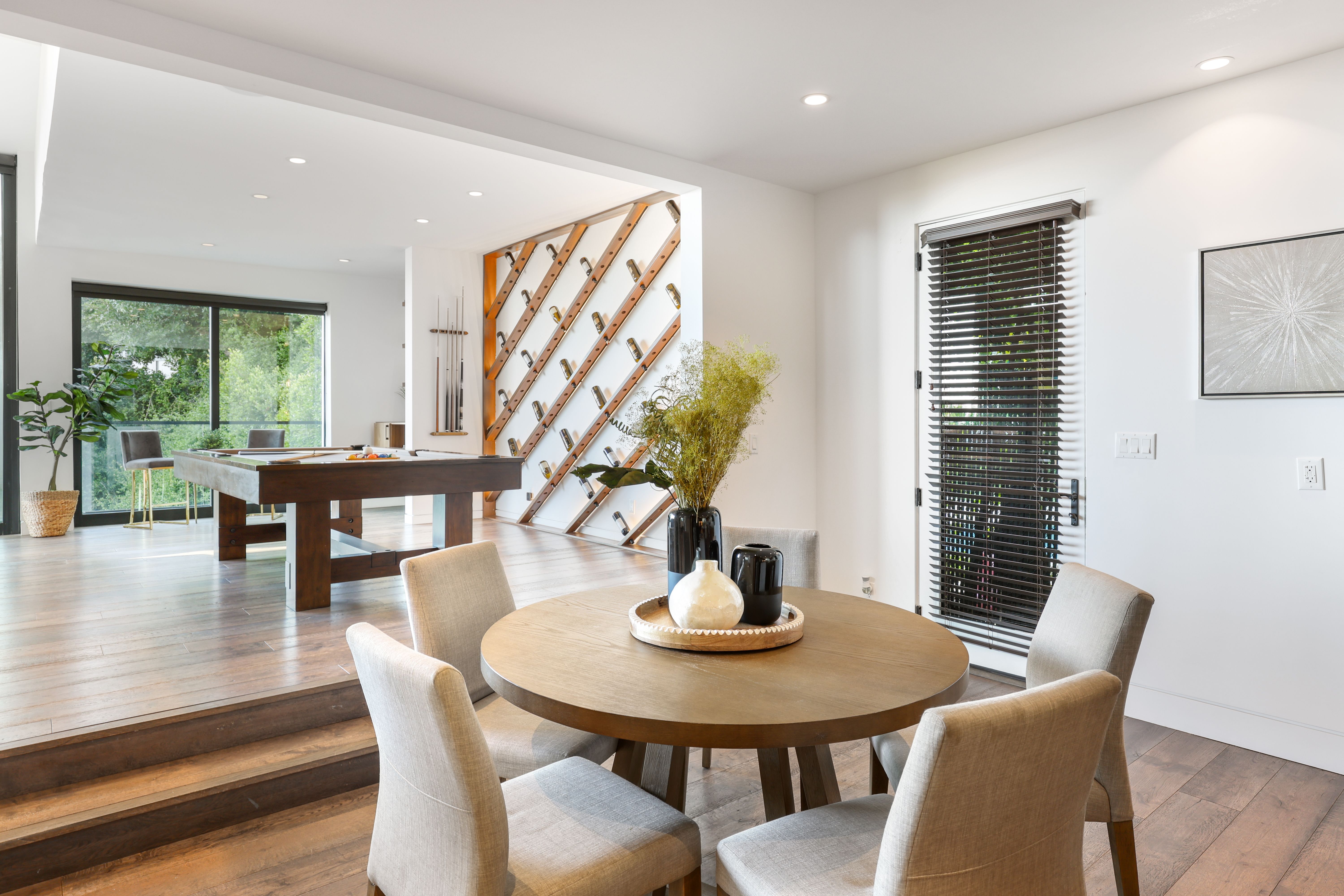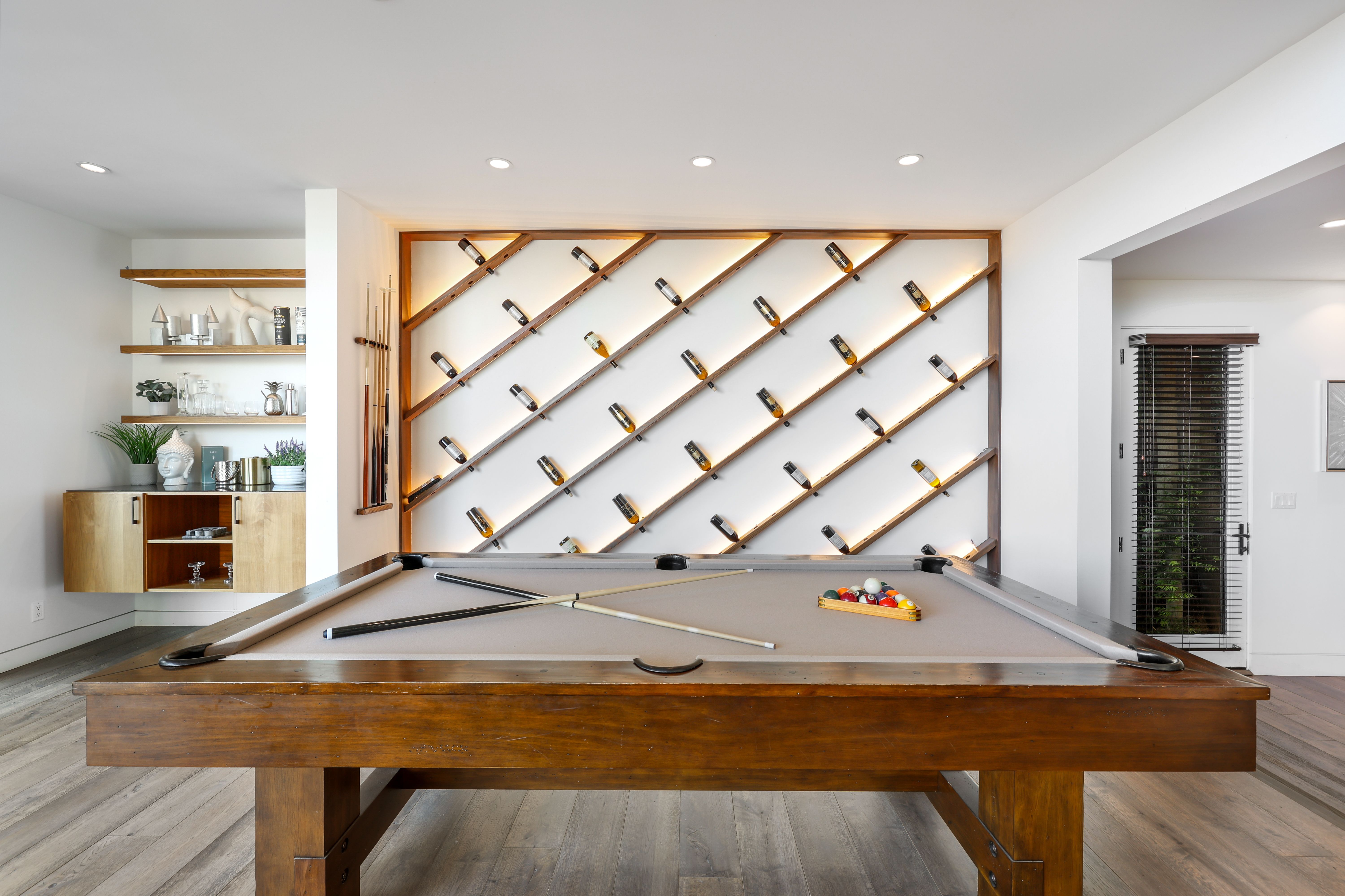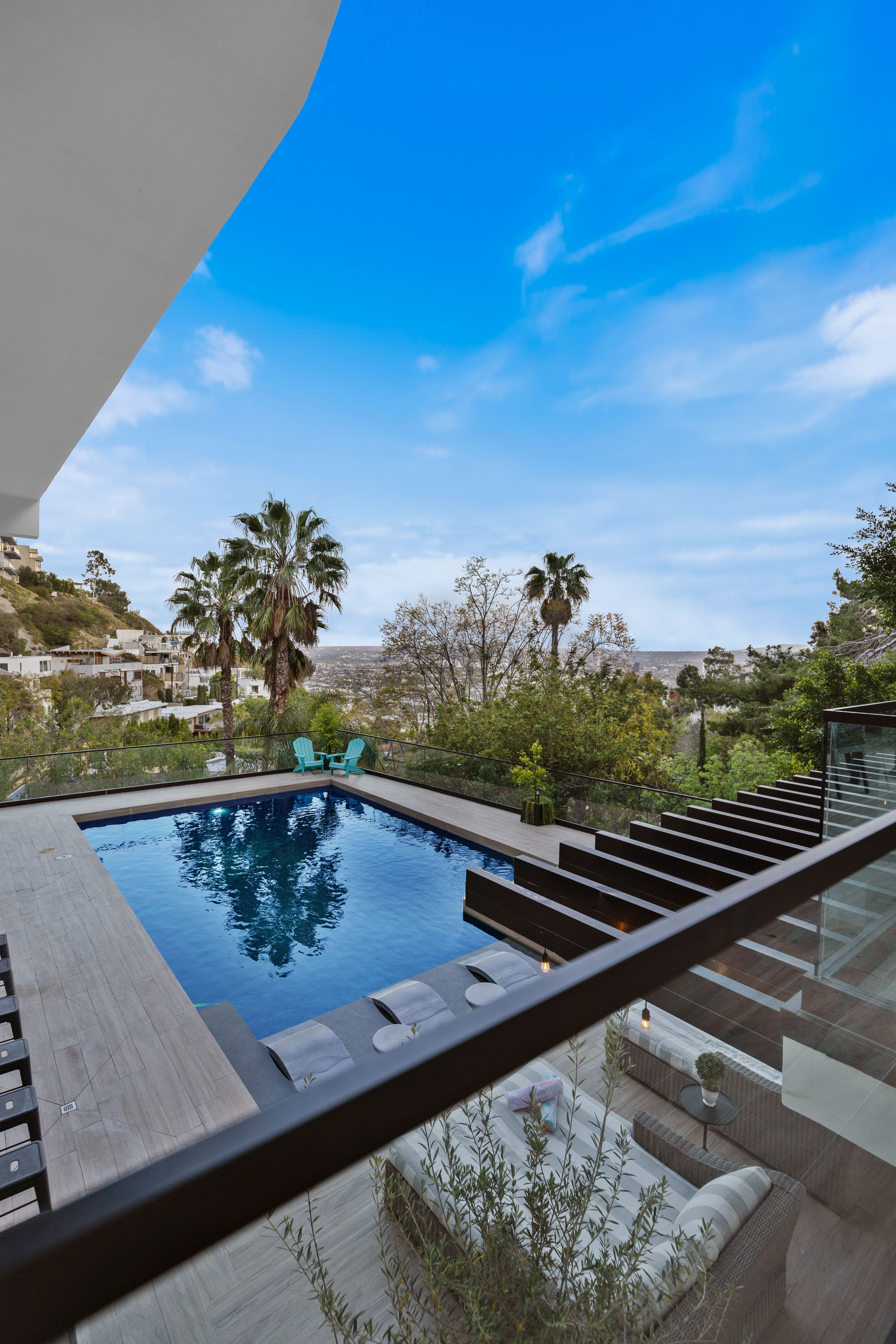 Set above the Sunset Strip, this modern three-story estate showcases imitable style. This bold and innovative home displays unmatched quality and attention to detail throughout the open living space with its custom wine wall, a bespoke kitchen and a billiards table. On the backside of the house, walls of glass vanish into thin air, offering phenomenal indoor-outdoor living while showing off those breathtaking city views. Enter the grand master suite complete with a private balcony, sitting area, and a walk-in wardrobe. While no one will be left disappointed with the standard of the secondary bedrooms. The en-suite bathrooms exude a feeling of luxury with custom wooden cabinets, walk-in showers, and a free-standing tub. Step outside and take in those awe-inspiring city vistas from the dining terrace, pool and spa area – we promise they never get old. Leave the secluded haven of your hillside home and you can be in the heart of the action in no time at all. You're perfectly positioned to enjoy the vibrant melting pot that is West Hollywood, the raucous nightlife of Sunset Strip and the chic boutiques of Rodeo Drive – all within a ten-minute drive.