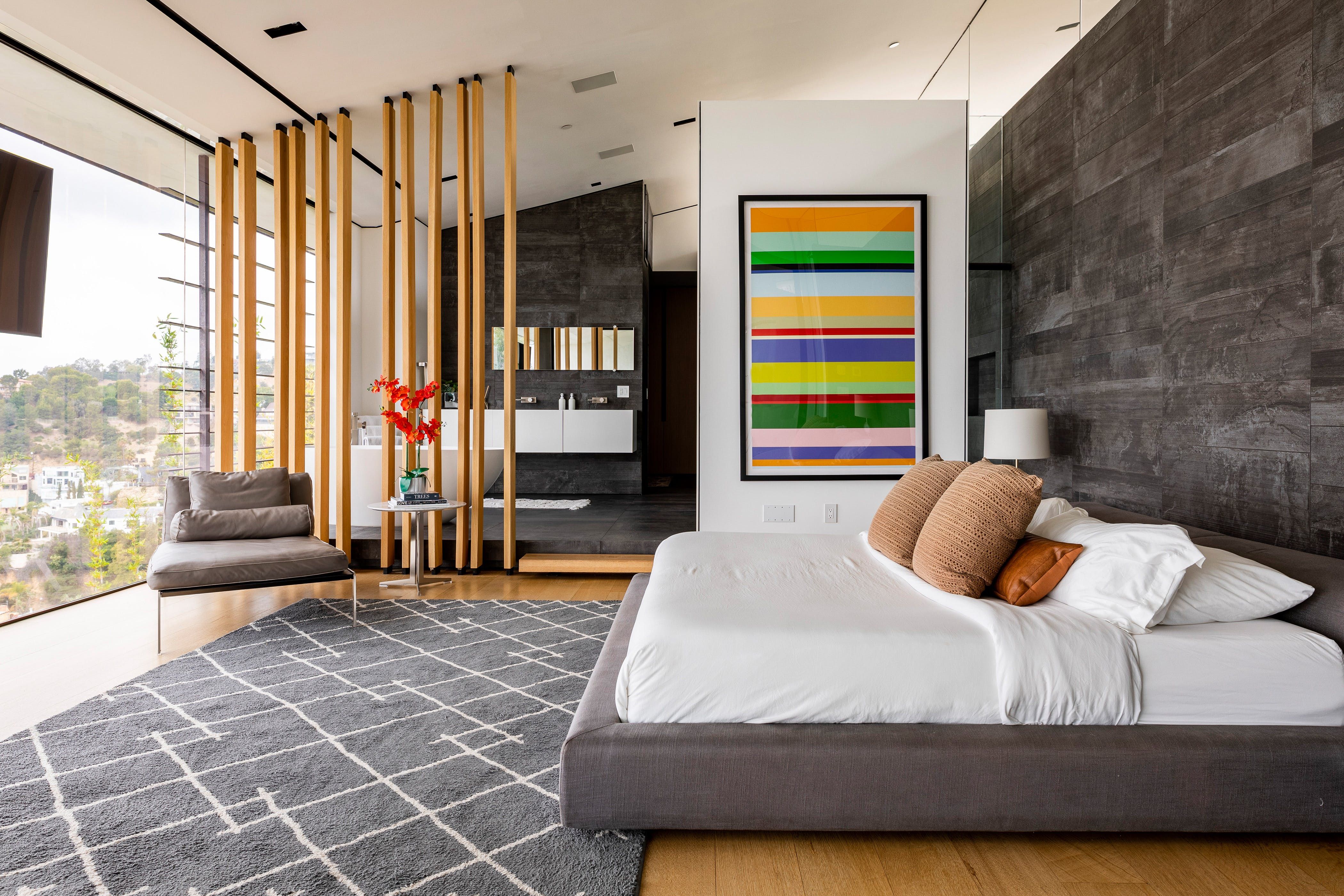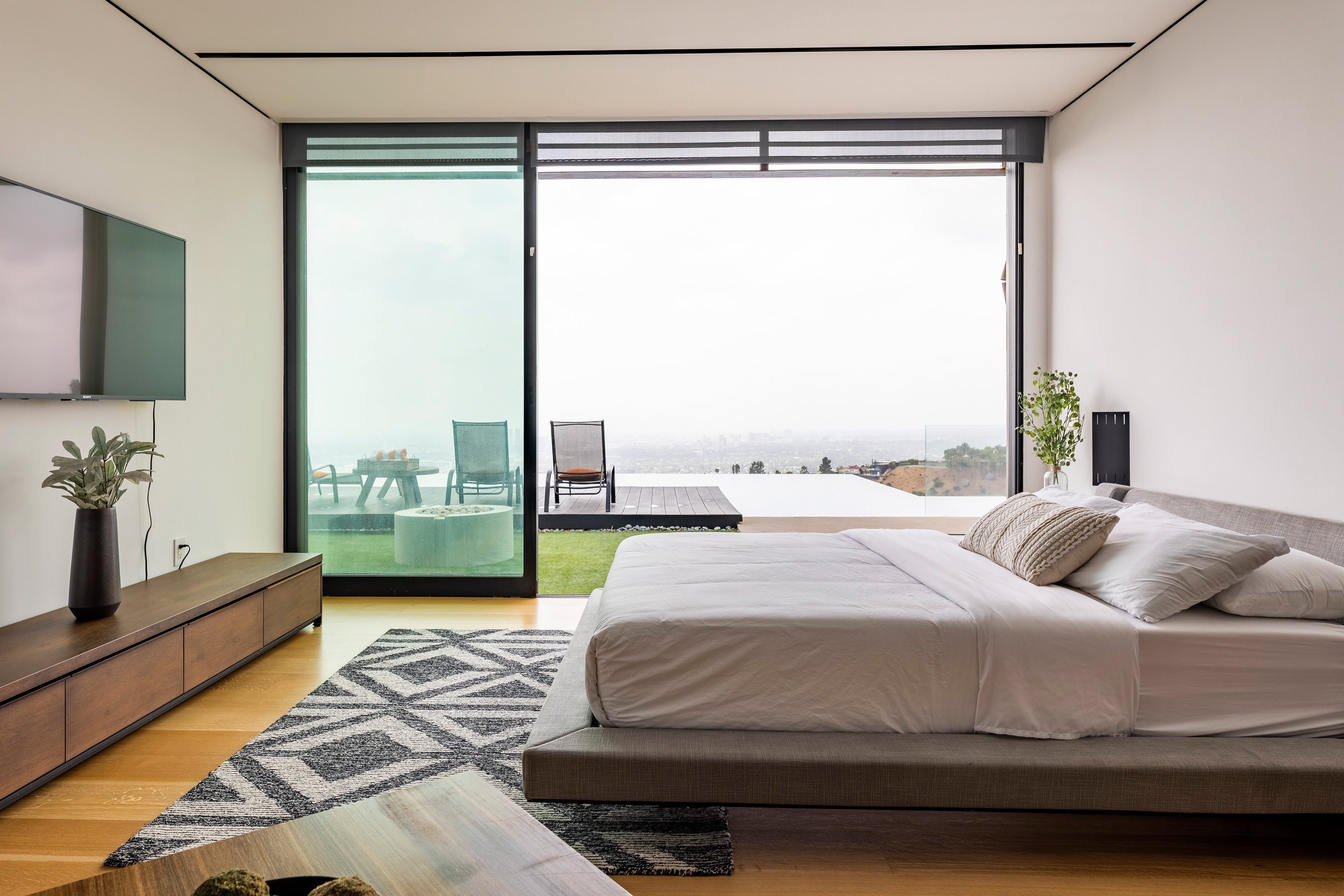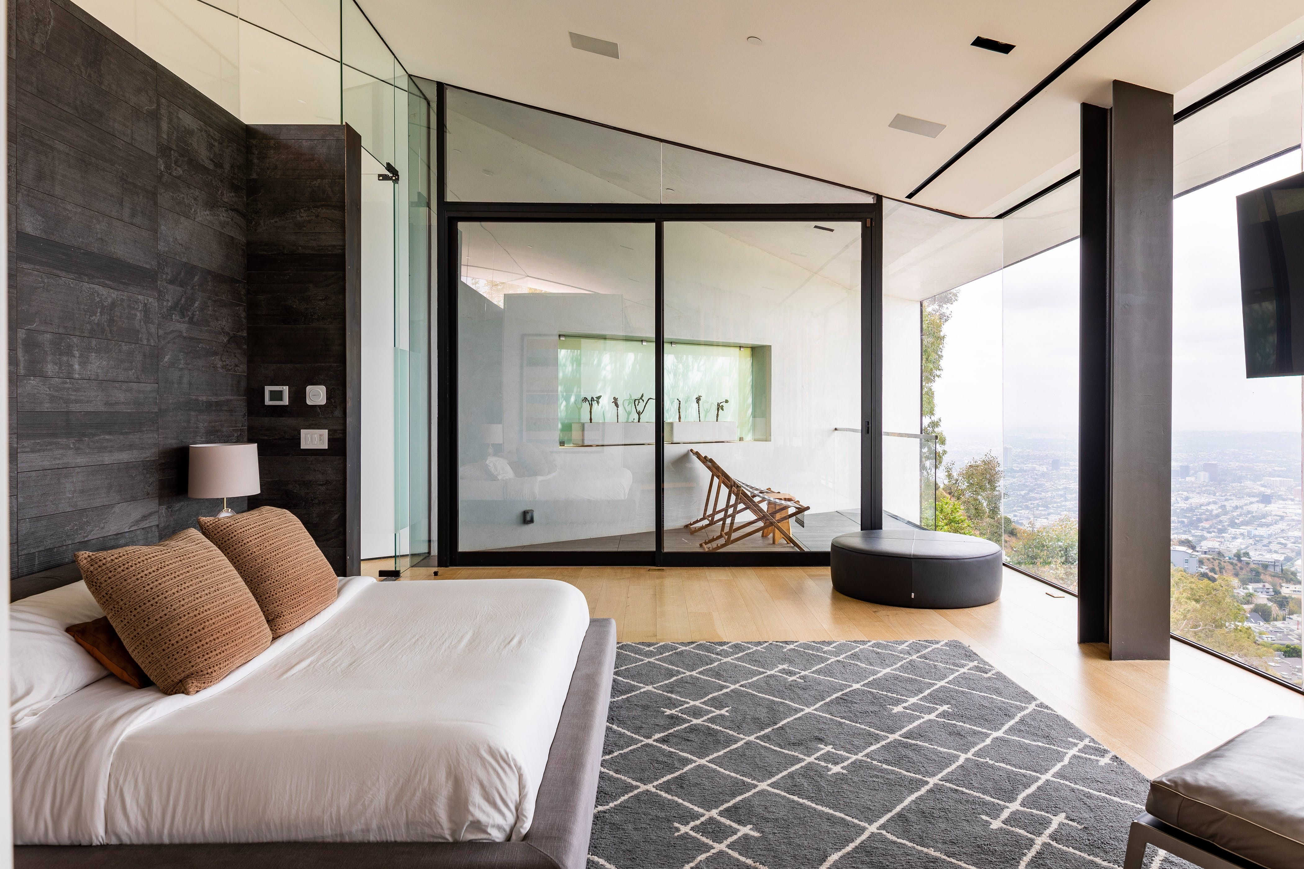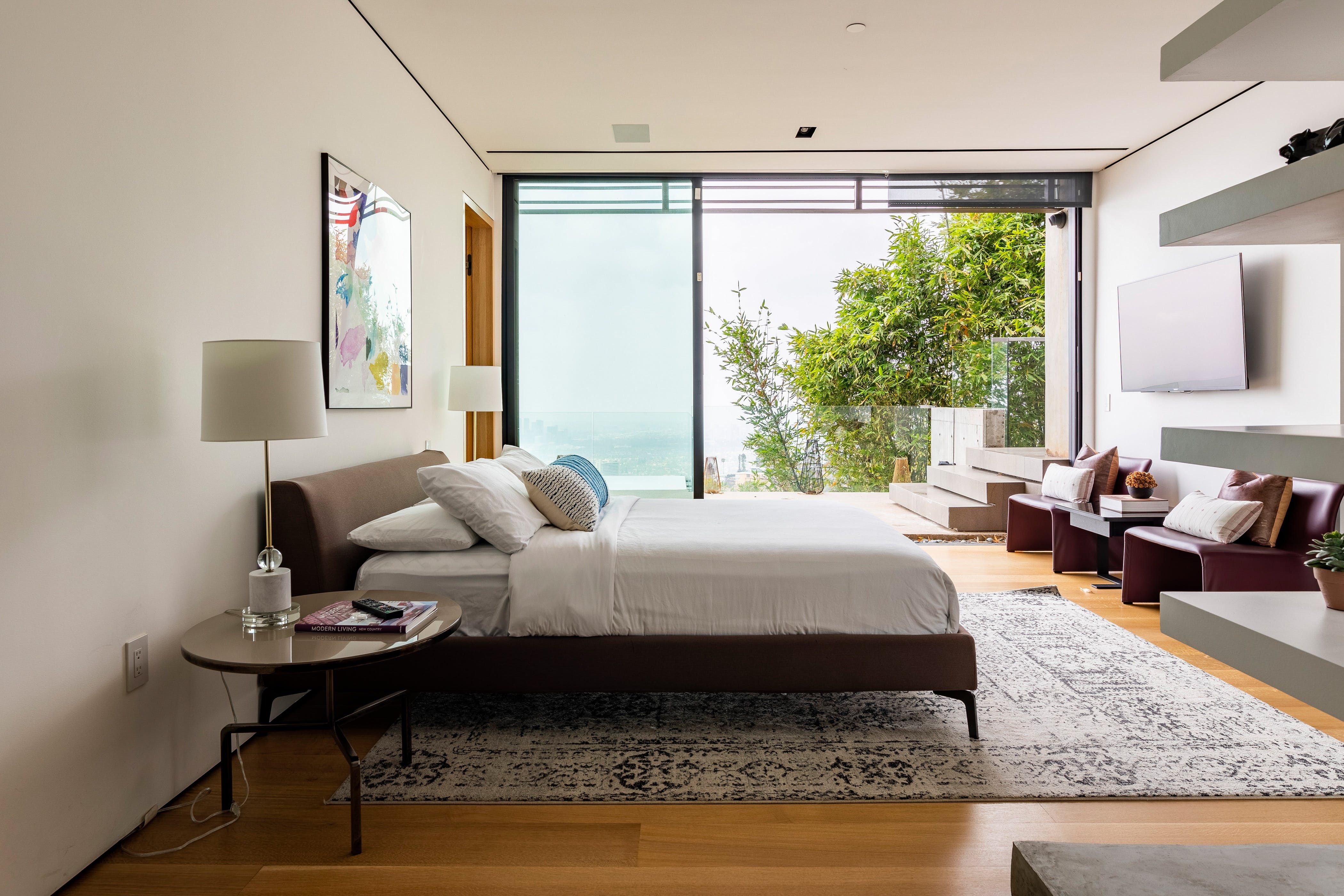 Los Angeles unfurls like a map before you up at this architecturally stunning home in the Upper Hollywood Hills. Every suite in the house has a breathtaking view of sparkling city lights after sunset from walls of glass. And then there’s the sunset itself – as the sky streaks pink and gold, head out to one of the many terraces for the daily spectacle. The infinity pool feels as though it’s hanging over the edge of the city and huge terraces lined with loungers and outdoor sofas face the glittering urban sprawl, perhaps best enjoyed by the warmth of a fire pit.