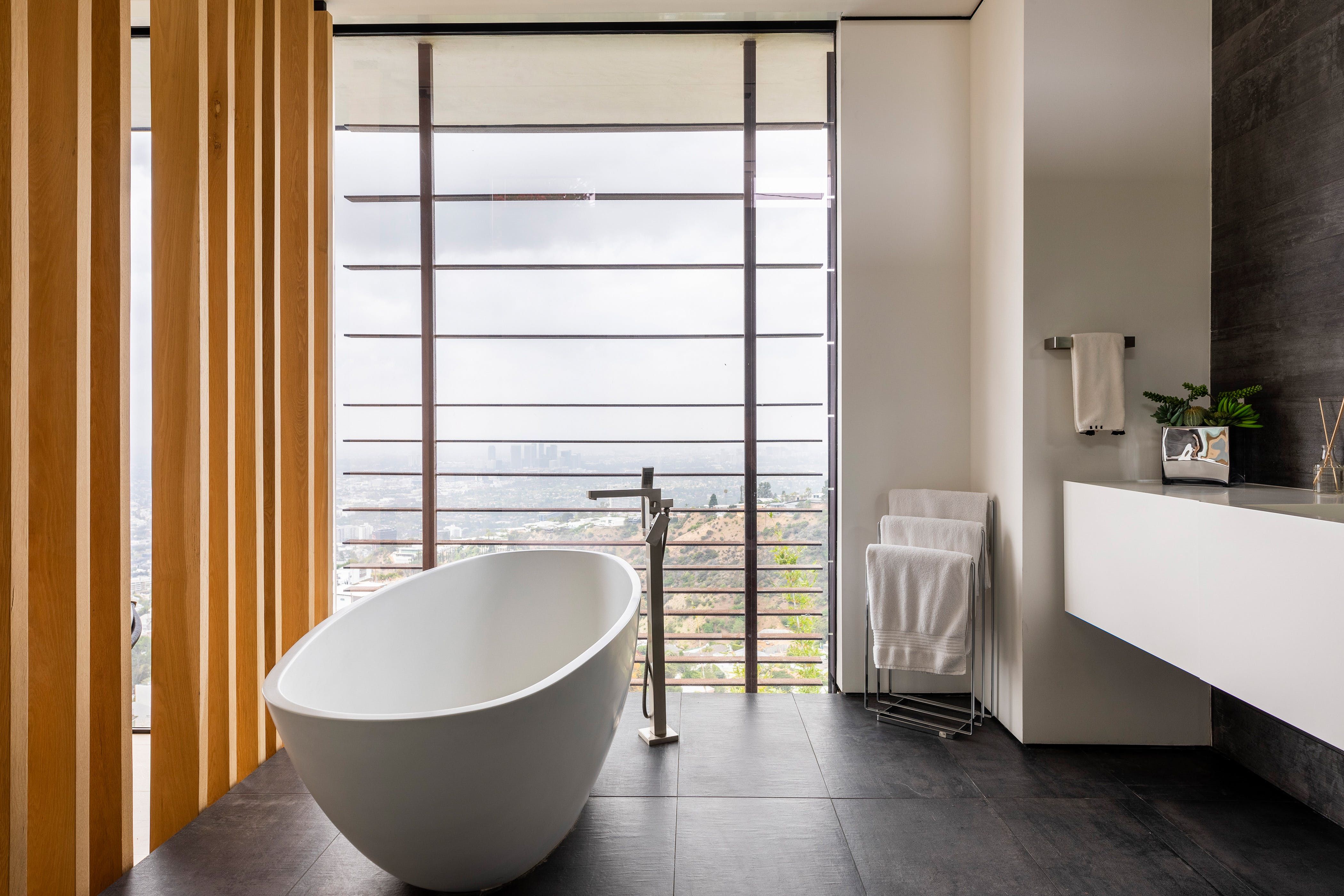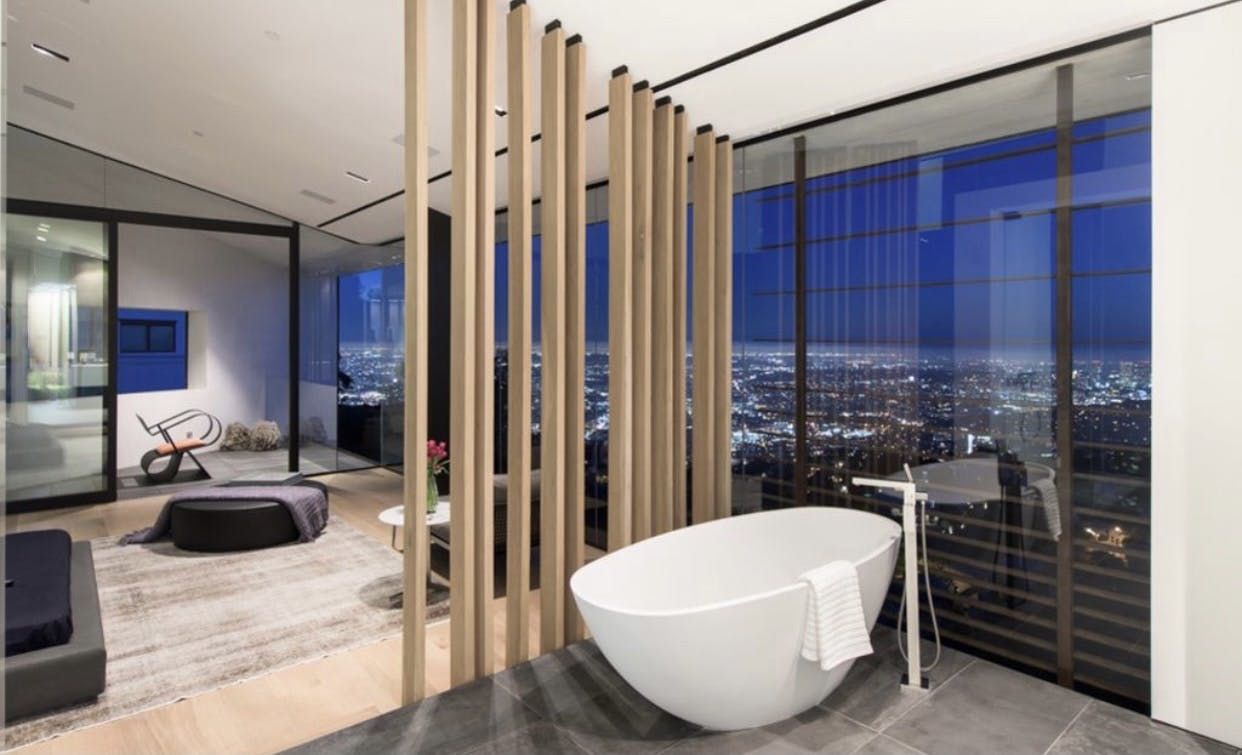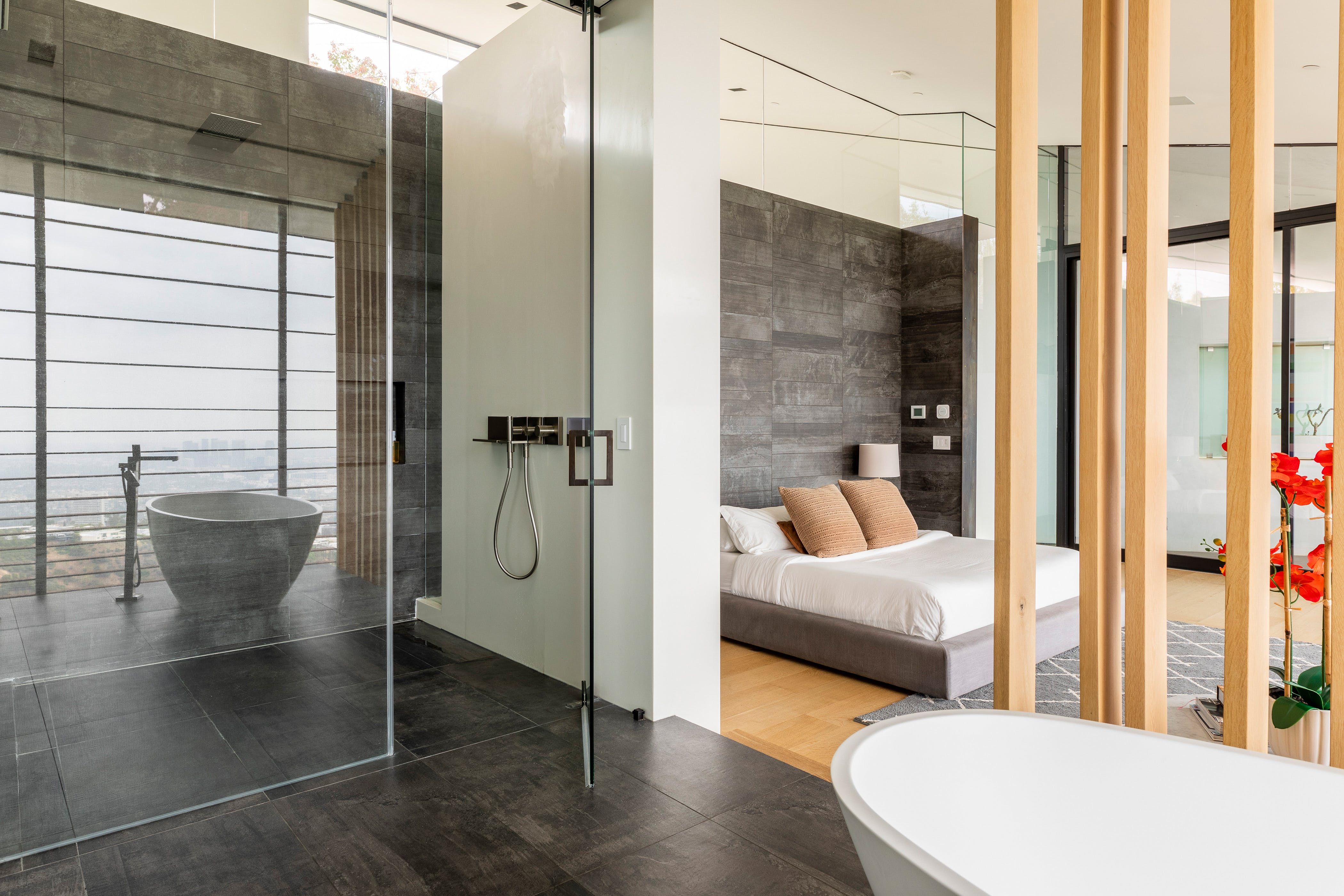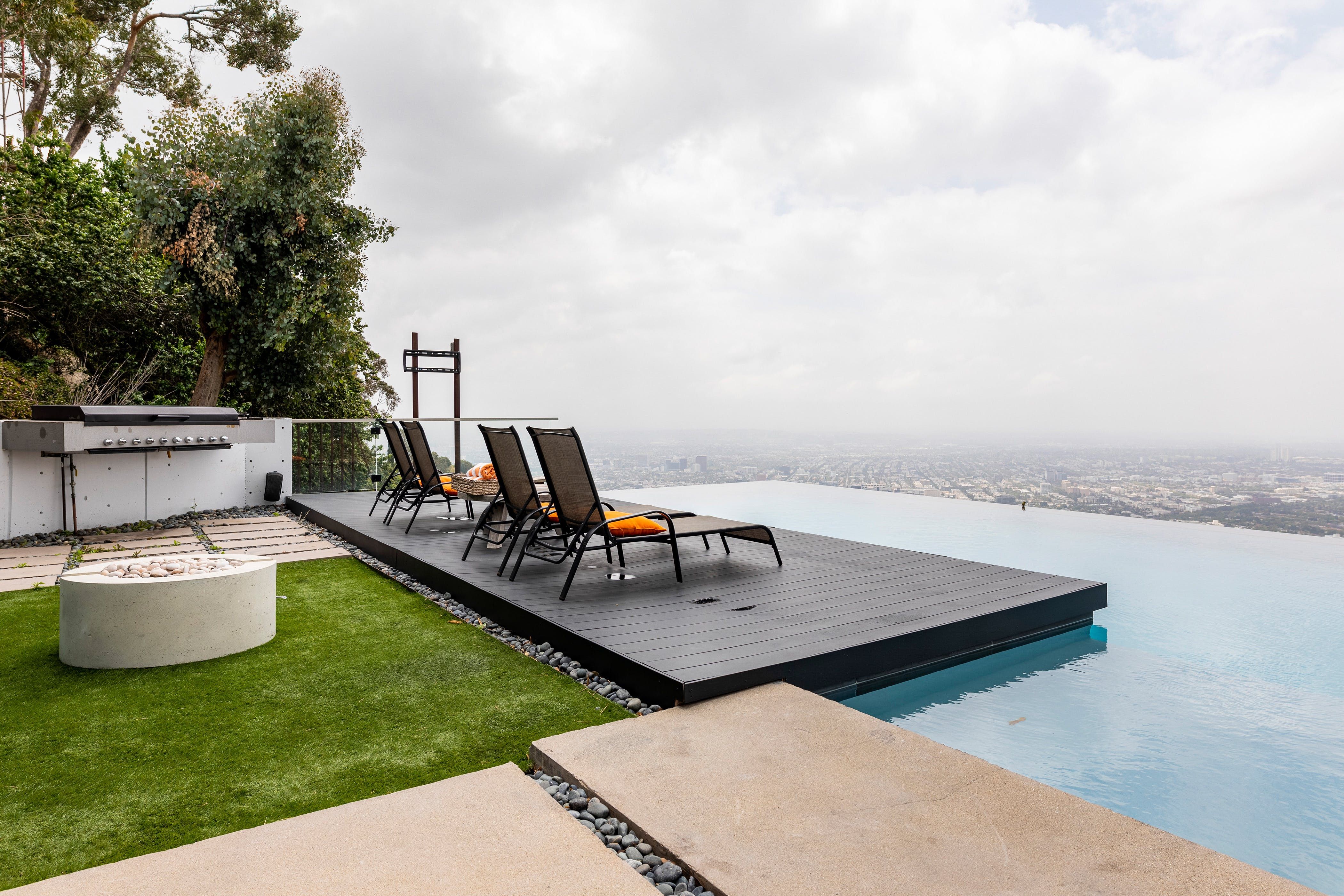 Los Angeles unfurls like a map before you up at this architecturally stunning home in the Upper Hollywood Hills. Every suite in the house has a breathtaking view of sparkling city lights after sunset from walls of glass. And then there’s the sunset itself – as the sky streaks pink and gold, head out to one of the many terraces for the daily spectacle. The infinity pool feels as though it’s hanging over the edge of the city and huge terraces lined with loungers and outdoor sofas face the glittering urban sprawl, perhaps best enjoyed by the warmth of a fire pit.