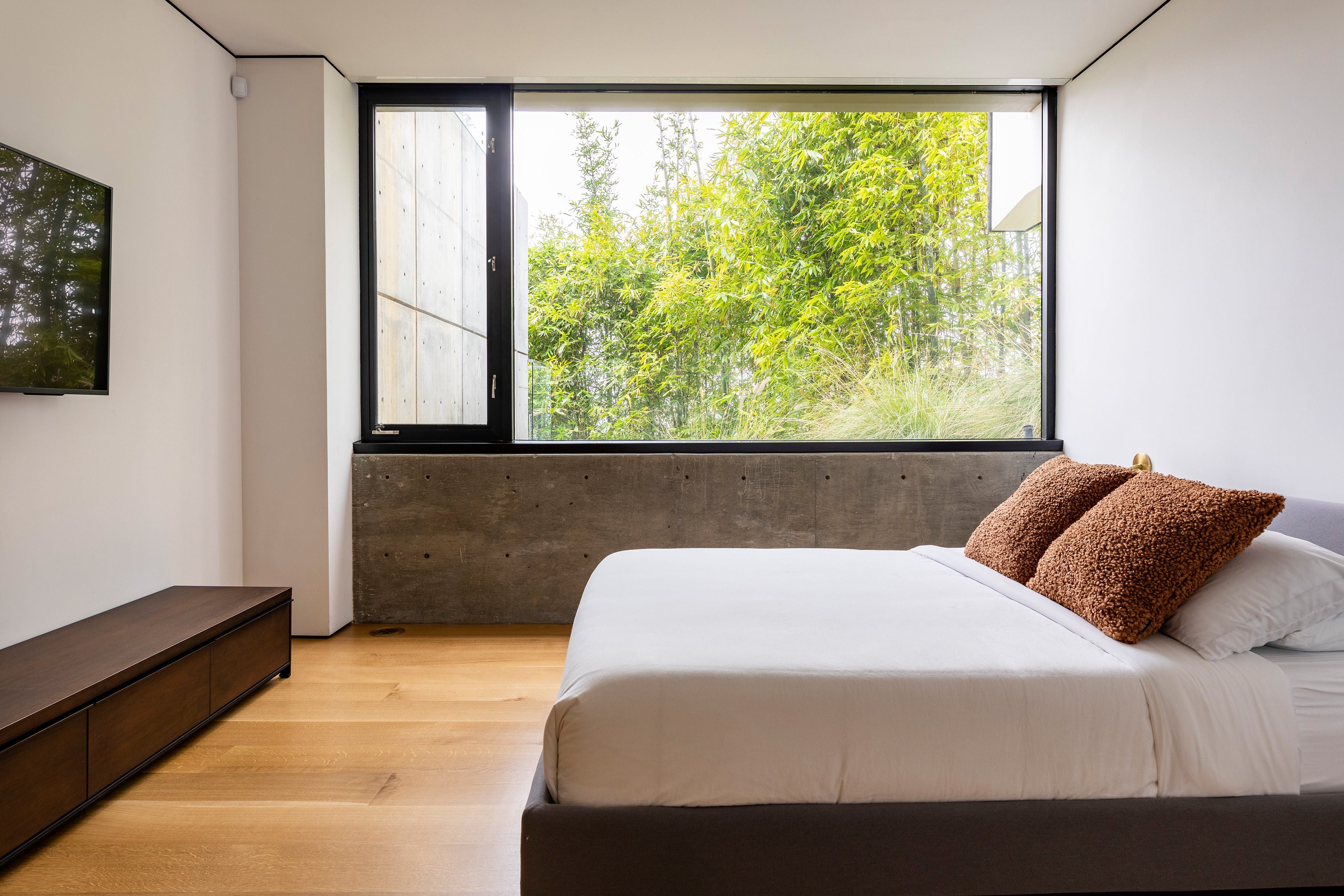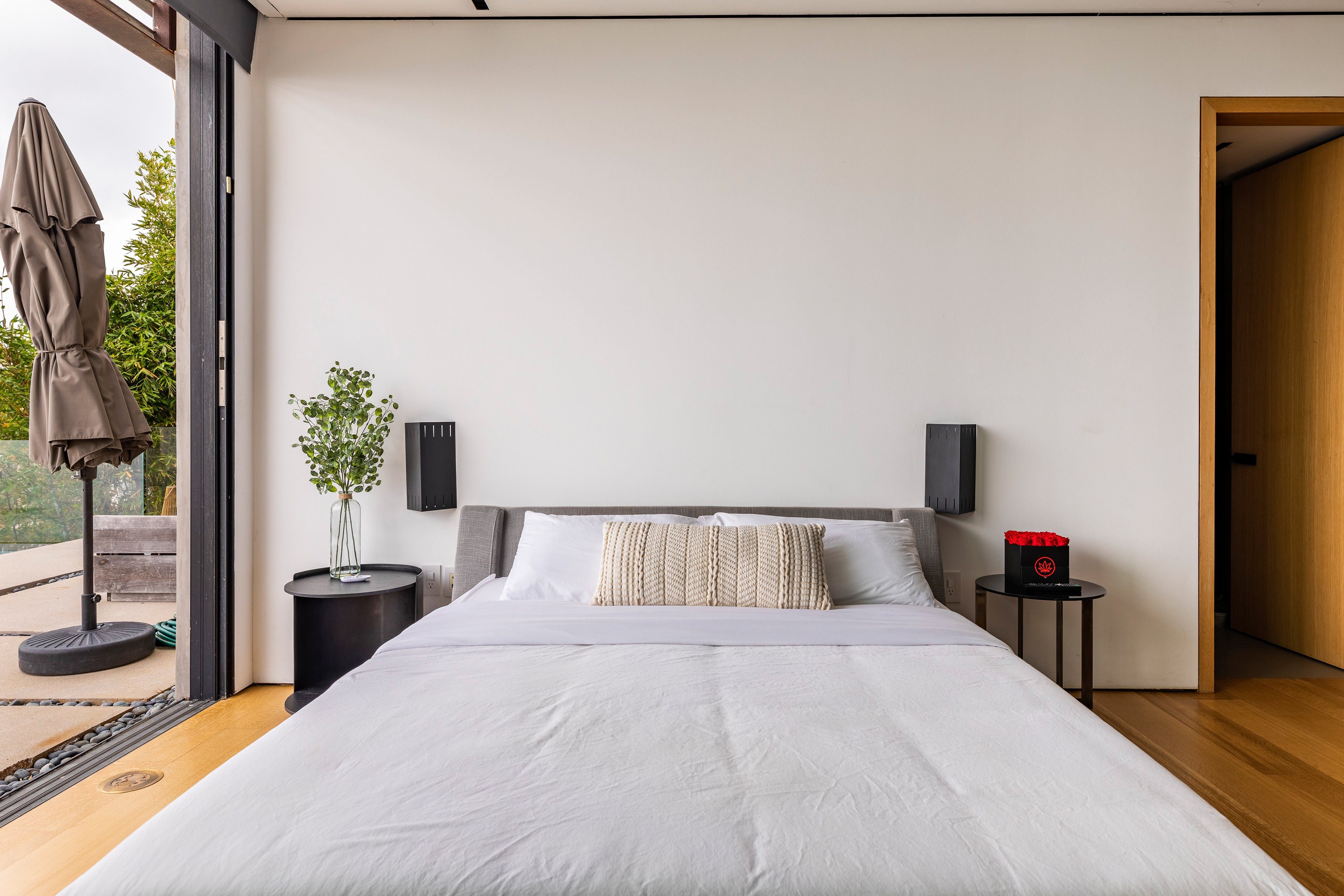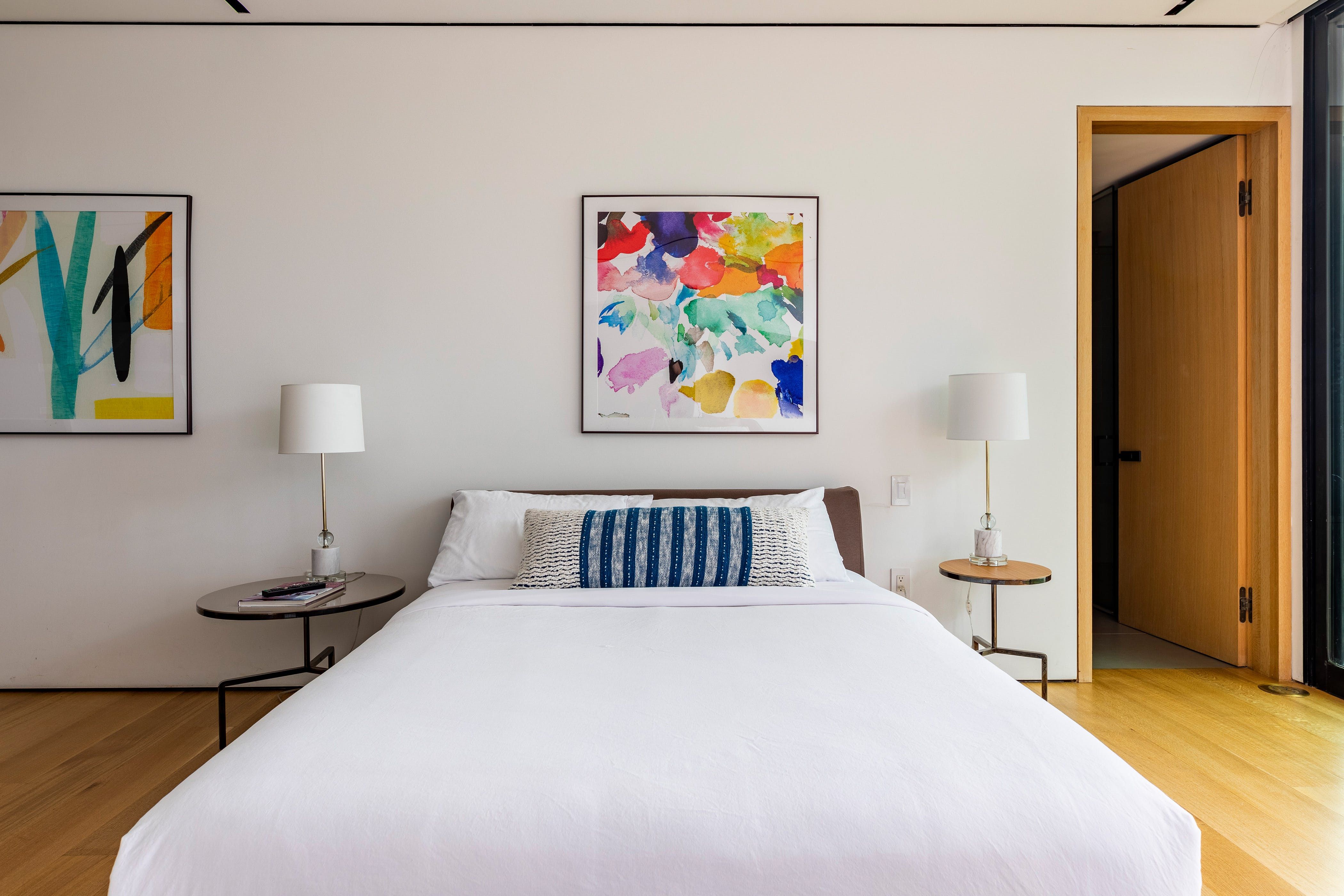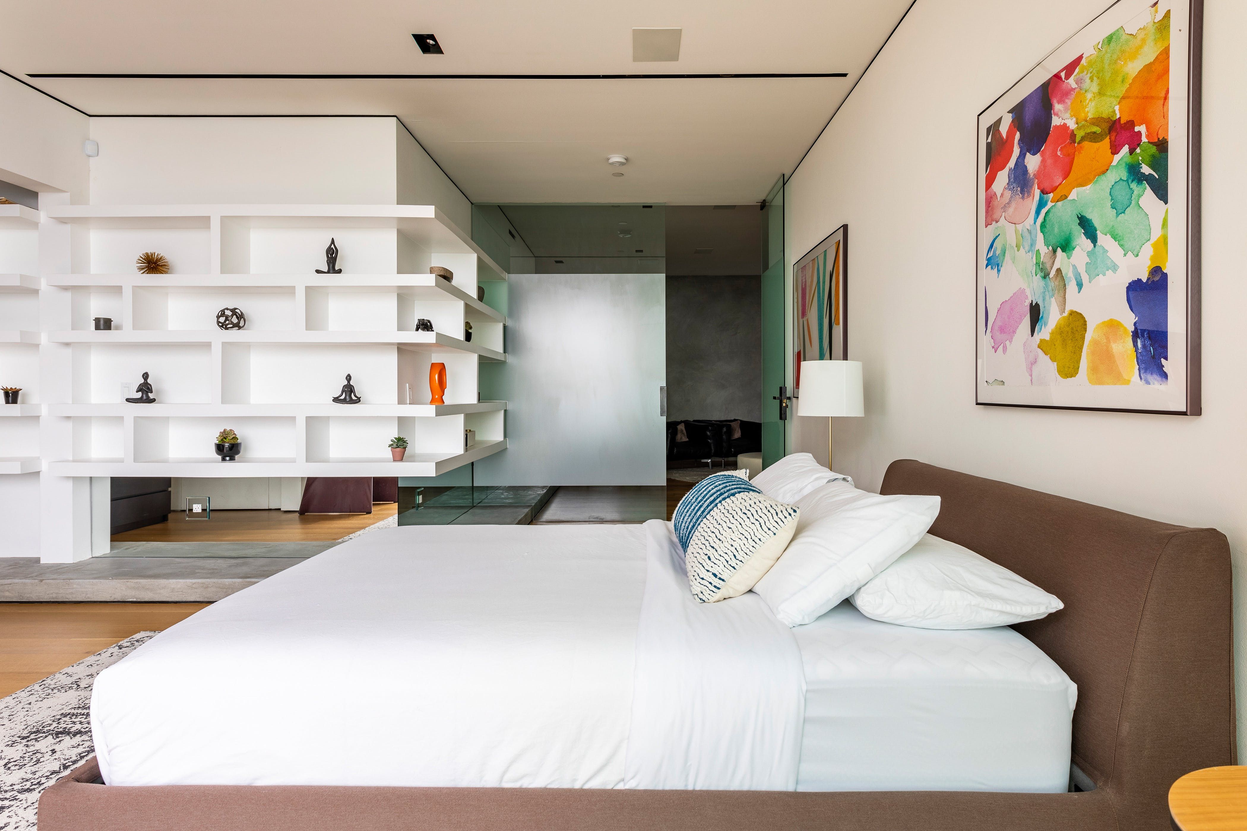 Los Angeles unfurls like a map before you up at this architecturally stunning home in the Upper Hollywood Hills. Every suite in the house has a breathtaking view of sparkling city lights after sunset from walls of glass. And then there’s the sunset itself – as the sky streaks pink and gold, head out to one of the many terraces for the daily spectacle. The infinity pool feels as though it’s hanging over the edge of the city and huge terraces lined with loungers and outdoor sofas face the glittering urban sprawl, perhaps best enjoyed by the warmth of a fire pit.