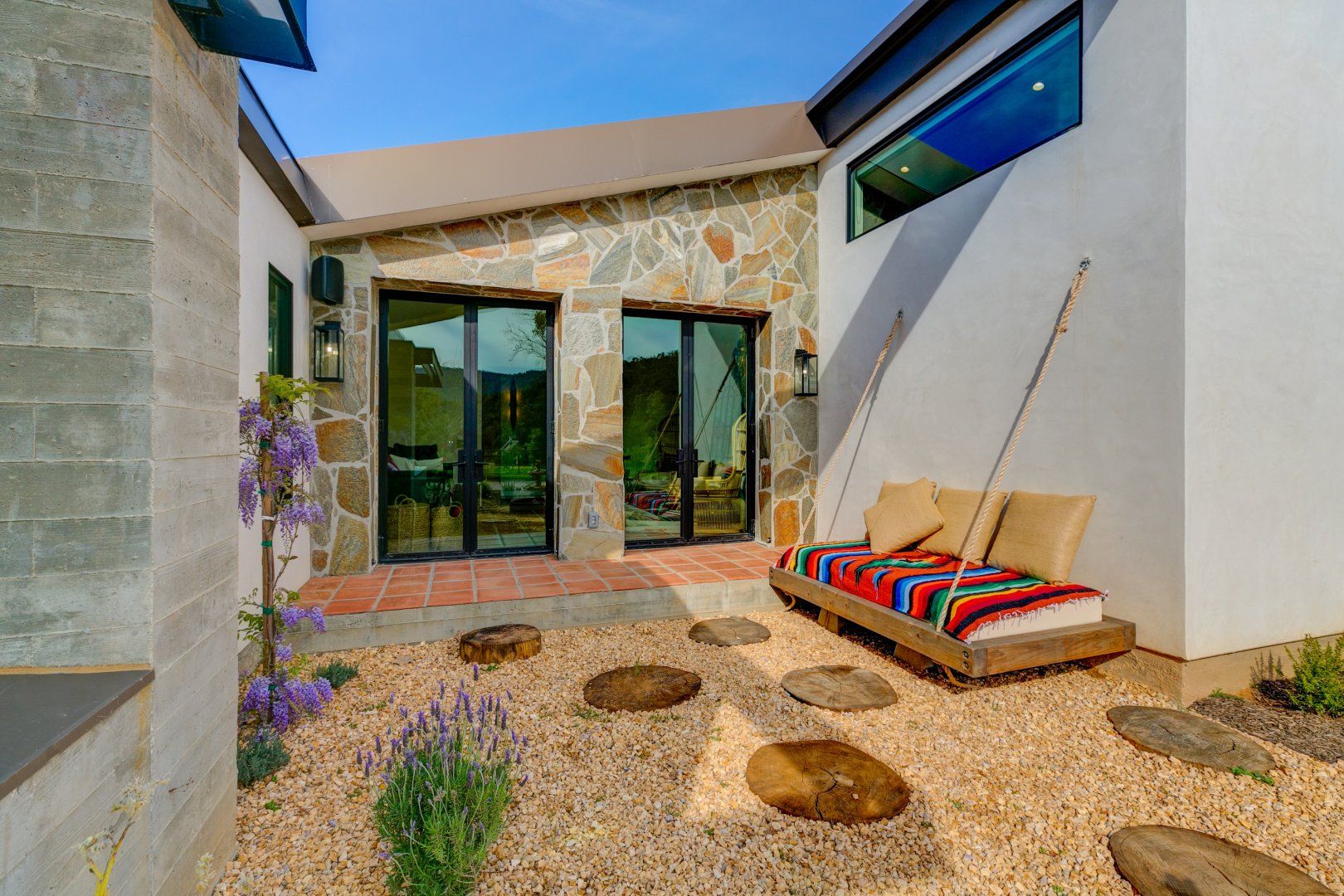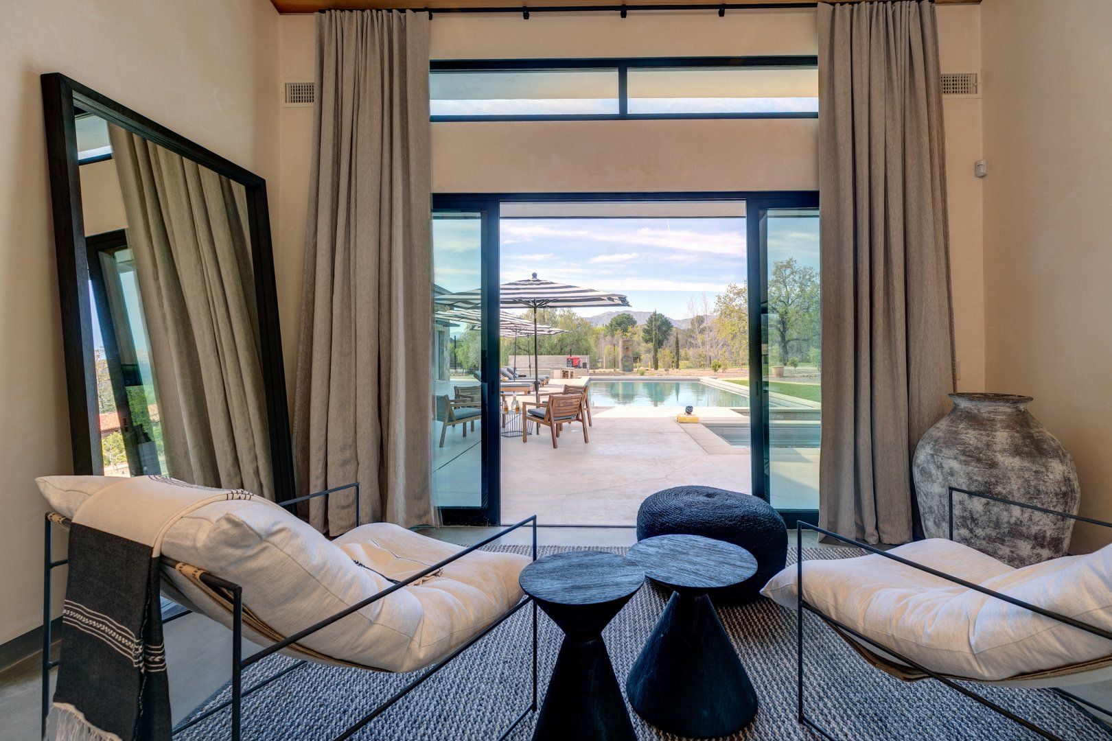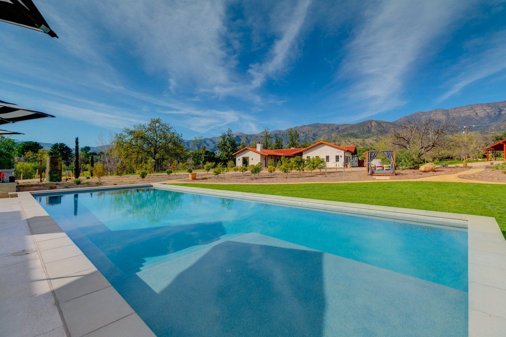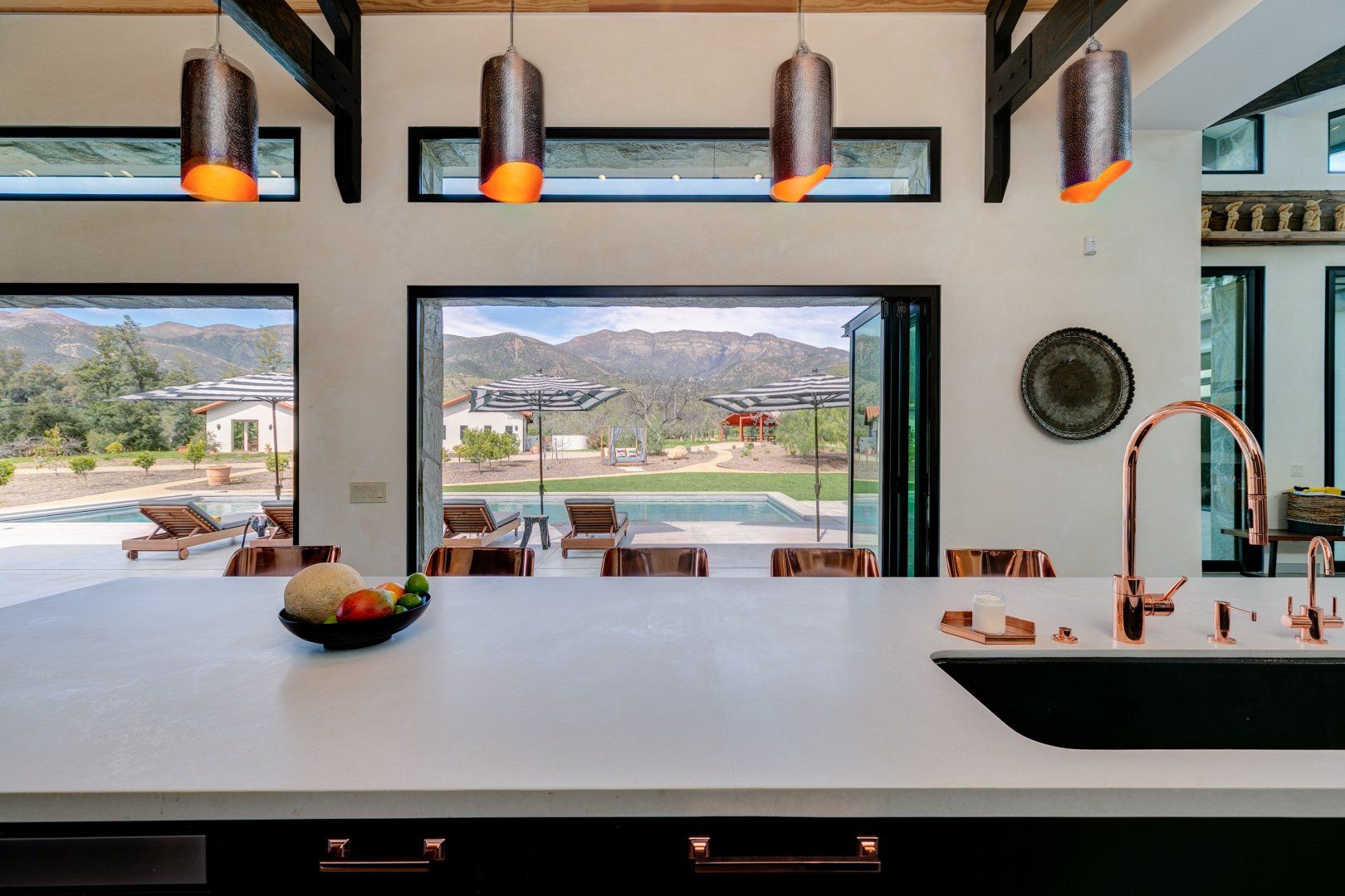 Nestled into the breathtaking landscape of the Ojai Valley, this traditional hacienda has been completely reimagined to create a space of serenity and calmness with luxurious and modern finishes for the twenty-first-century traveller. Sitting on five acres of private land, there's a pool and spa area, an outdoor kitchen and fire pit, a yoga platform, and lots of fun activities for children and adults. Ataraxia is made up of two distinct homes: a modern structure that oozes relaxed luxury as it wraps itself around the outdoor entertaining area, while the property's original hacienda has been fully refurbished to create a tranquil guest house. We say it's time to escape to the Ojai Valley!